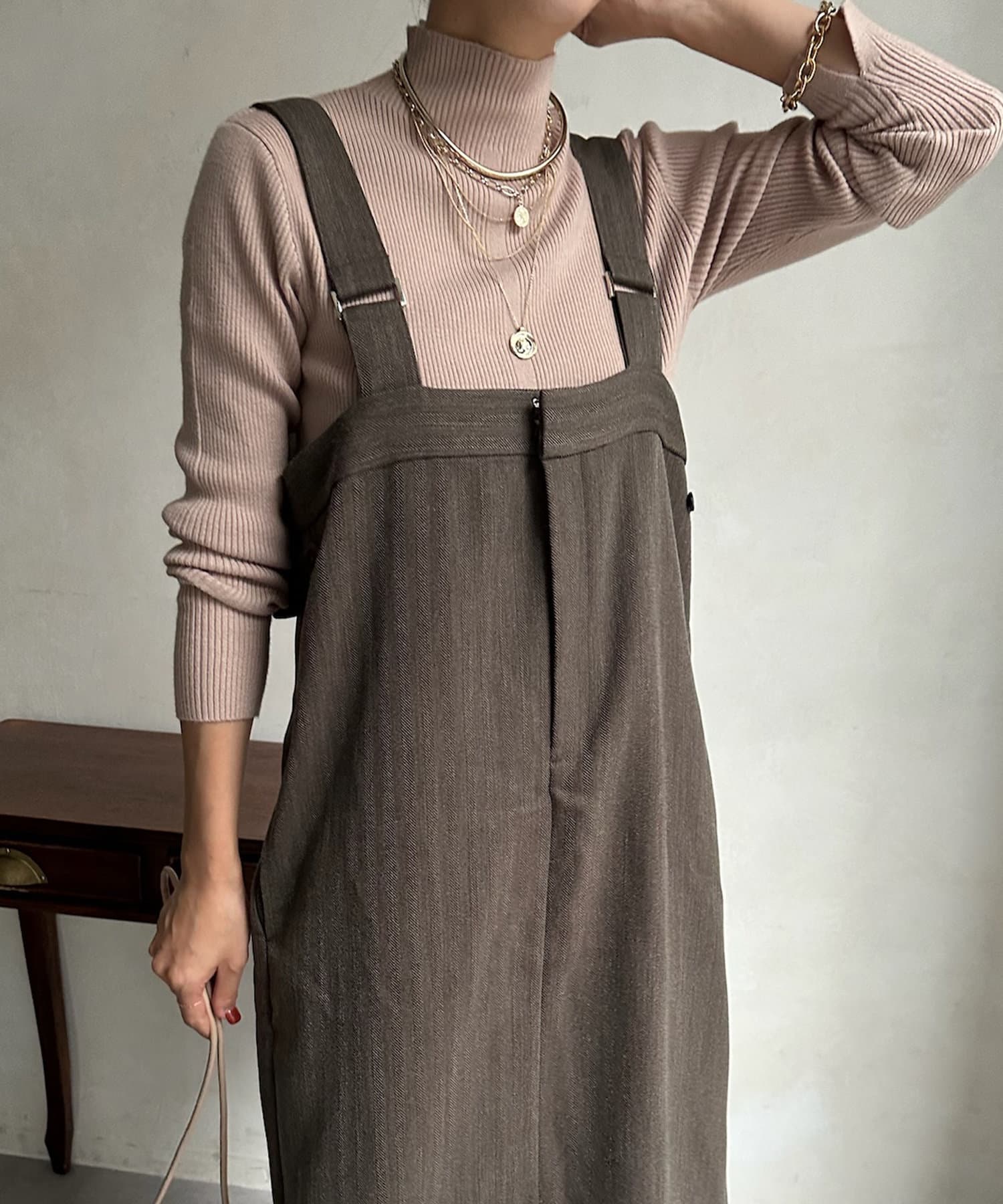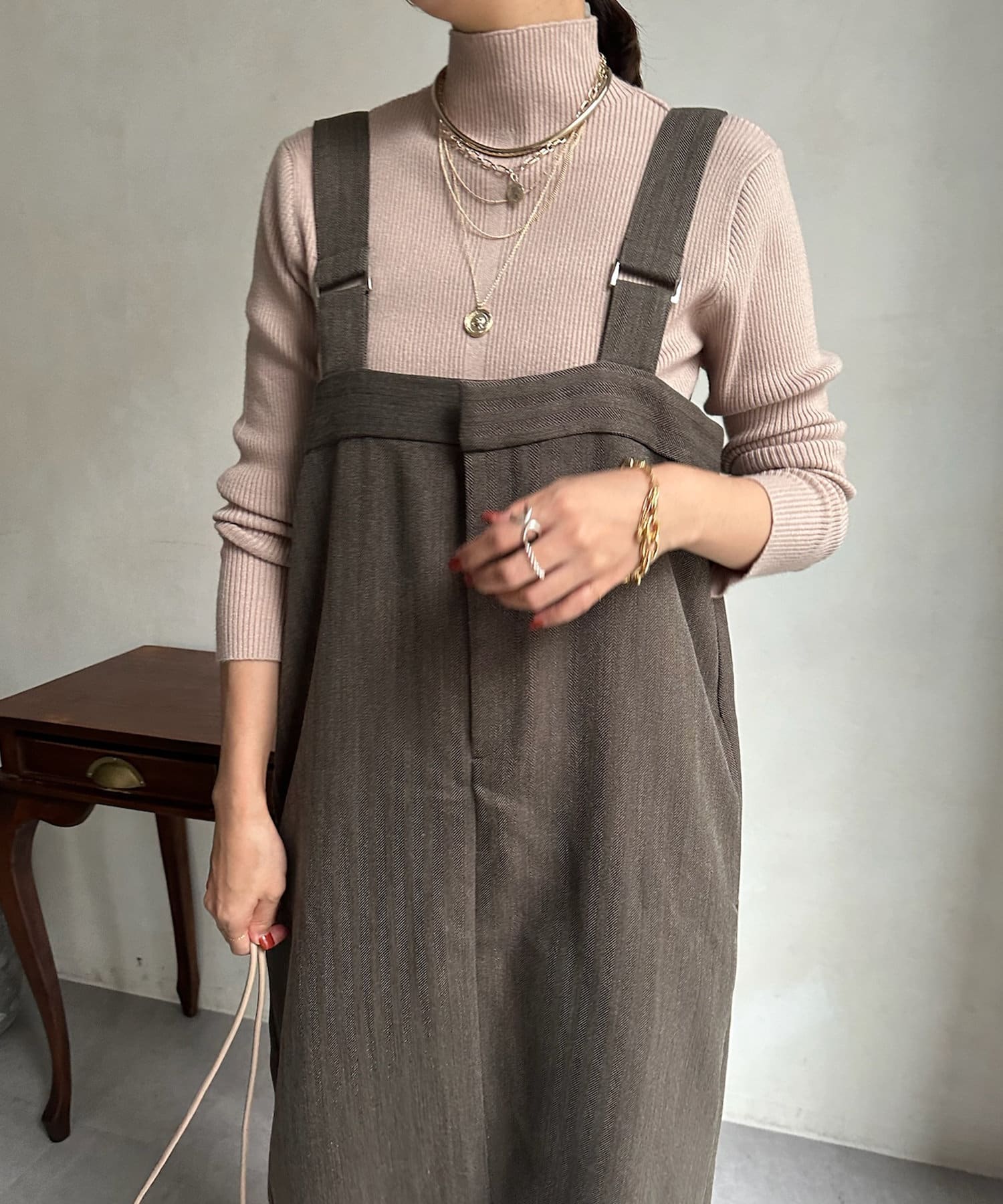 程よくタイトで、サロペットのインナーとしてや、パンツにインして着るなど、スッキリとコーディネートをまとめてくれそうです。