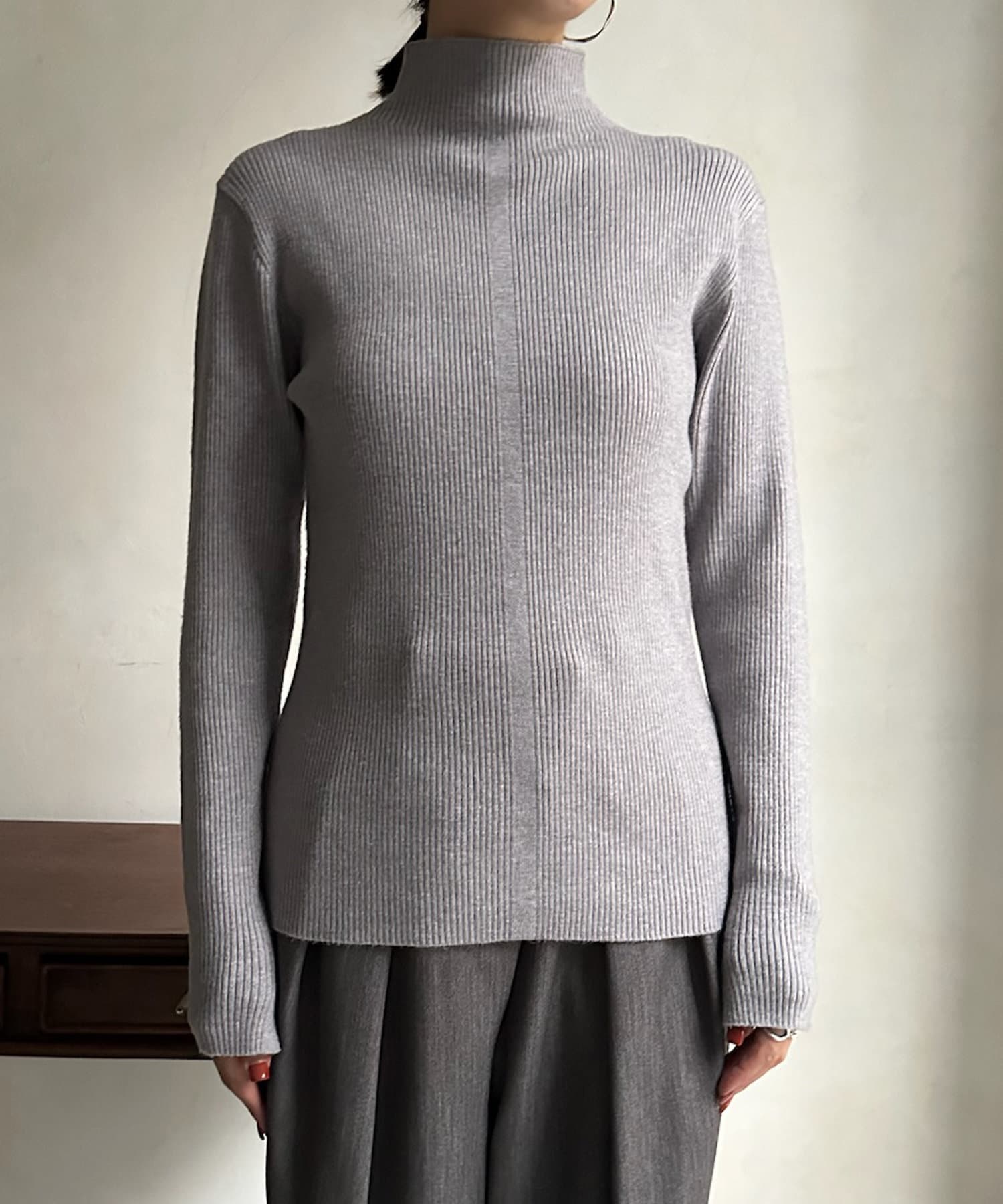 ボトルネックリブニット