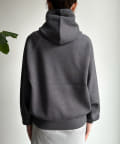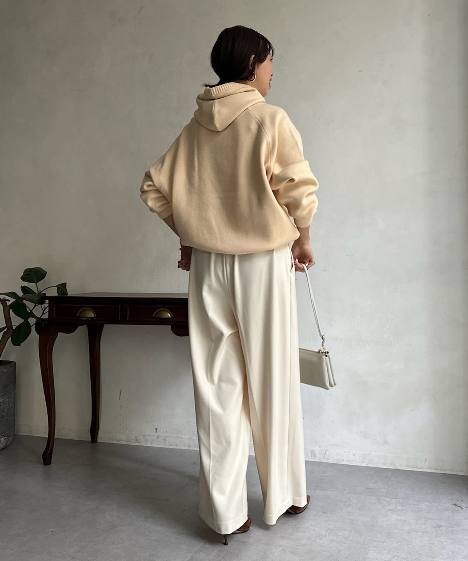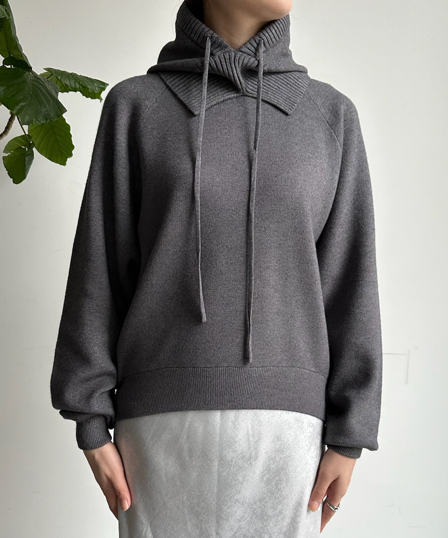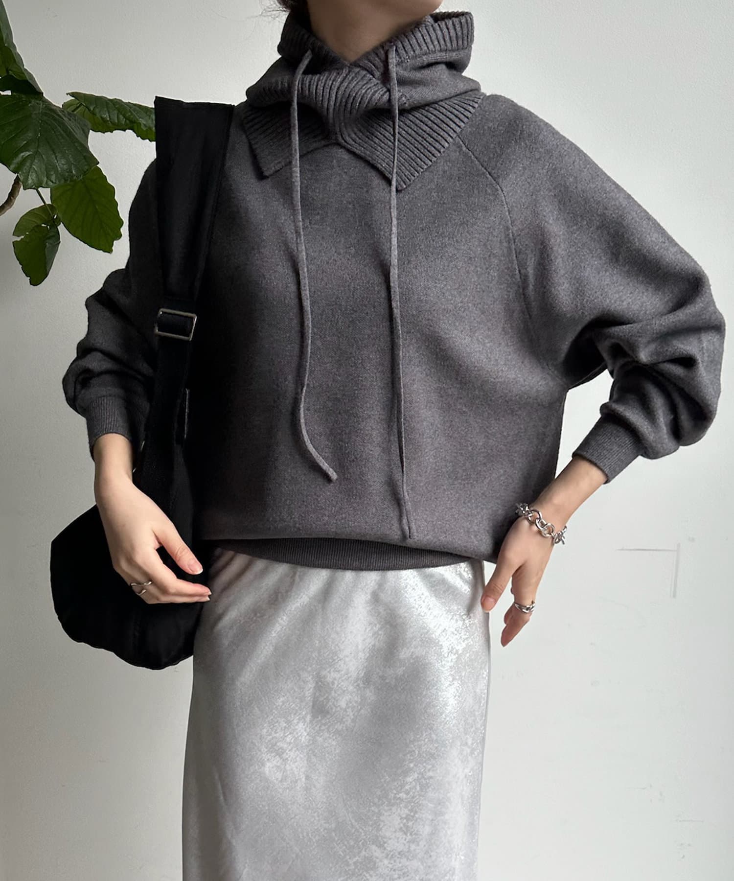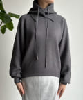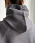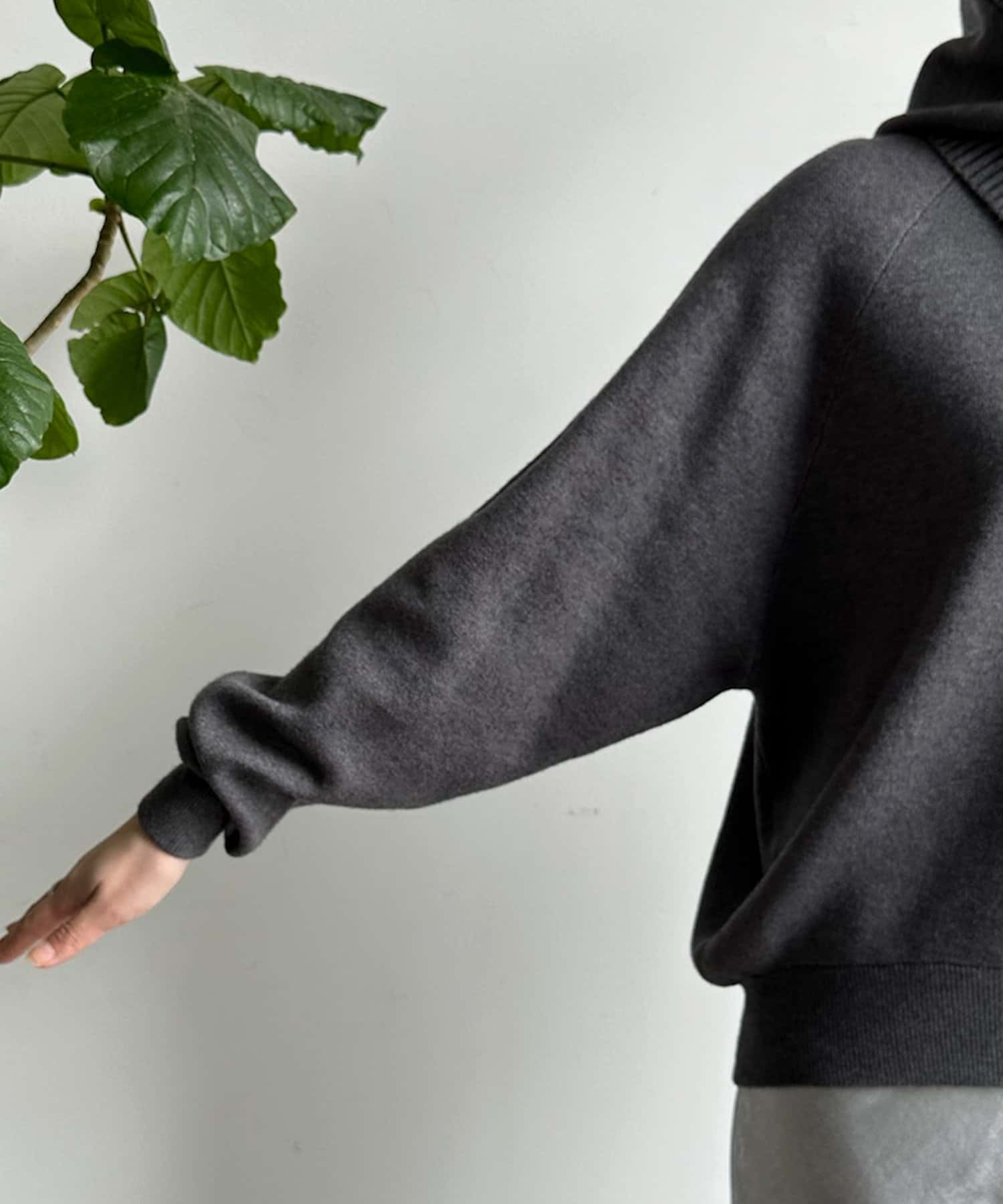 同色・同素材の2つを身に着けるだけで、パーカーのような見え方に。