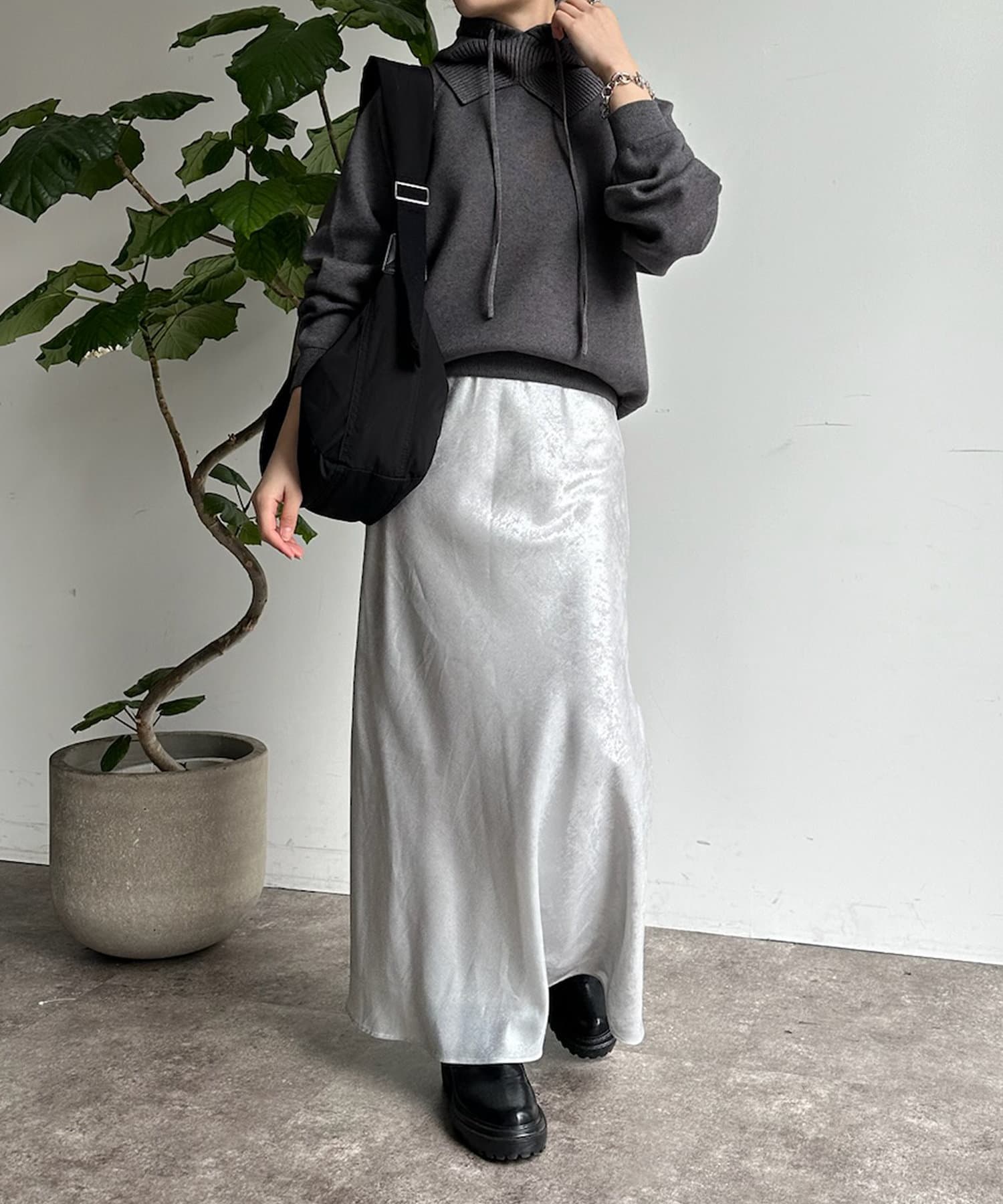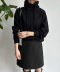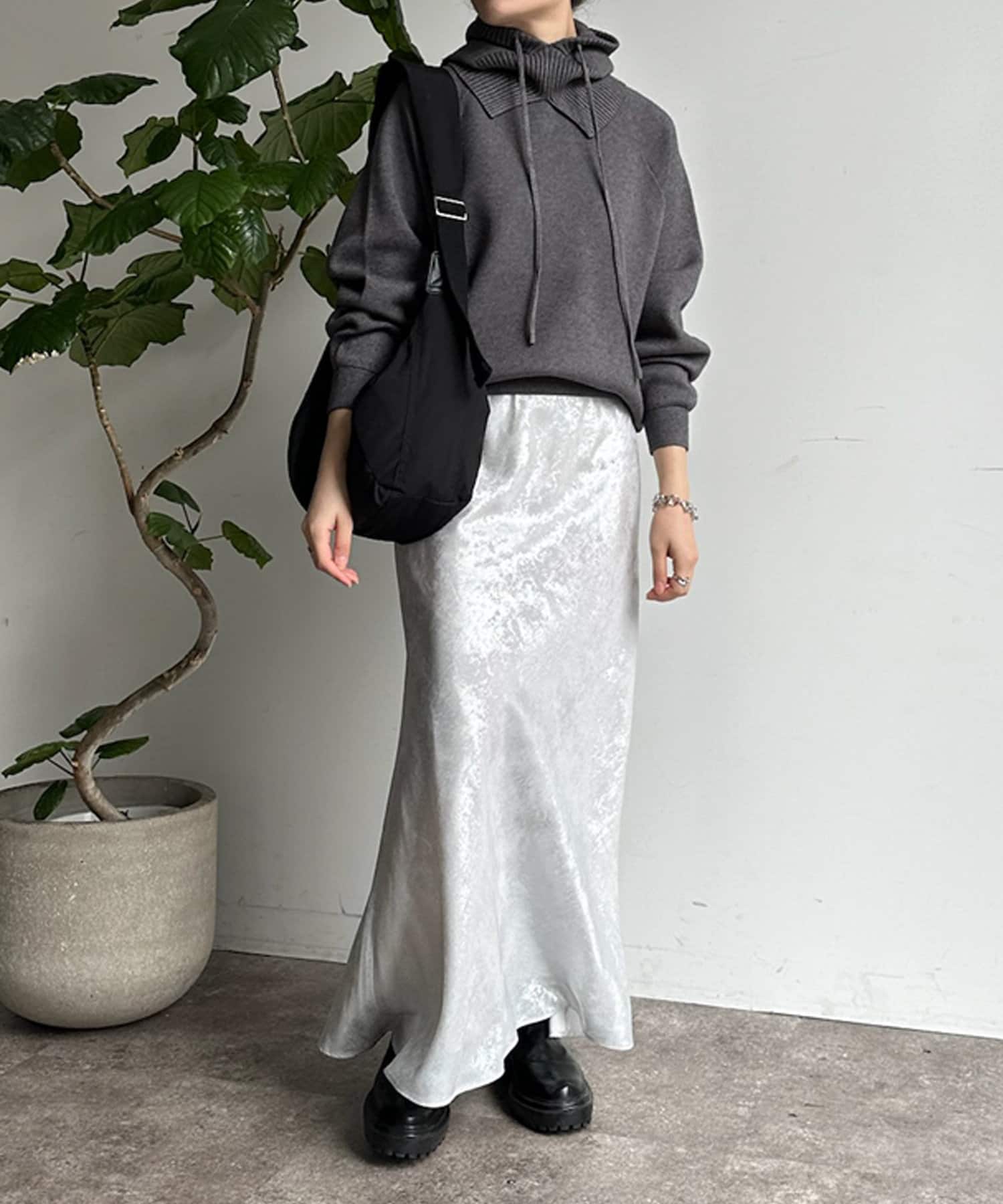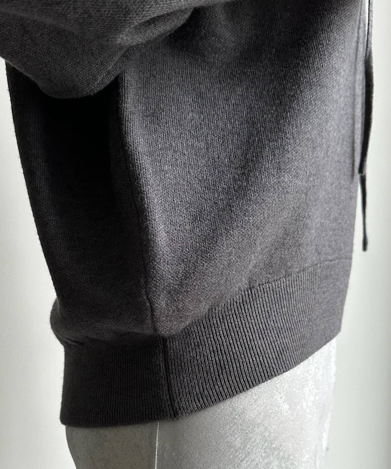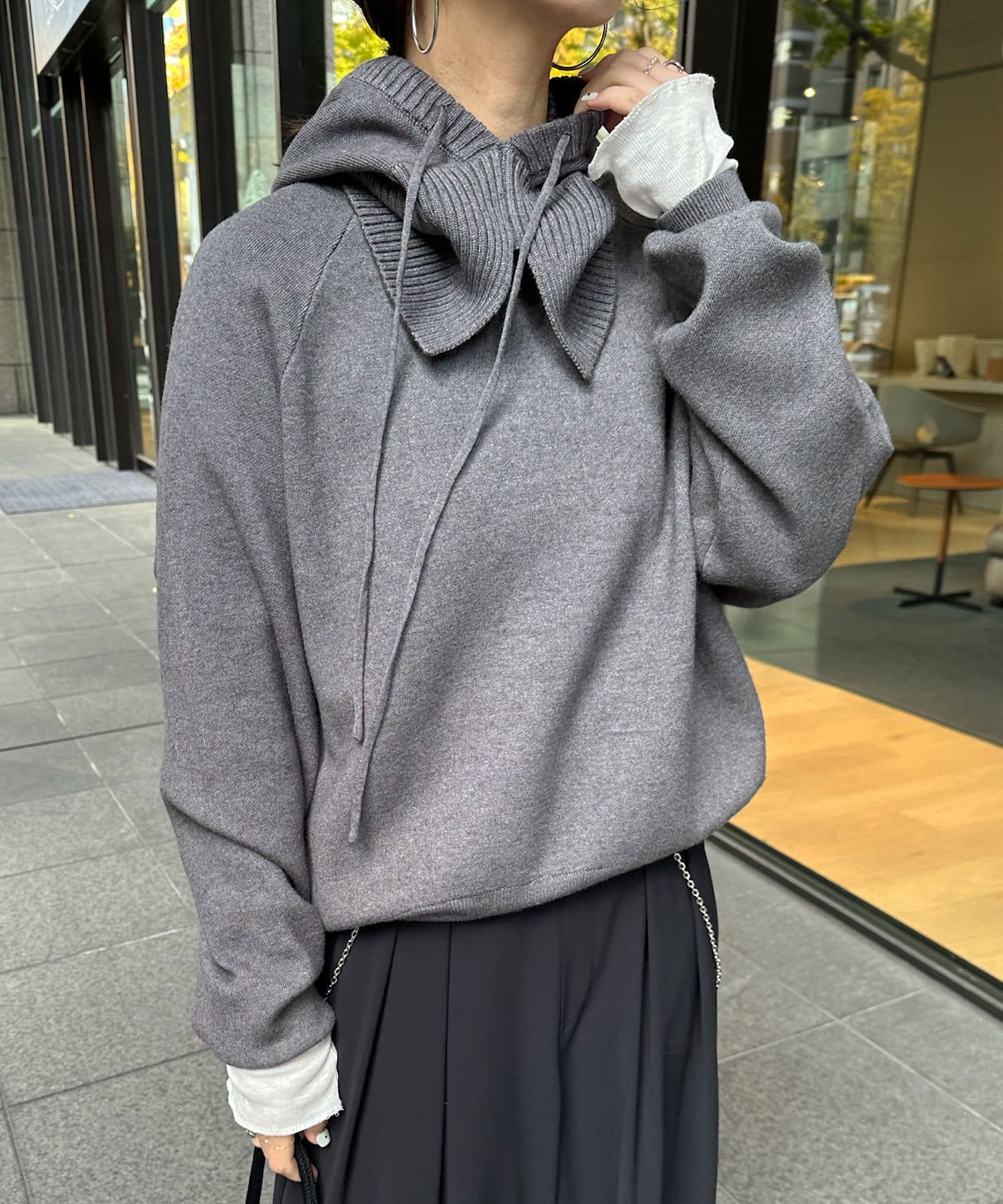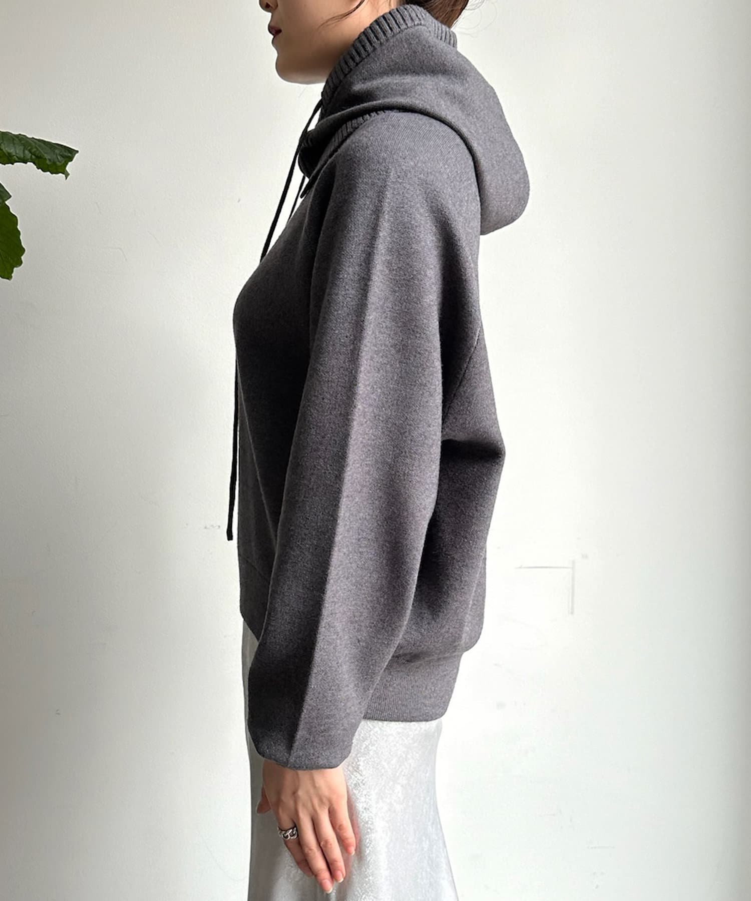 同色・同素材の2つを身に着けるだけで、パーカーのような見え方に。