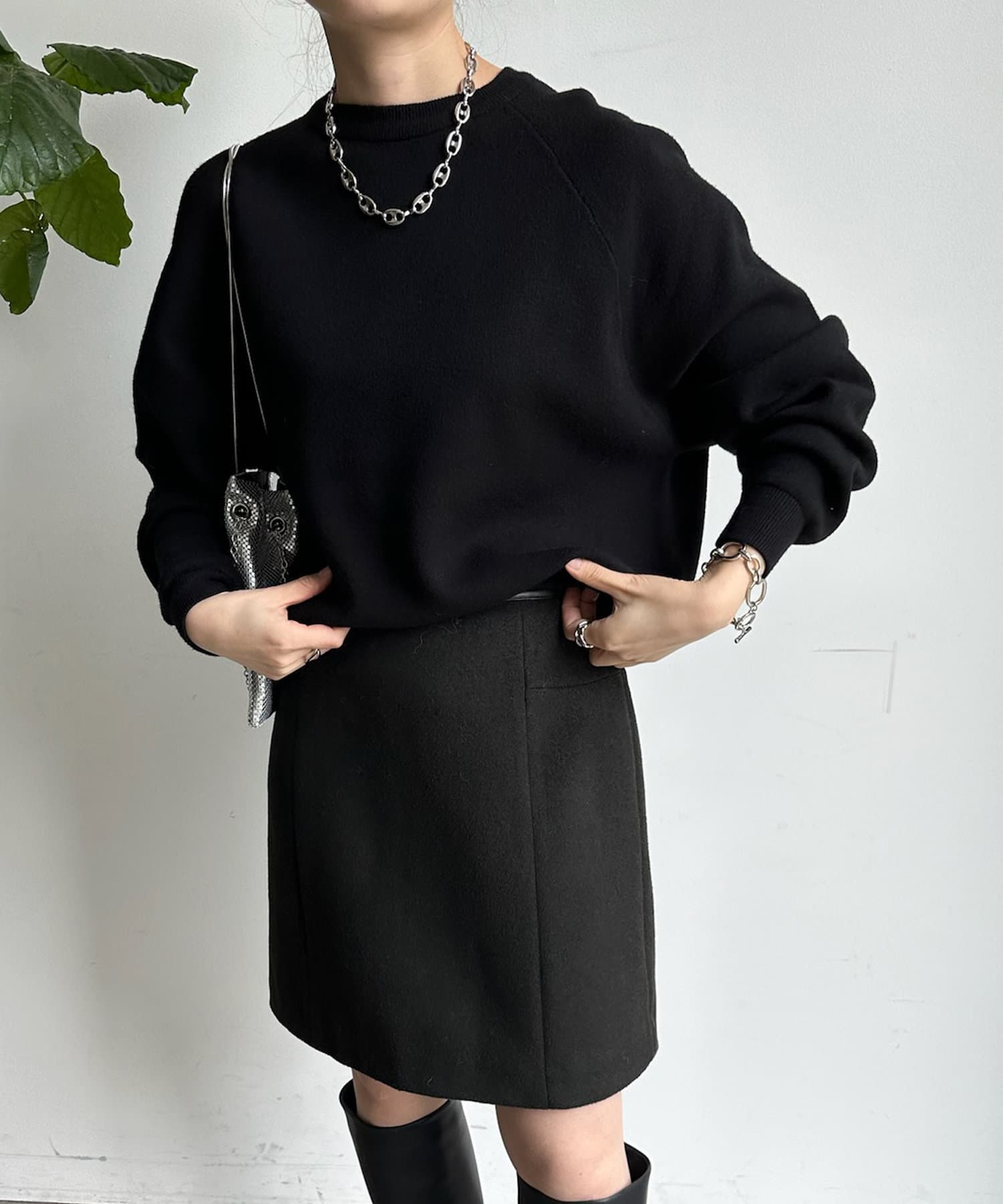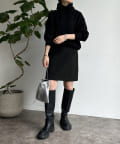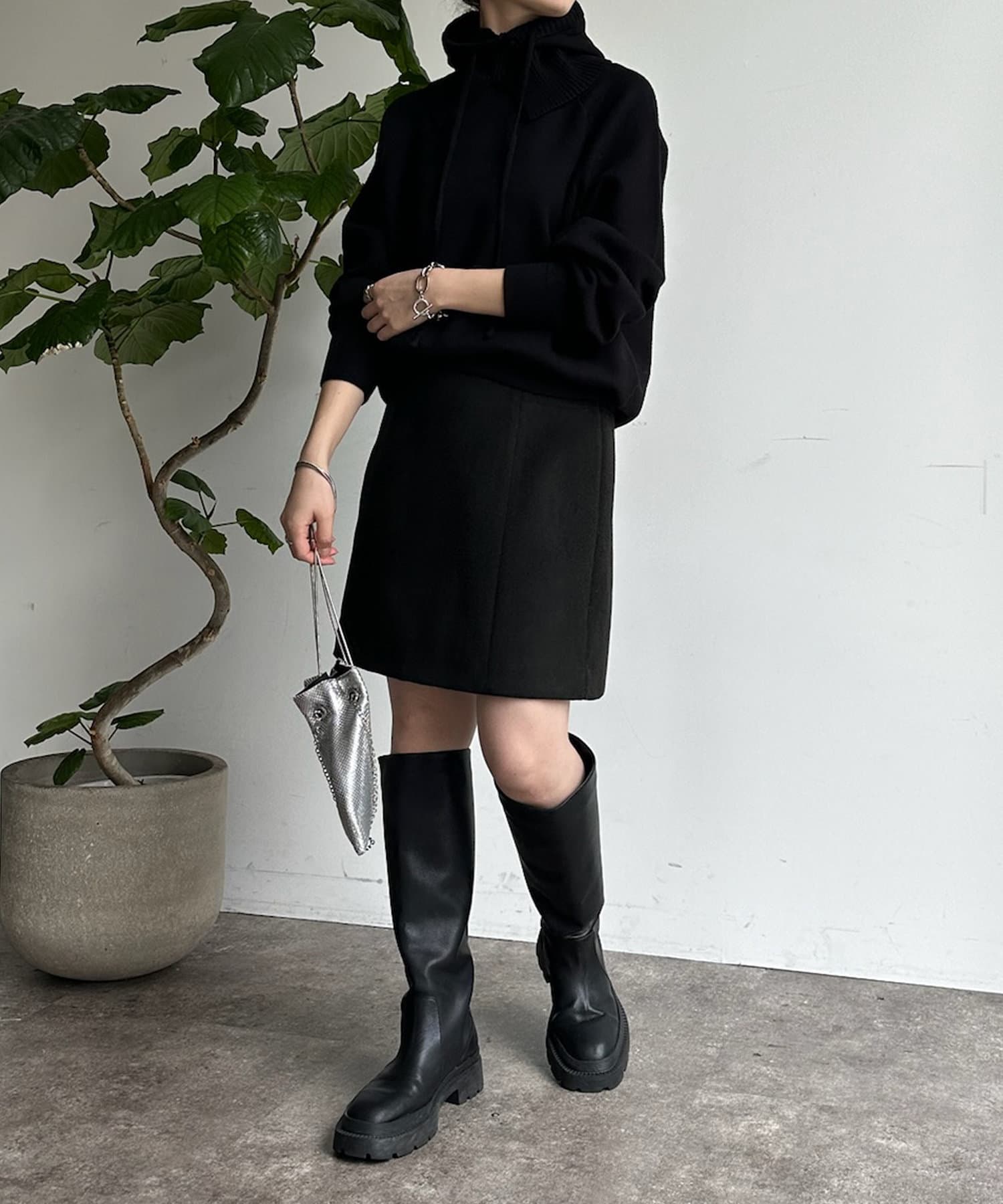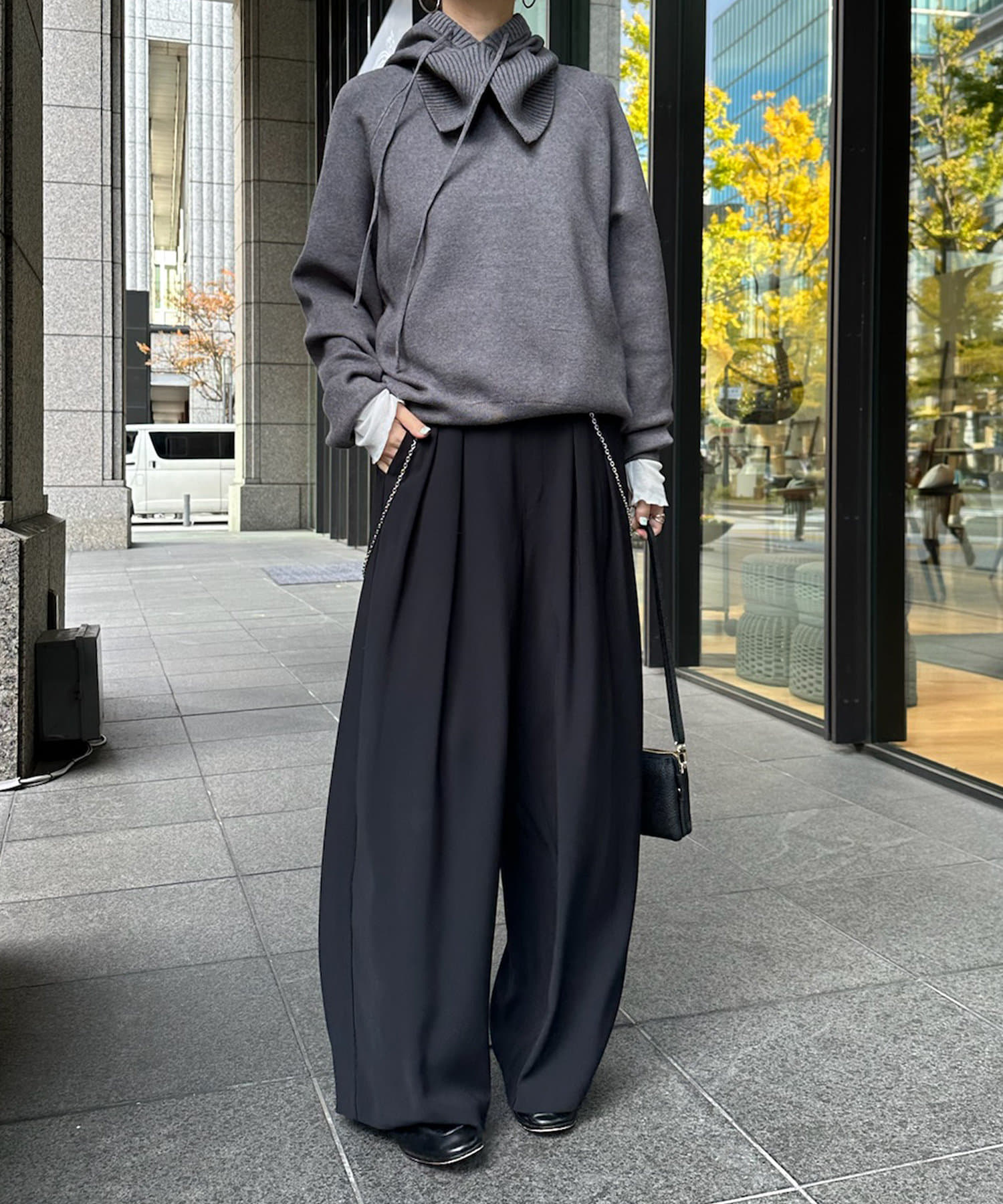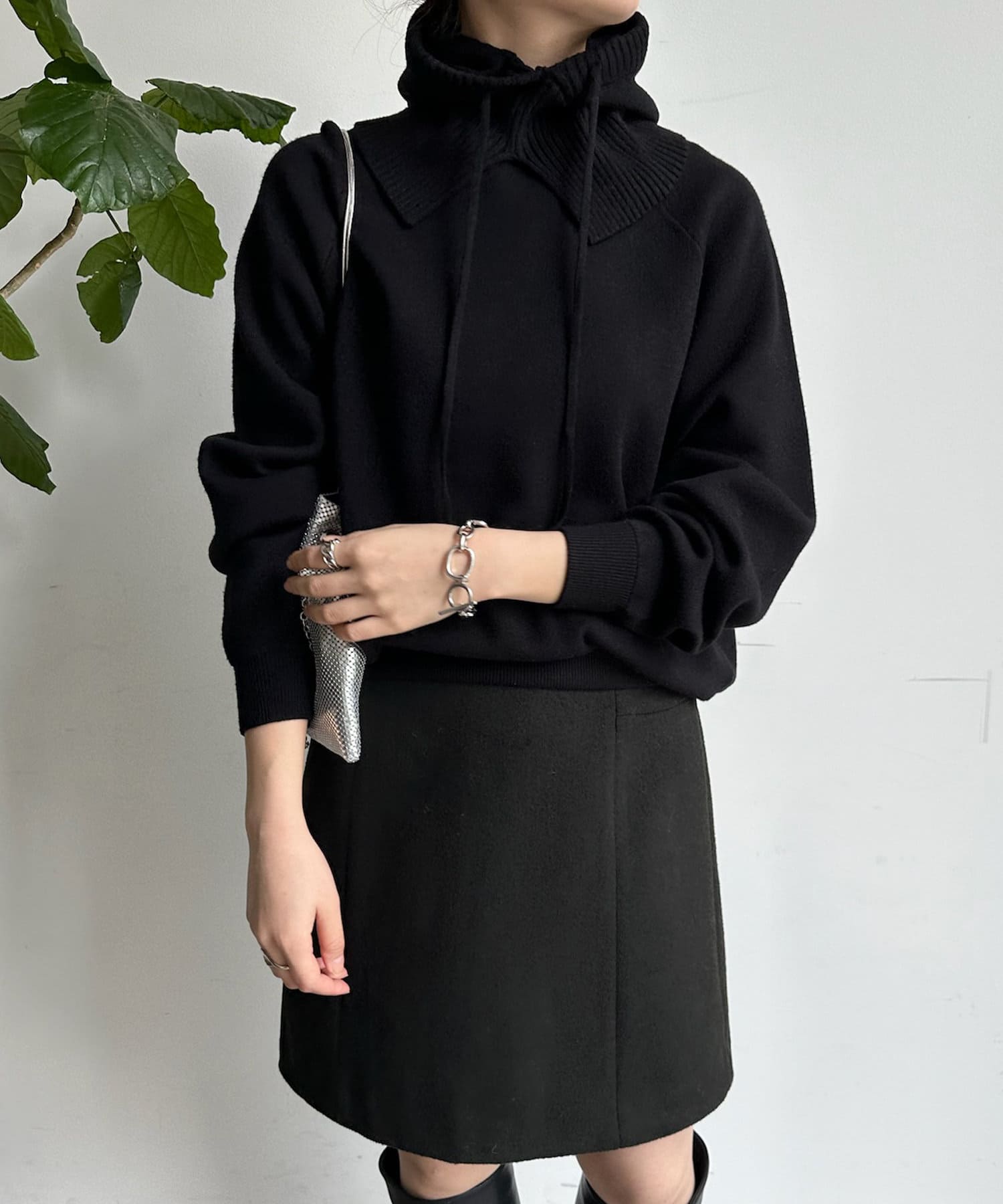トレンドのバラクラバとニットプルオーバーをセットにした1着。