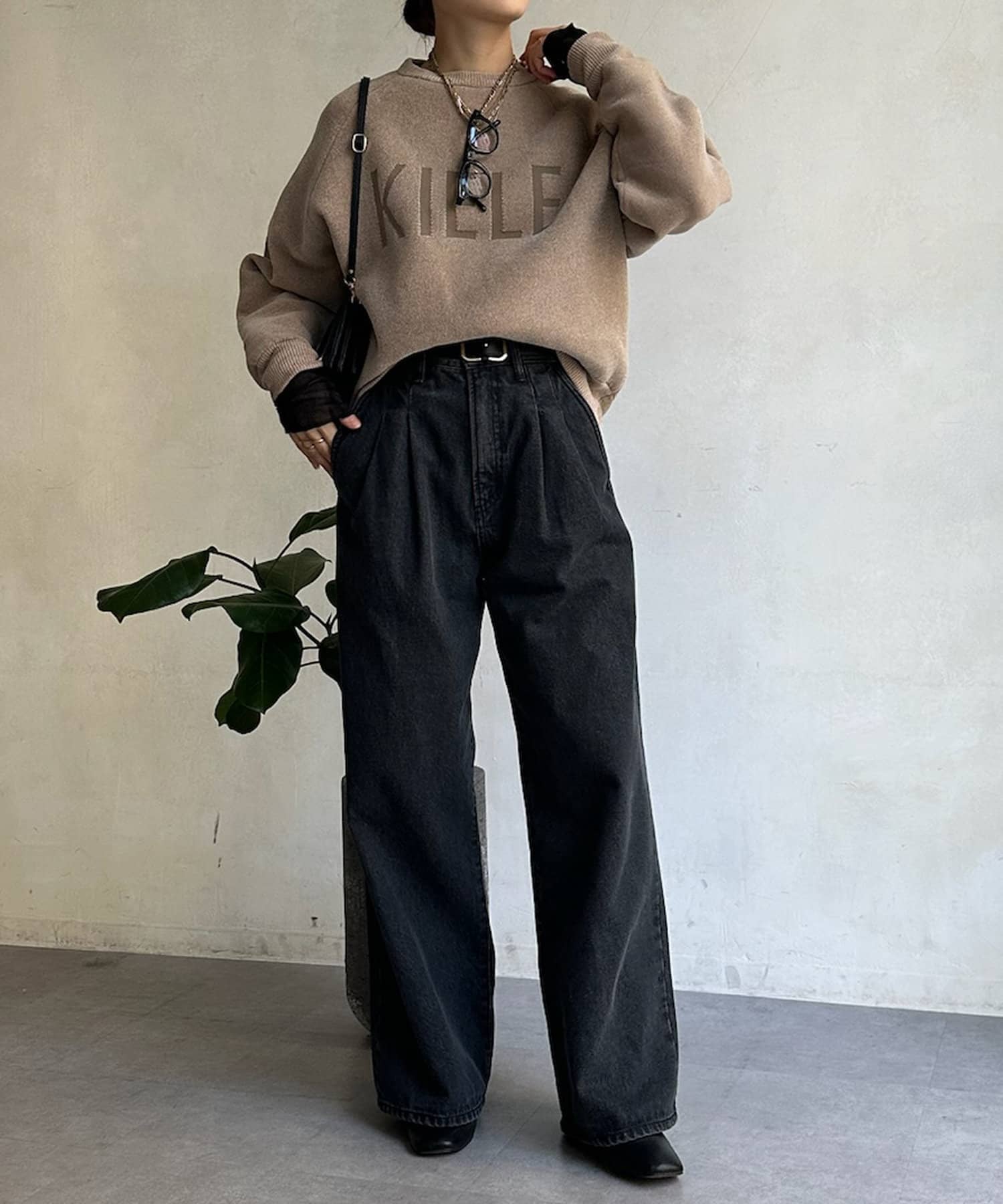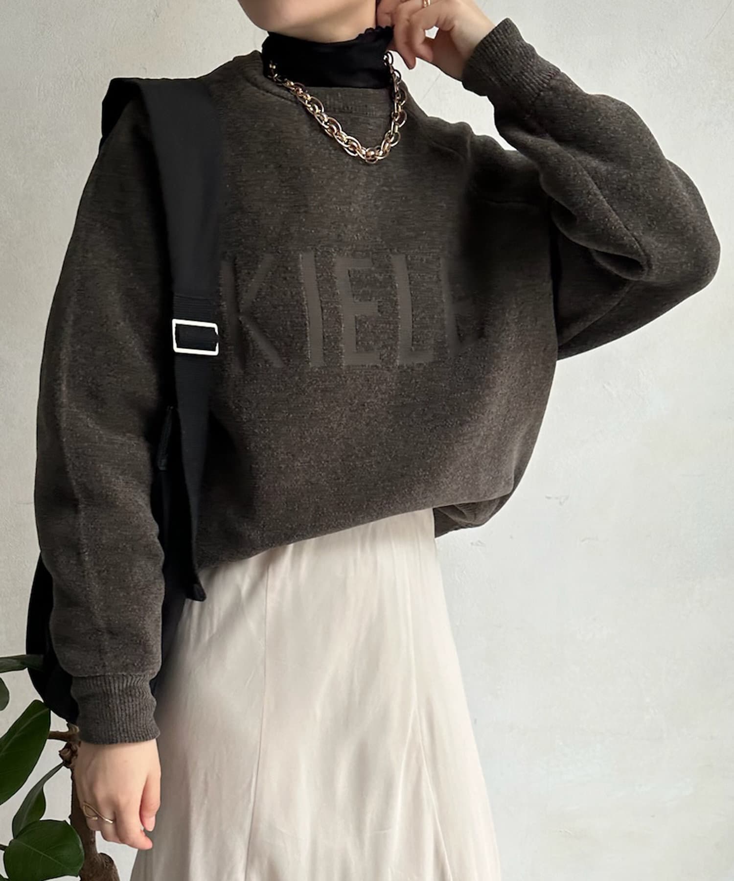 立体感のある形が体のラインを拾わず着れるのが嬉しいポイント◎