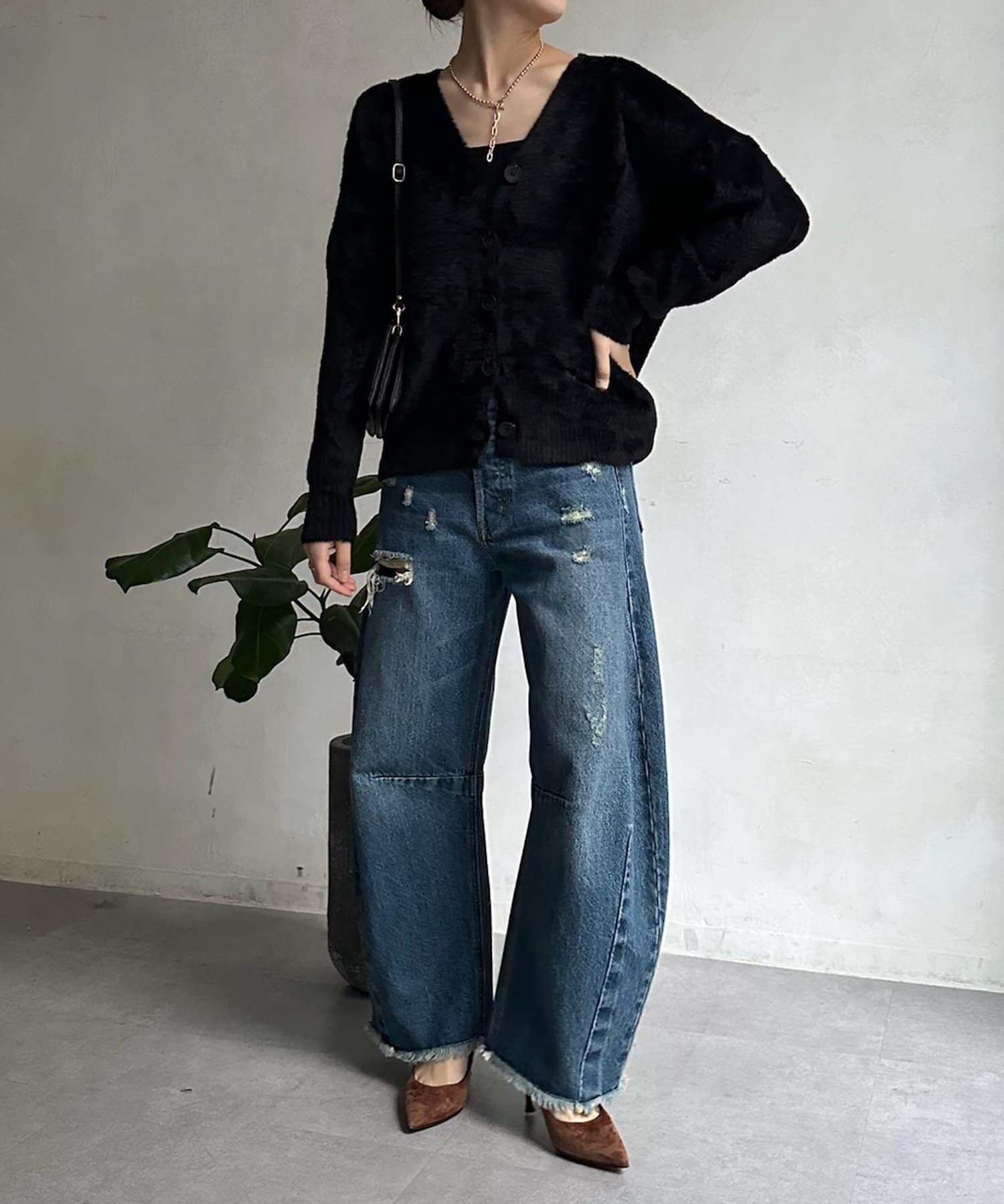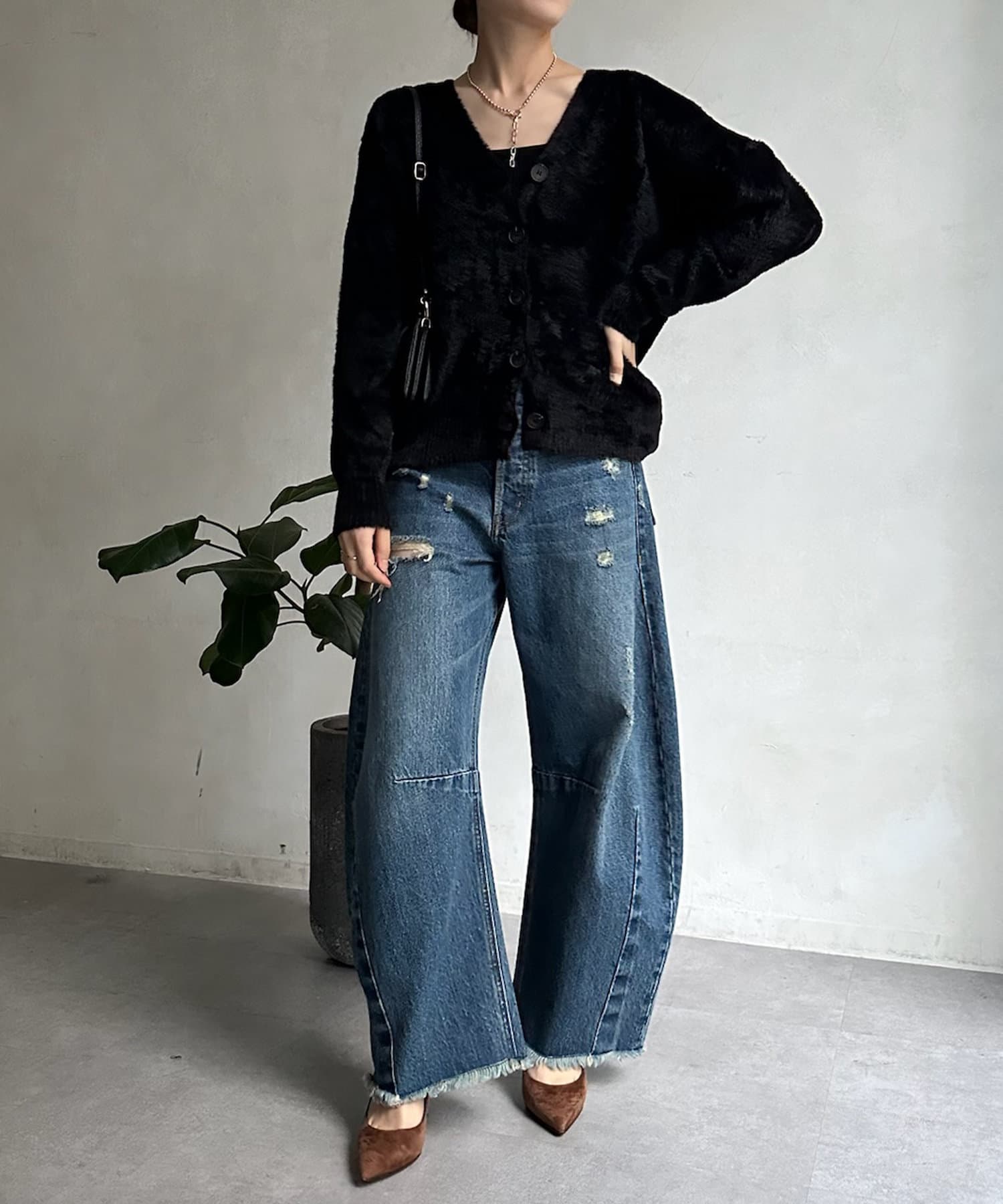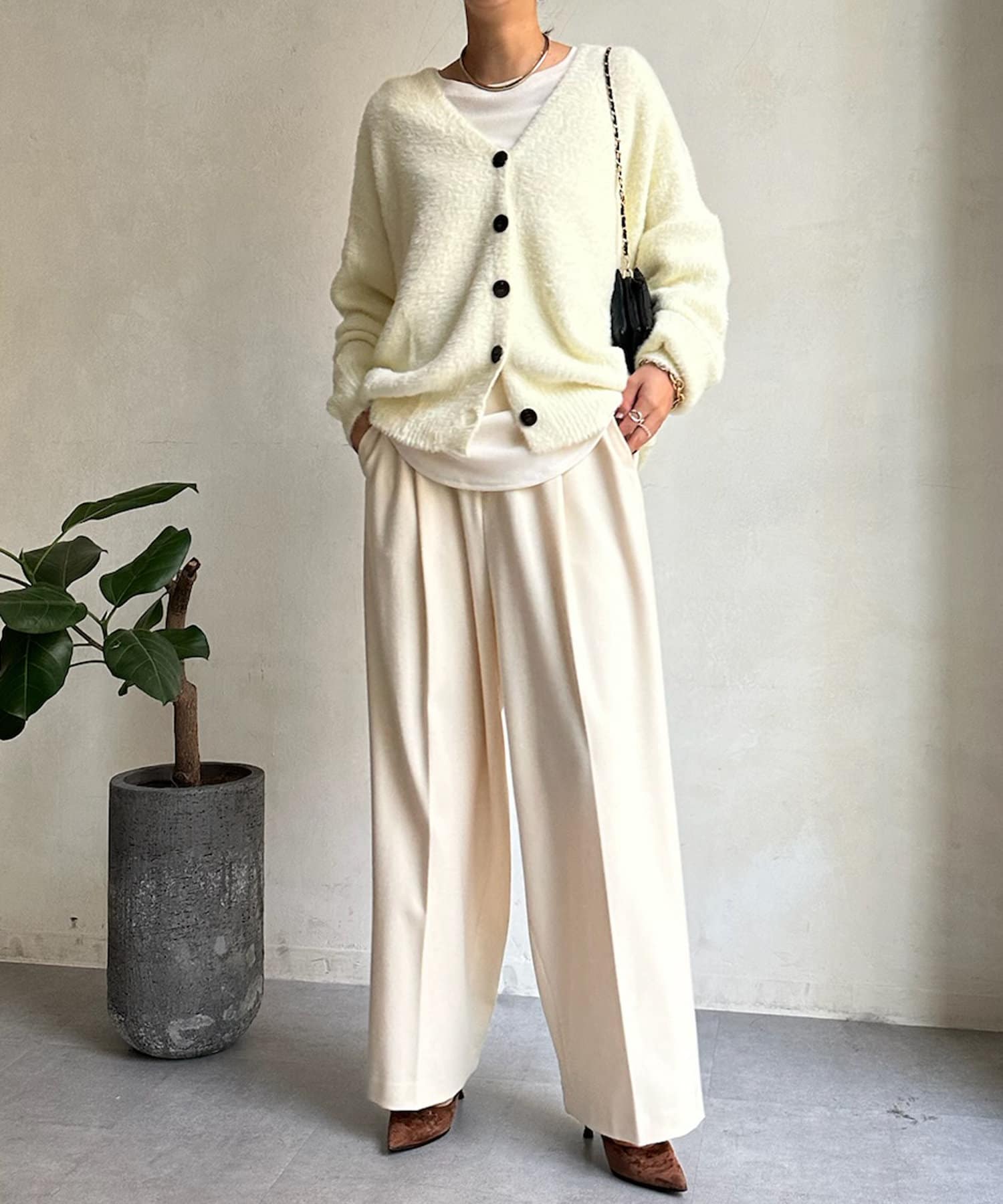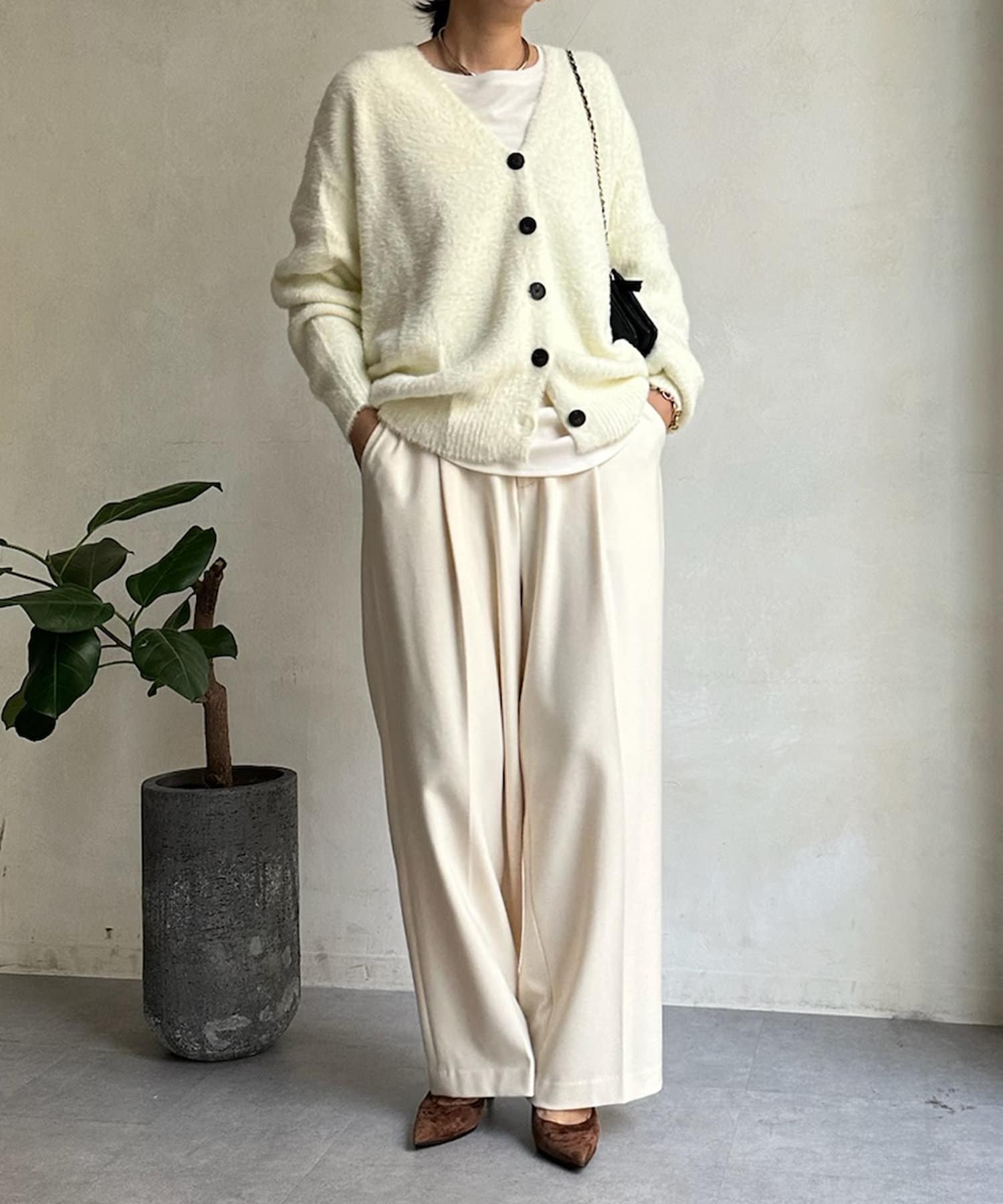 Vネックがすっきり感をプラスしてくれているので、重たくなりすぎず