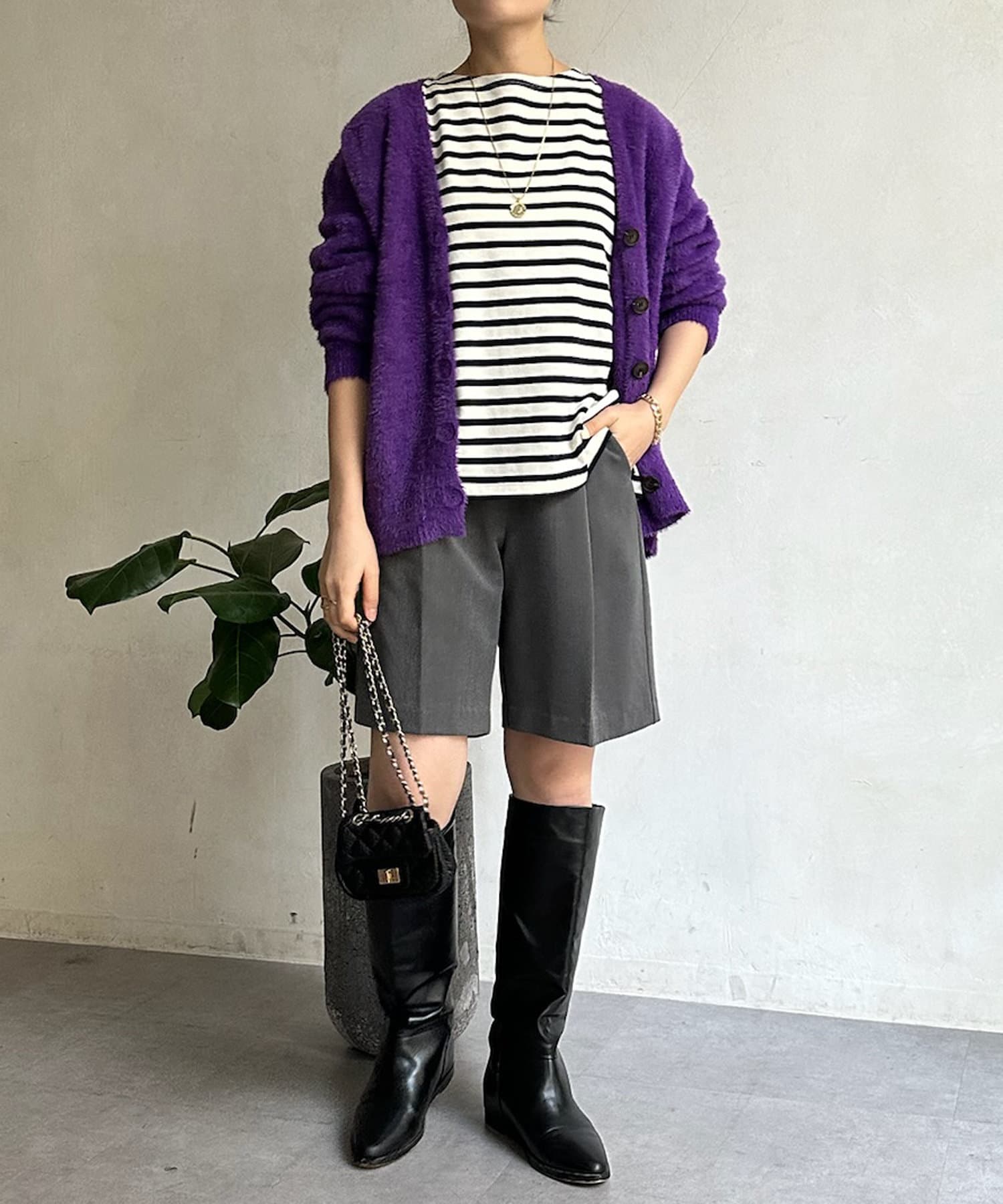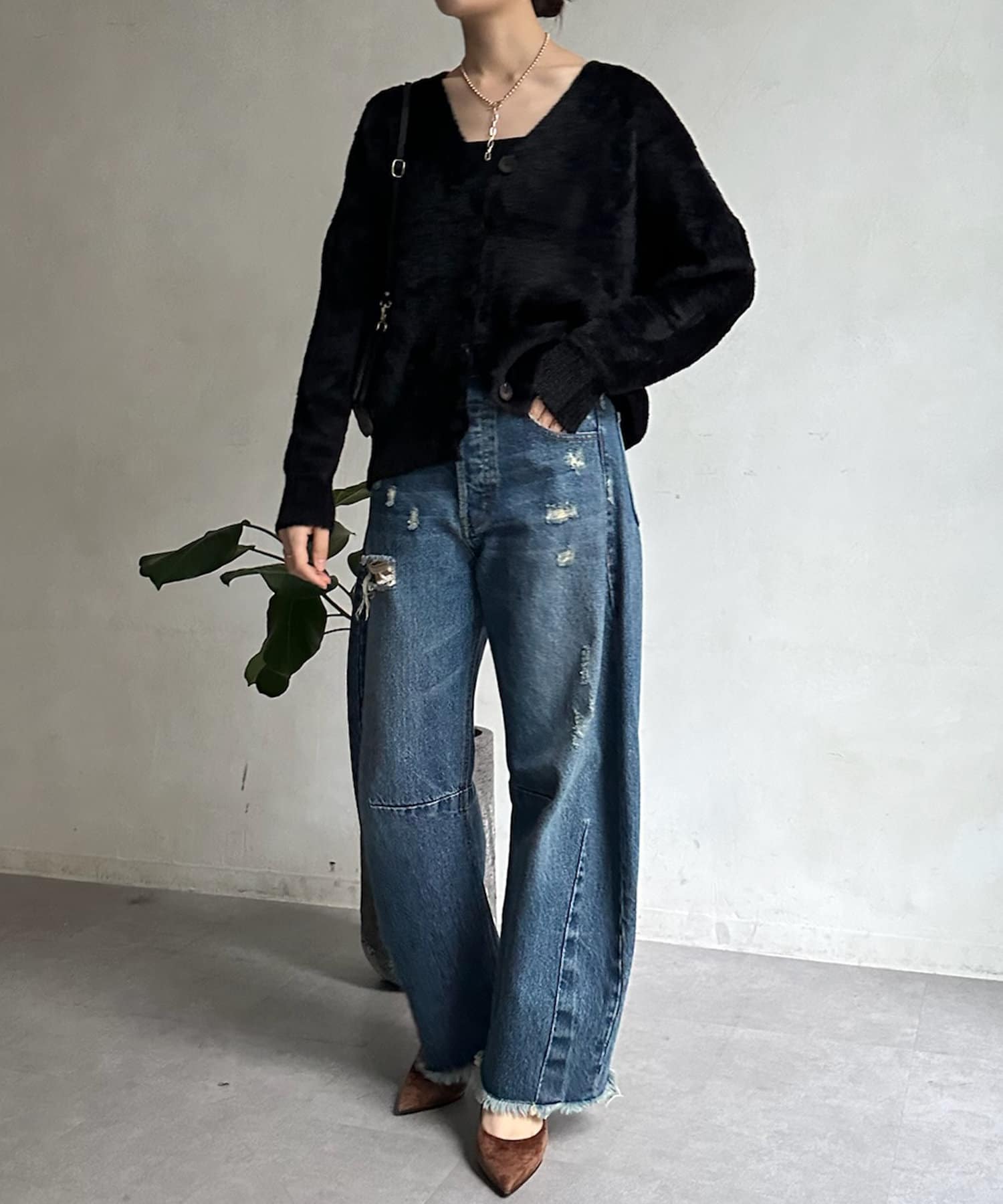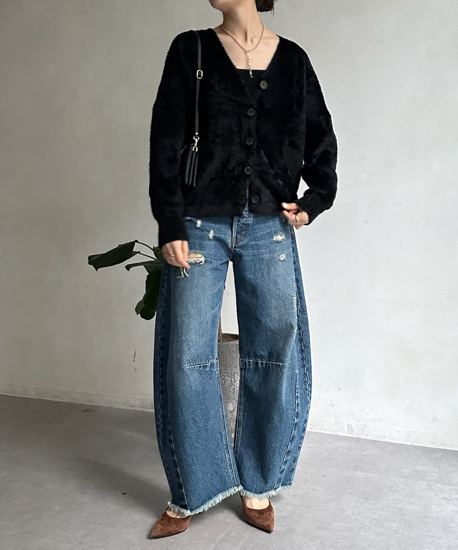 Vネックがすっきり感をプラスしてくれているので、重たくなりすぎず