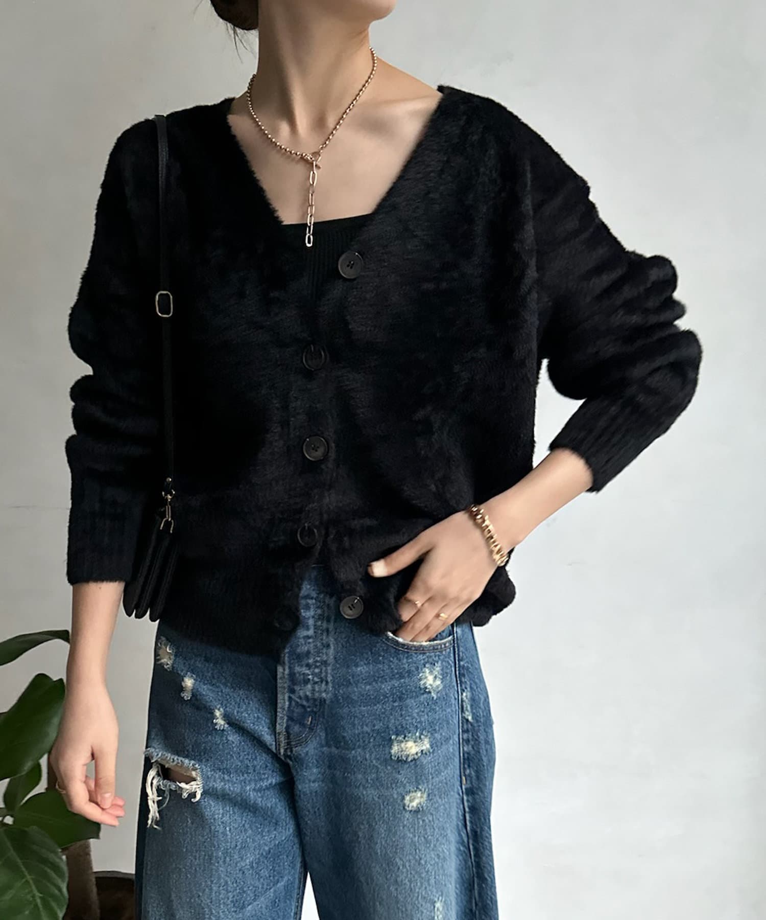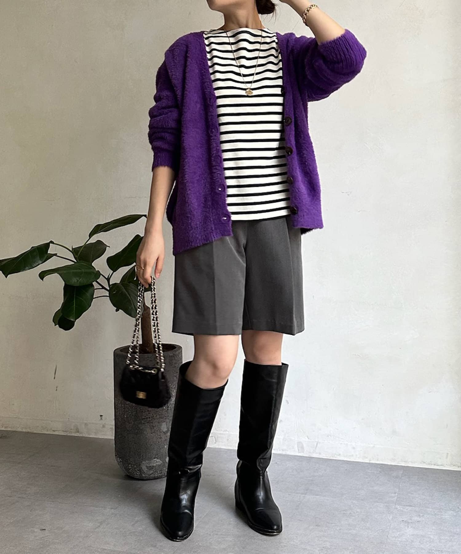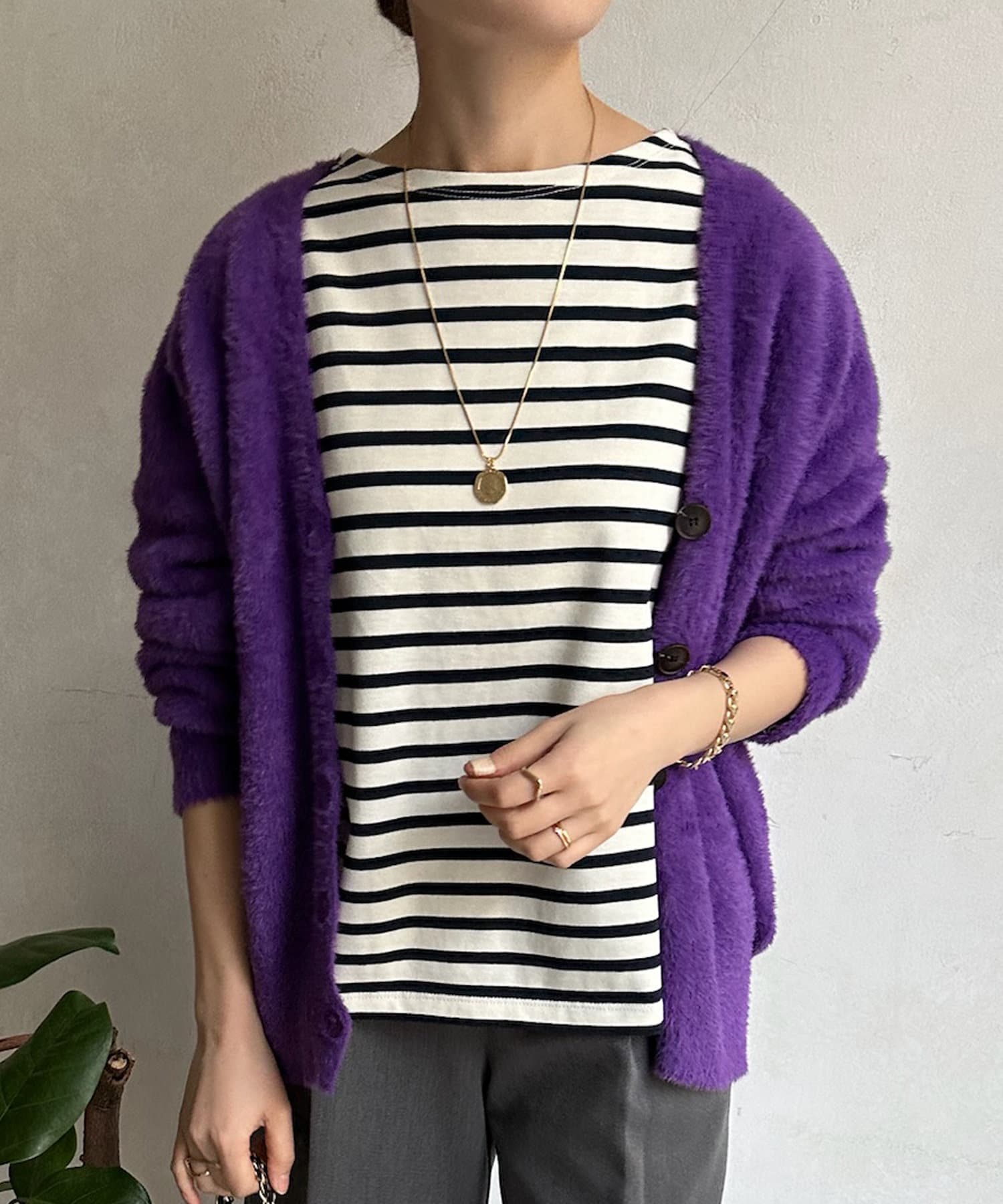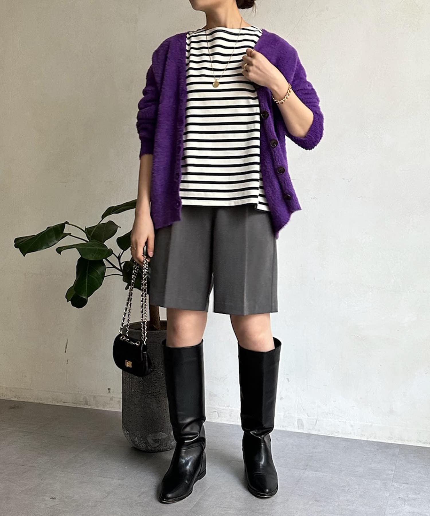 Vネックがすっきり感をプラスしてくれているので、重たくなりすぎず