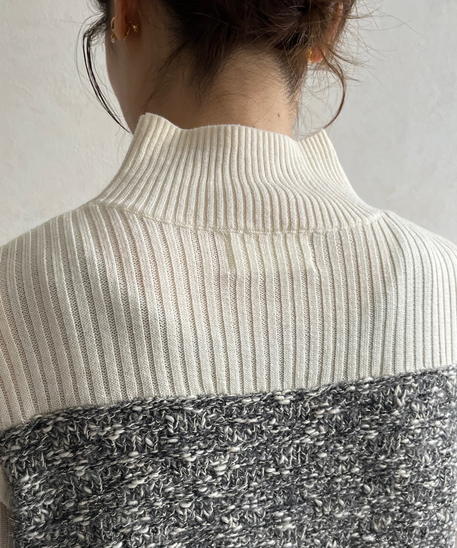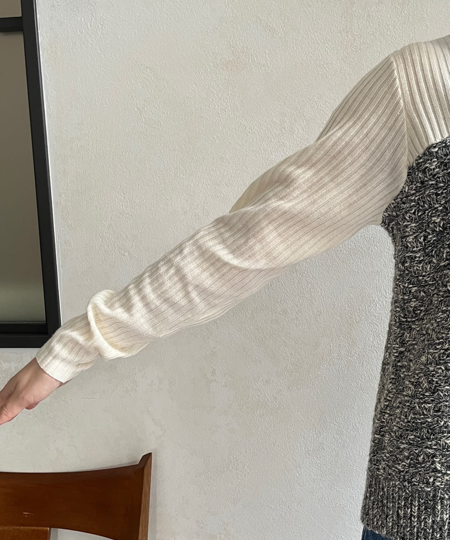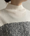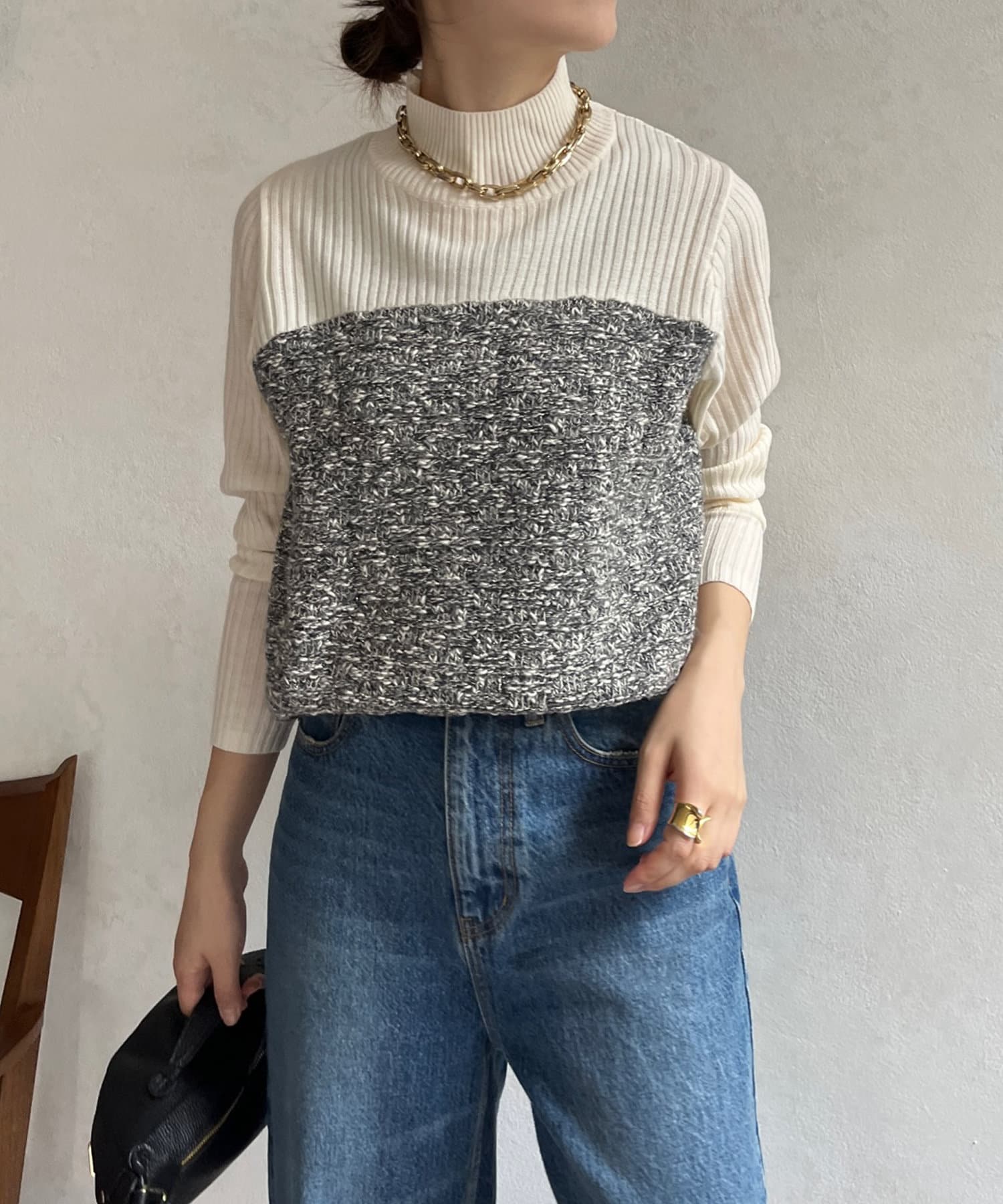 ビスチェをレイヤードしているようなドッキングデザインのニット。