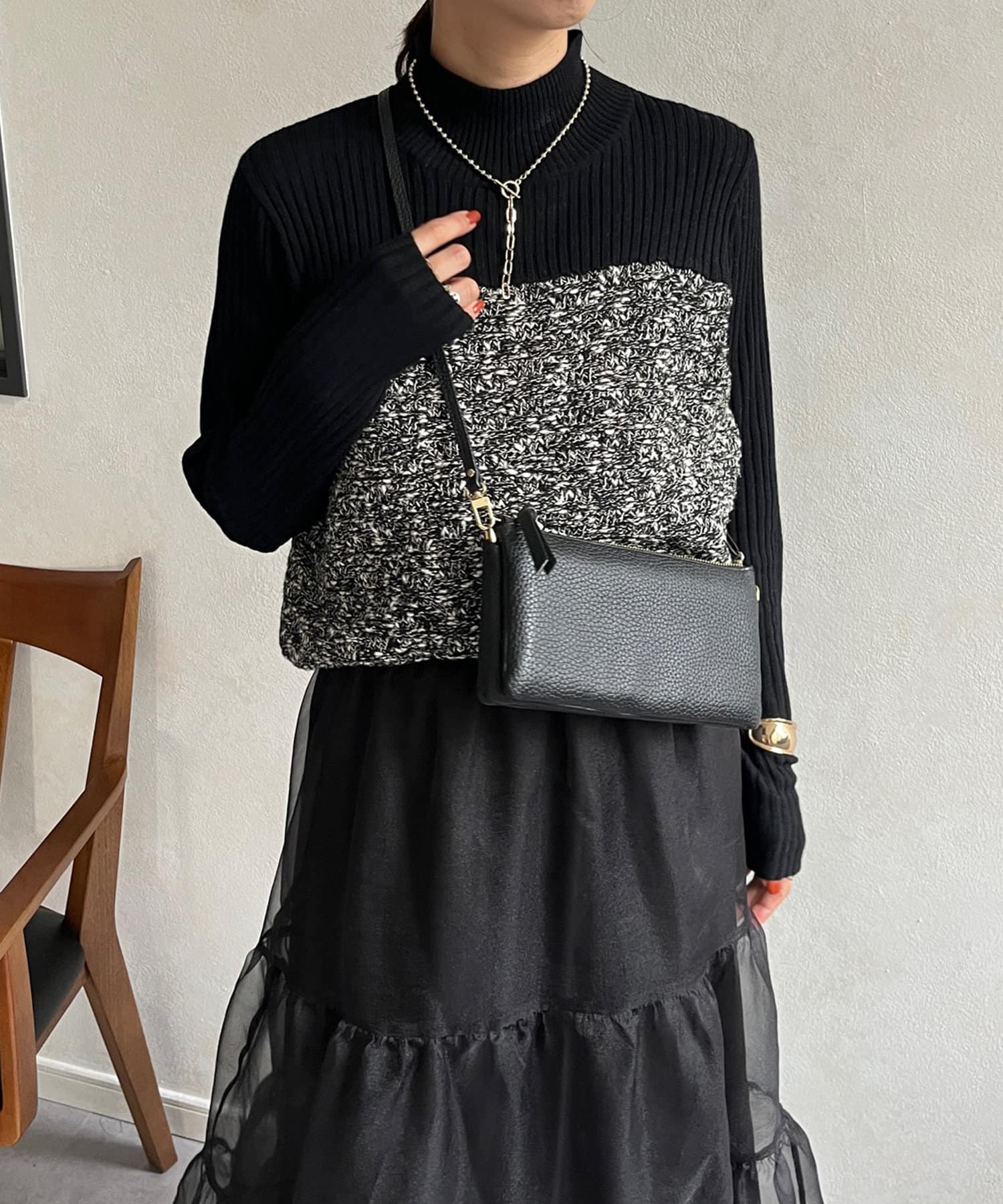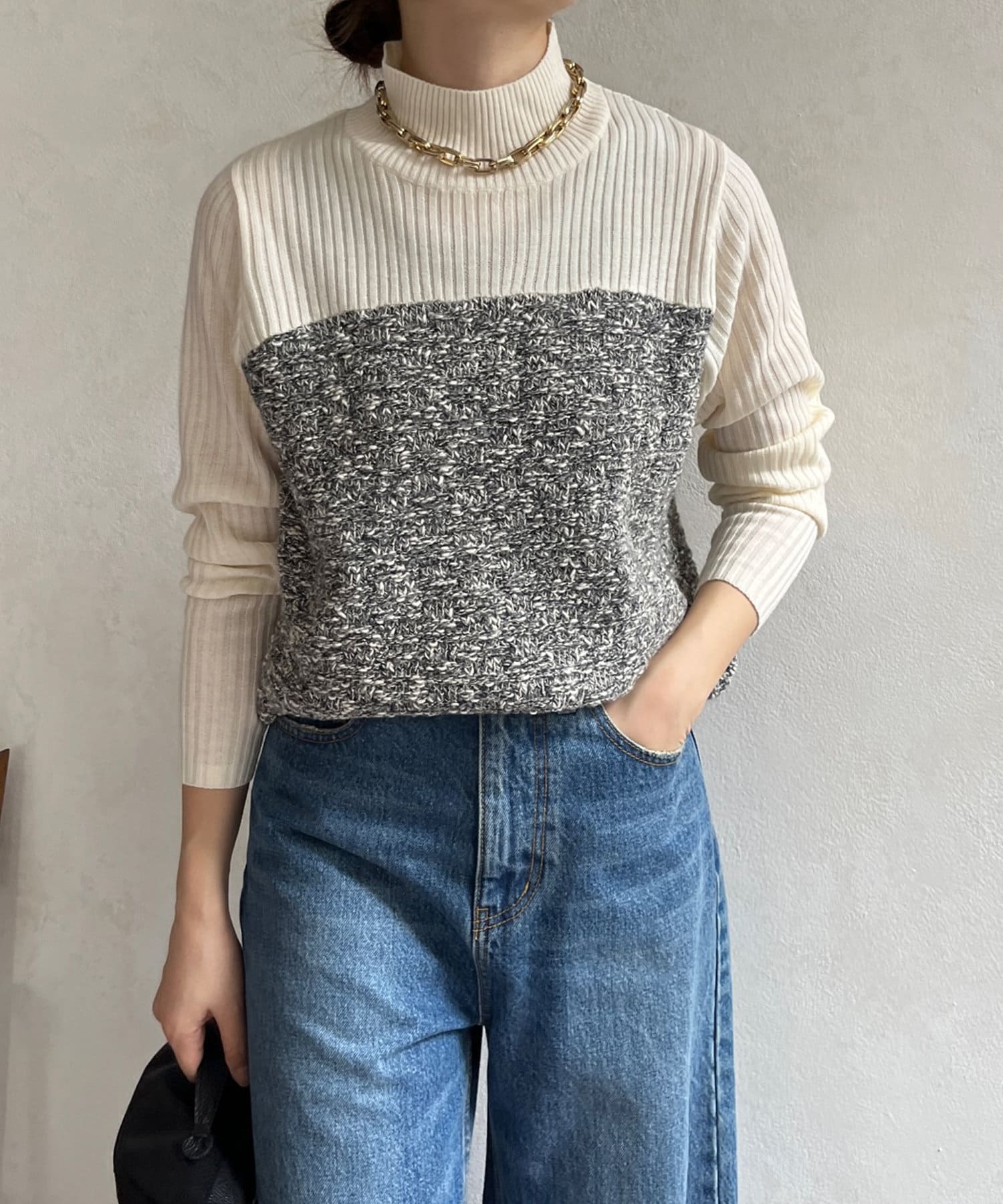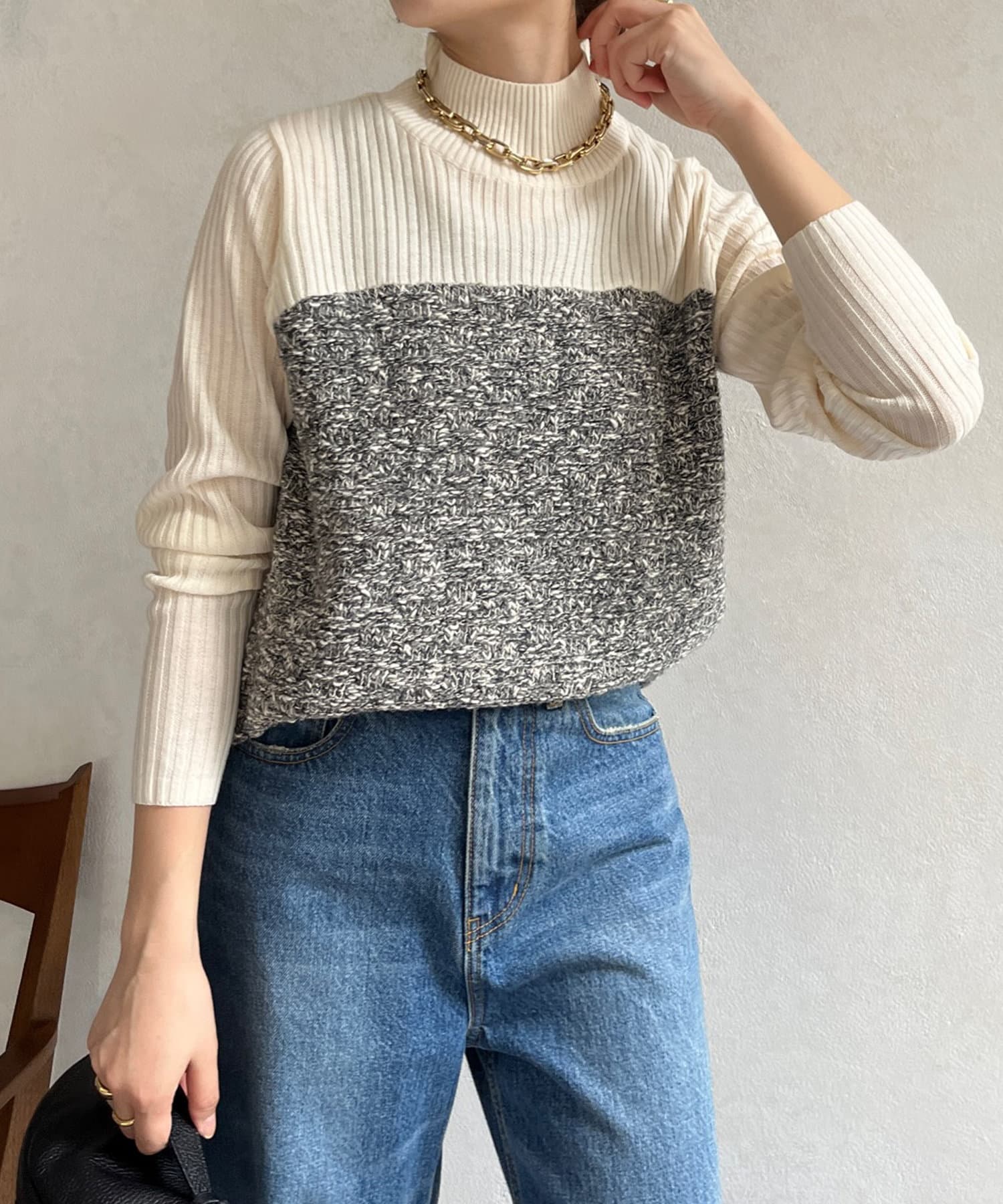 ビスチェをレイヤードしているようなドッキングデザインのニット。