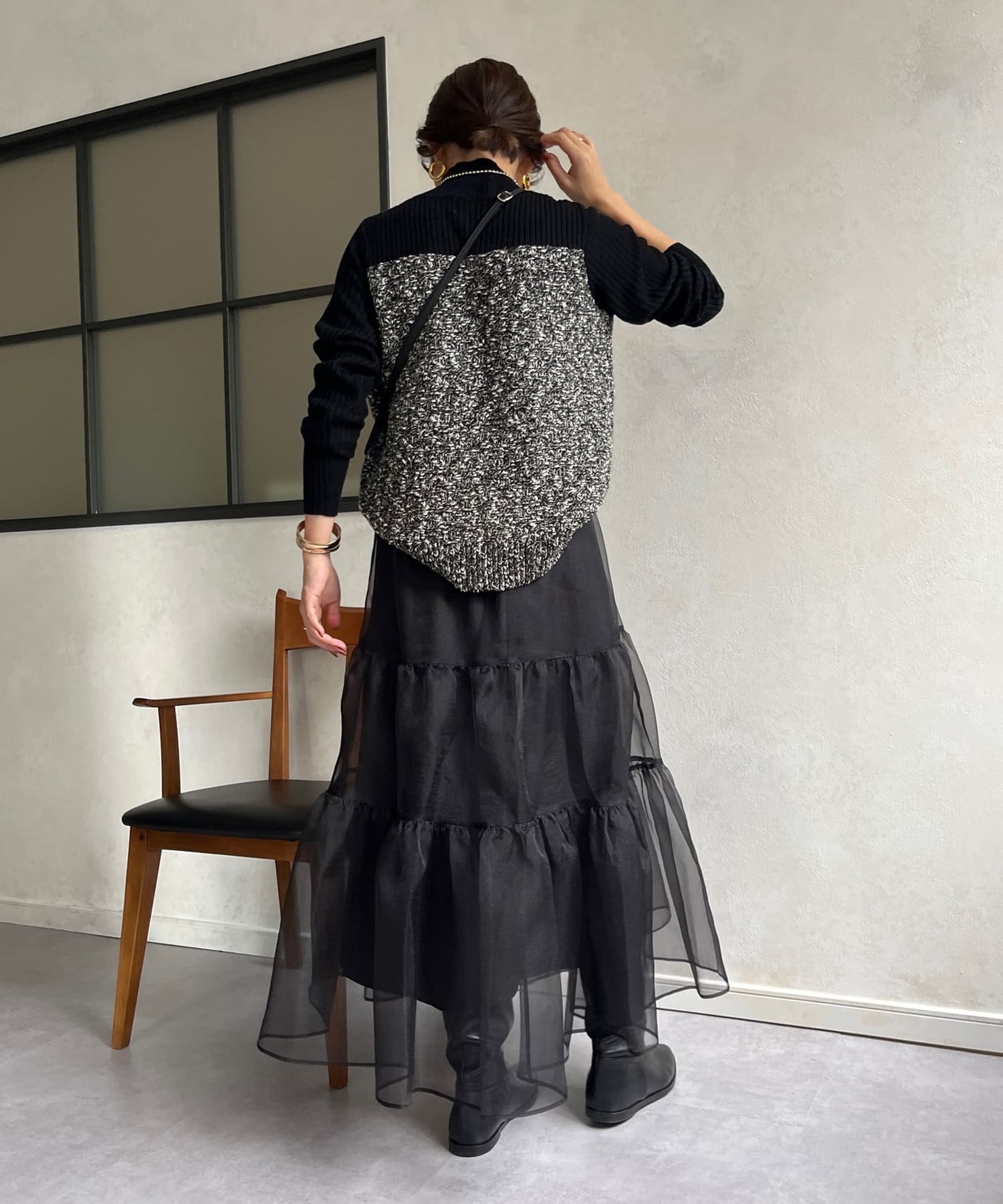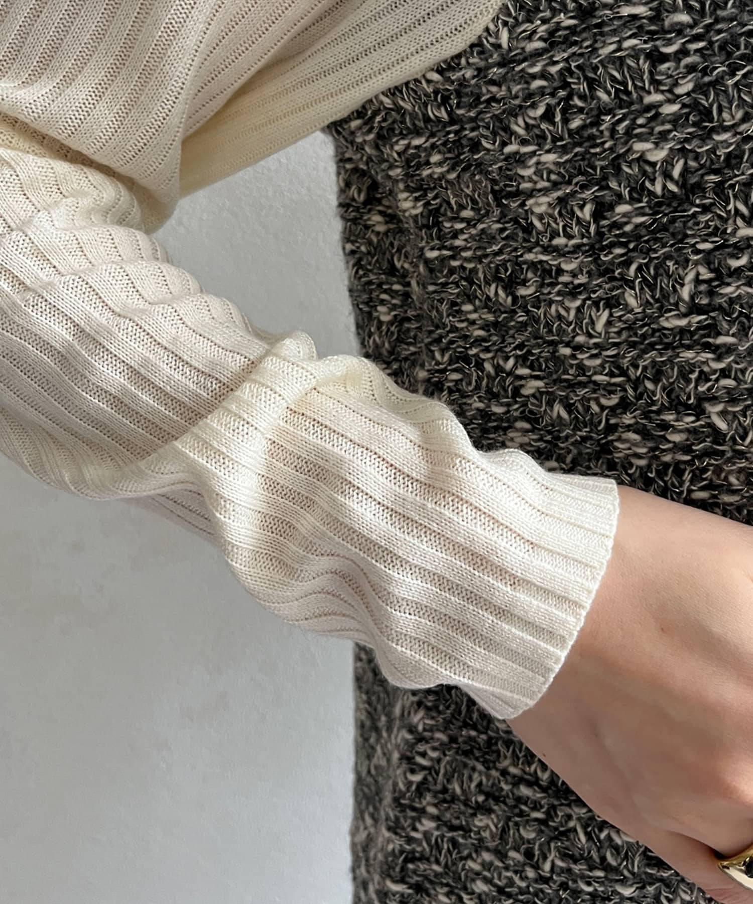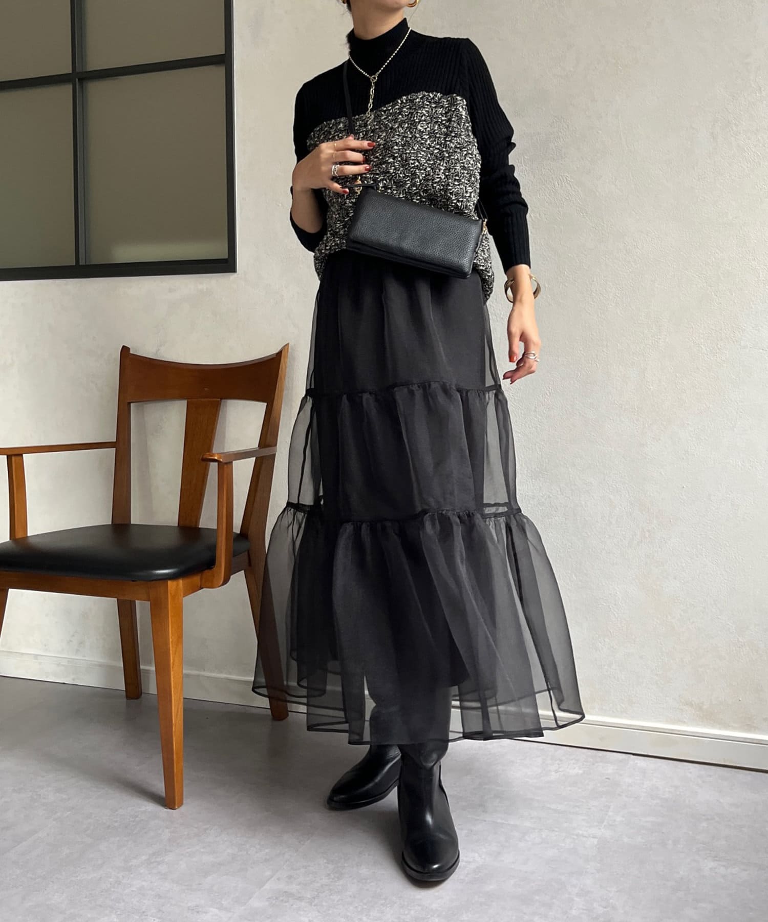 1枚で完結してくれるので、レイヤードが苦手な方にも合わせていただきやすいアイテム!