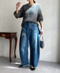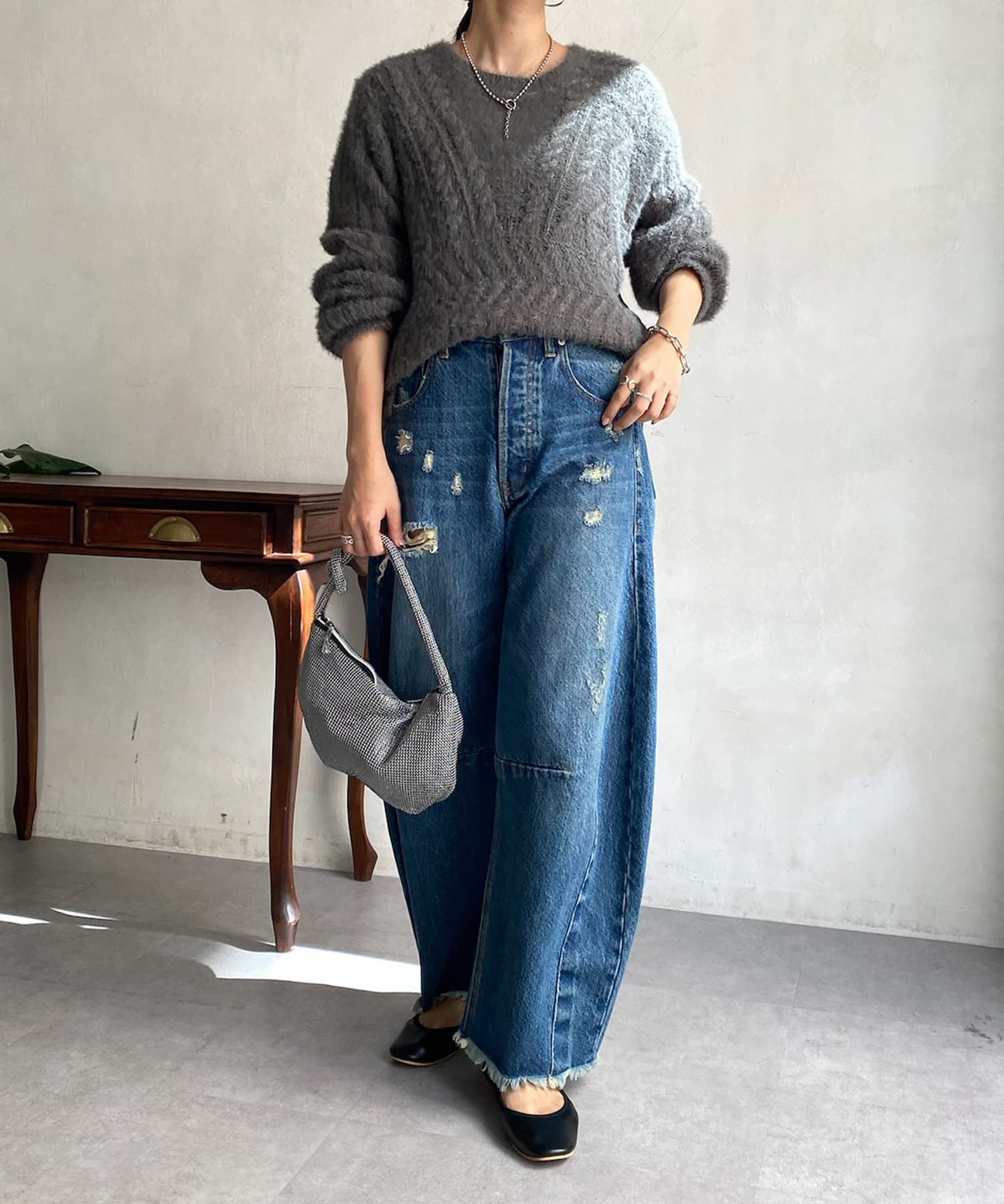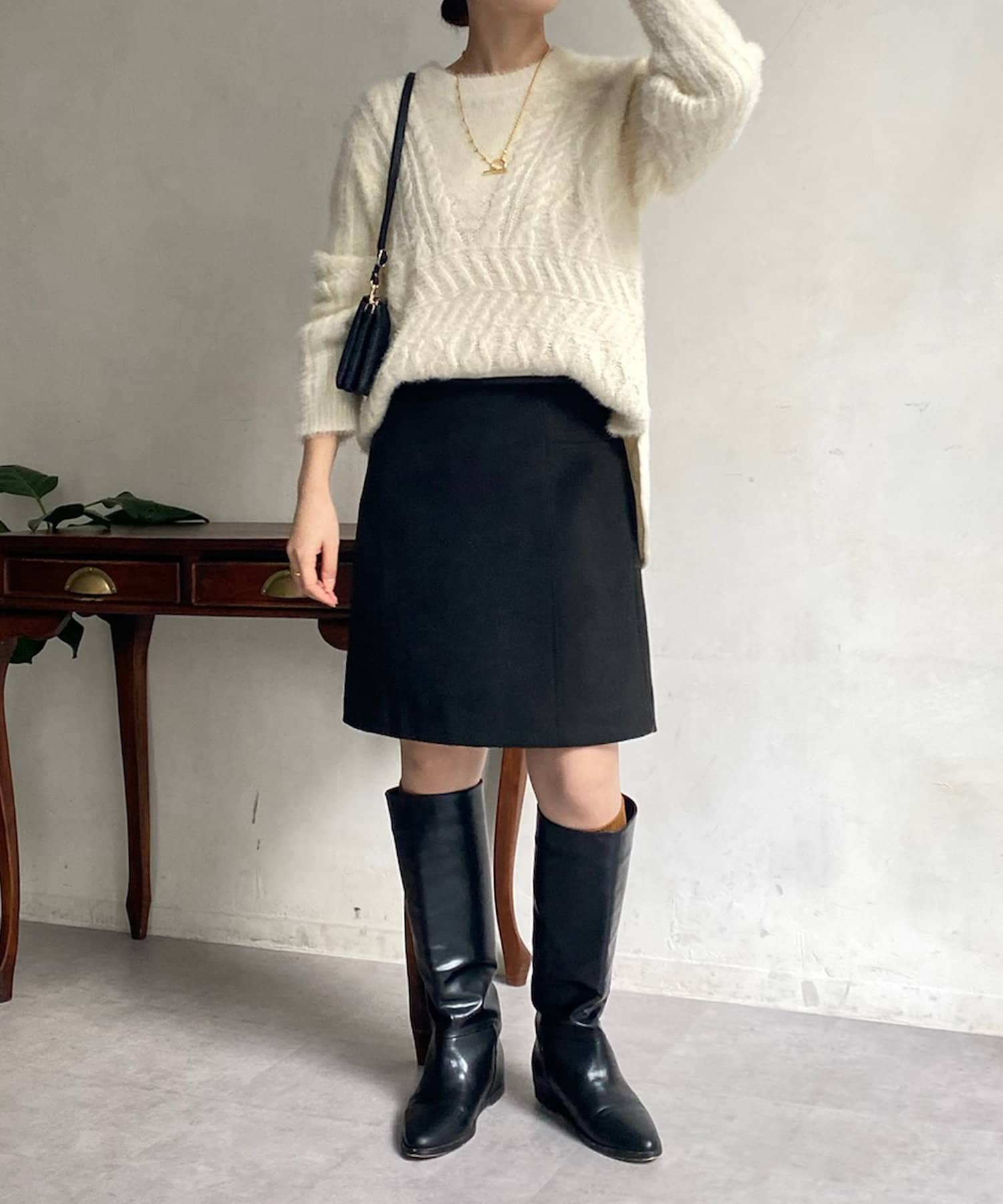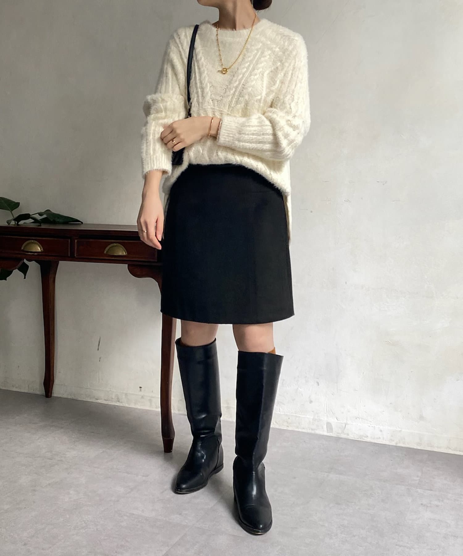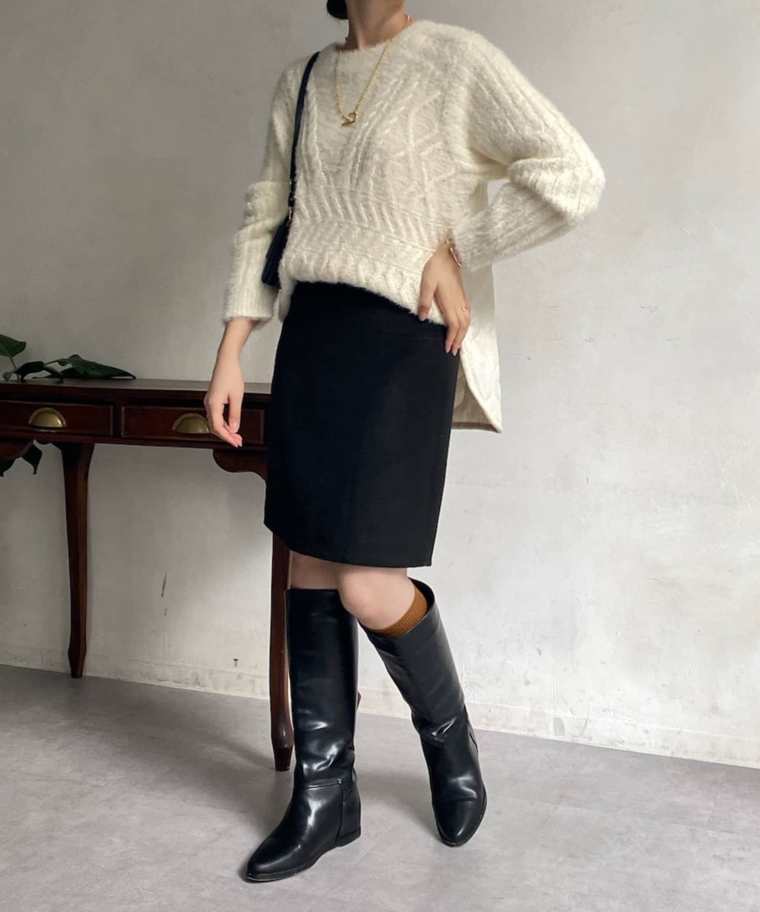 フロントは毛足感のある素材がかわいいニット。バックはキルティングの切り替えたデザインが魅力の1着。