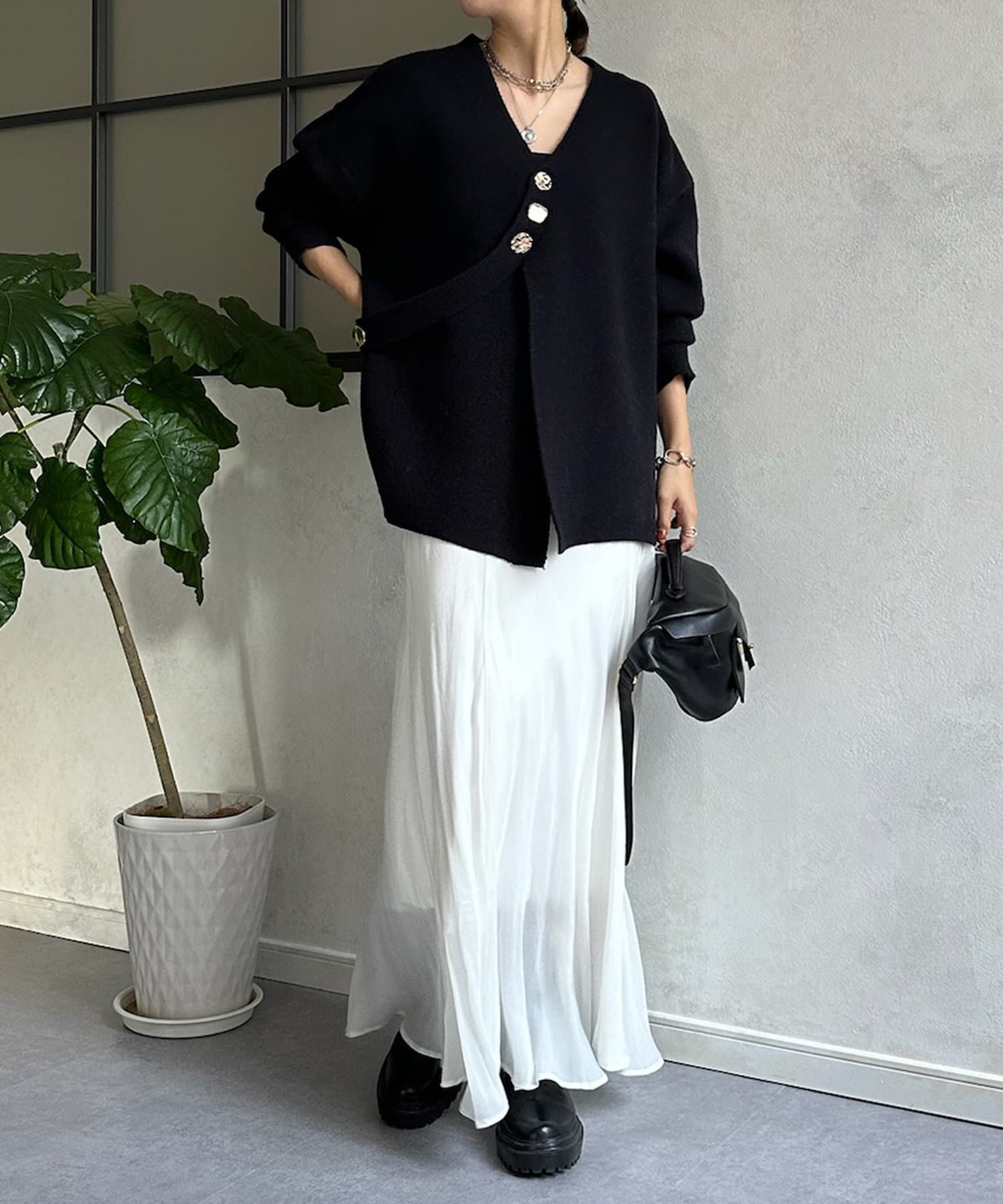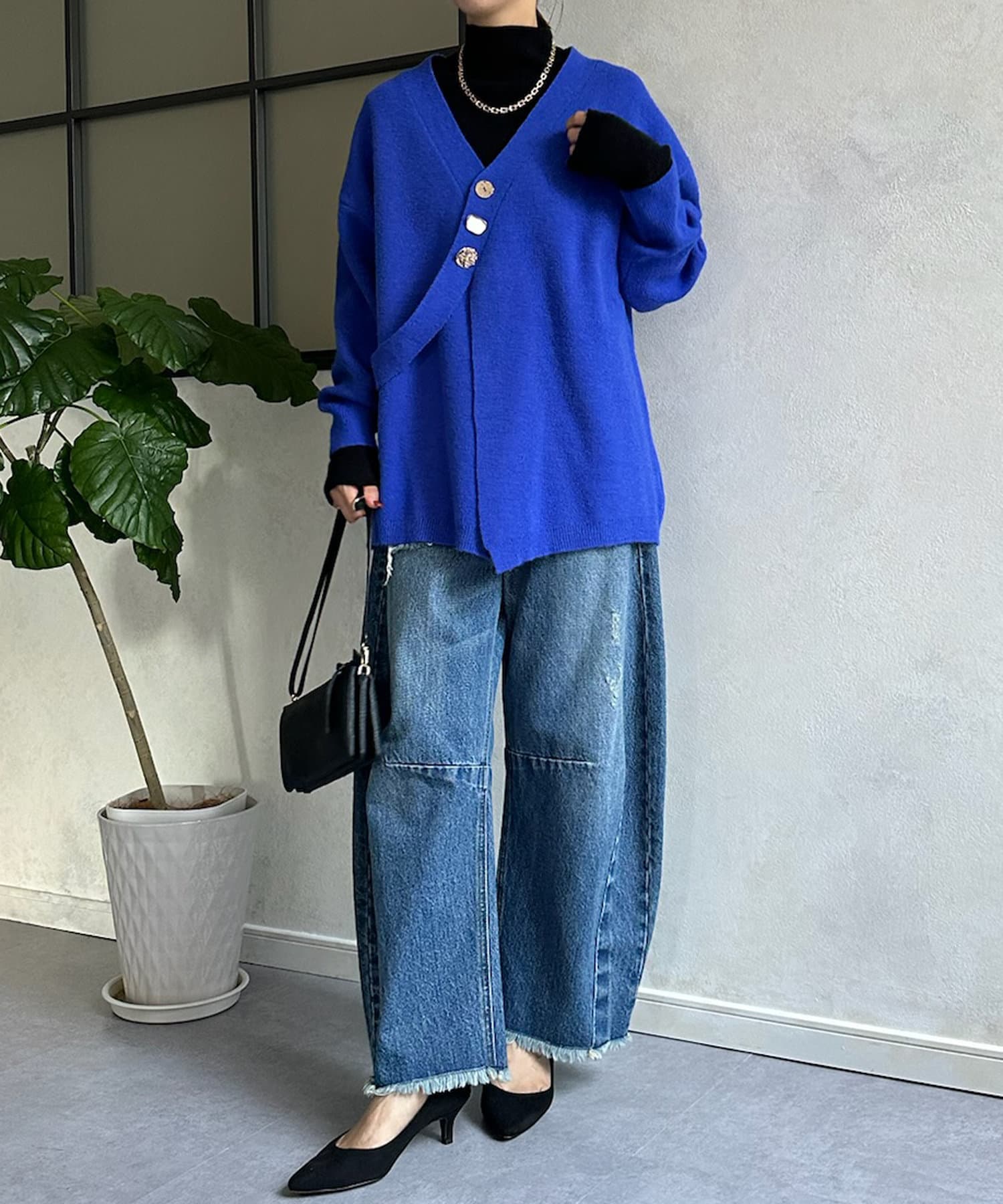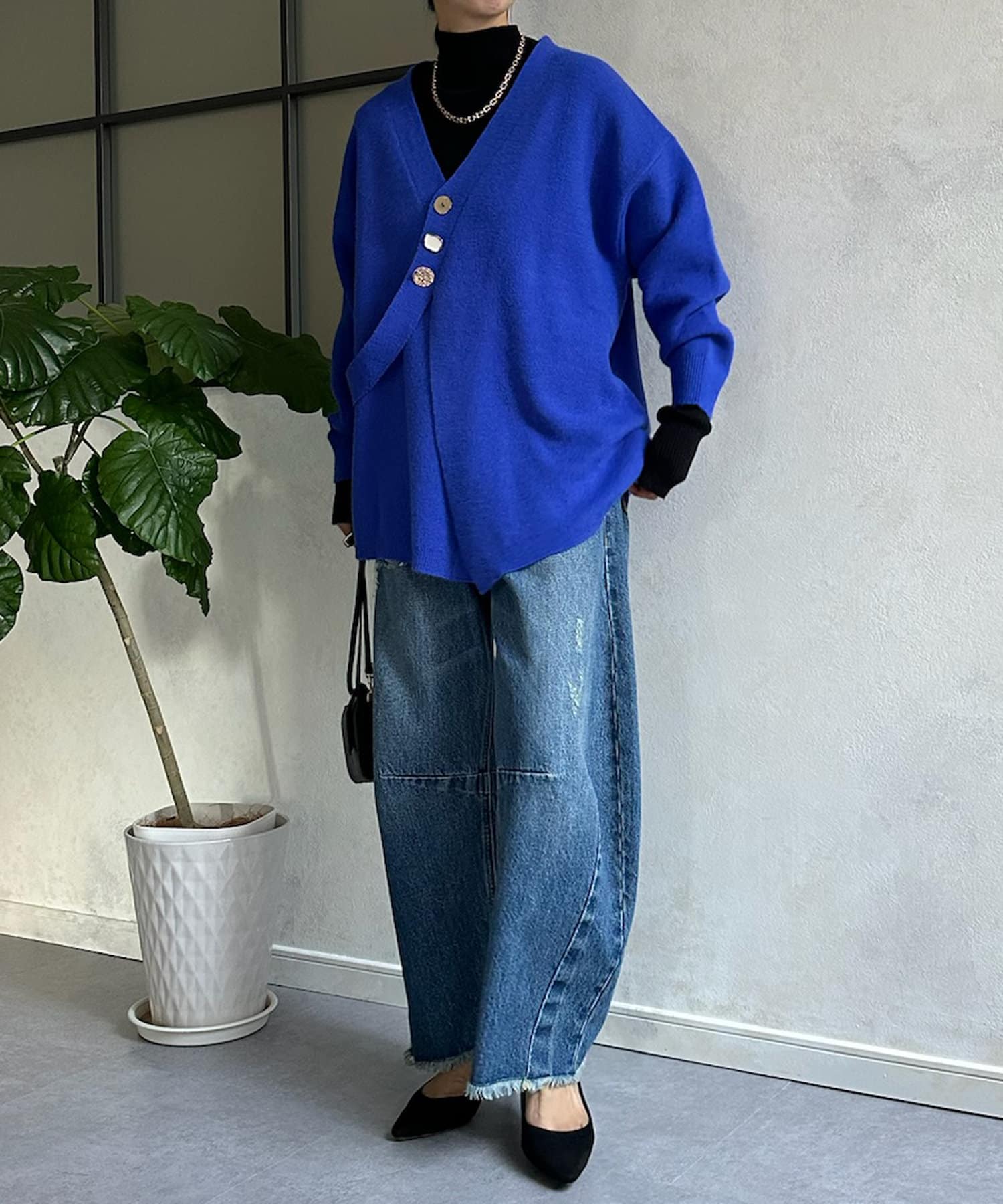 冬にはアウターの下に着て、ボタンをチラ見せするのもおすすめです◎