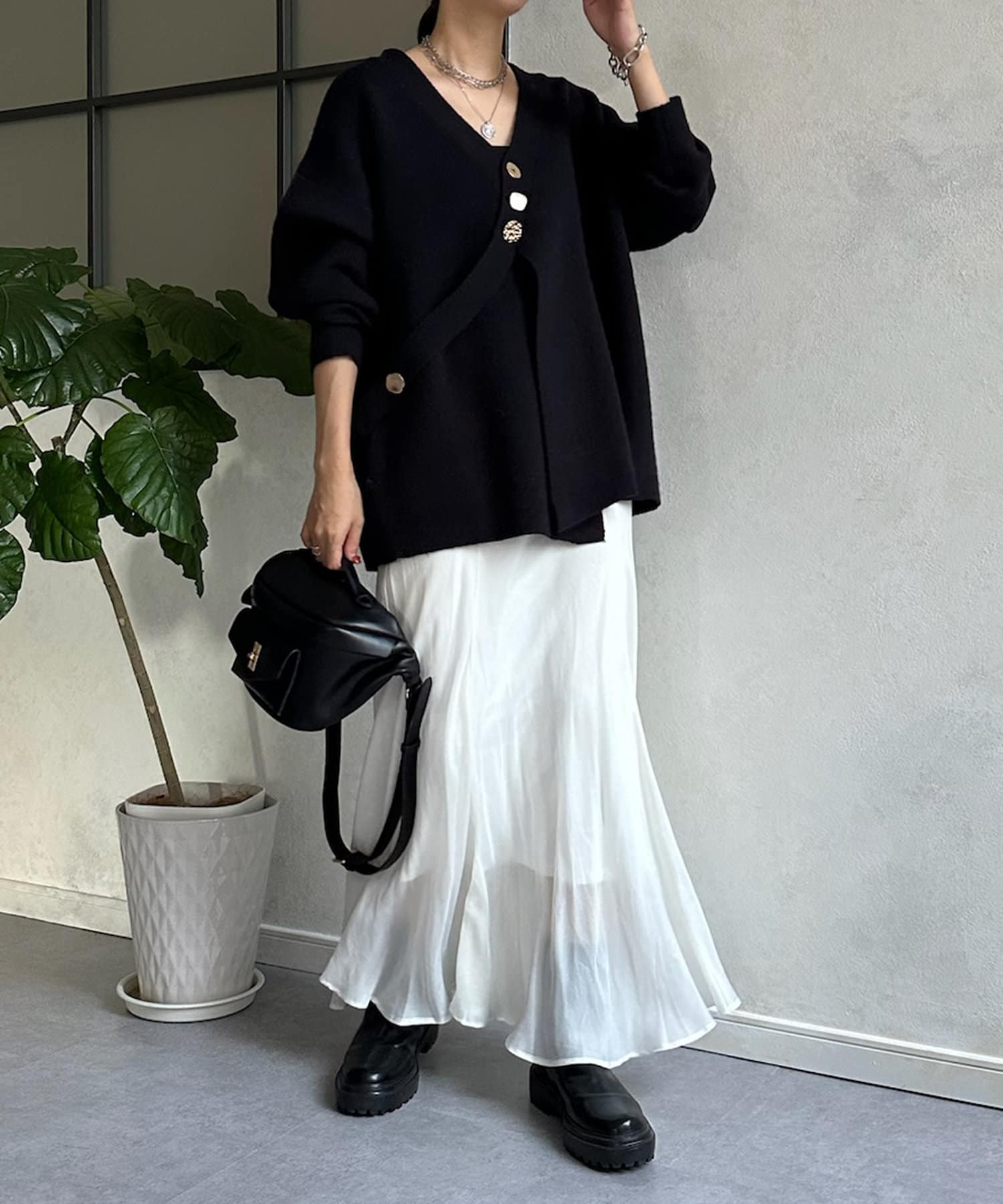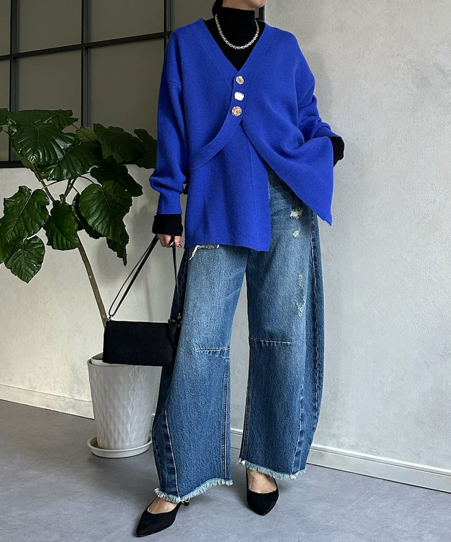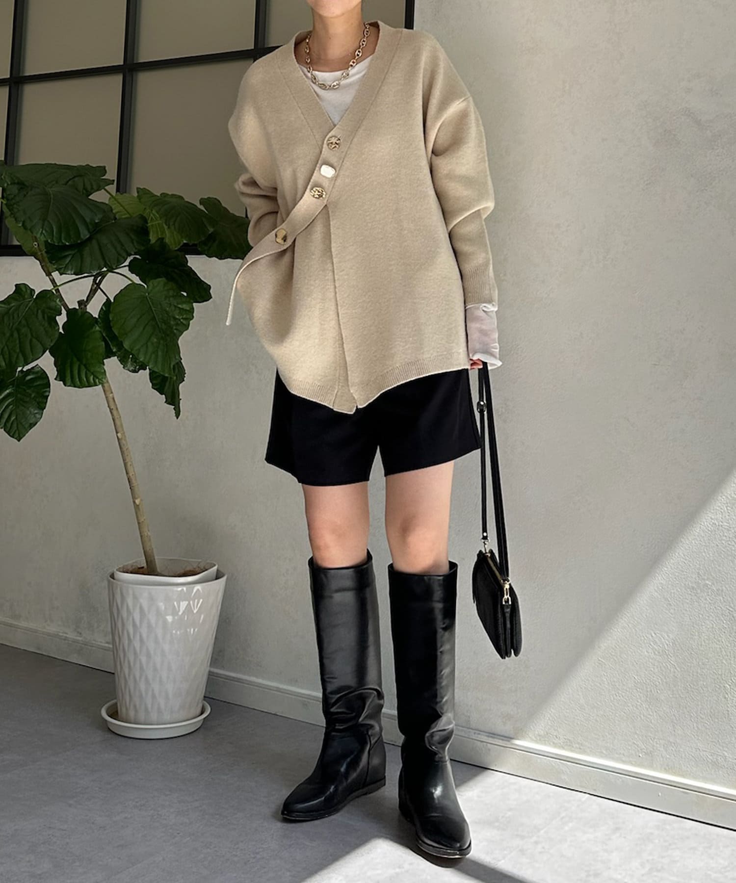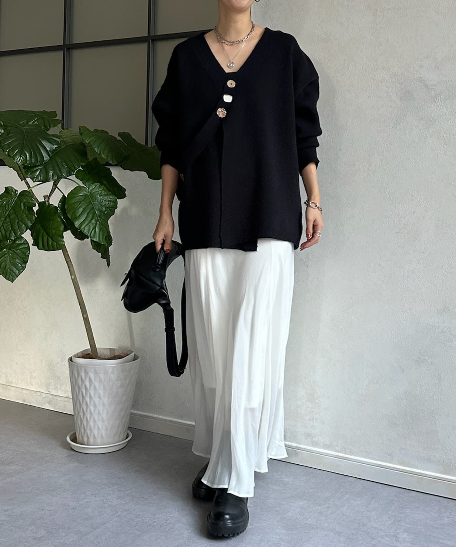 冬にはアウターの下に着て、ボタンをチラ見せするのもおすすめです◎
