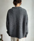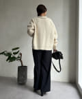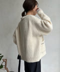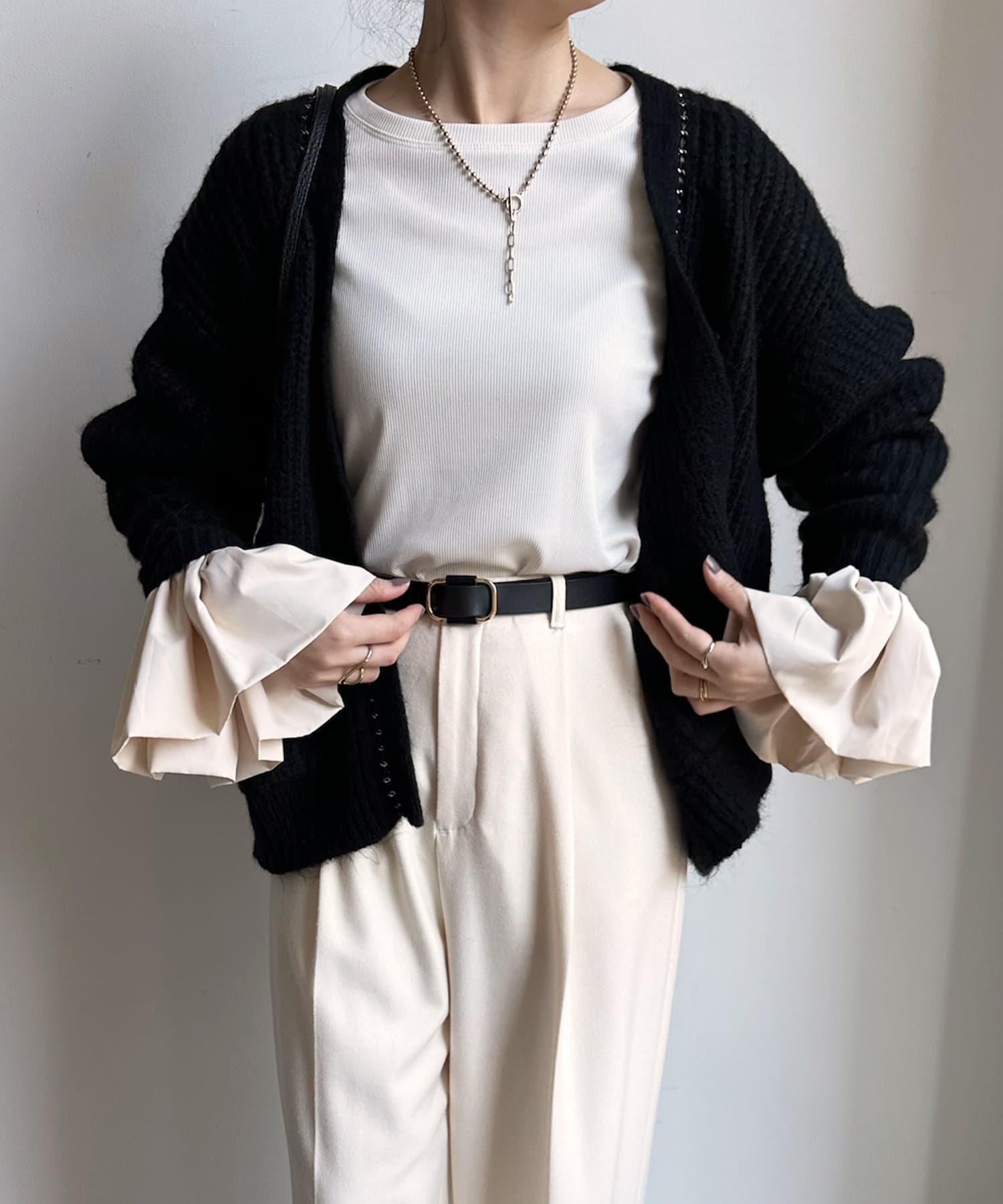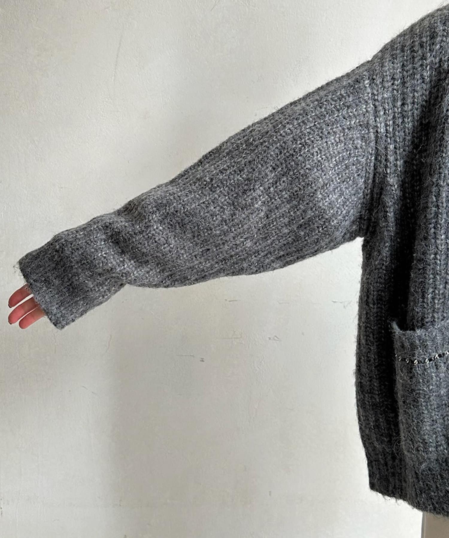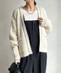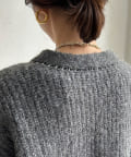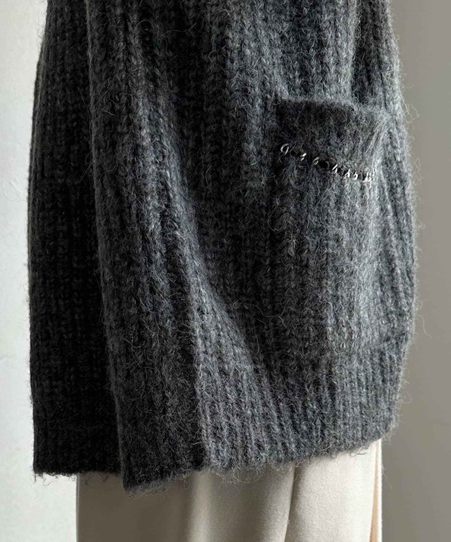 ウール混 チェーン×レザーニットカーディガン