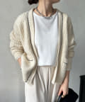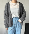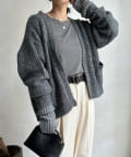 ぱっと目を惹き、カジュアルな畔編みカーディガンが女性らしい印象に。