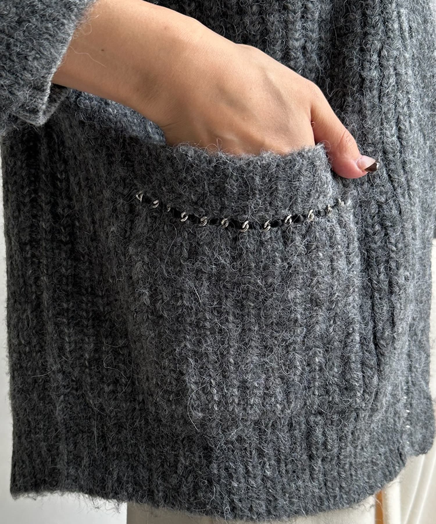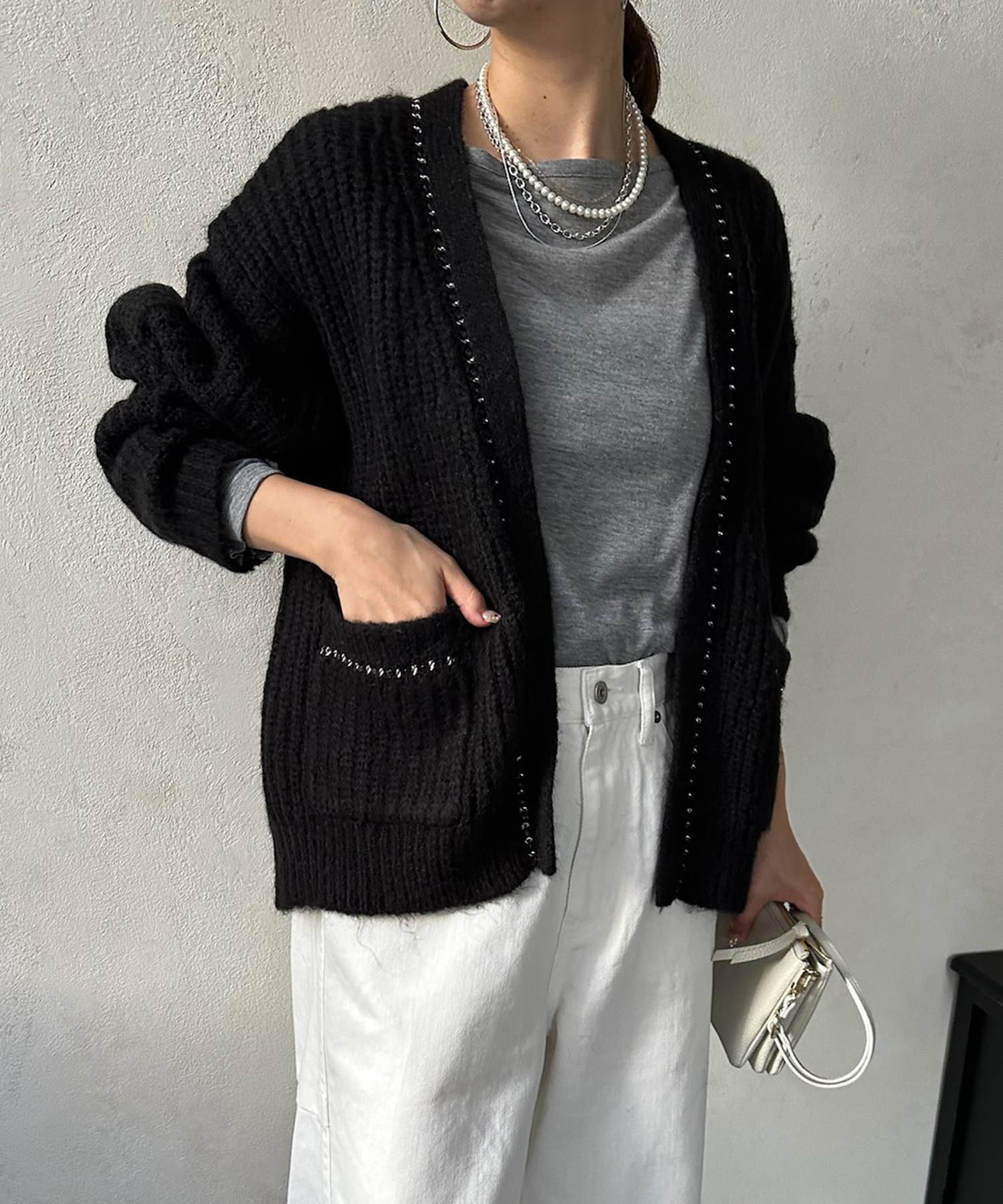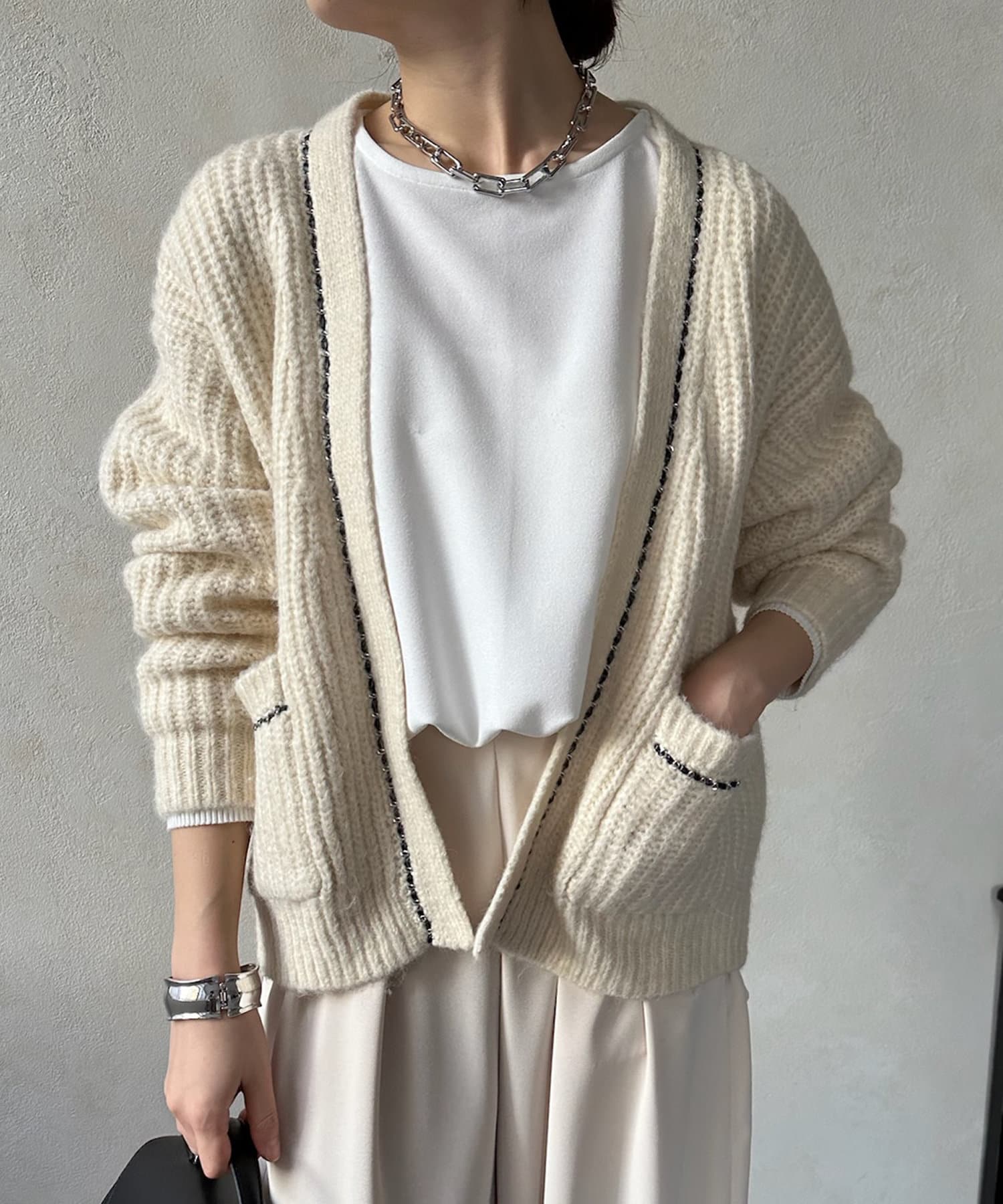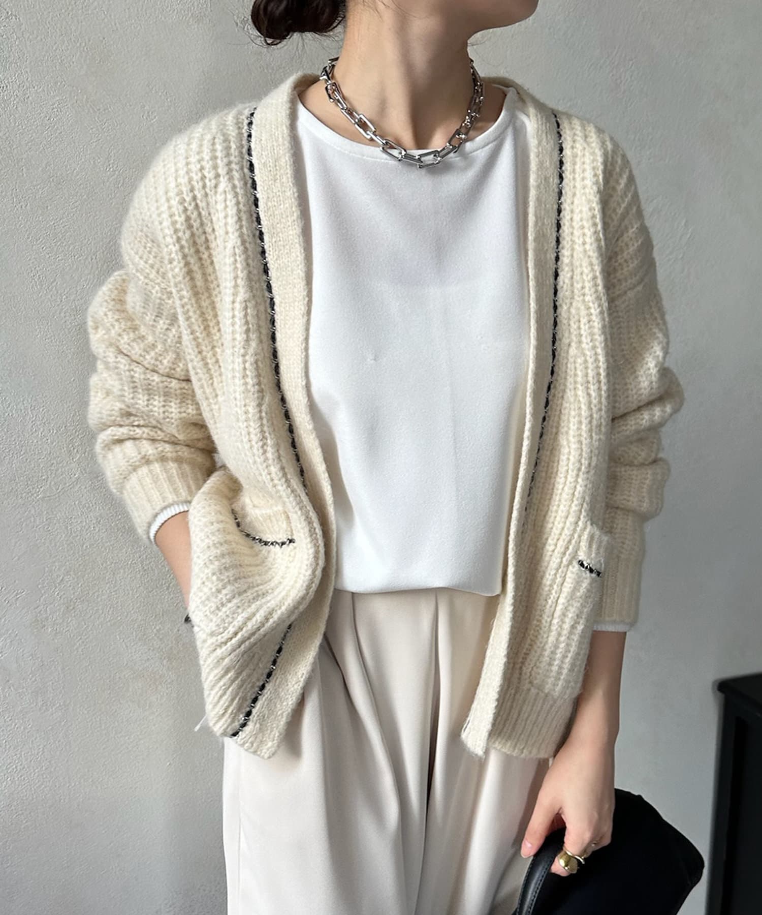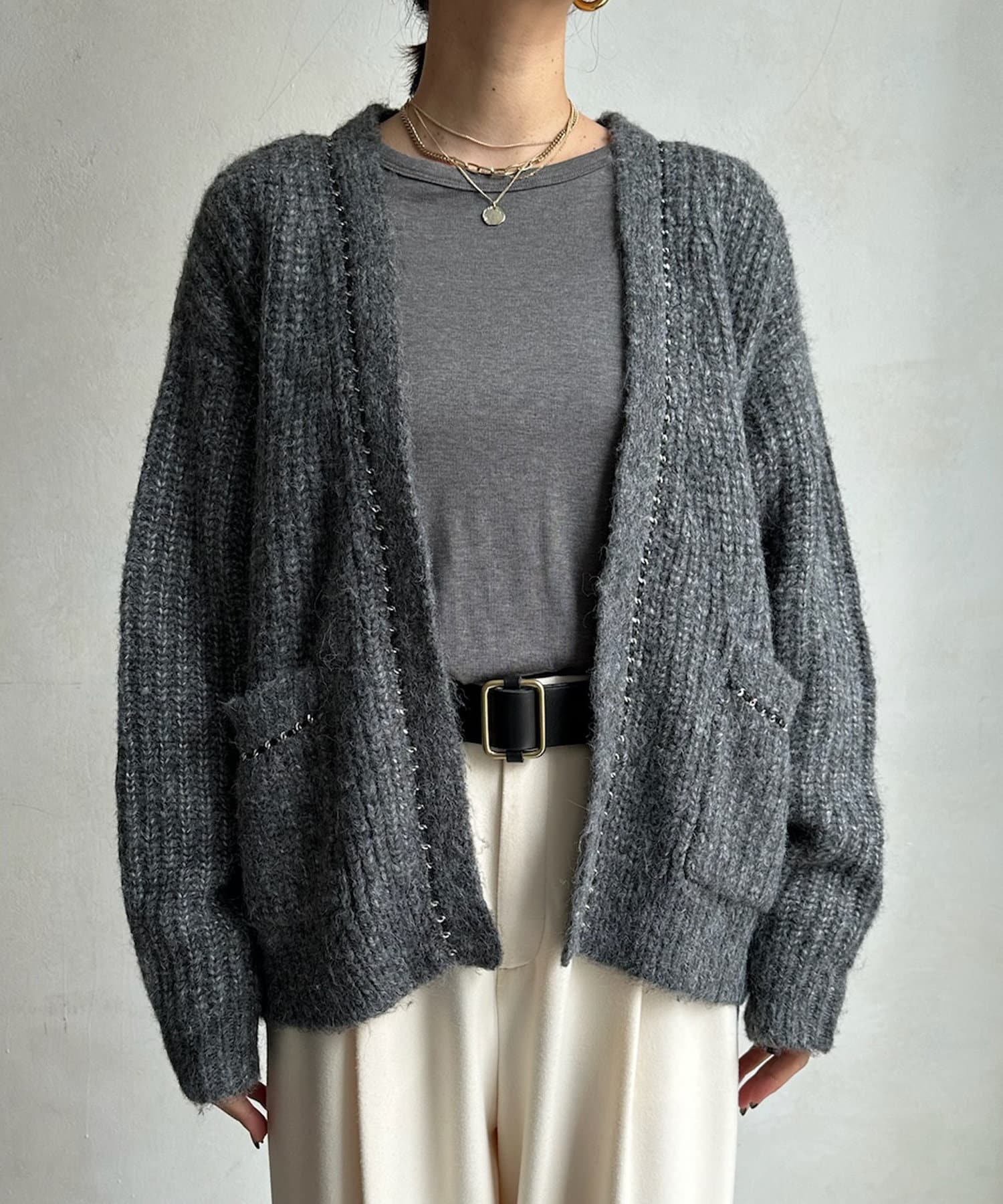 チェーンデザインが映えるニットカーディガン