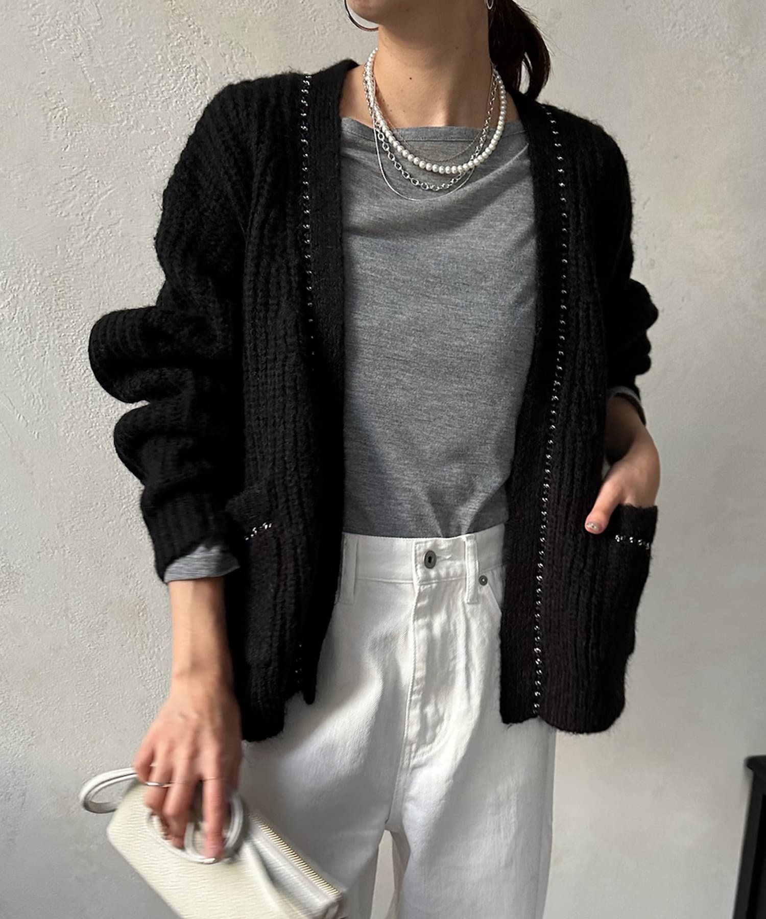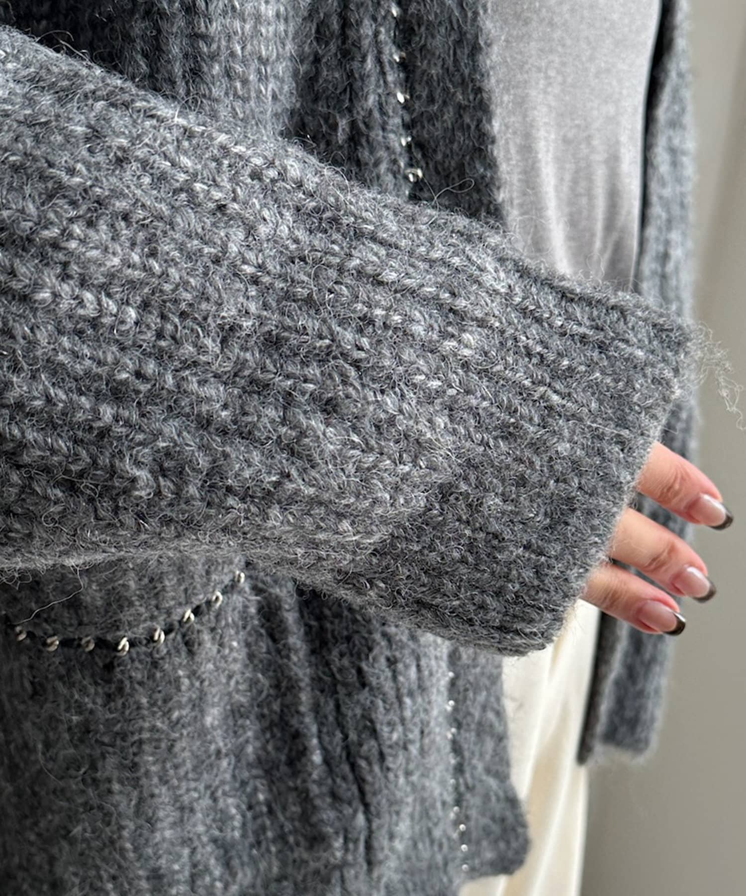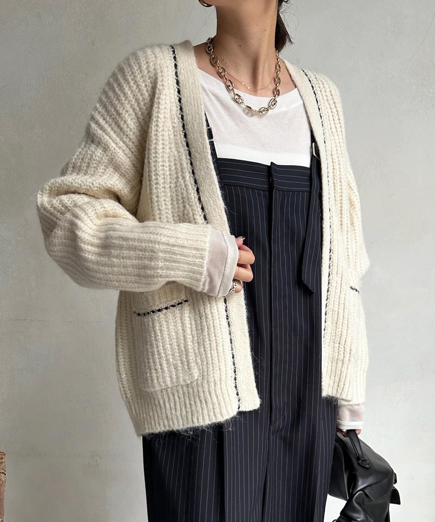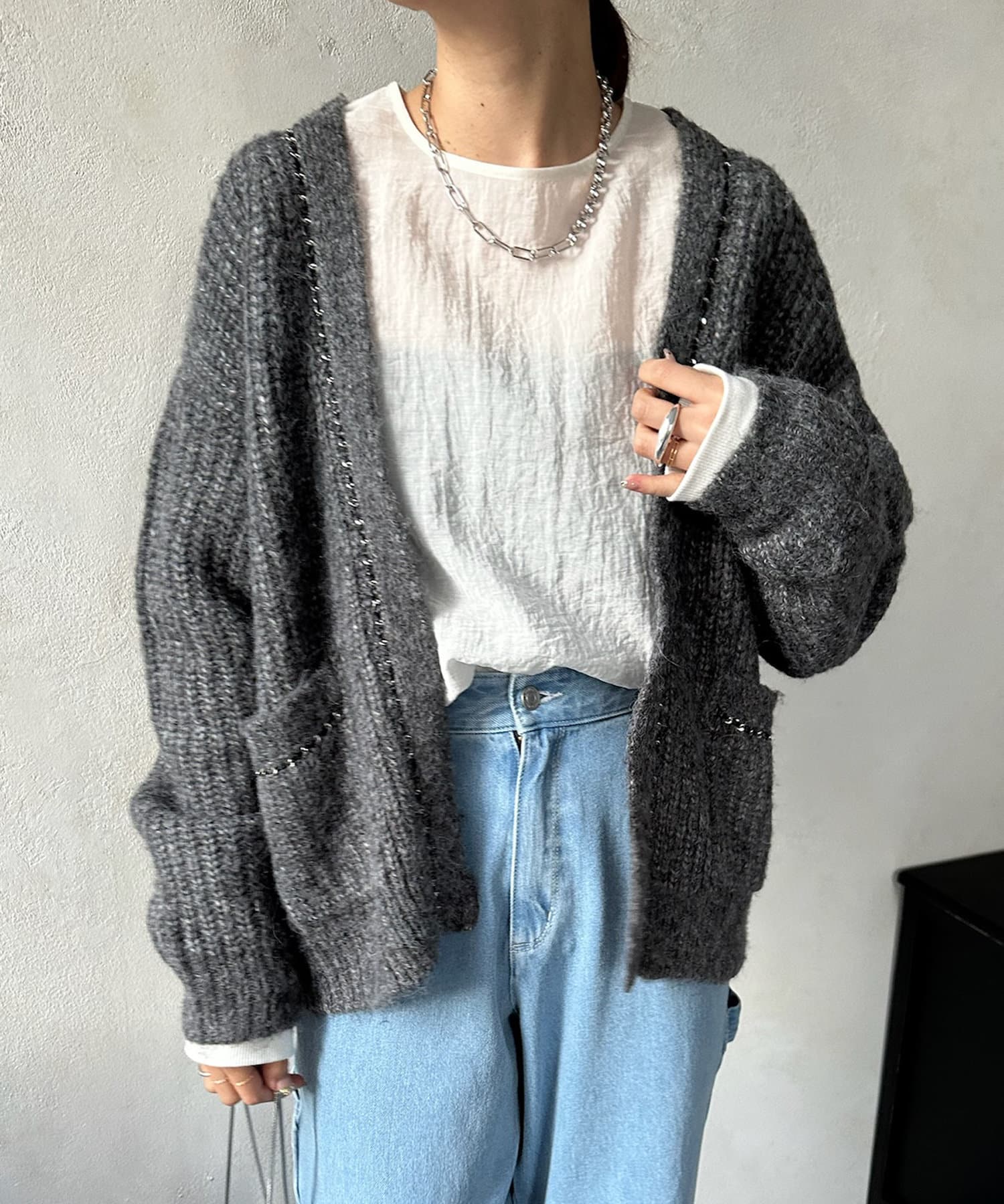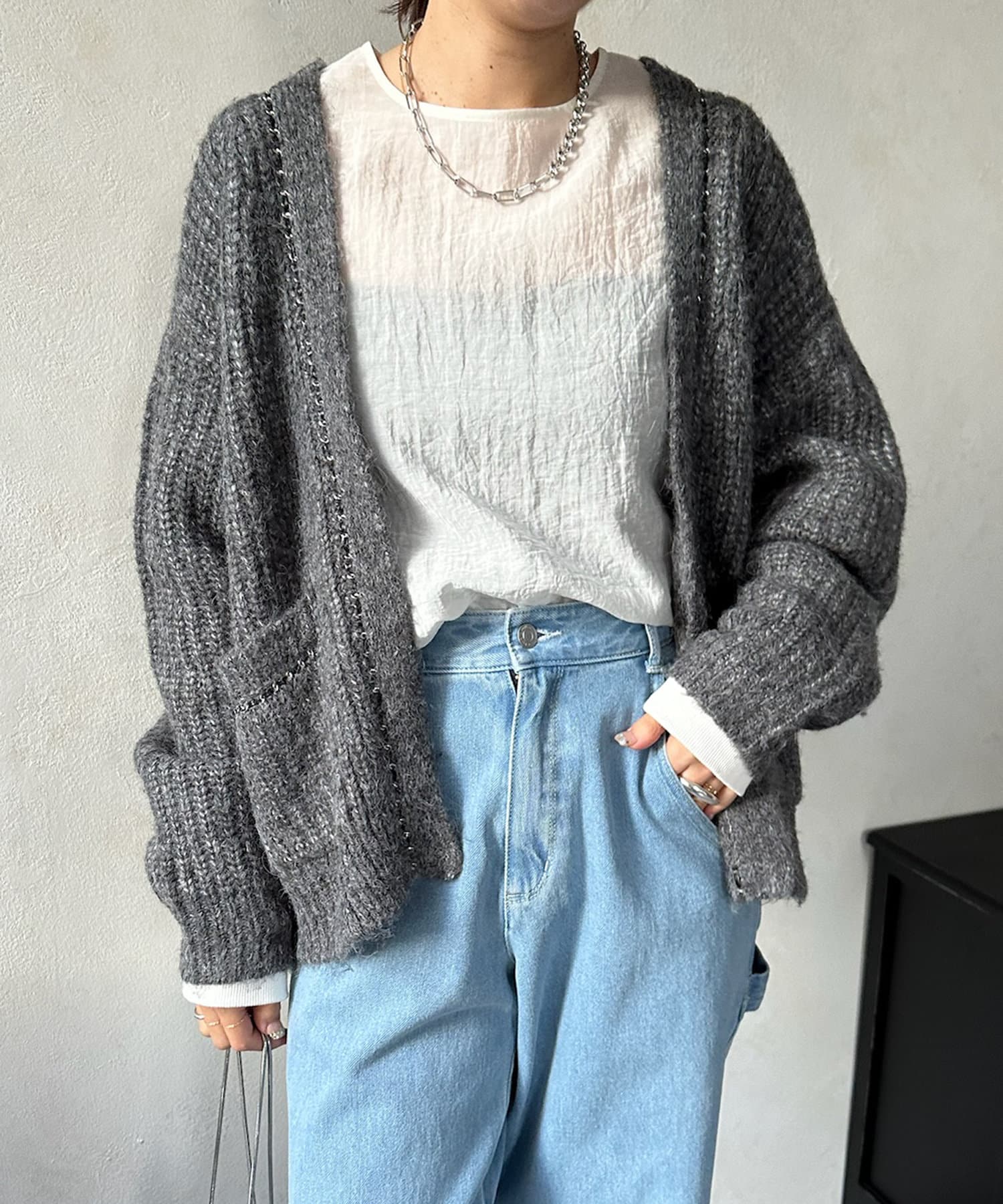 チェーンデザインが映えるニットカーディガン