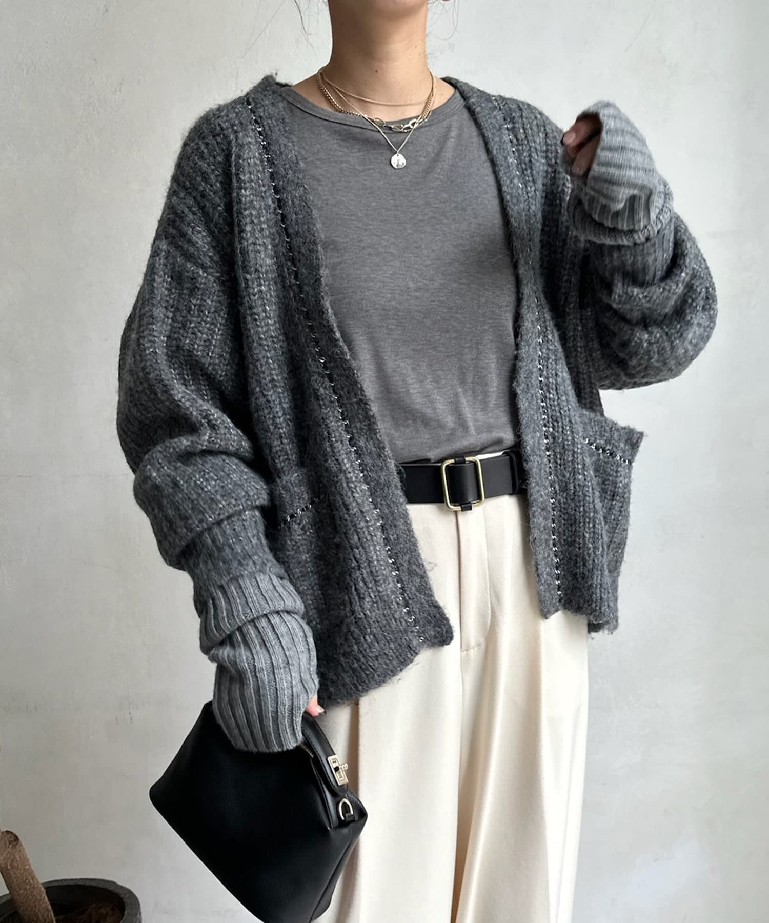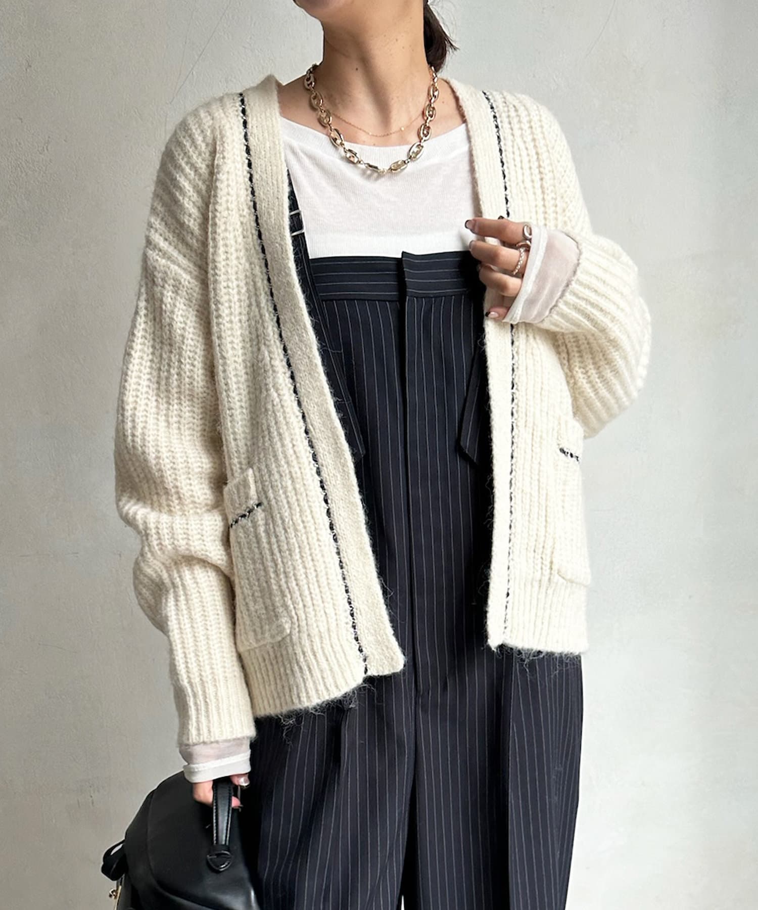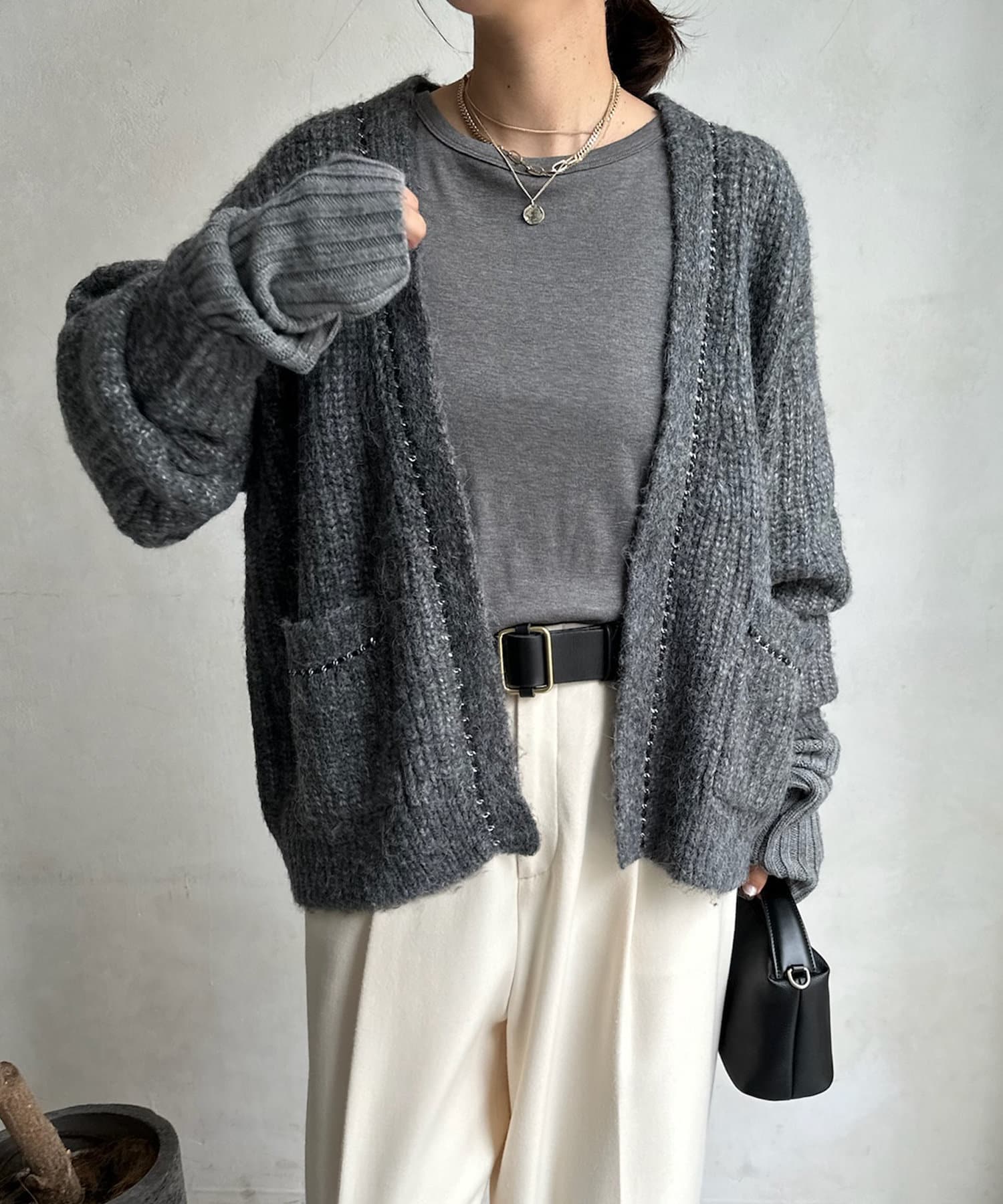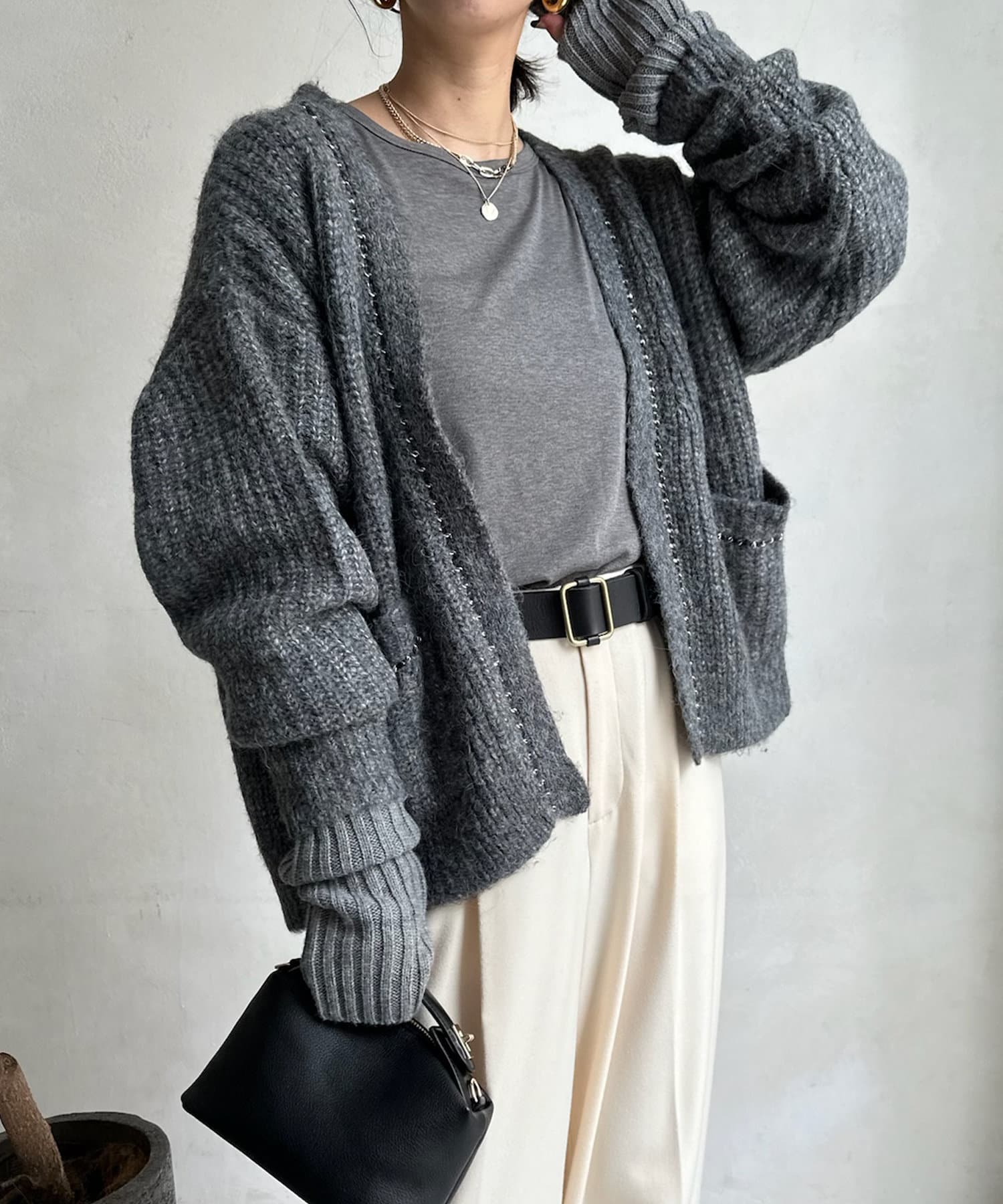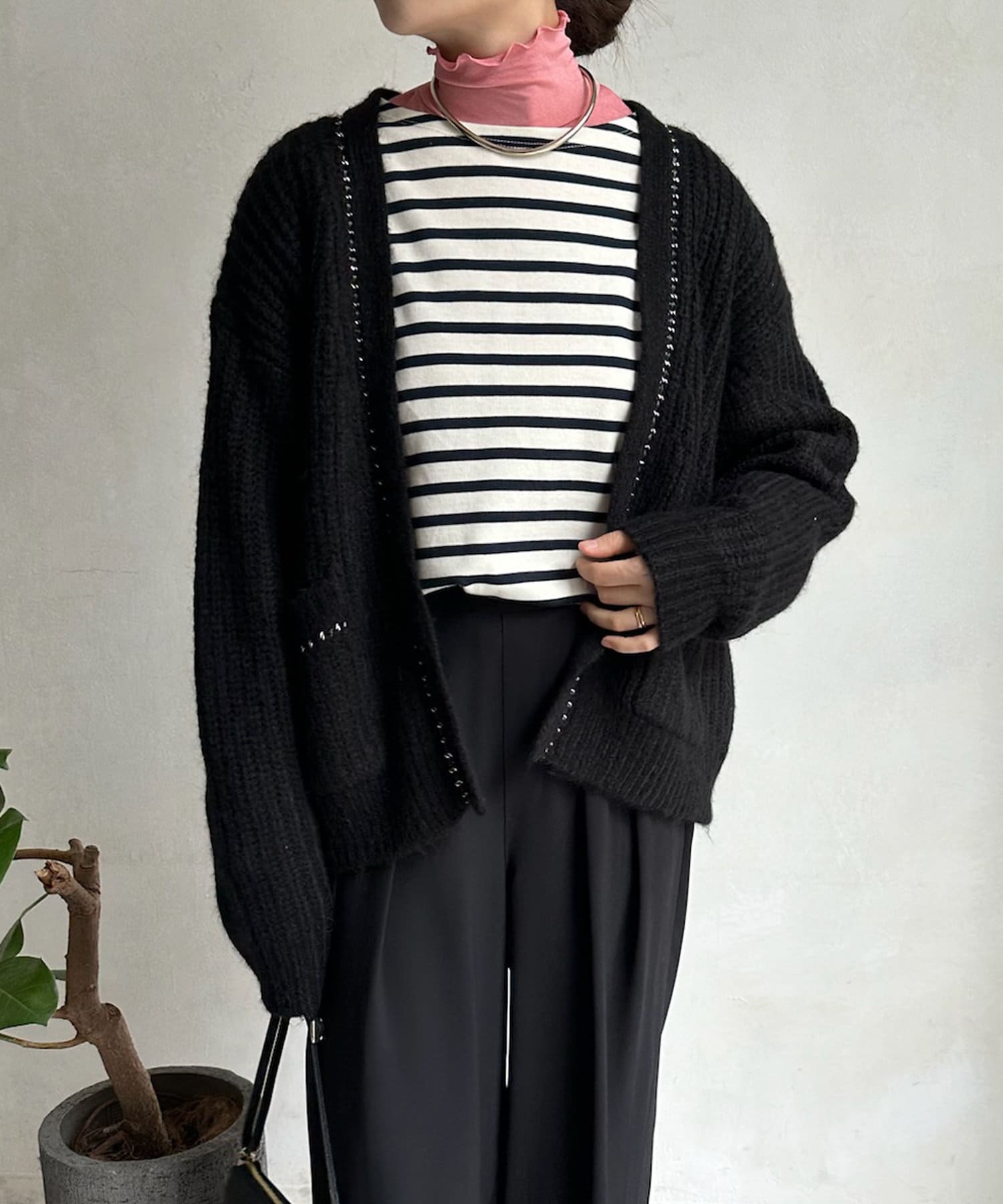 チェーンデザインが映えるニットカーディガン