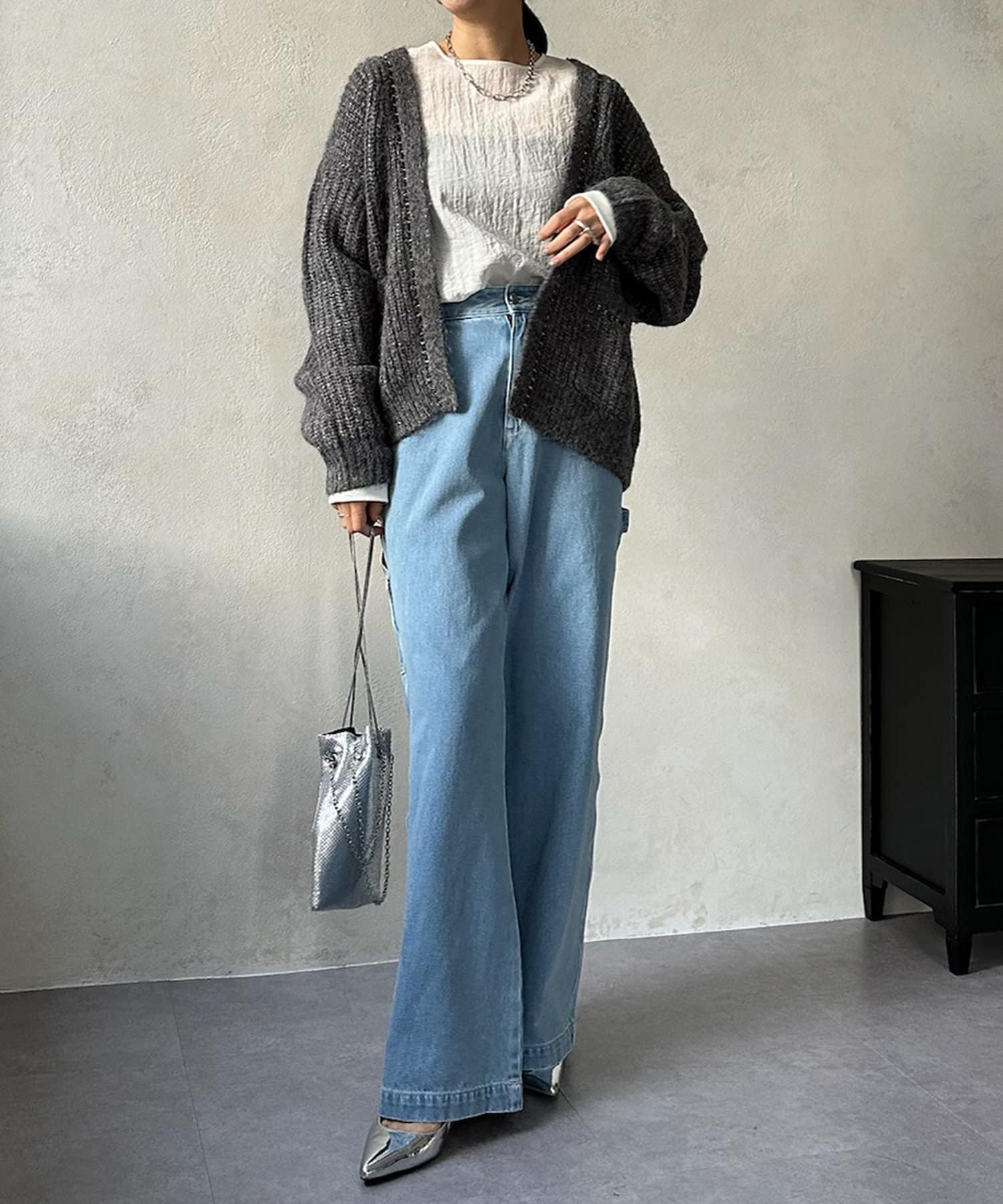 デニムなどのカジュアルなアイテムと合わせて、甘くなりすぎないように着こなすのがおすすめですよ!