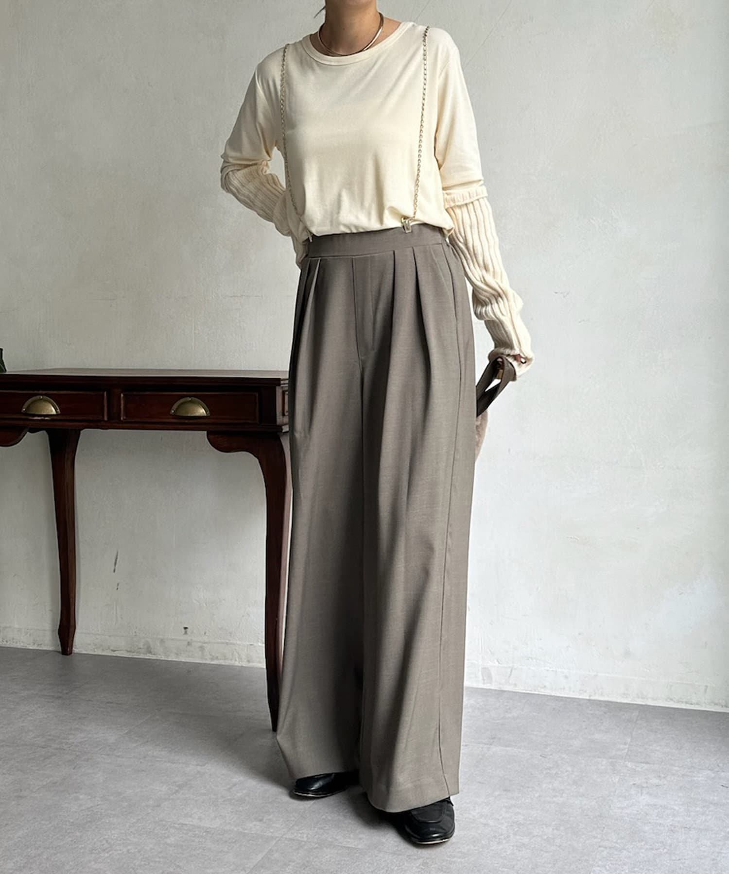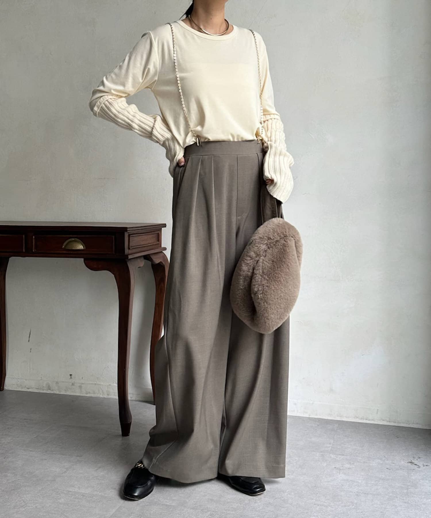 くしゅっと溜まるお袖口のリブニットデザインがポイントで、1枚ではもちろんレイヤードしたスタイルもおすすめ。