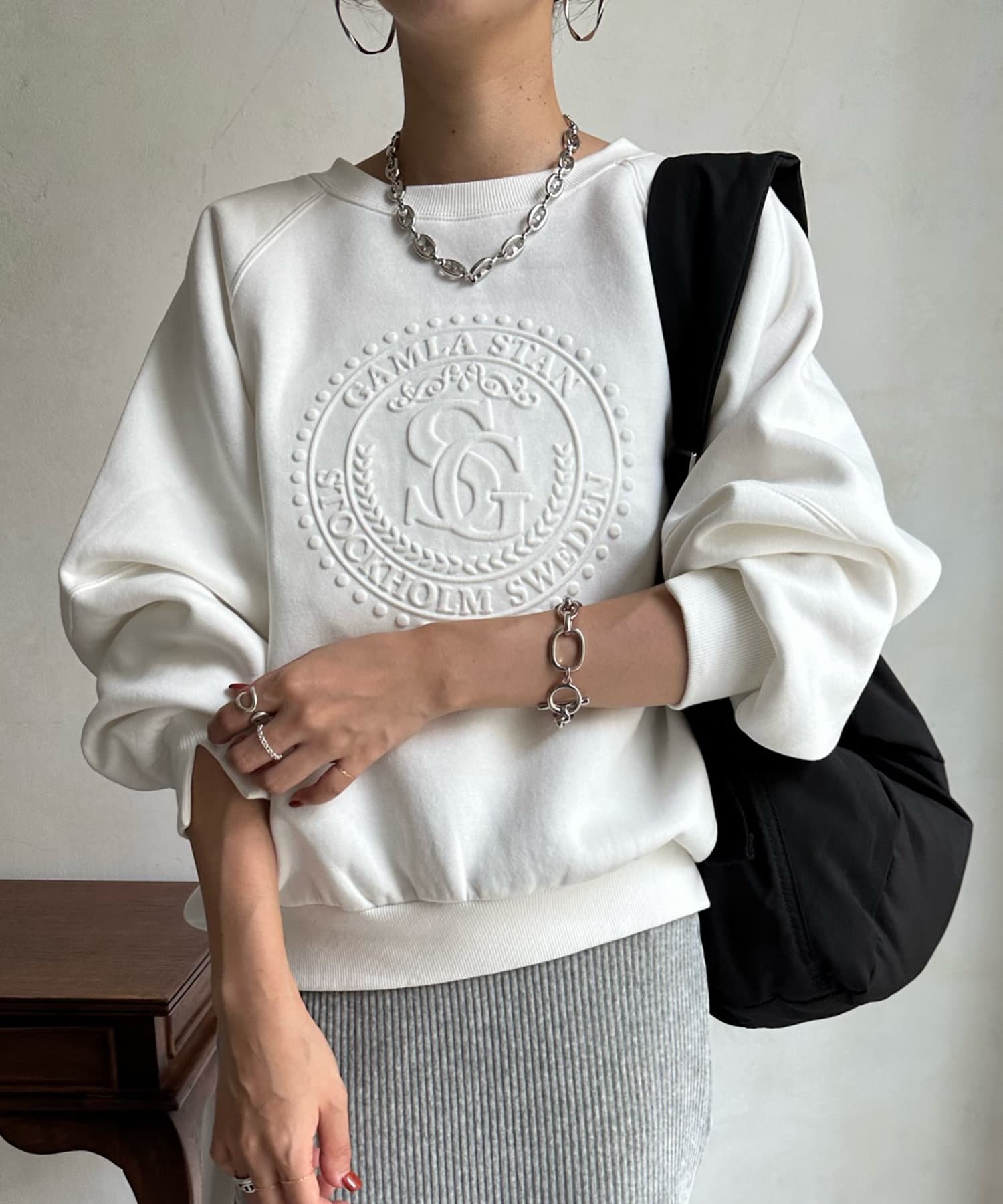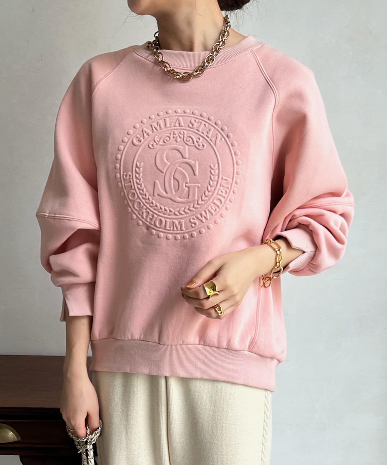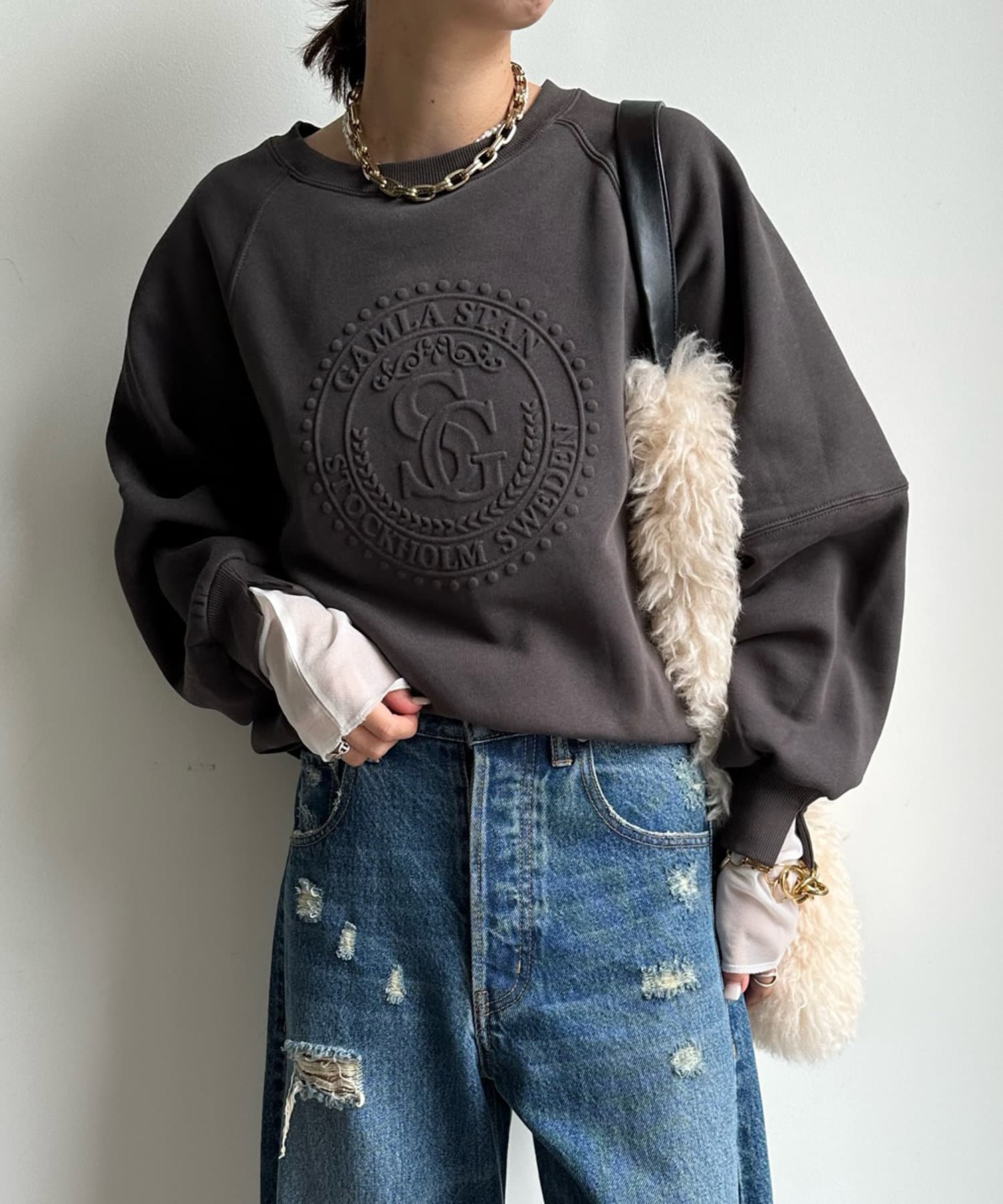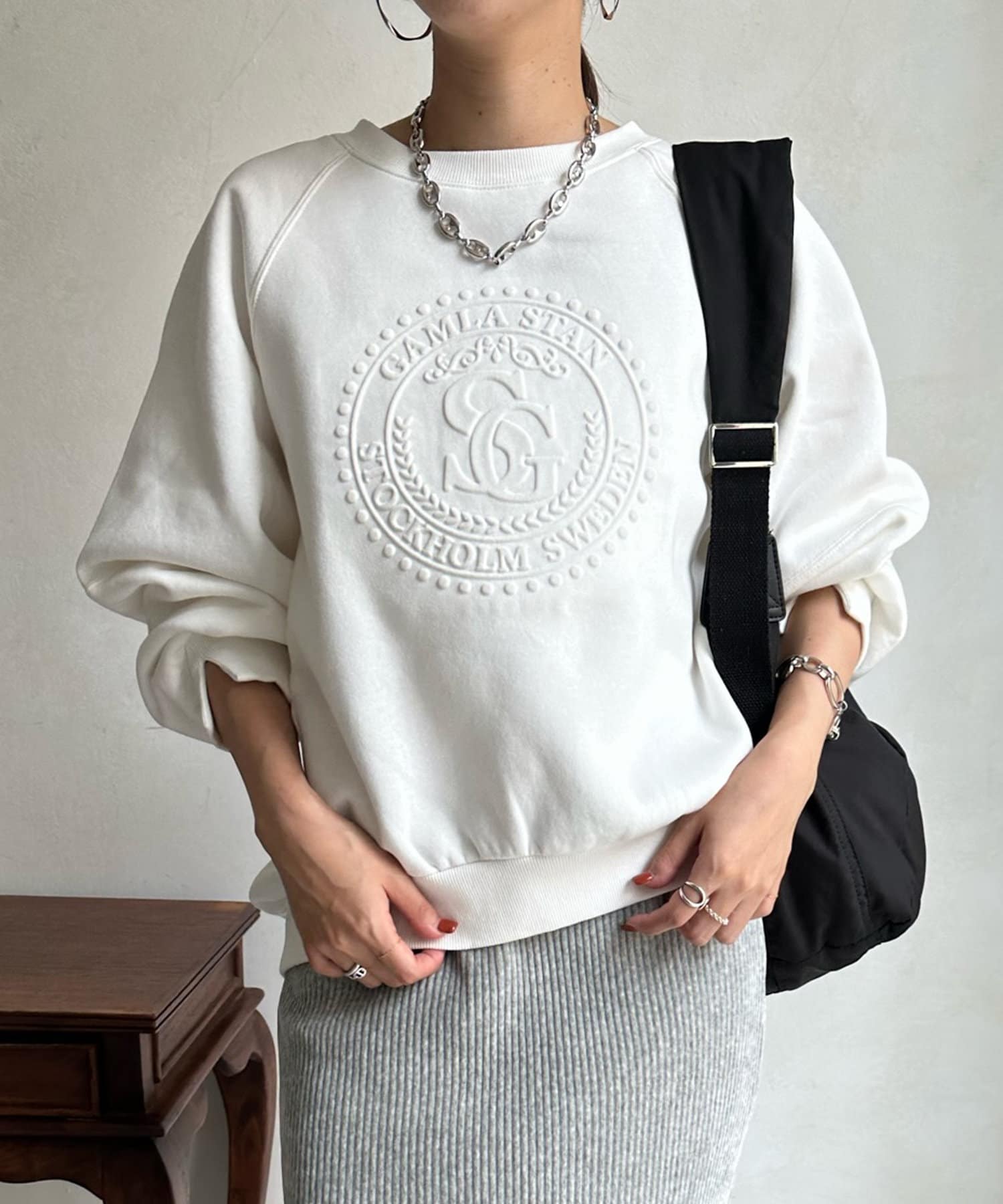 フロントのエンボスロゴがトレンド感たっぷりのトップスです。