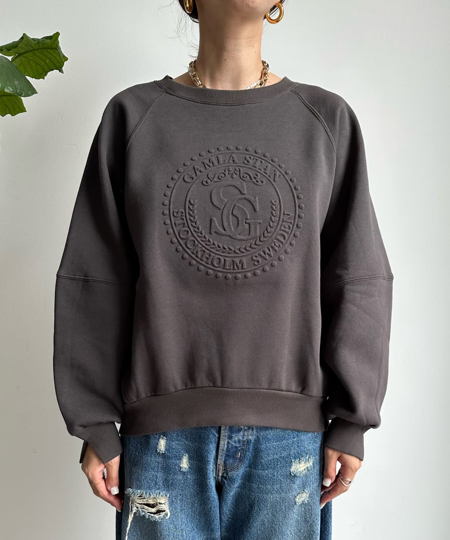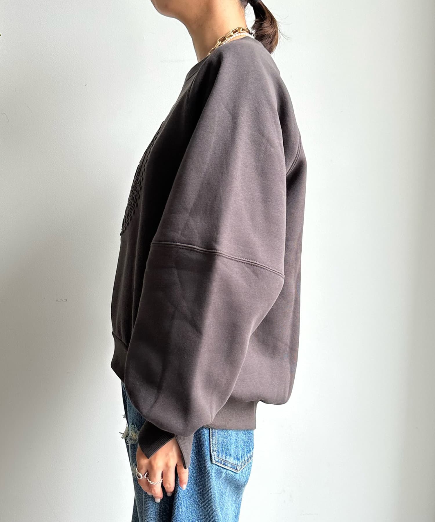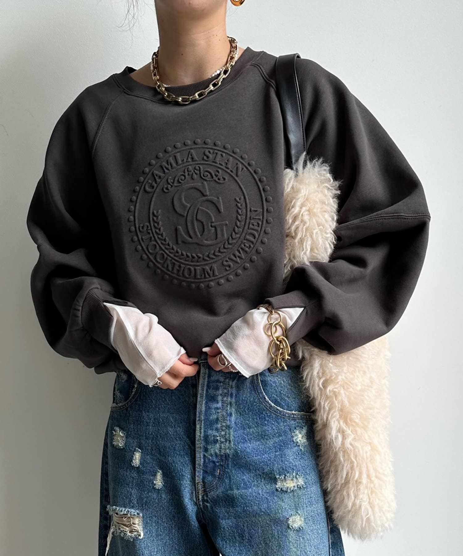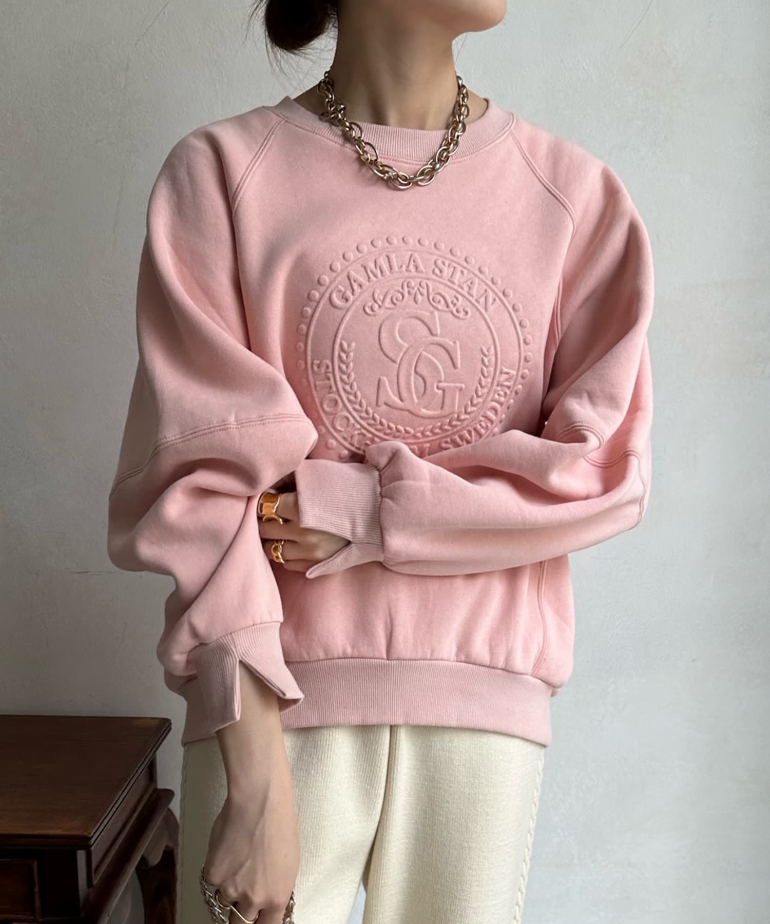 フロントのエンボスロゴがトレンド感たっぷりのトップスです。