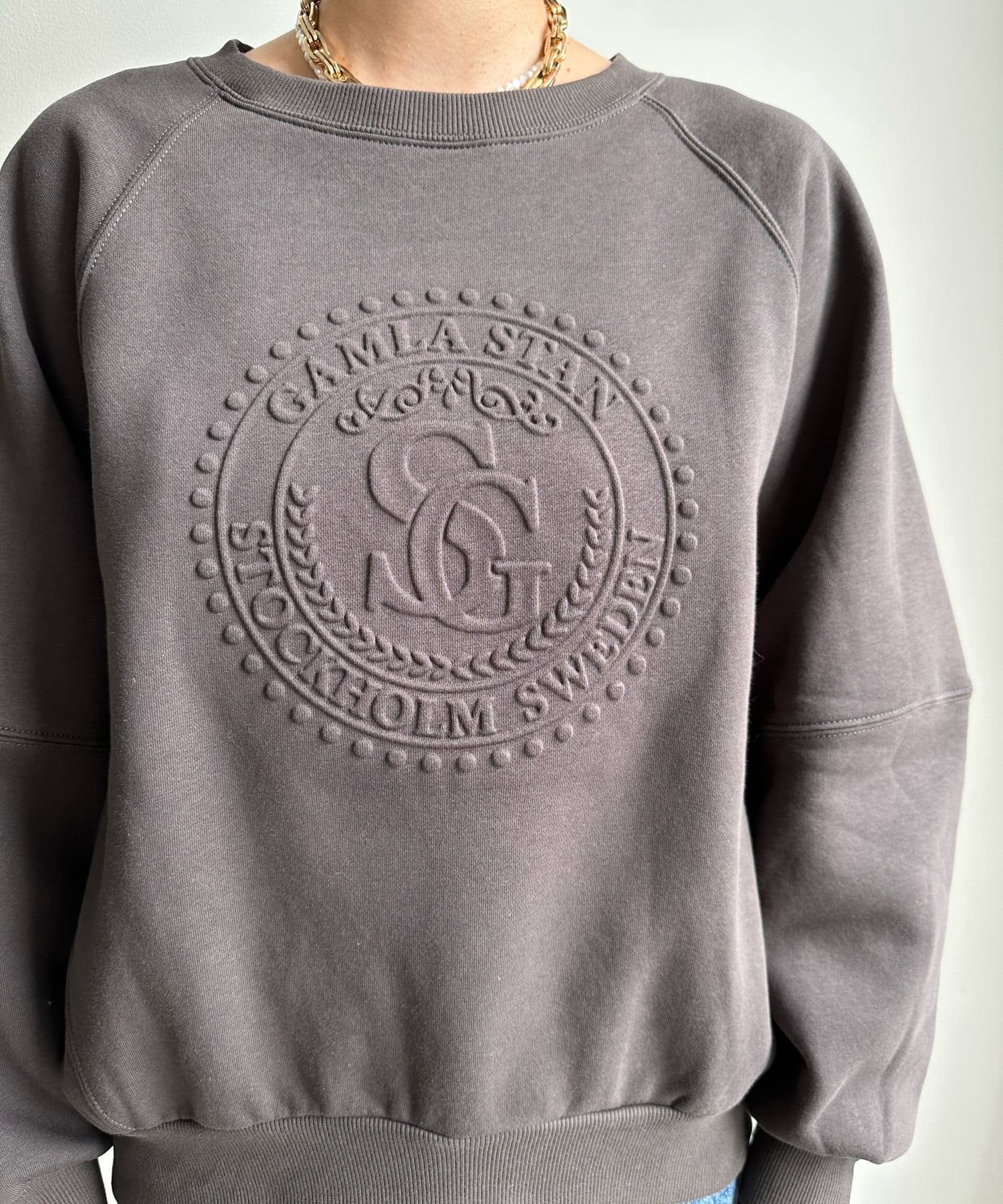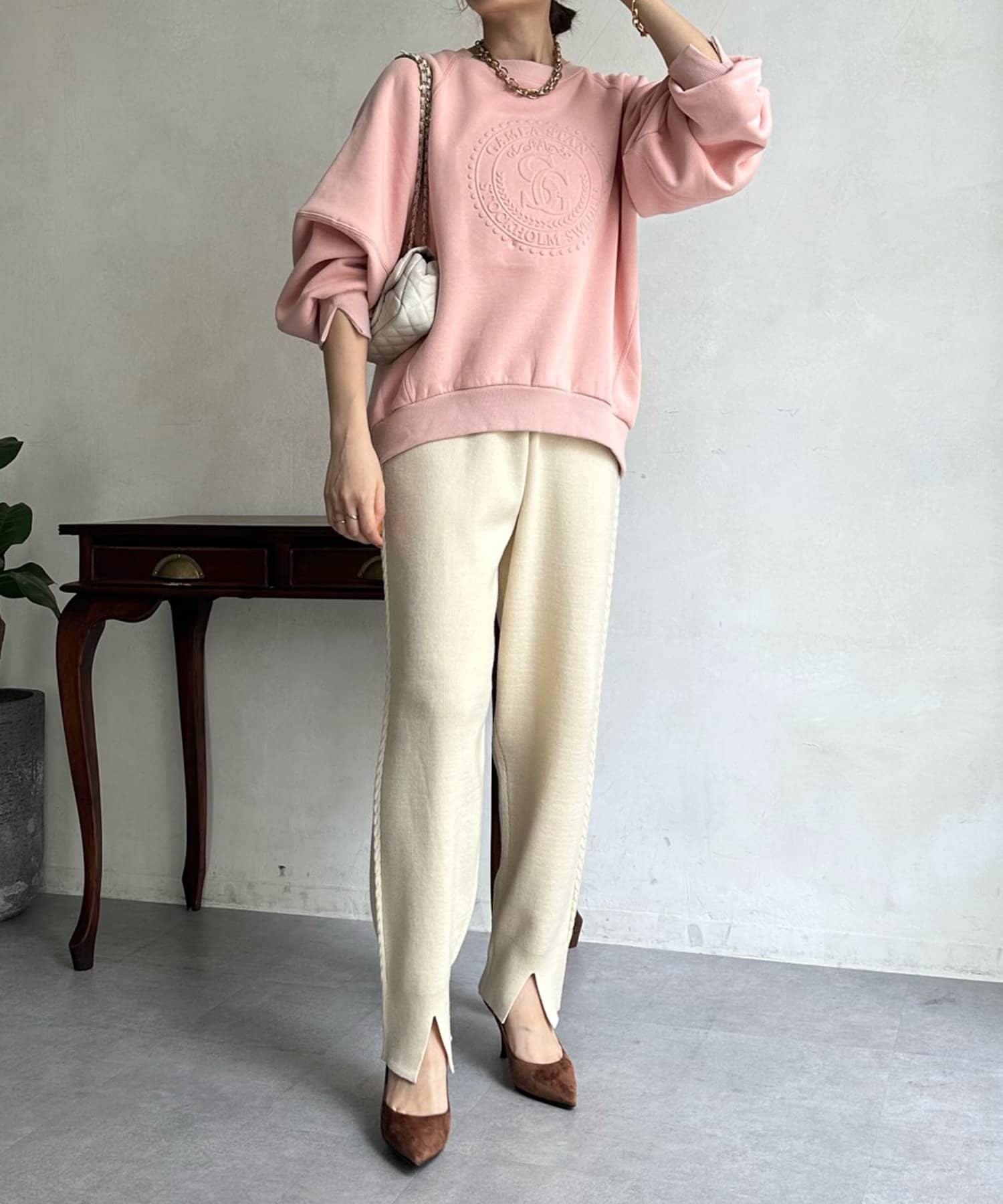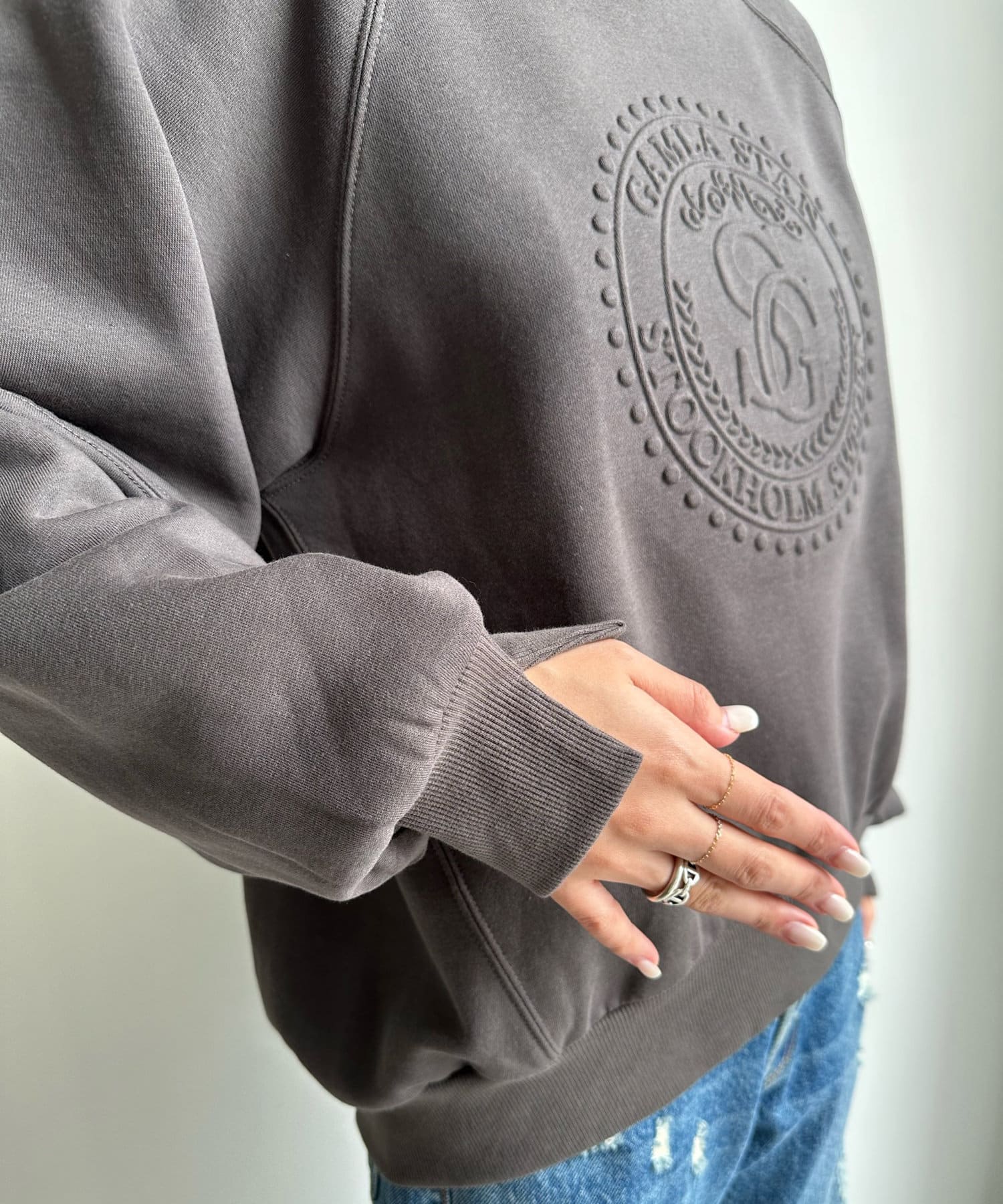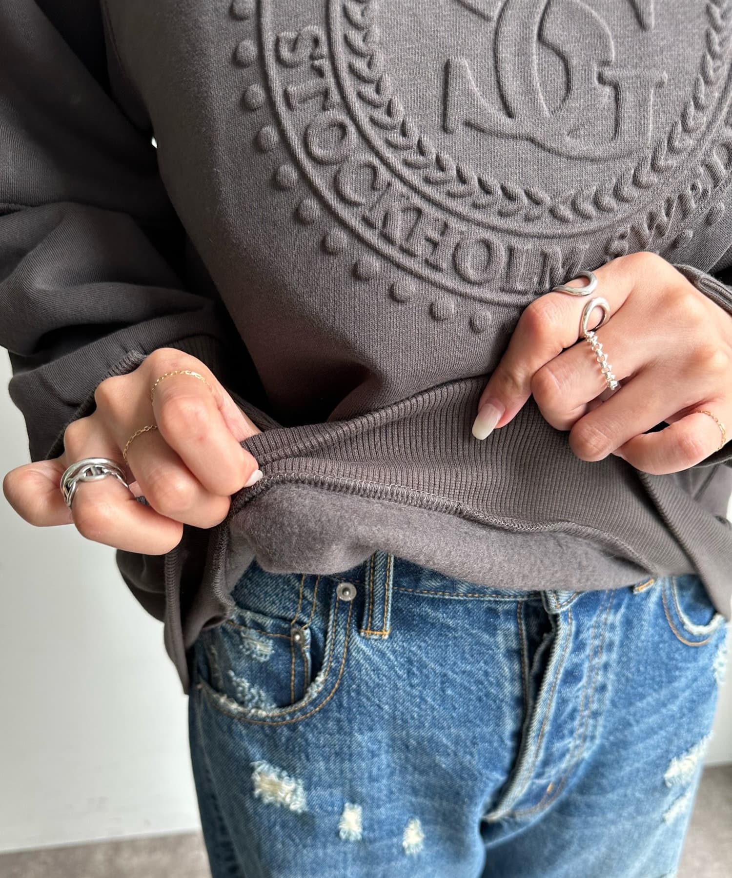 フロントのエンボスロゴがトレンド感たっぷりのトップスです。