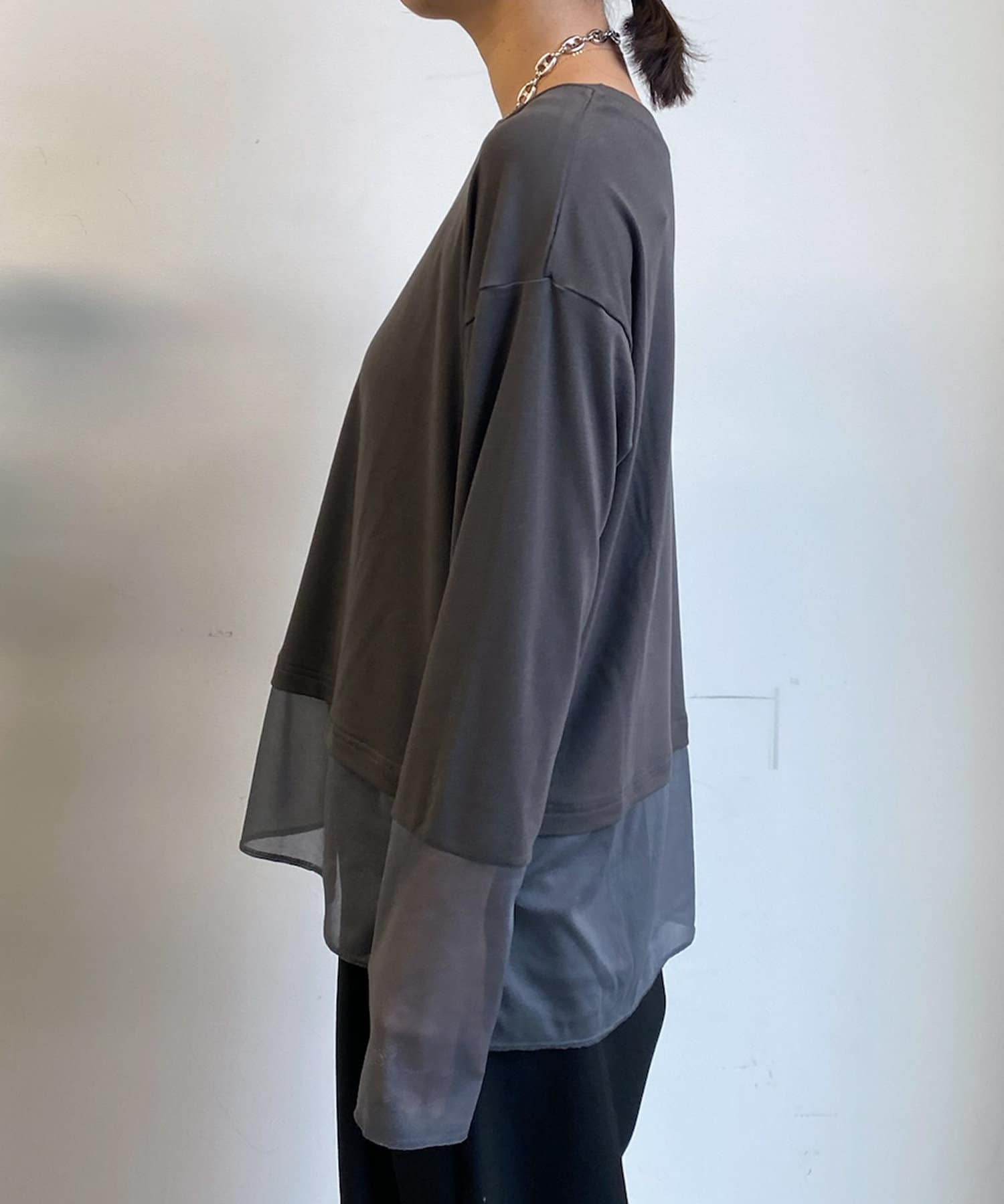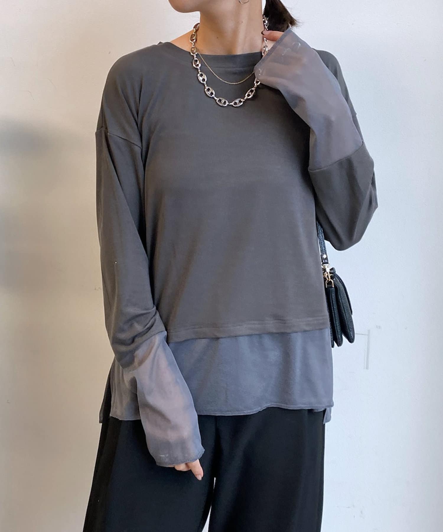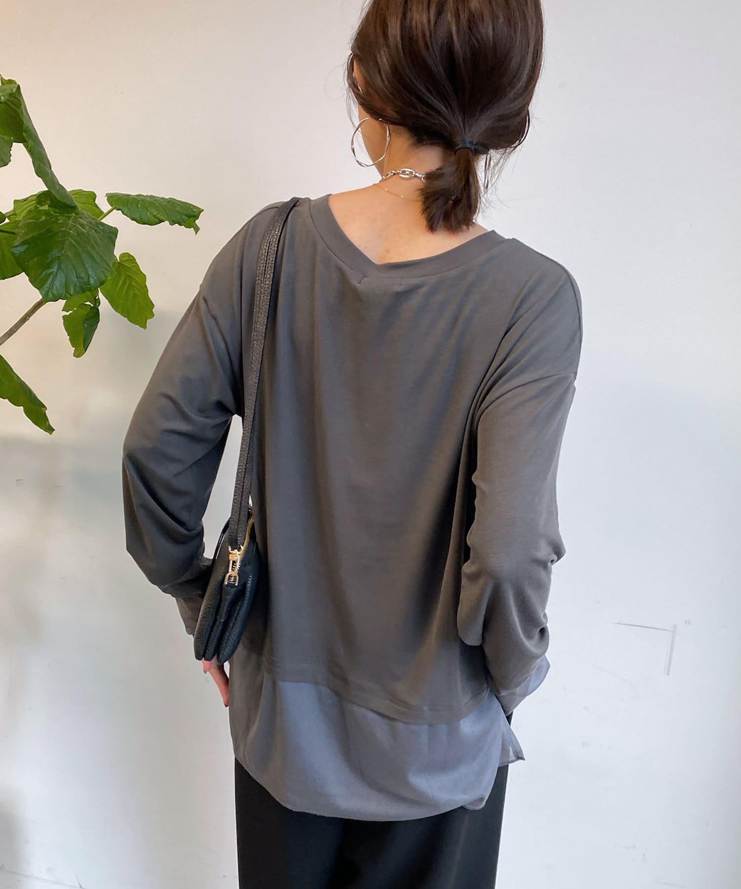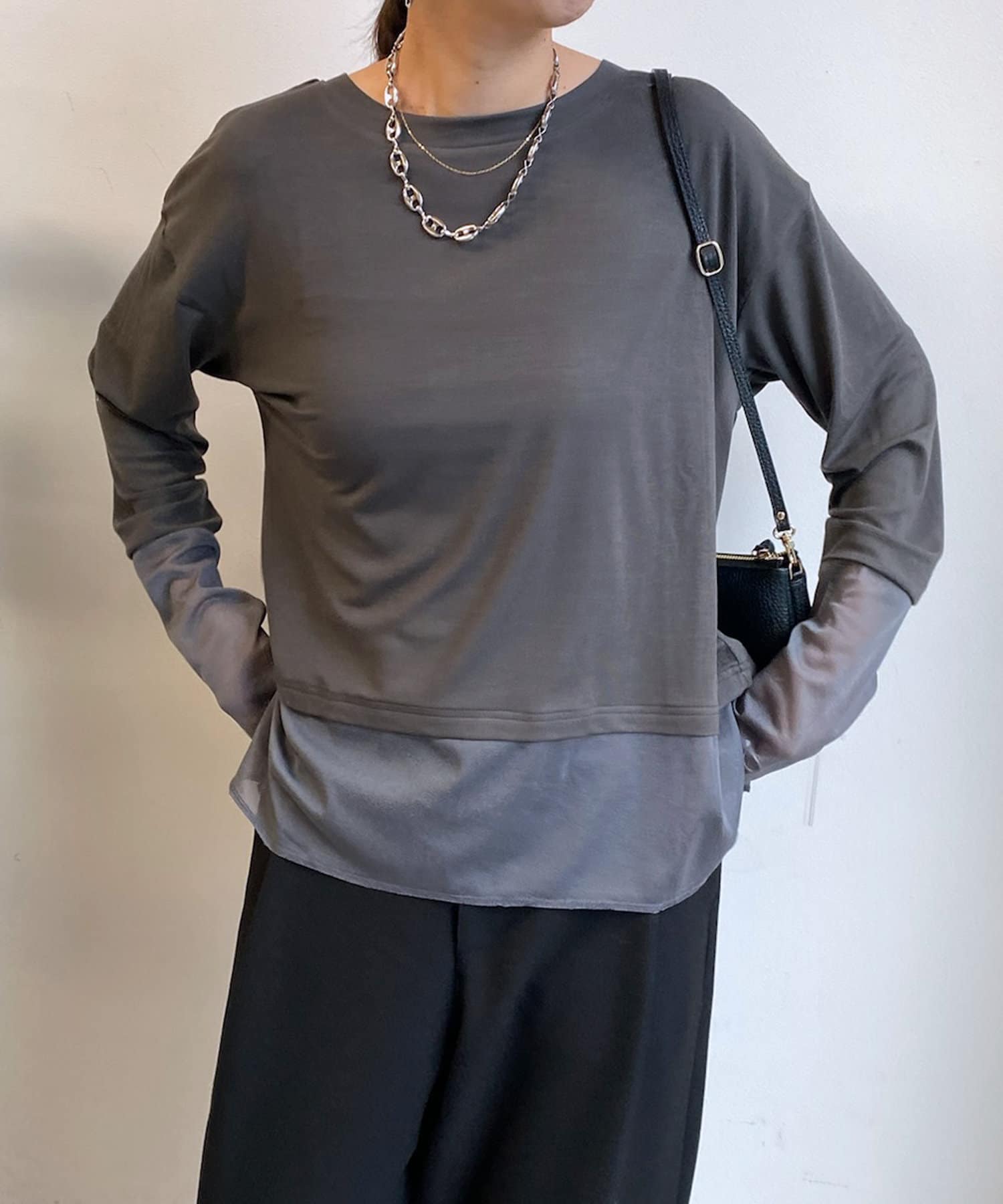 お袖部分は長めに切り替えているため、レイヤードした際もちらりと覗くアクセントに!