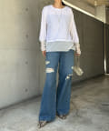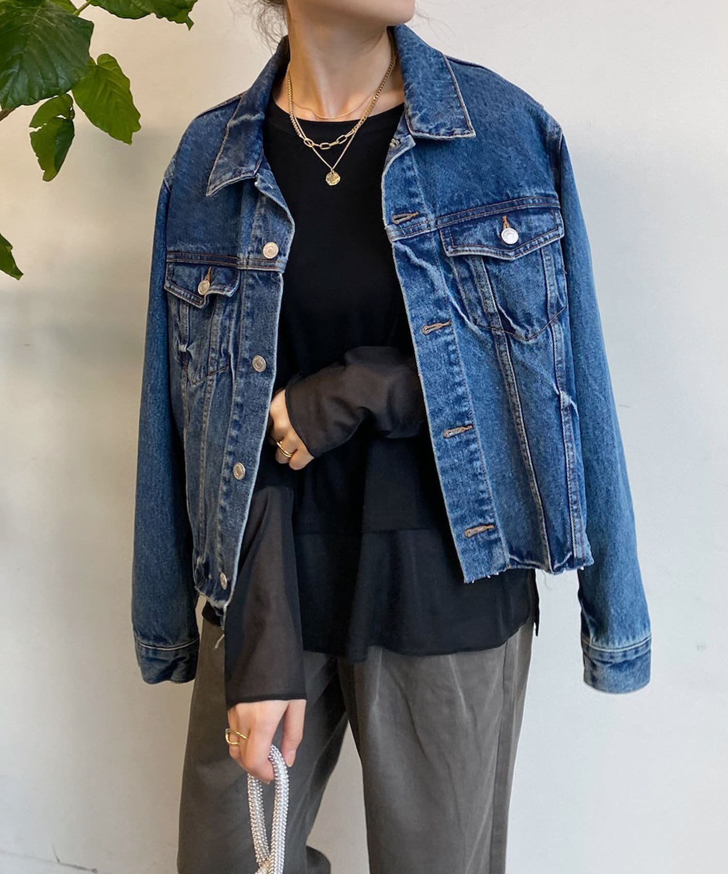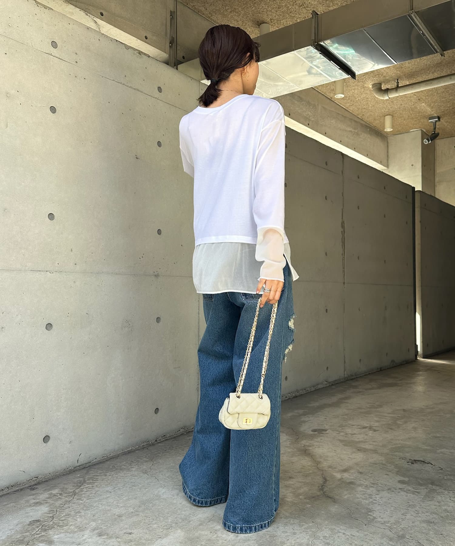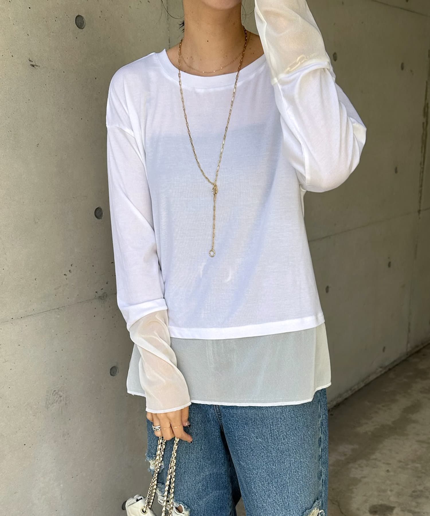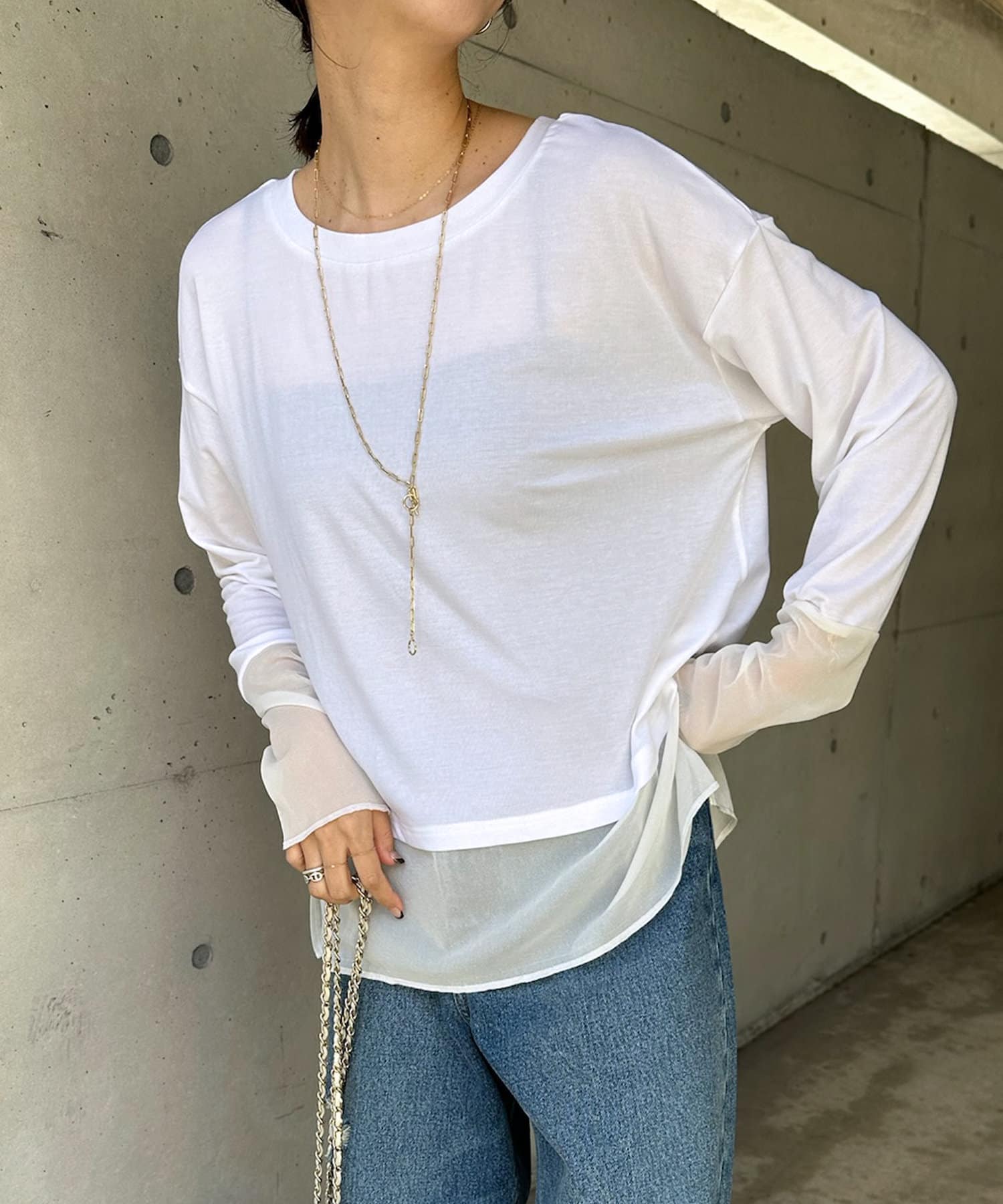 お袖部分は長めに切り替えているため、レイヤードした際もちらりと覗くアクセントに!