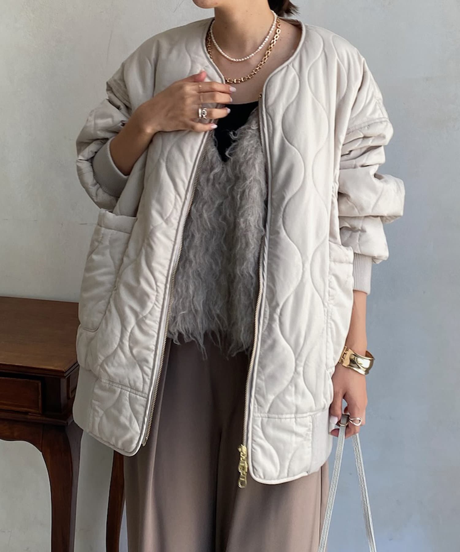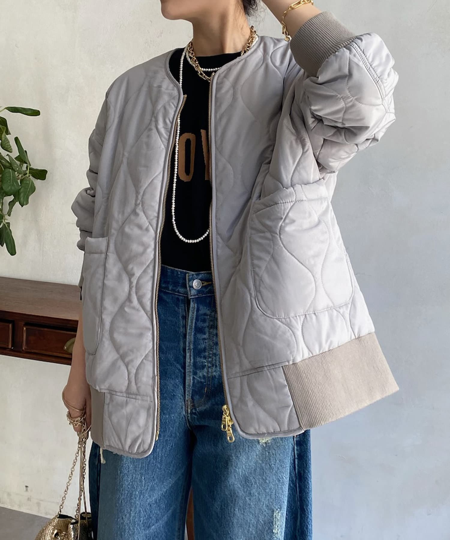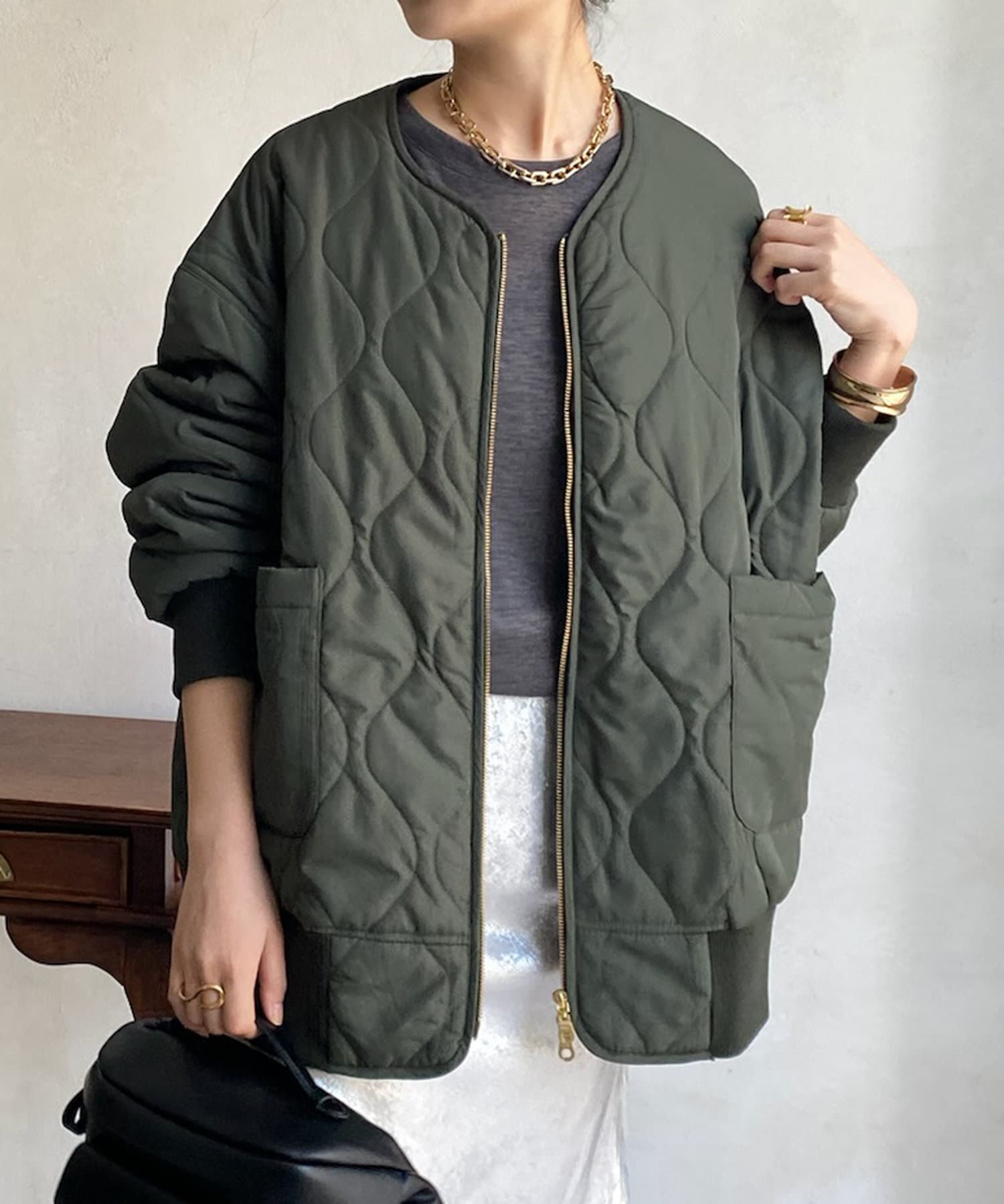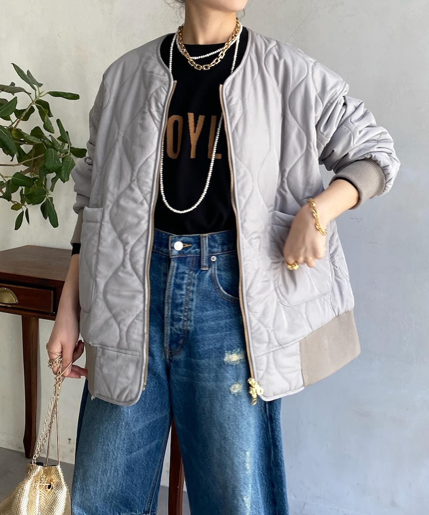 きれいめカジュアルなスタイリングが叶うキルティングアウター。