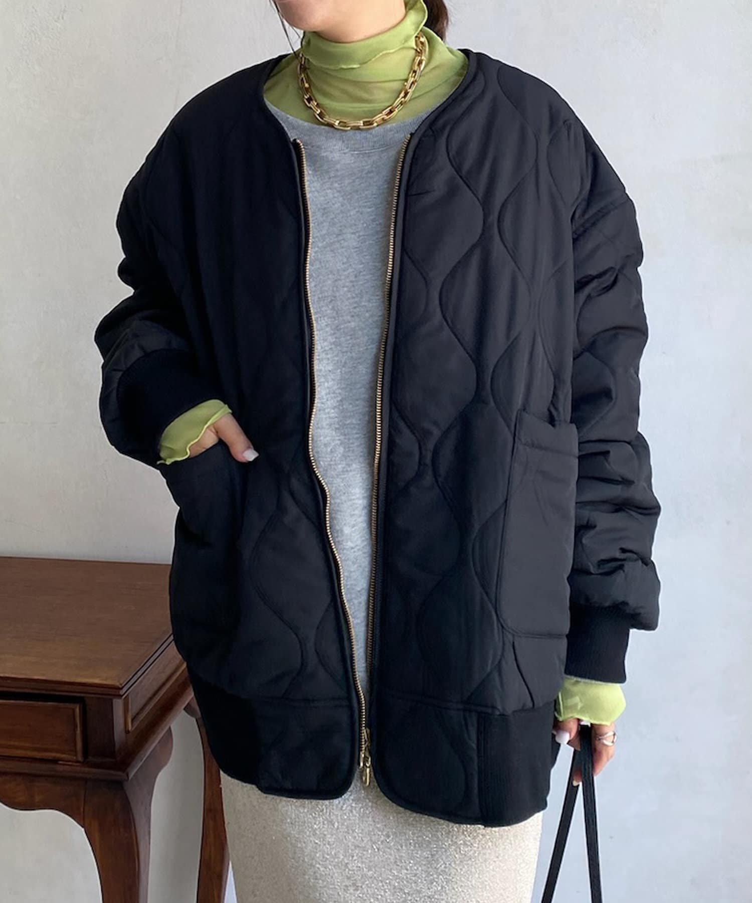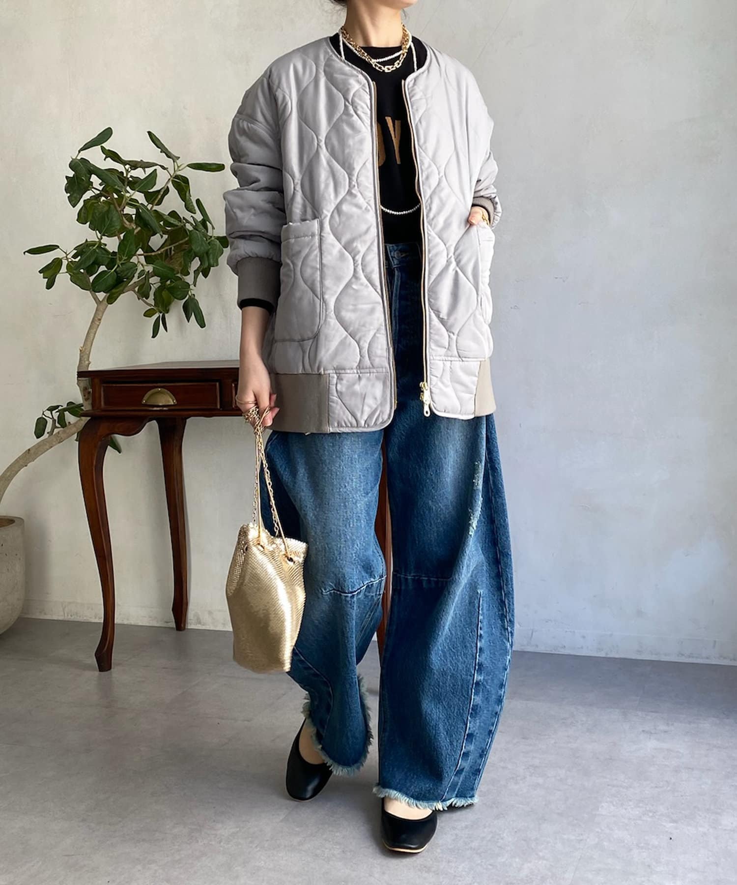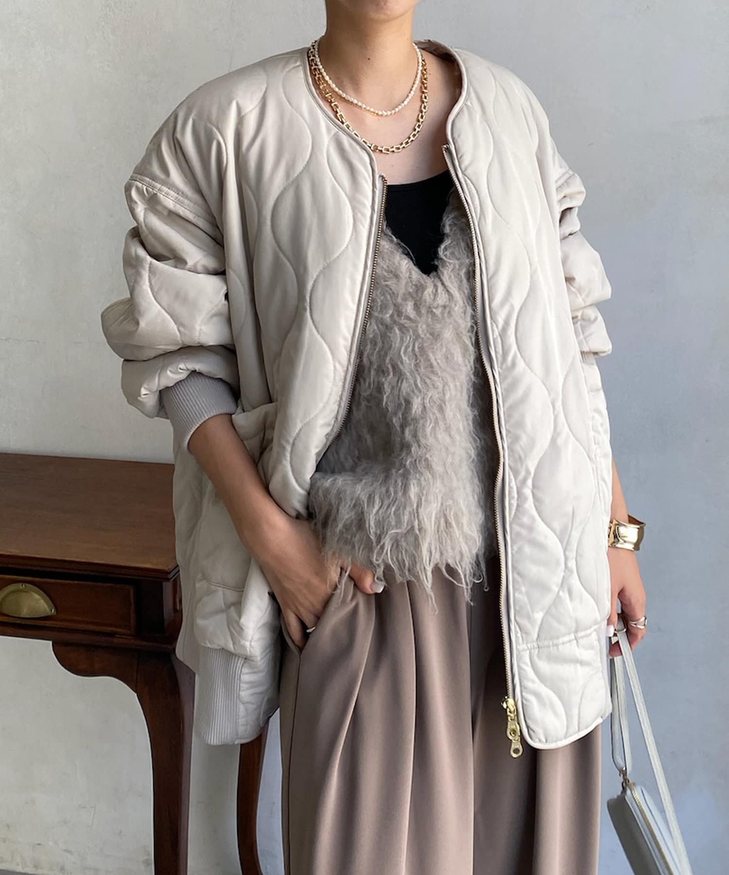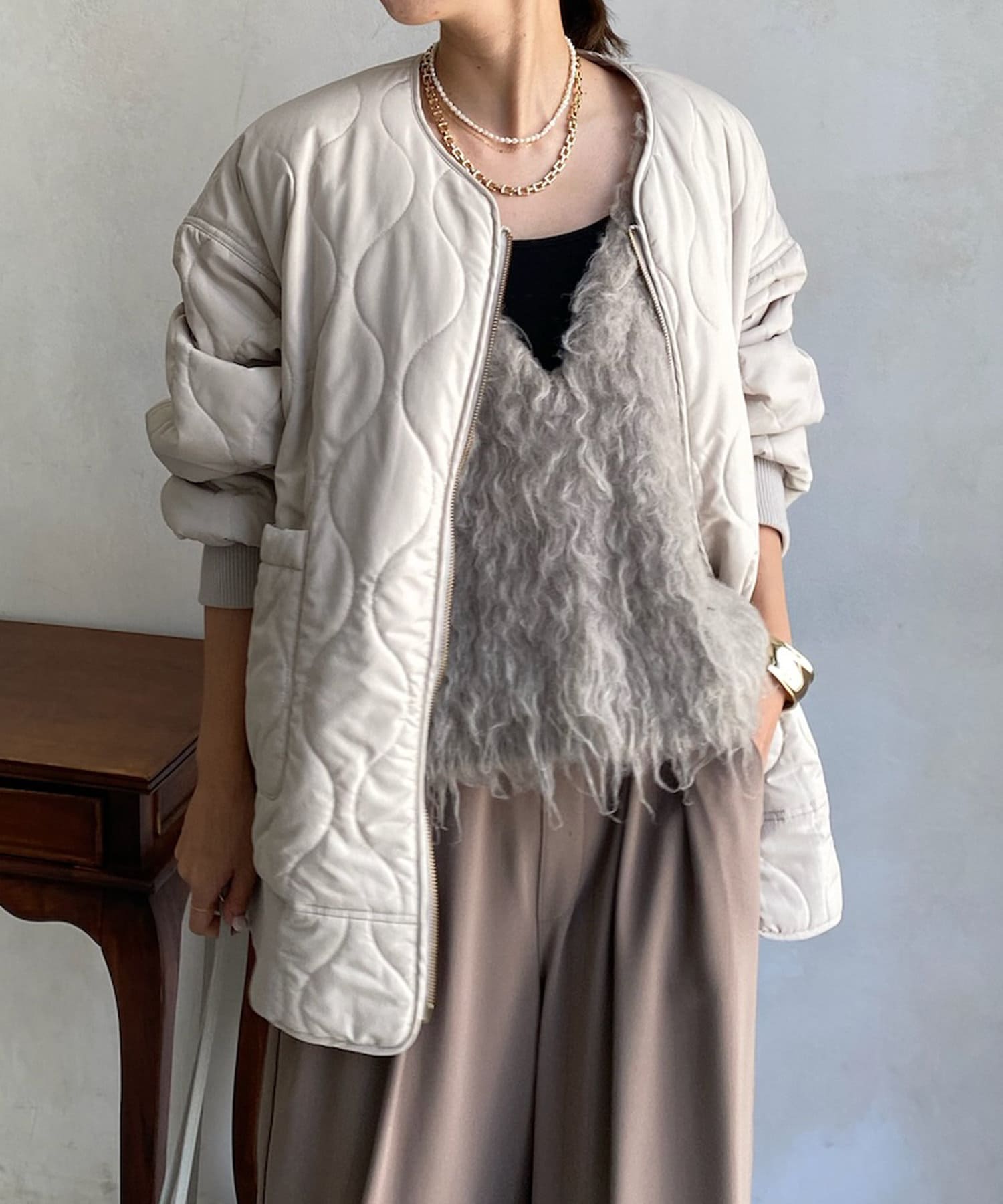 きれいめカジュアルなスタイリングが叶うキルティングアウター。