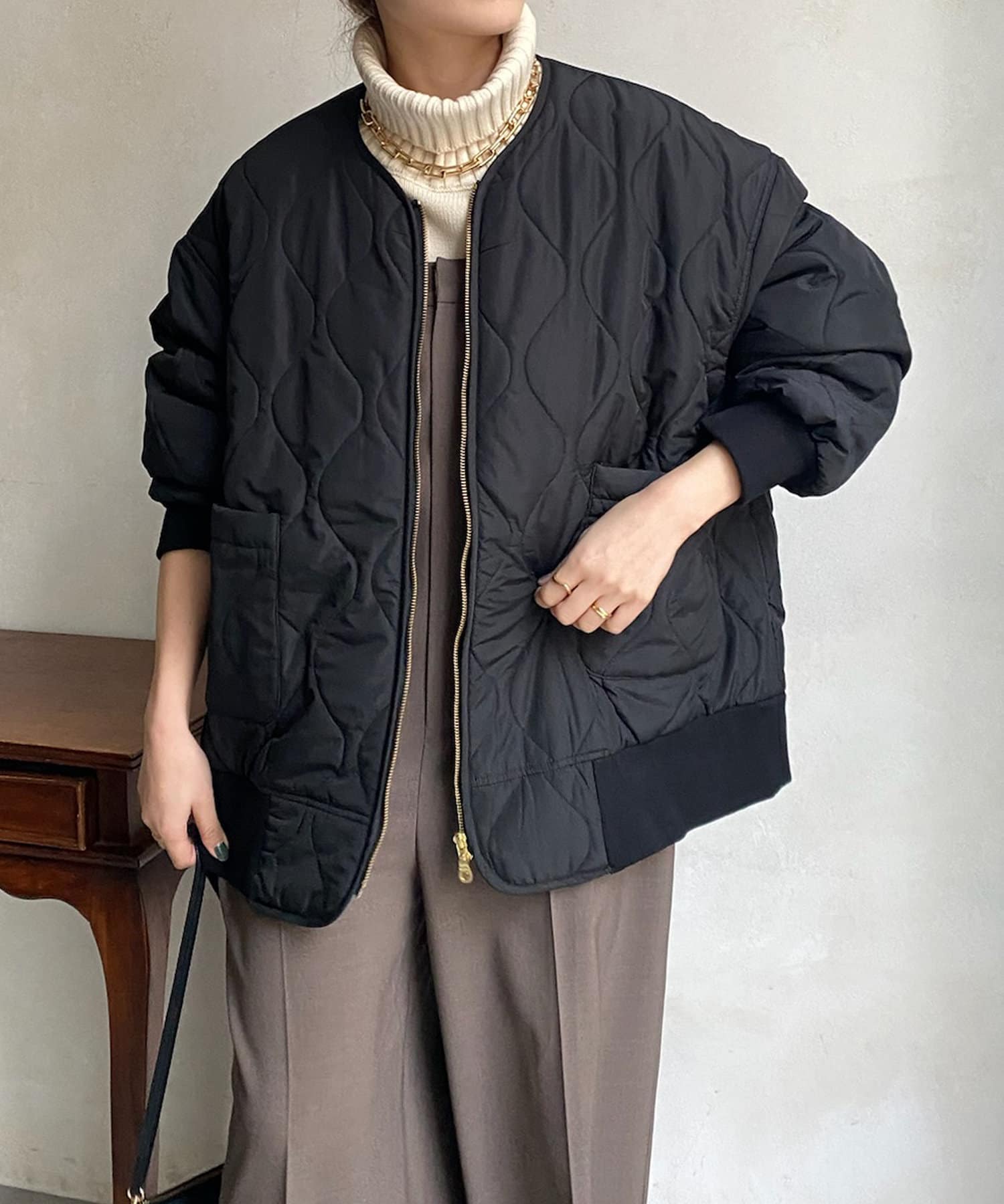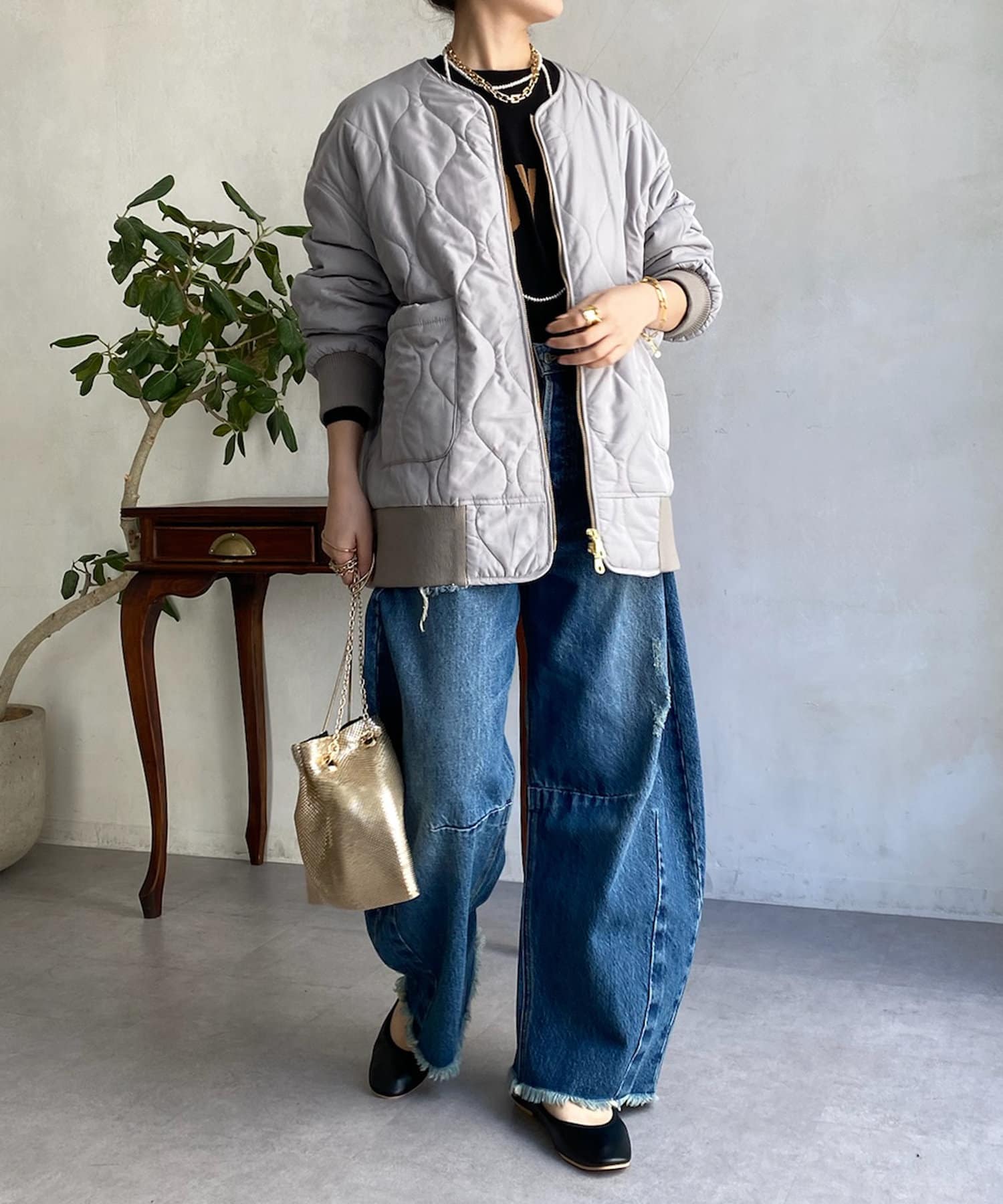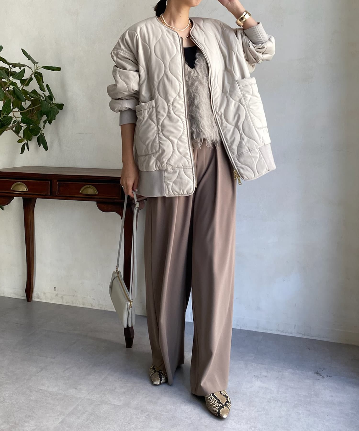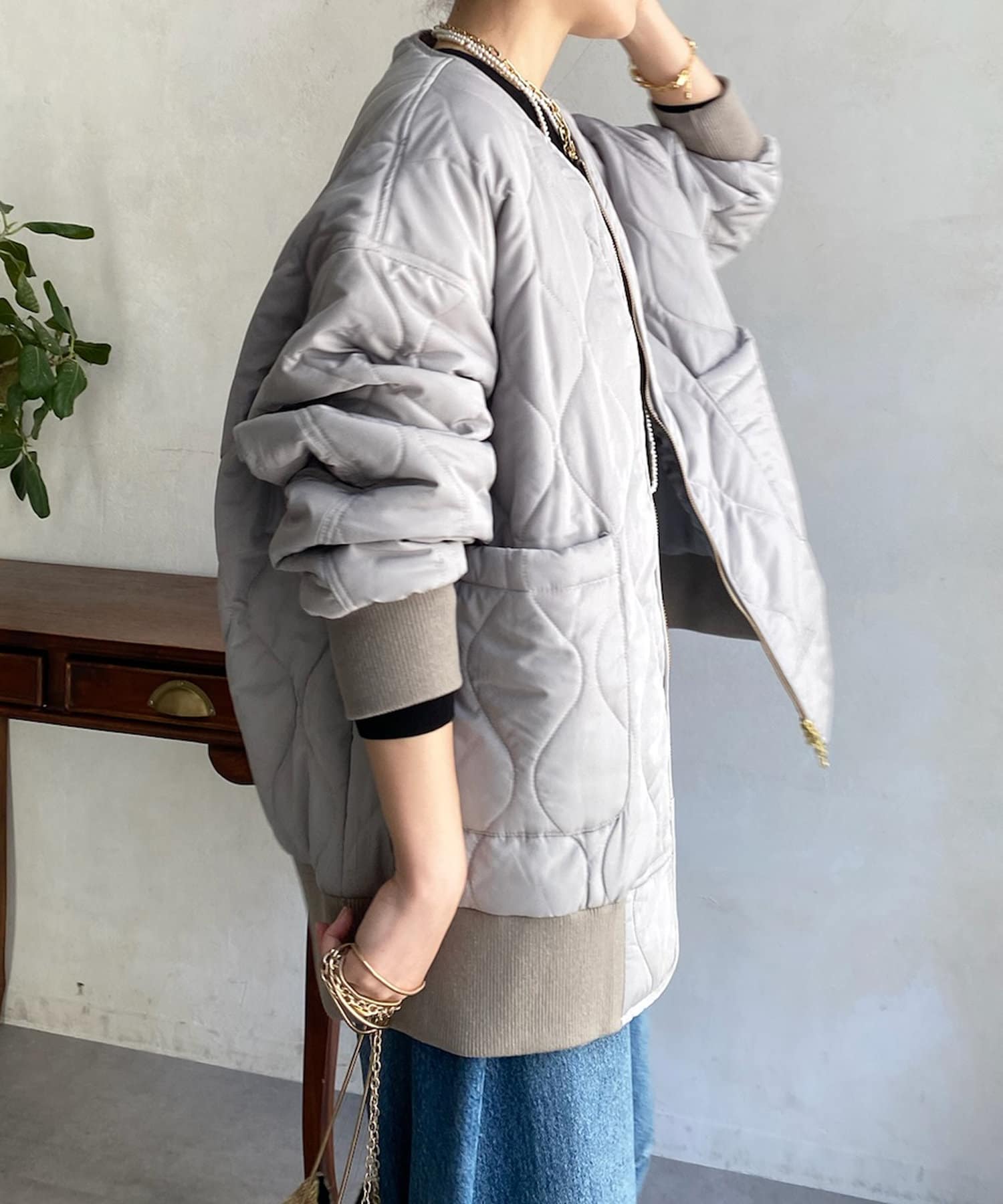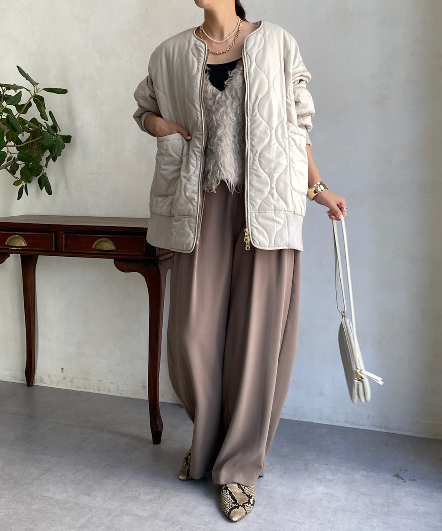 きれいめカジュアルなスタイリングが叶うキルティングアウター。