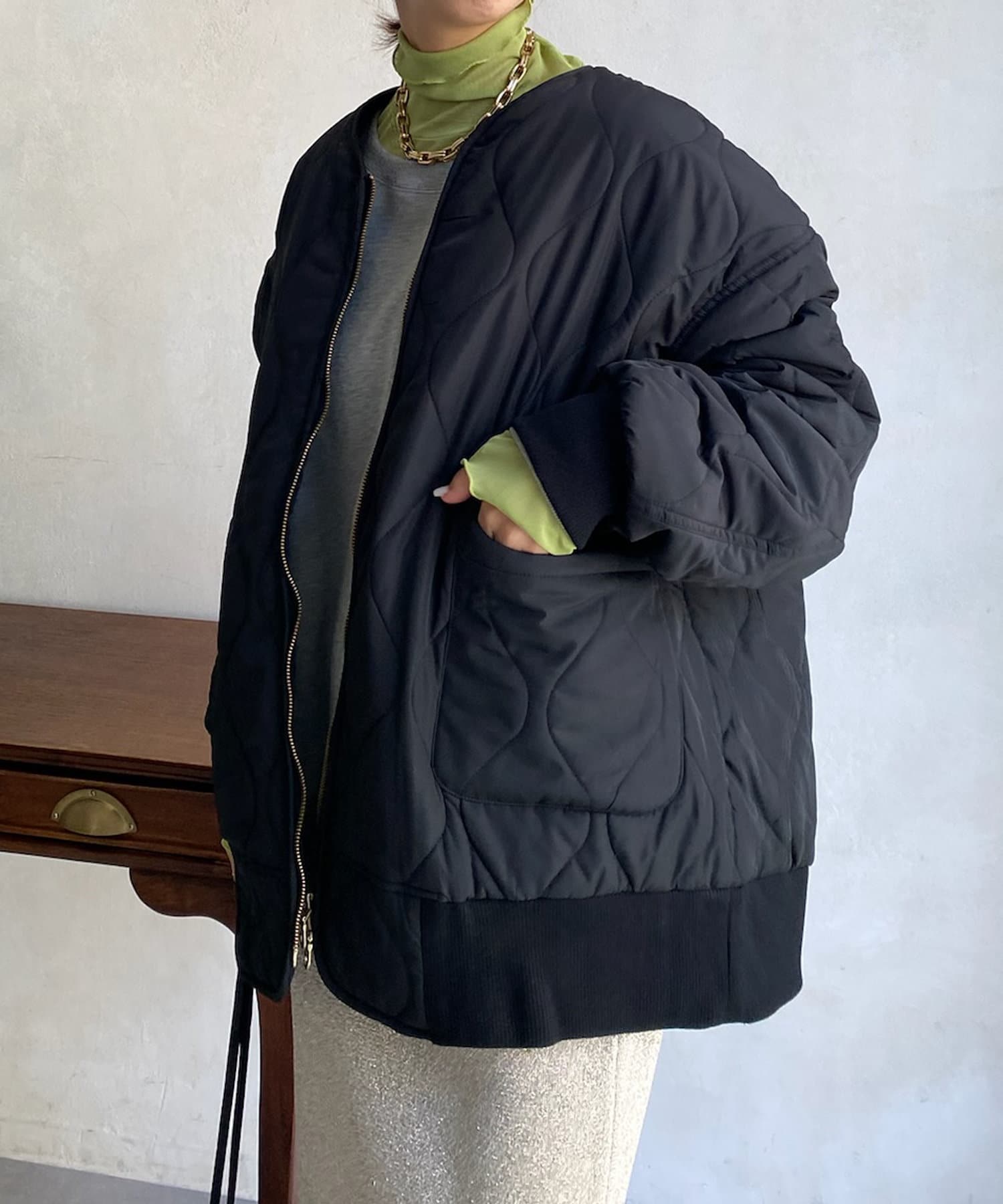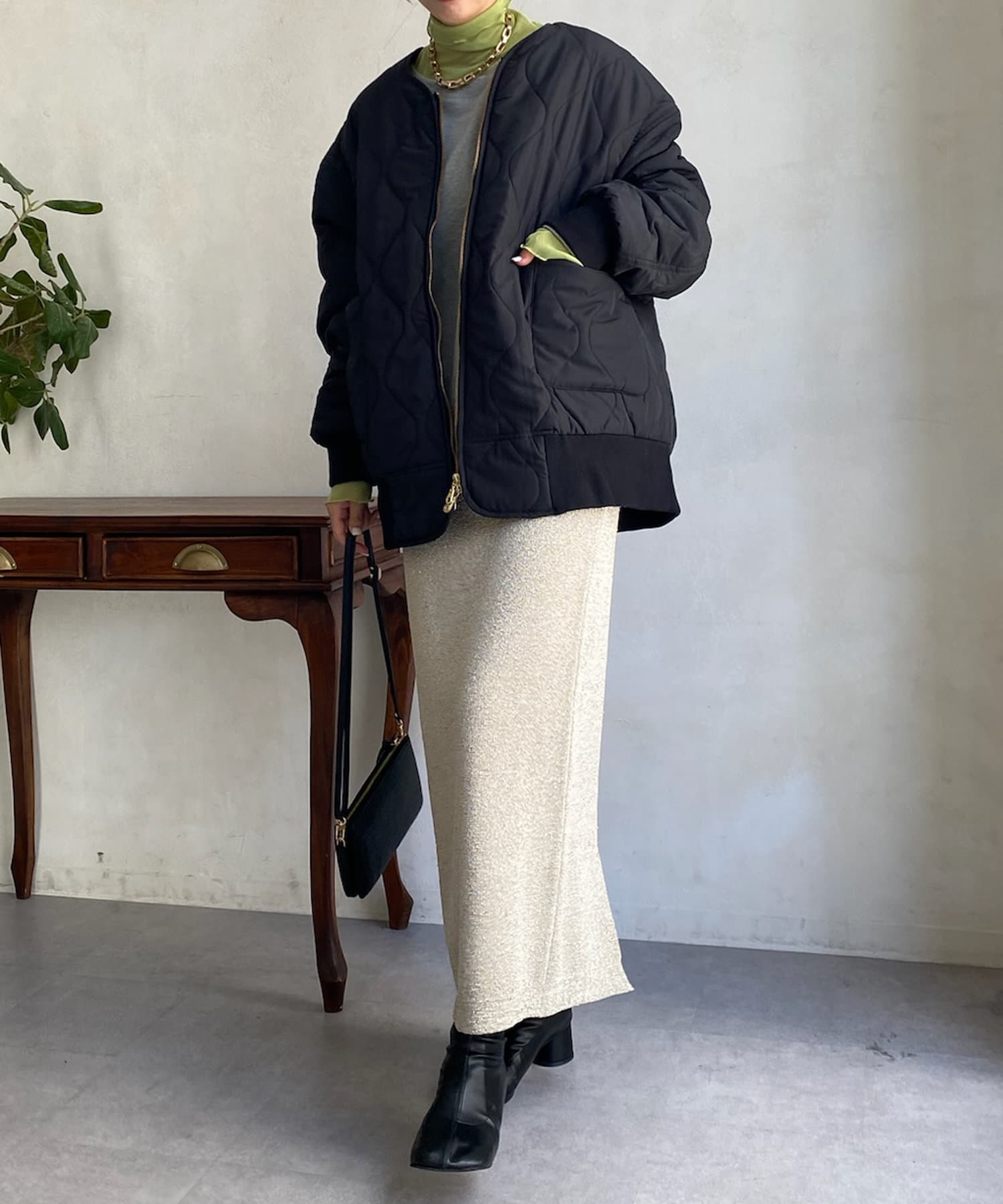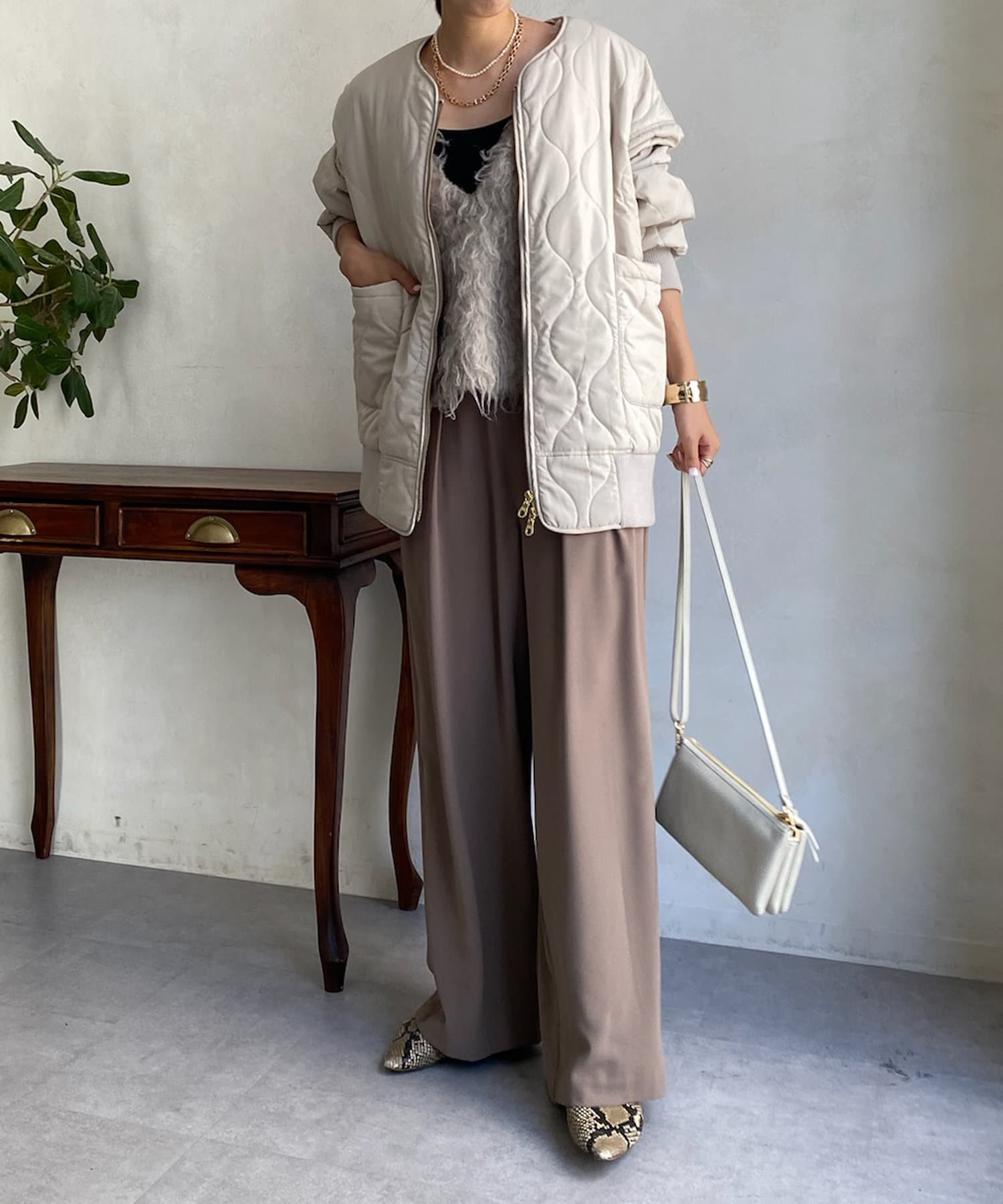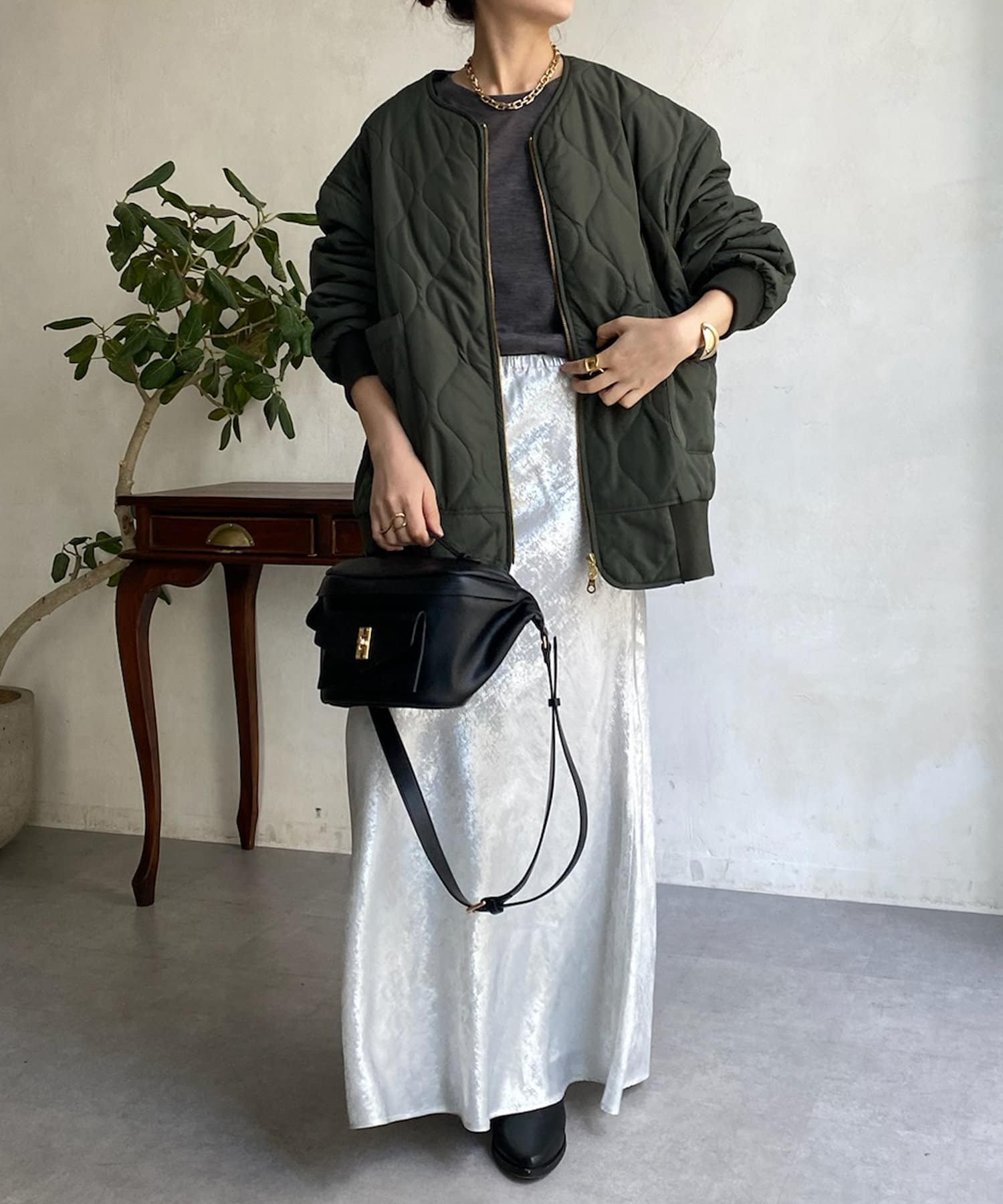 きれいめカジュアルなスタイリングが叶うキルティングアウター。