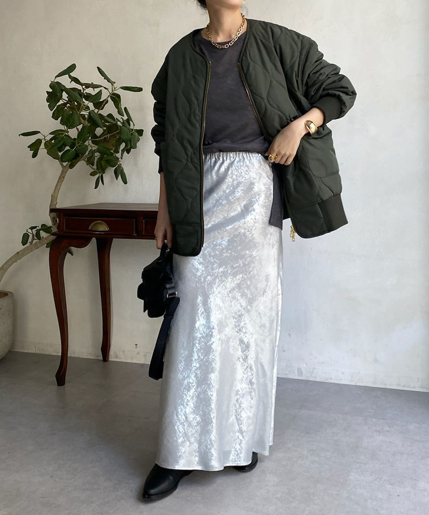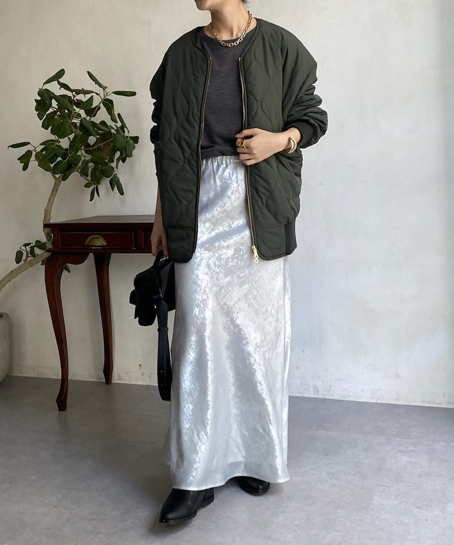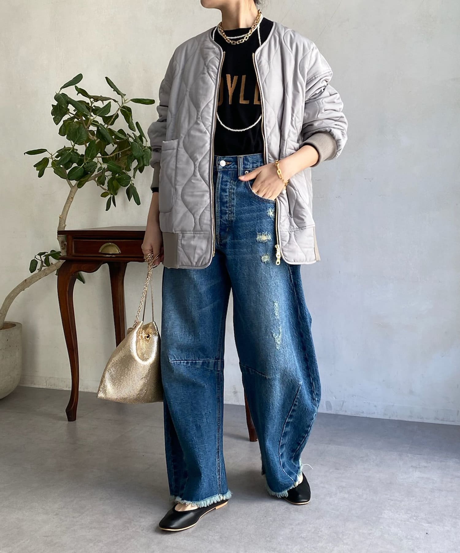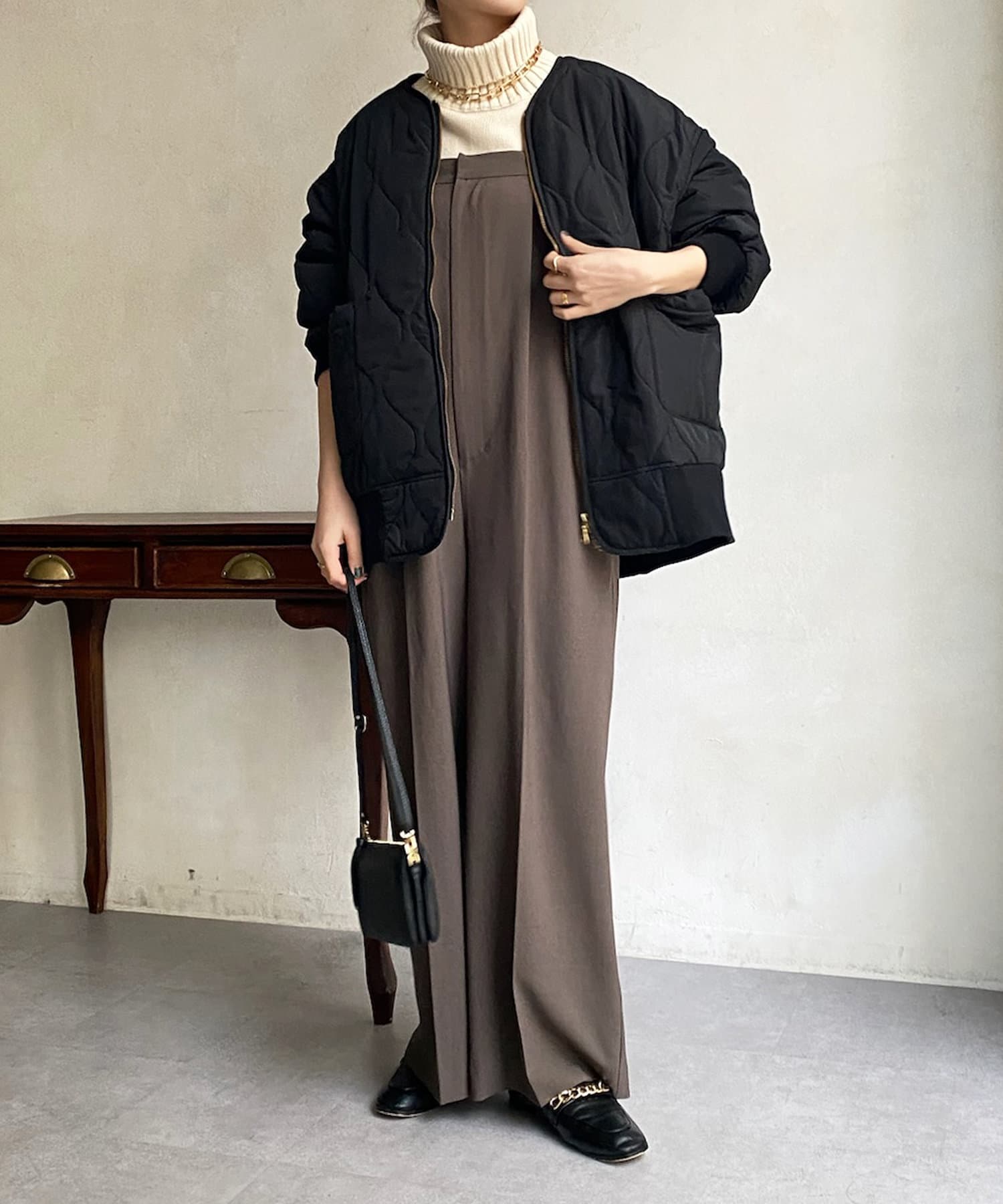 きれいめカジュアルなスタイリングが叶うキルティングアウター。