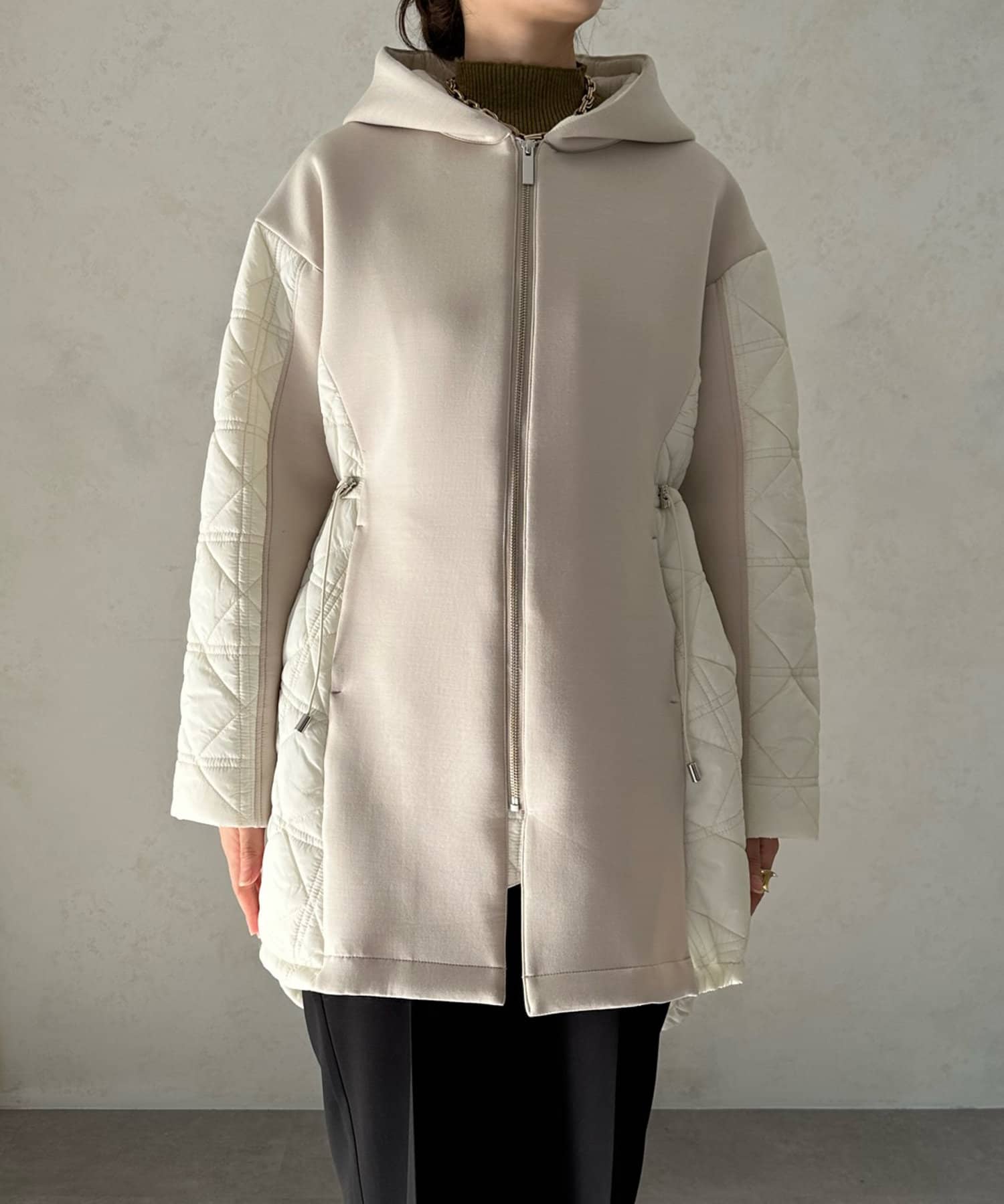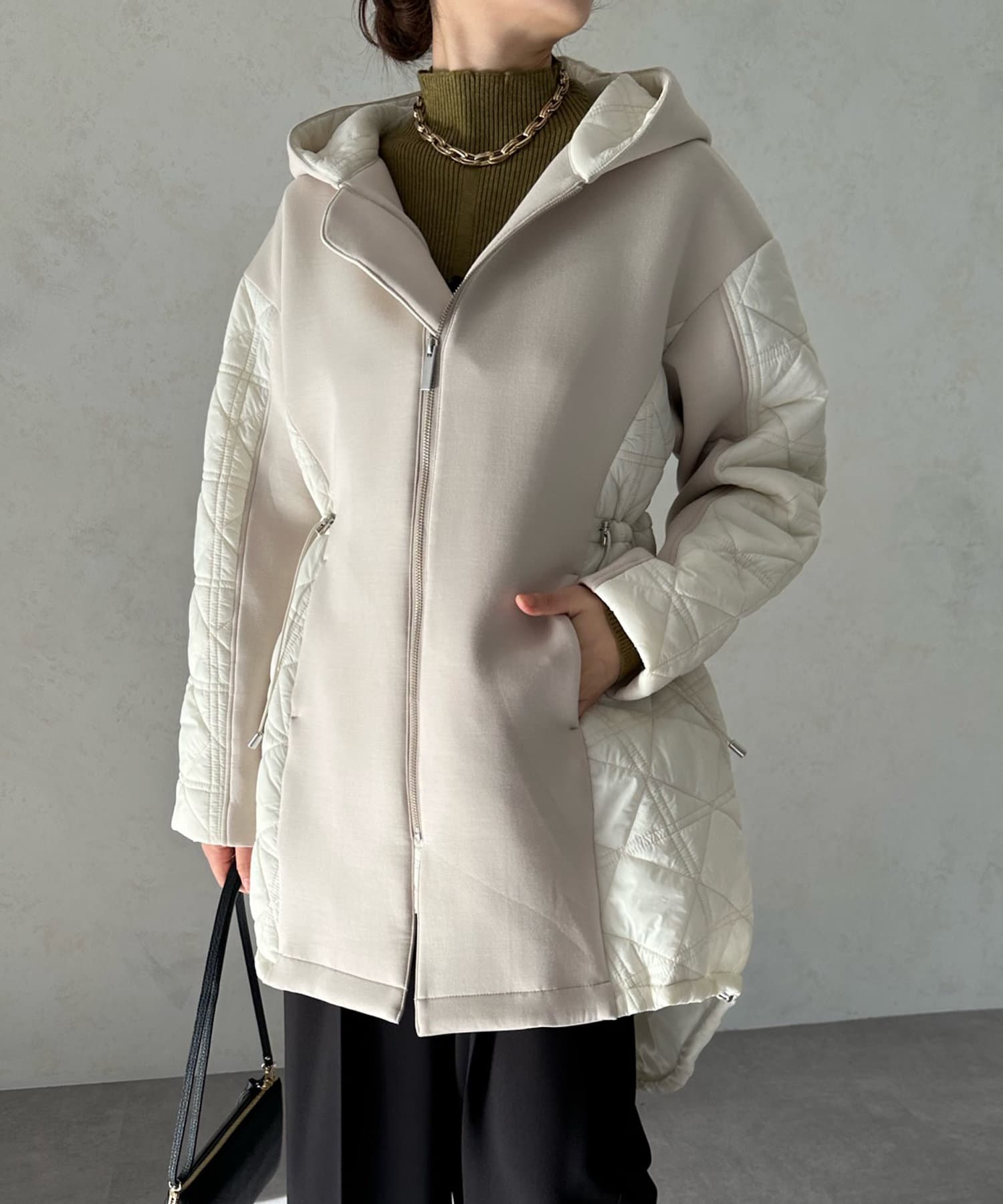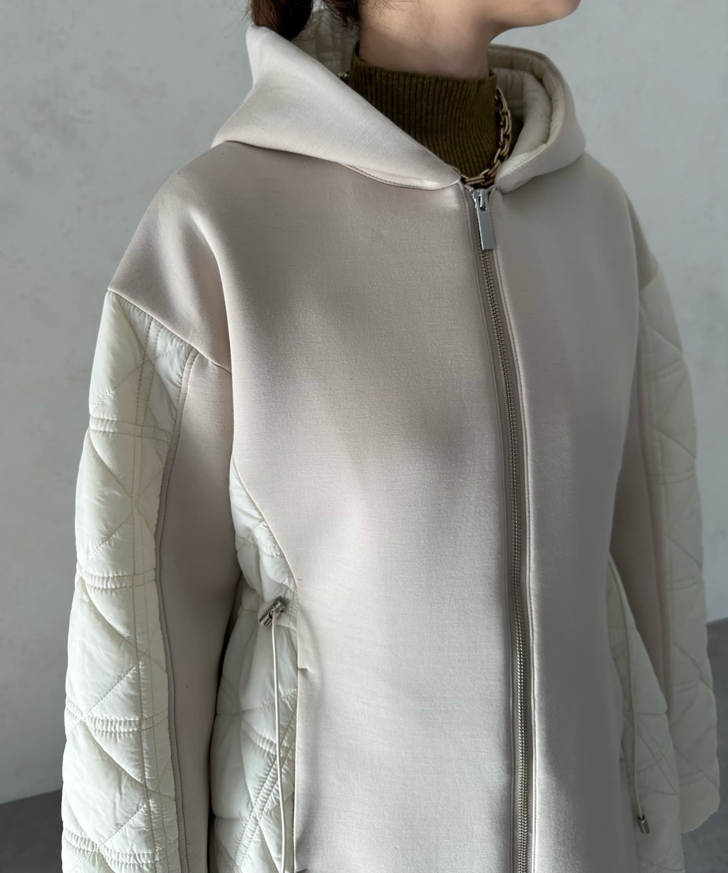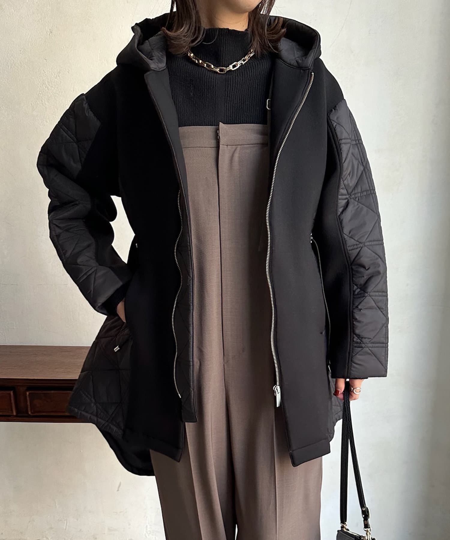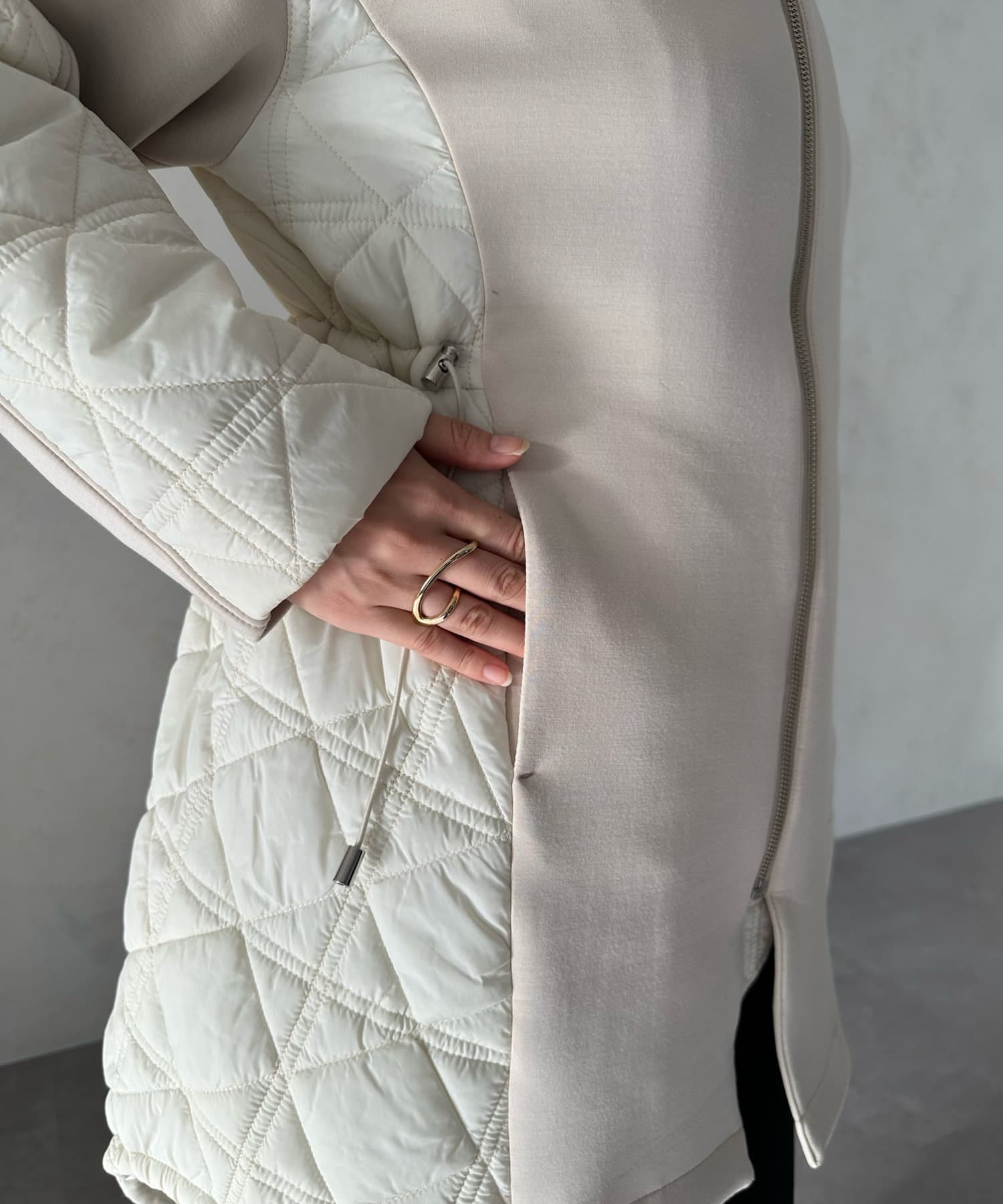 キルティング素材の切替が魅力のロングブルゾン!