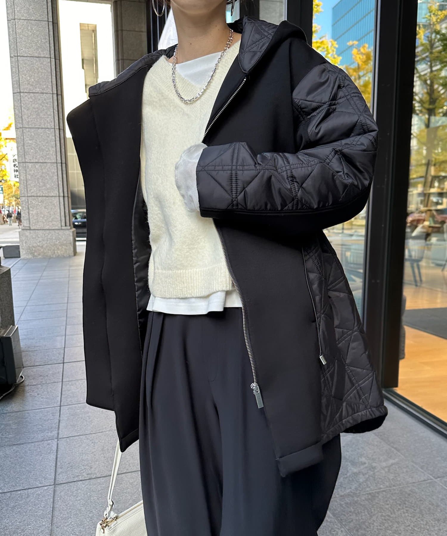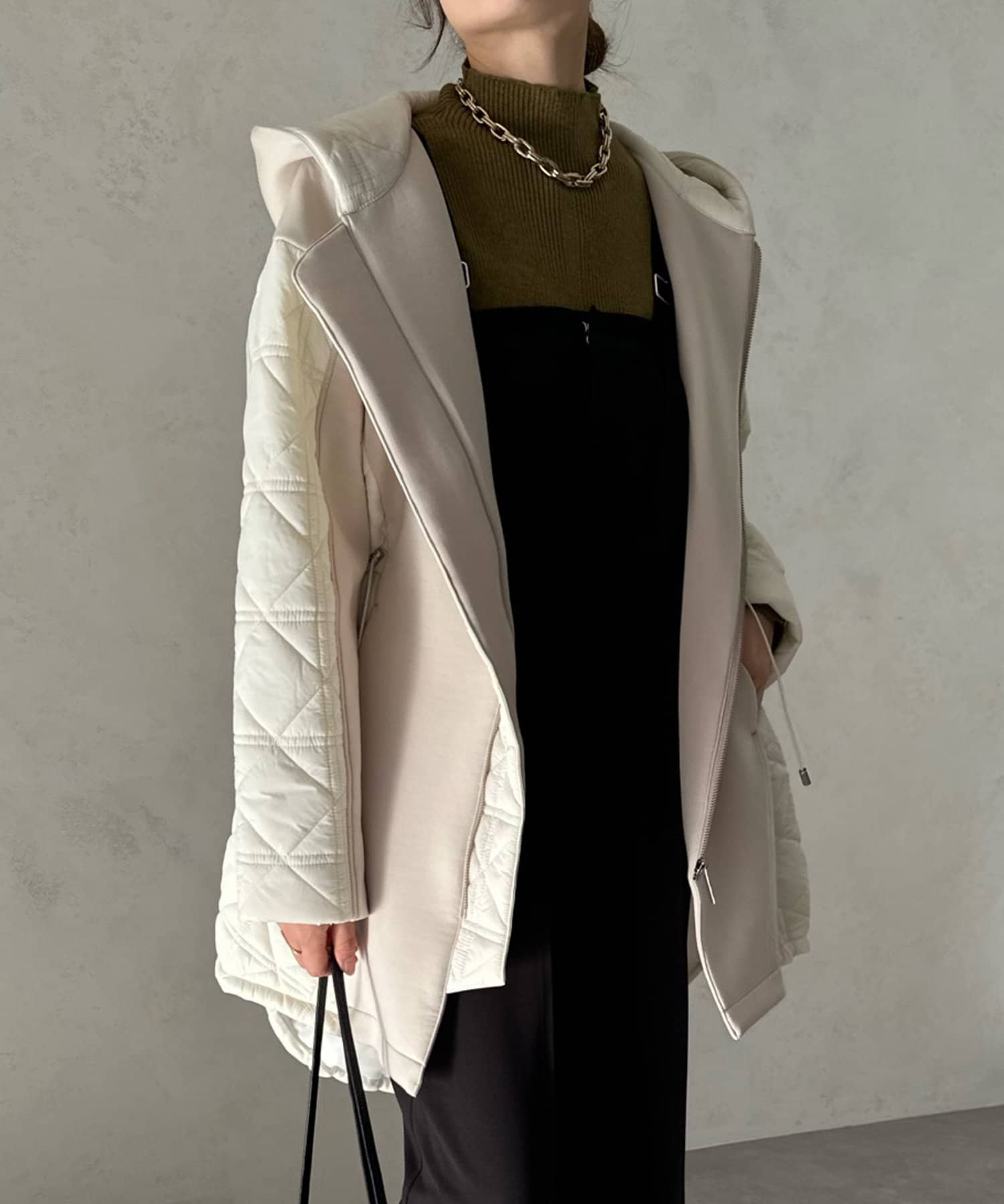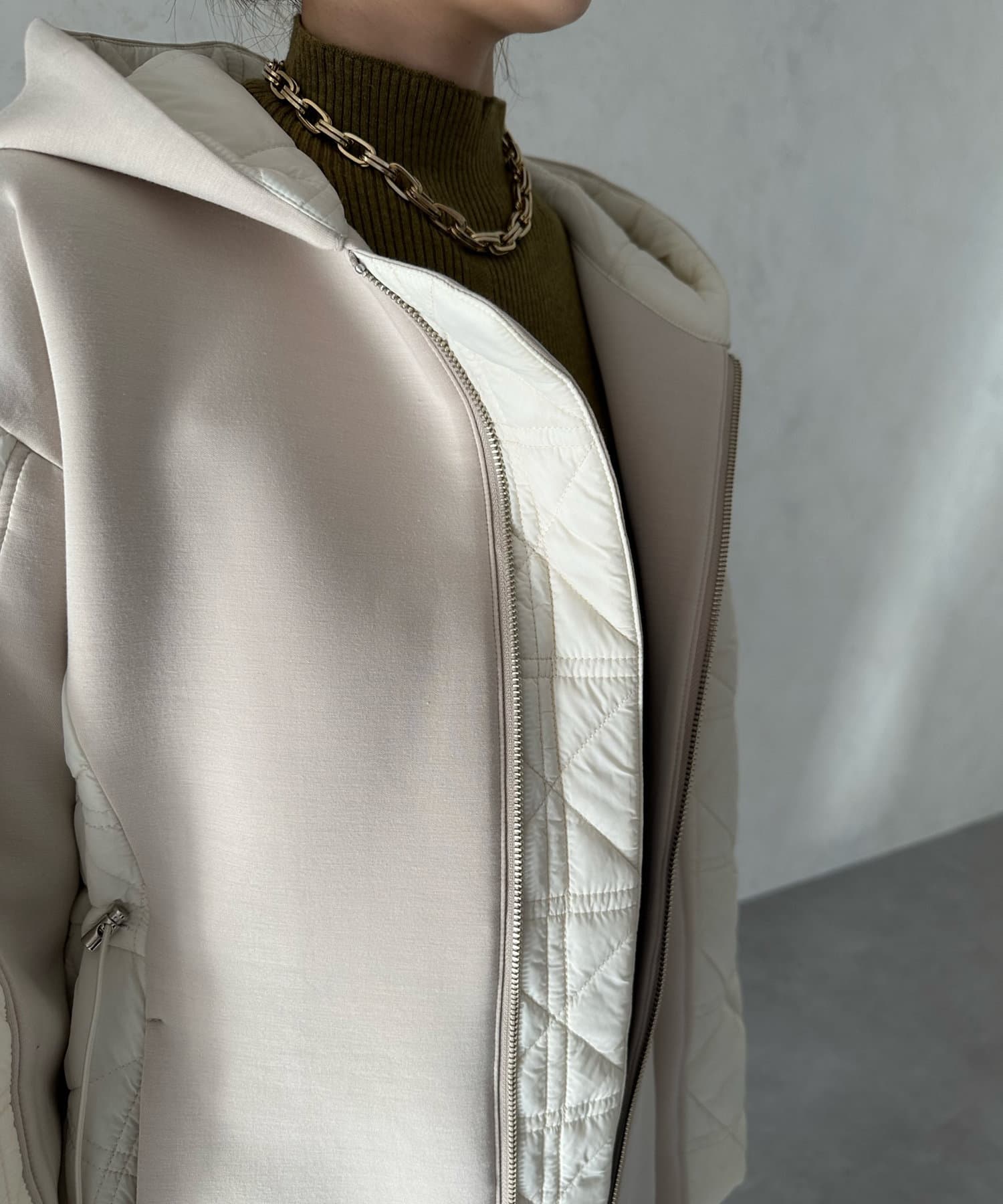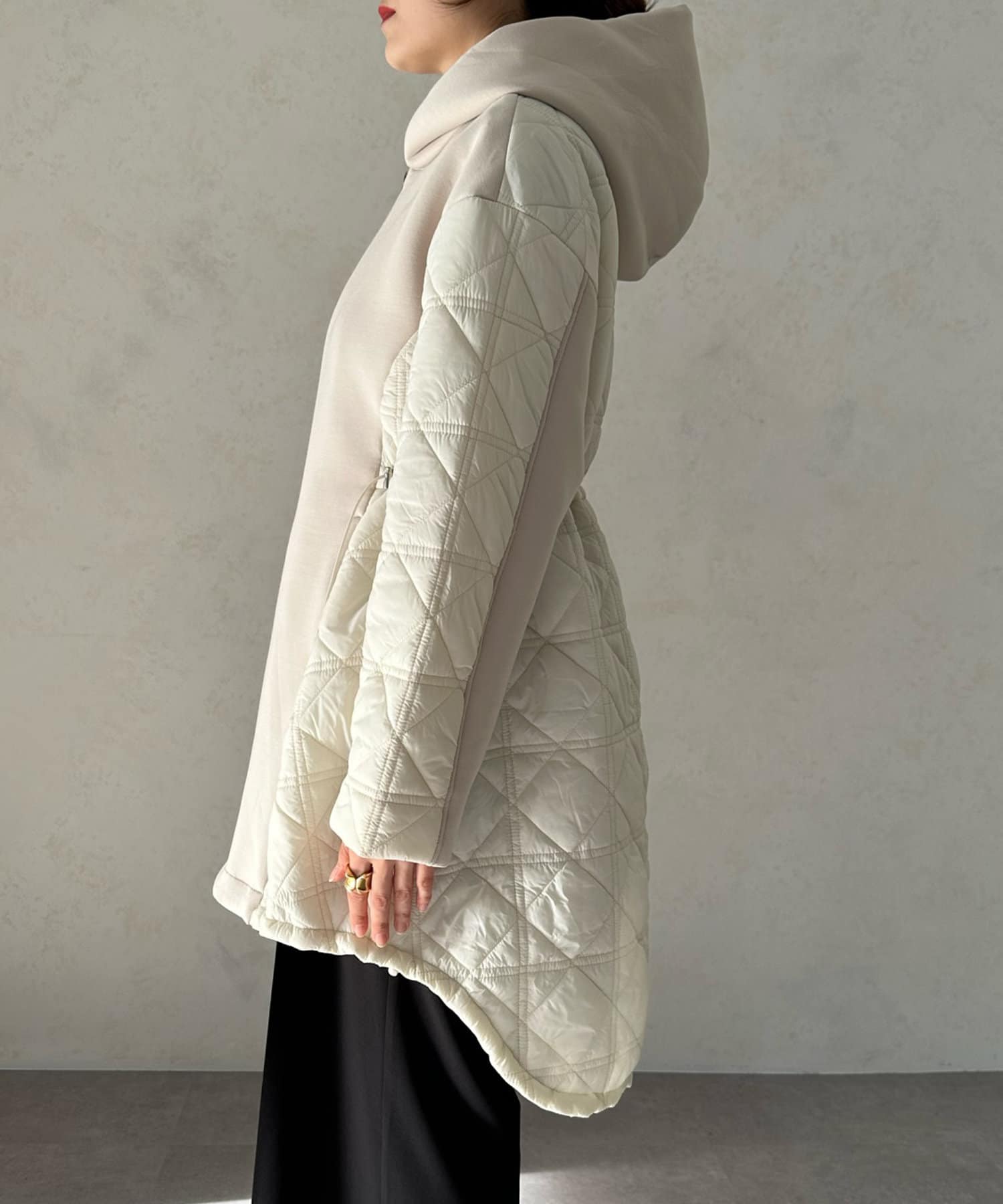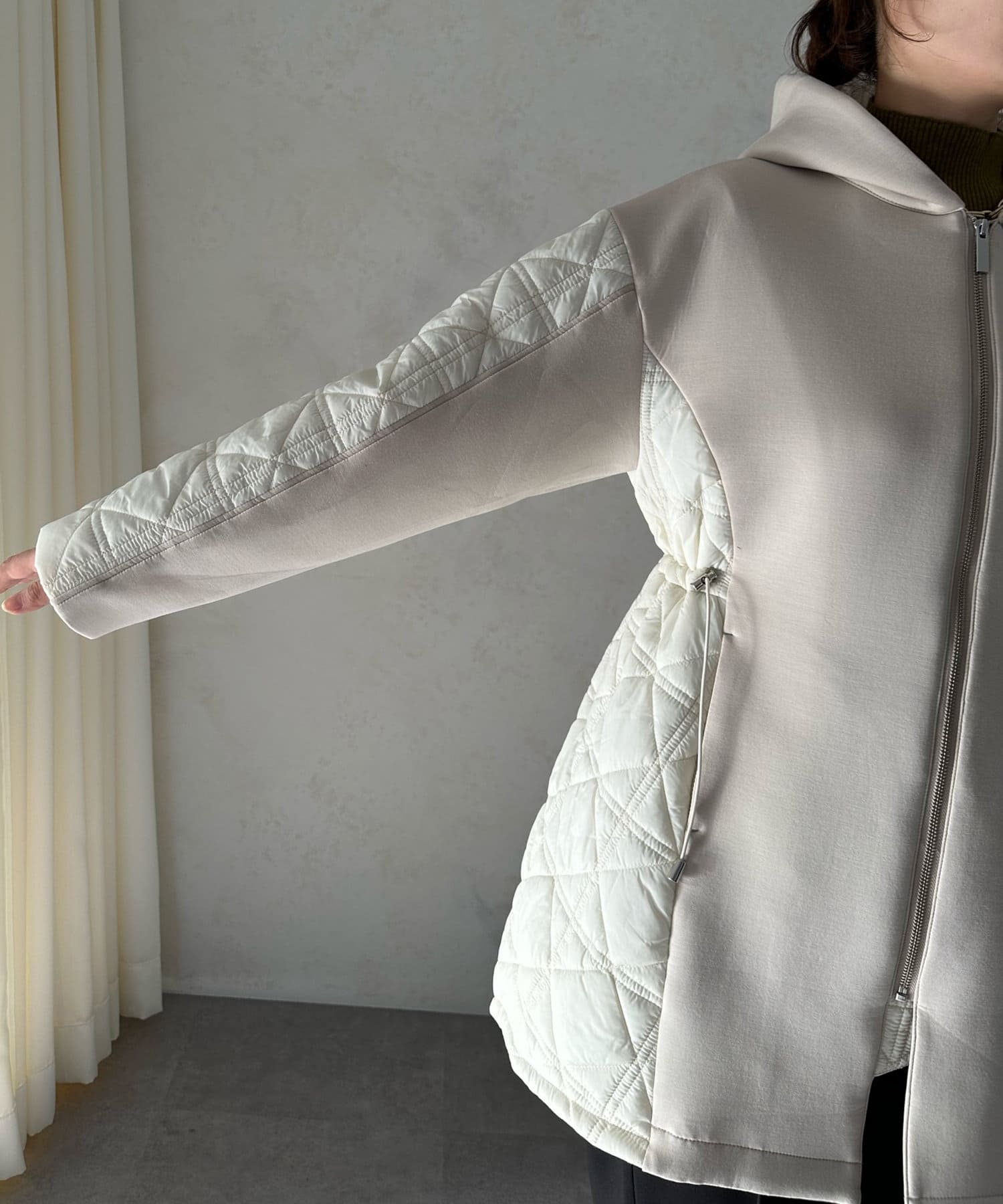キルティング素材の切替が魅力のロングブルゾン!