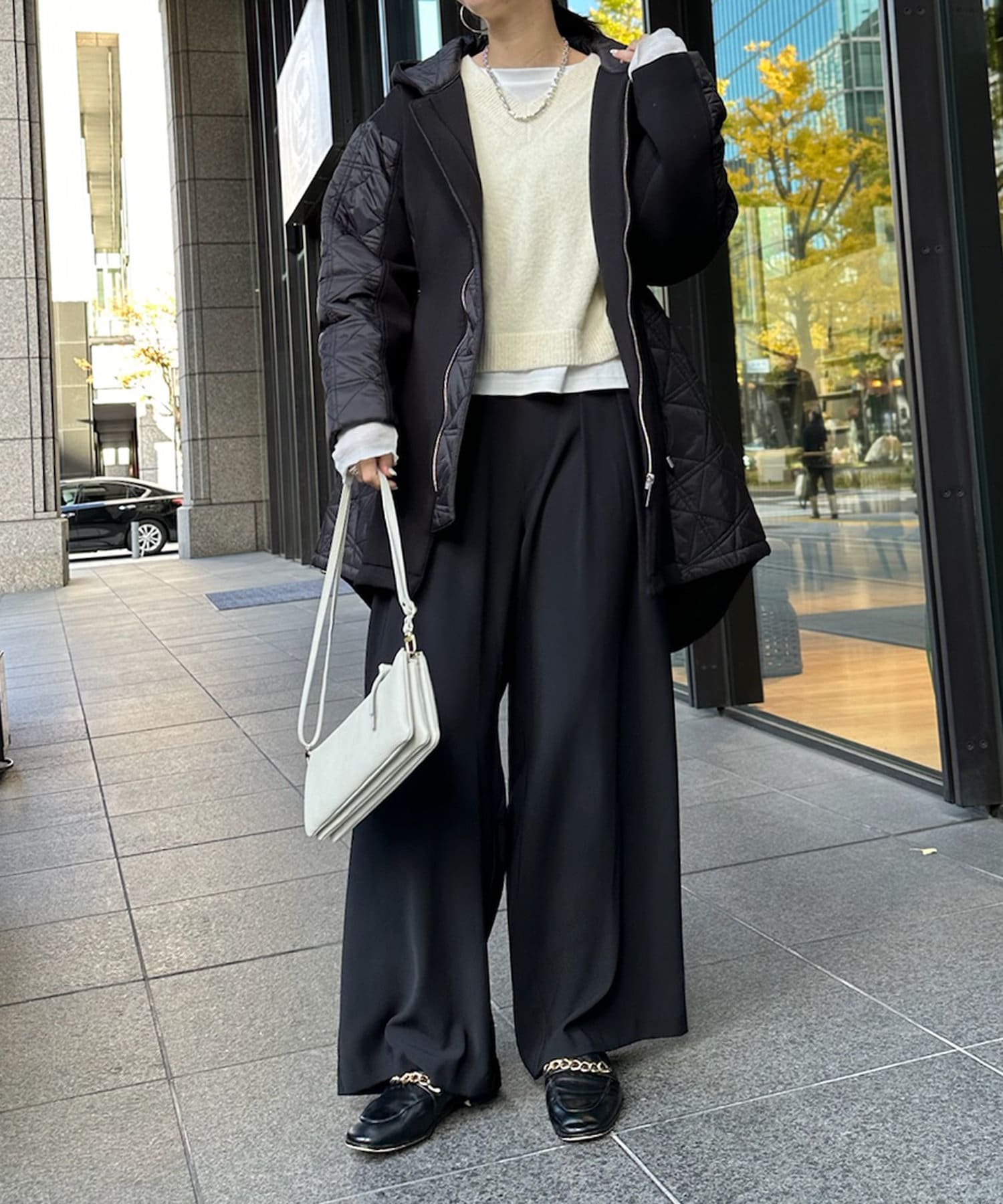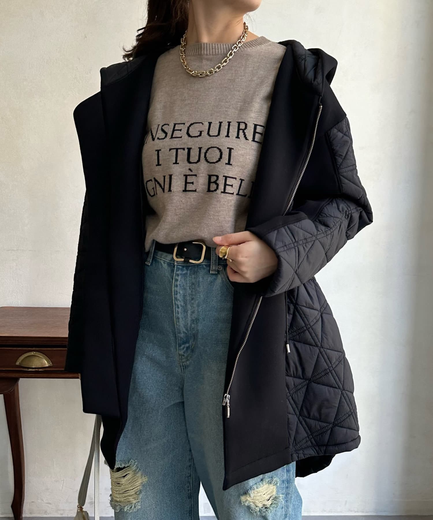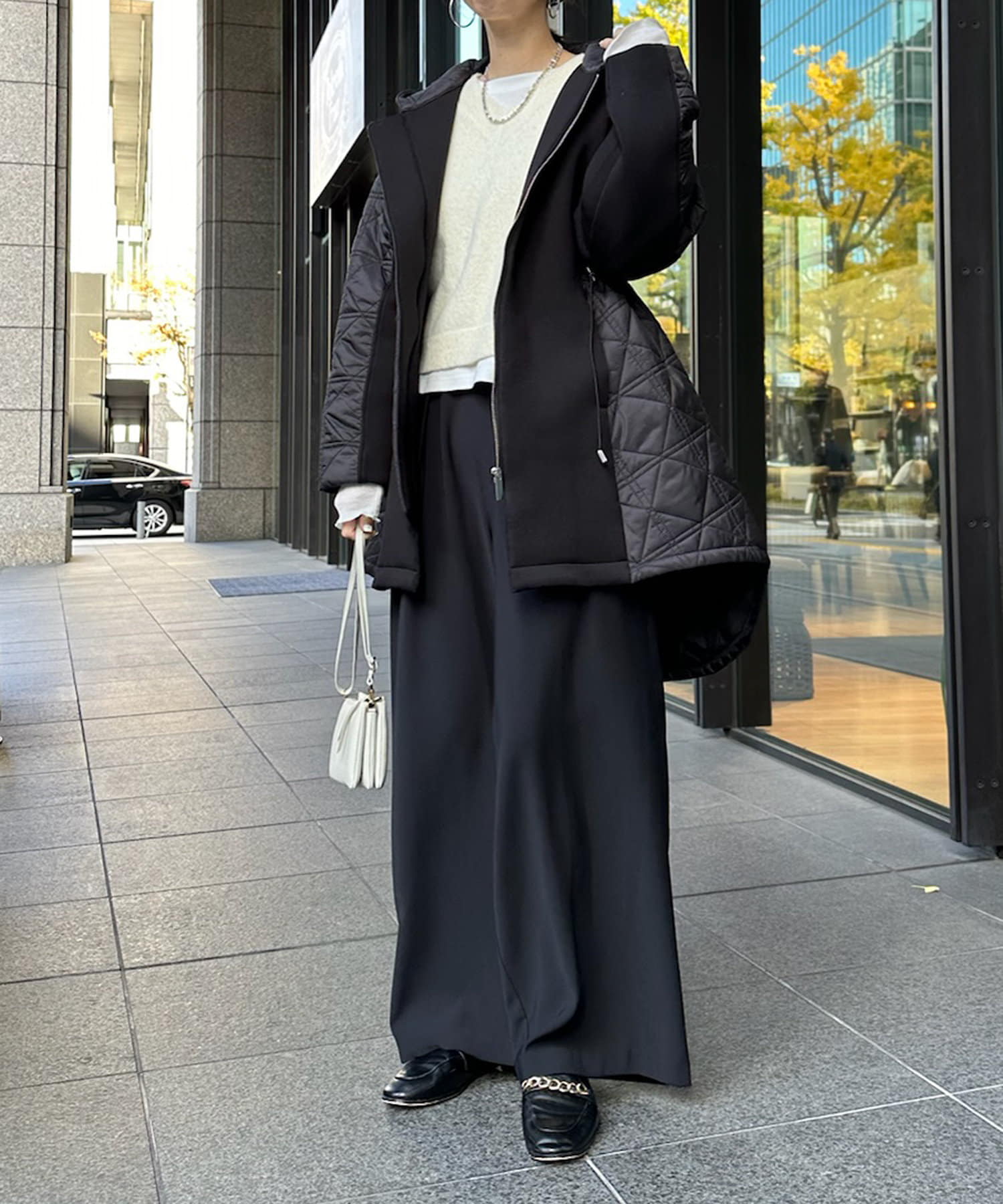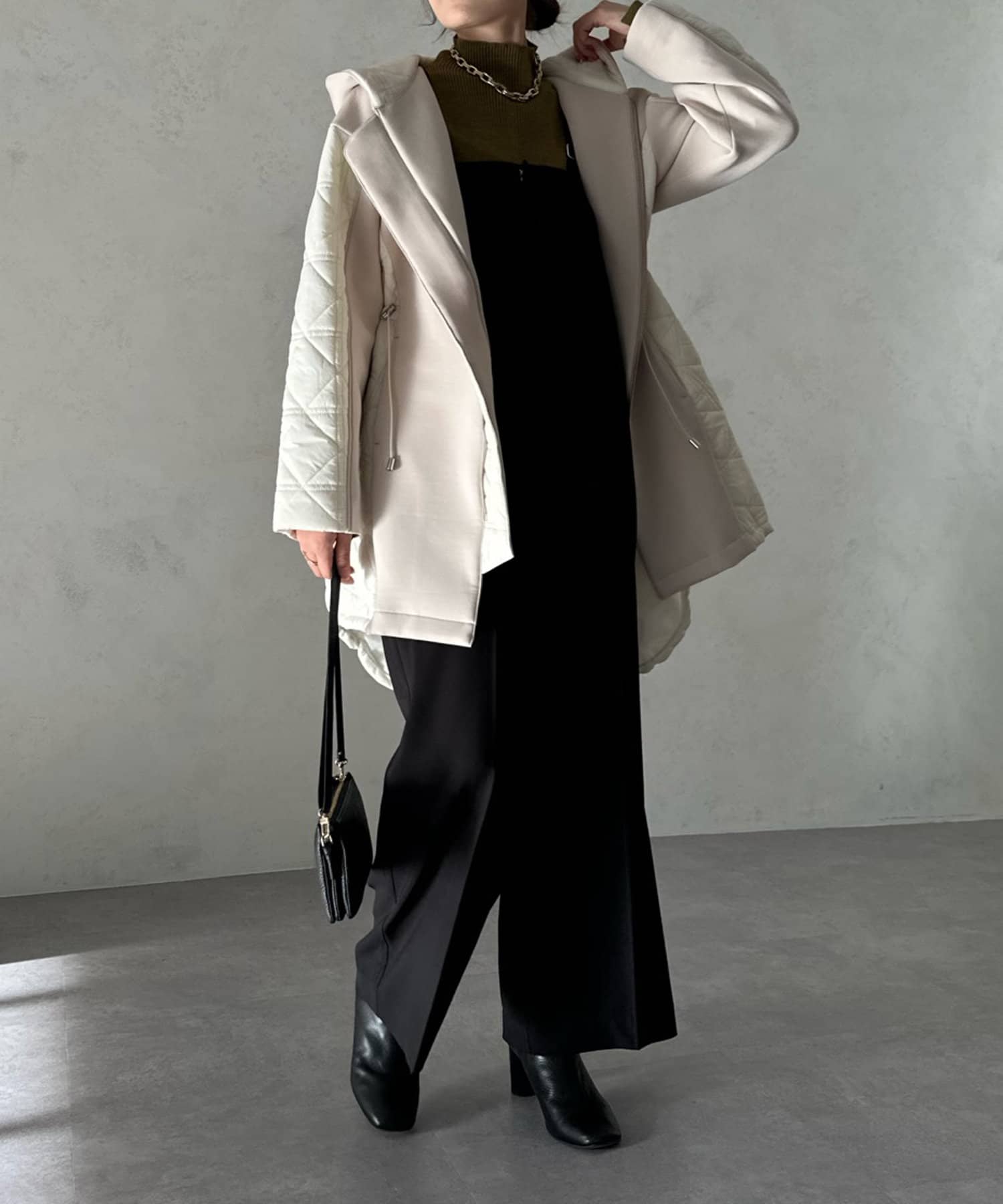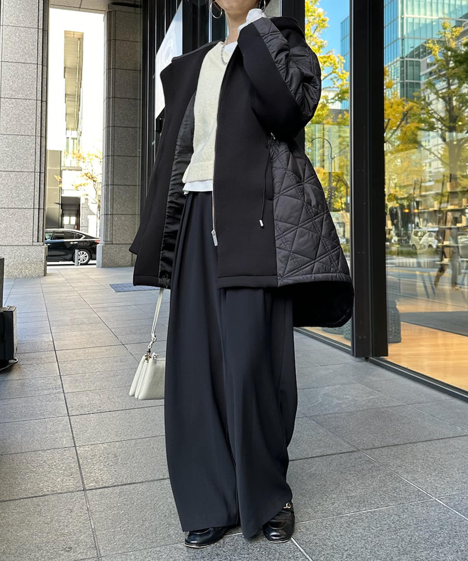 キルティング素材の切替が魅力のロングブルゾン!