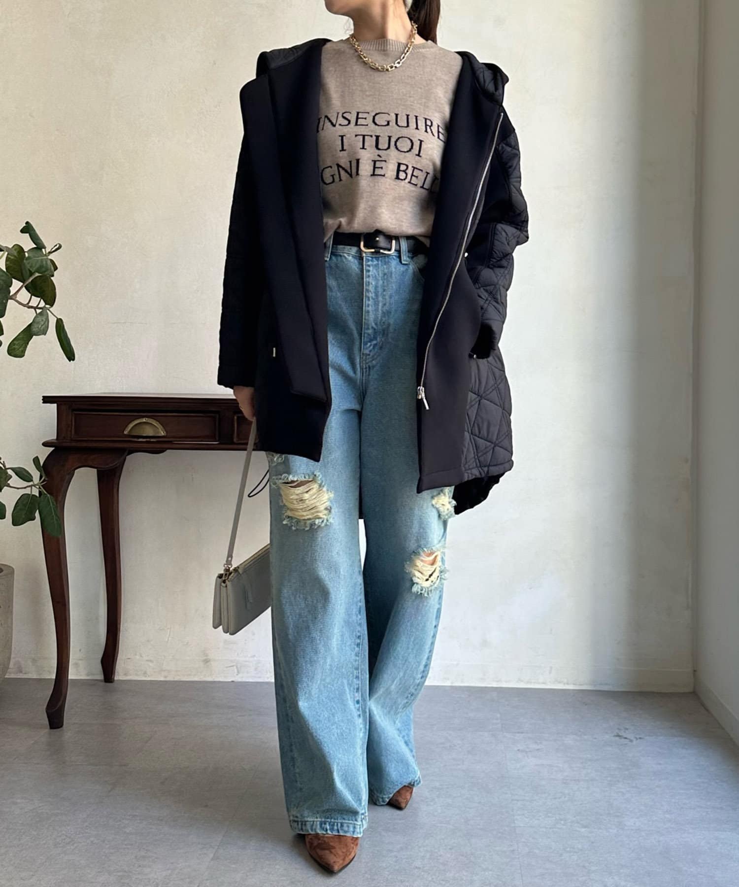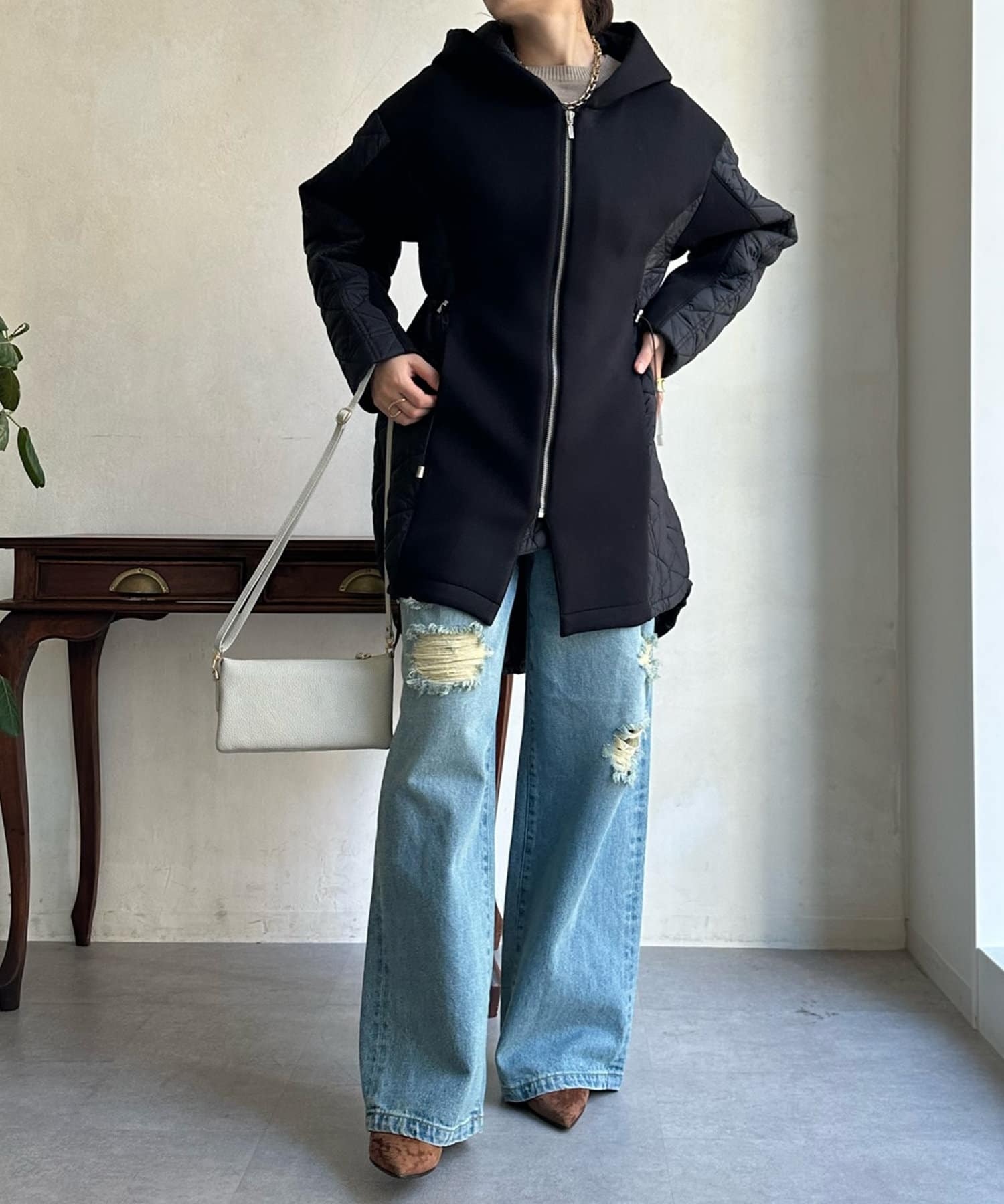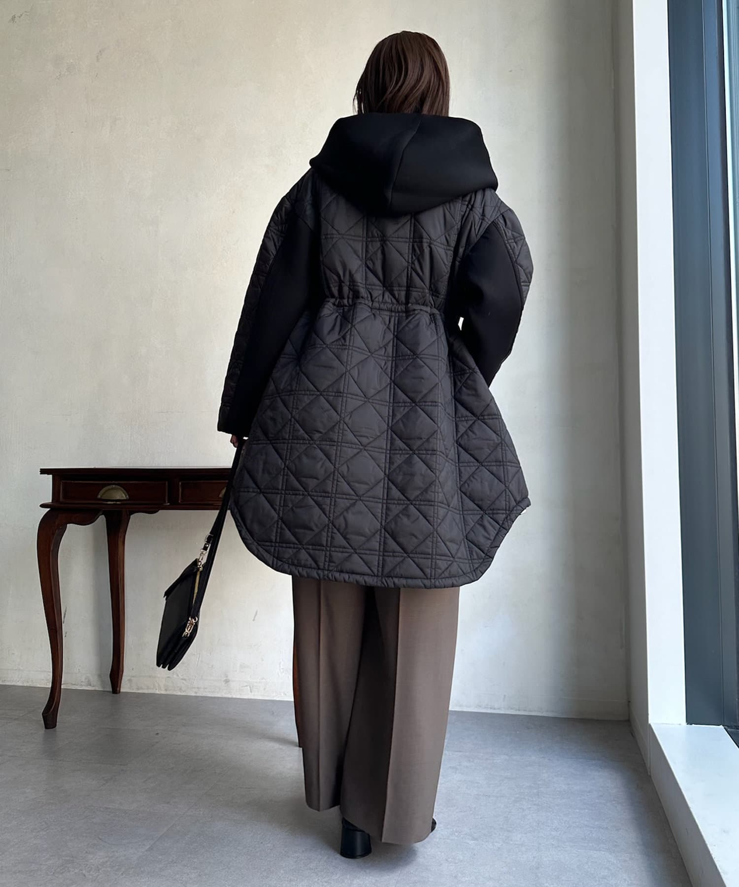 大き目のフードで後ろ姿も映える1枚ですよ◎