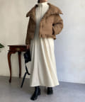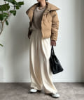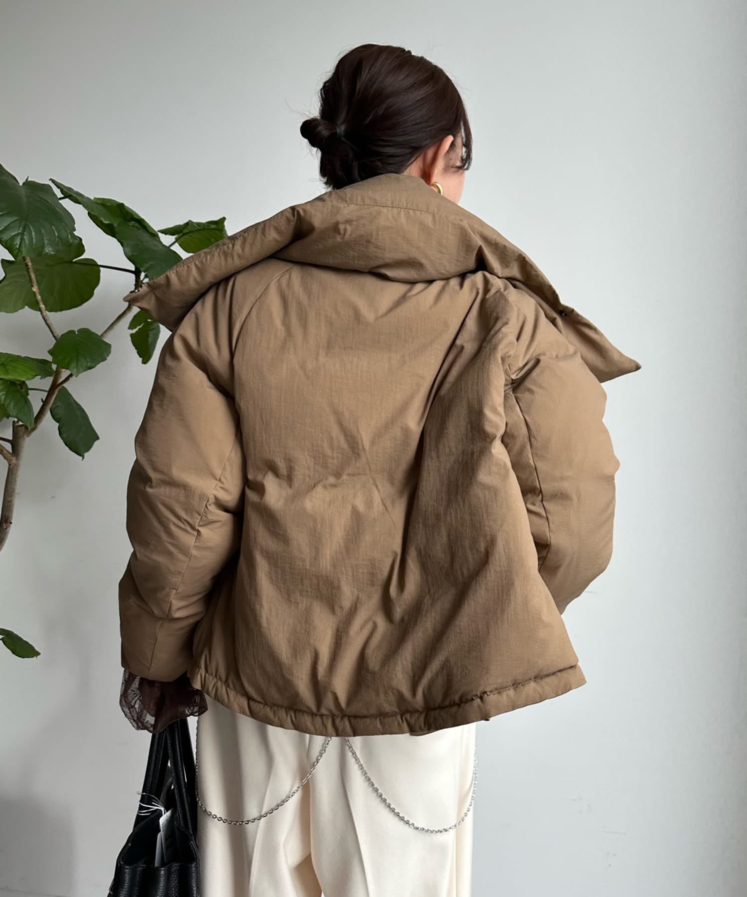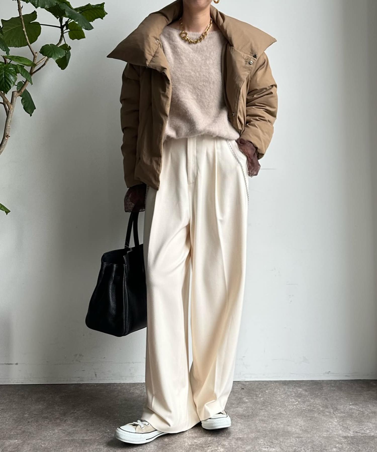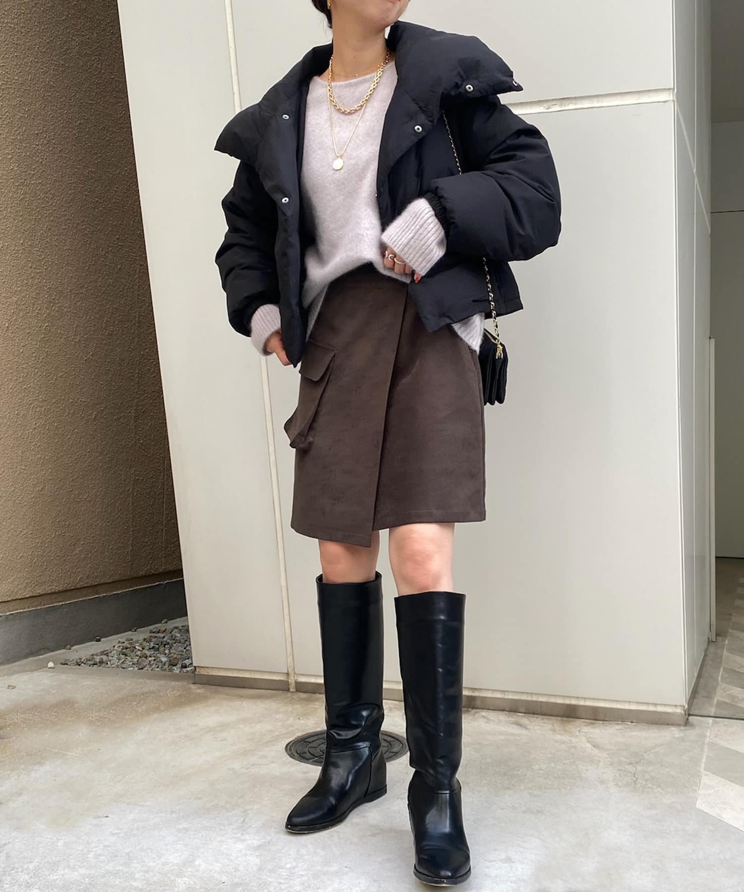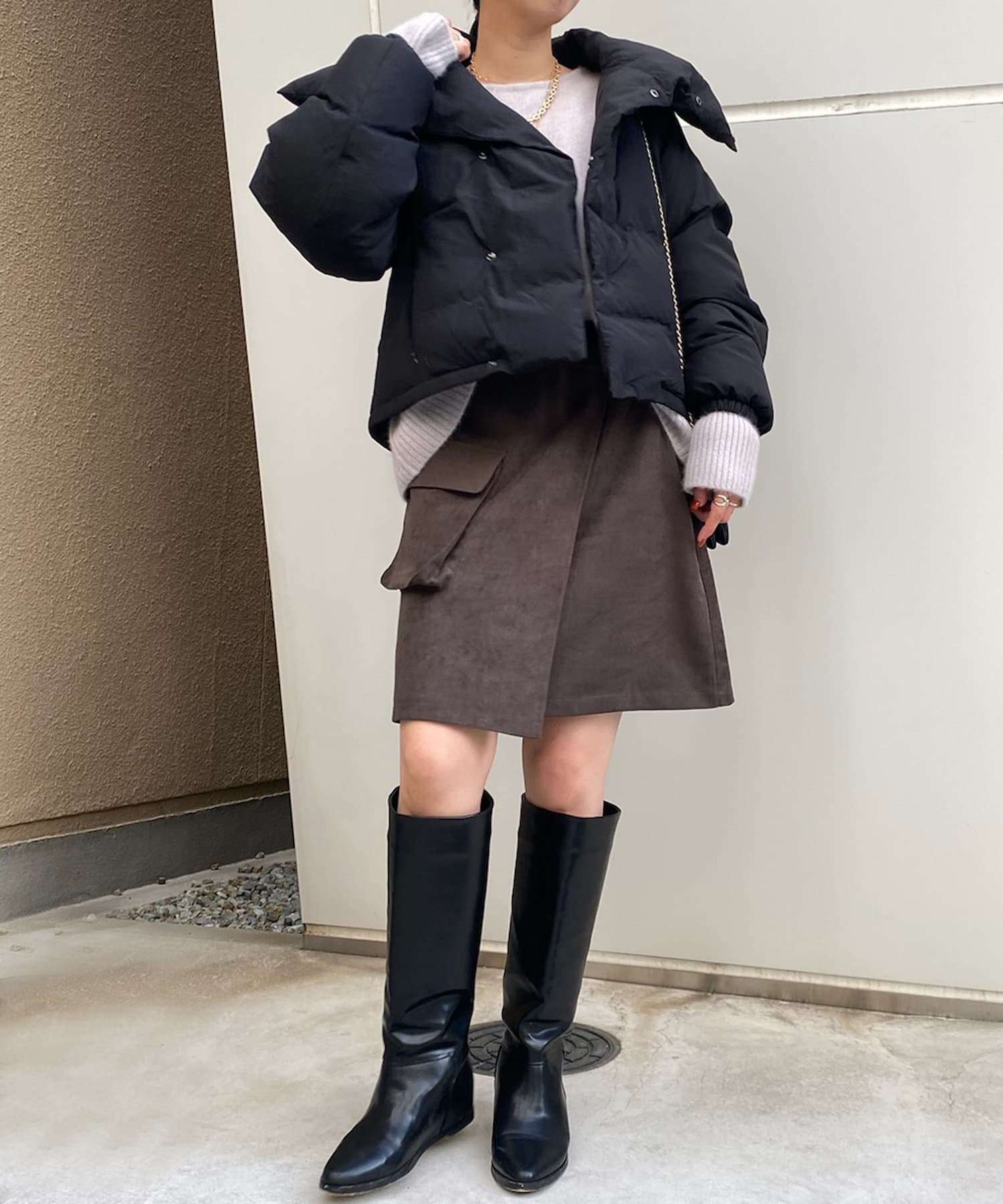 大き目の襟が映えるダウンジャケットとショート丈がトレンド感をプラスしてくれ、