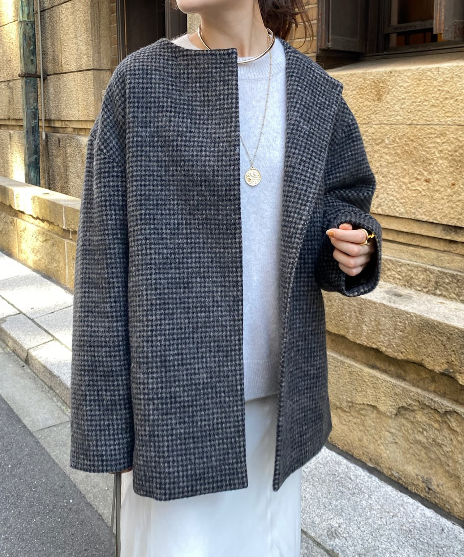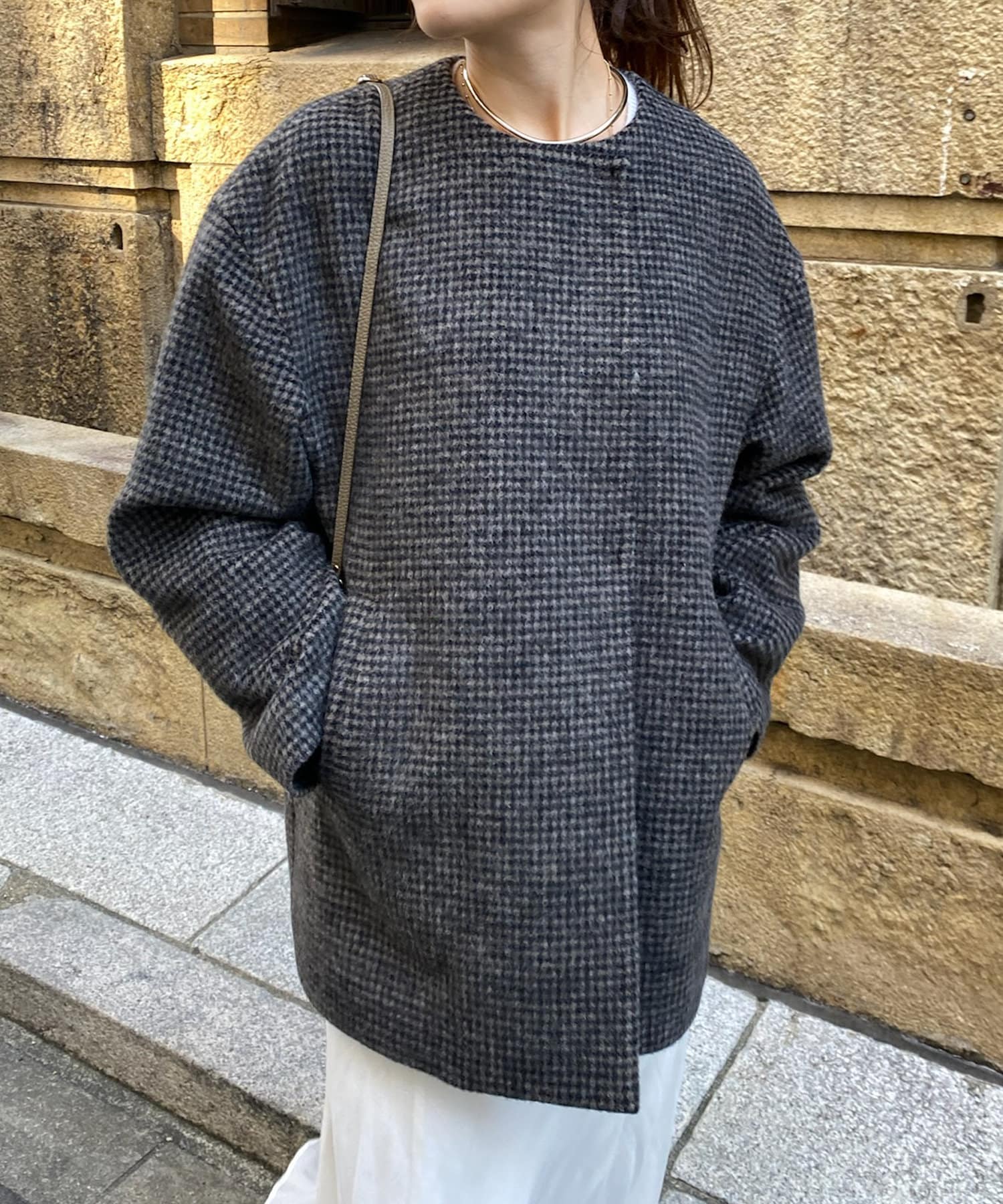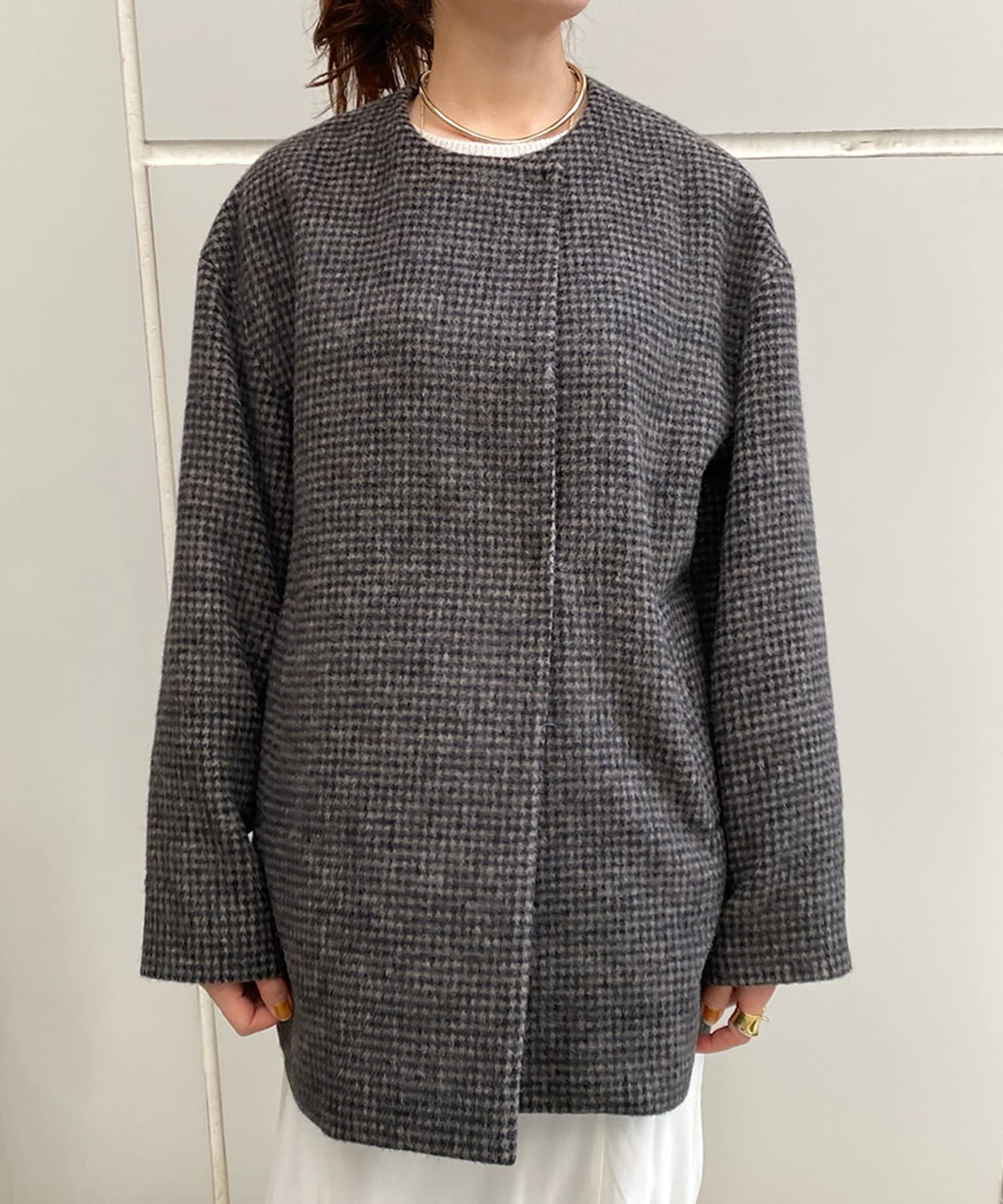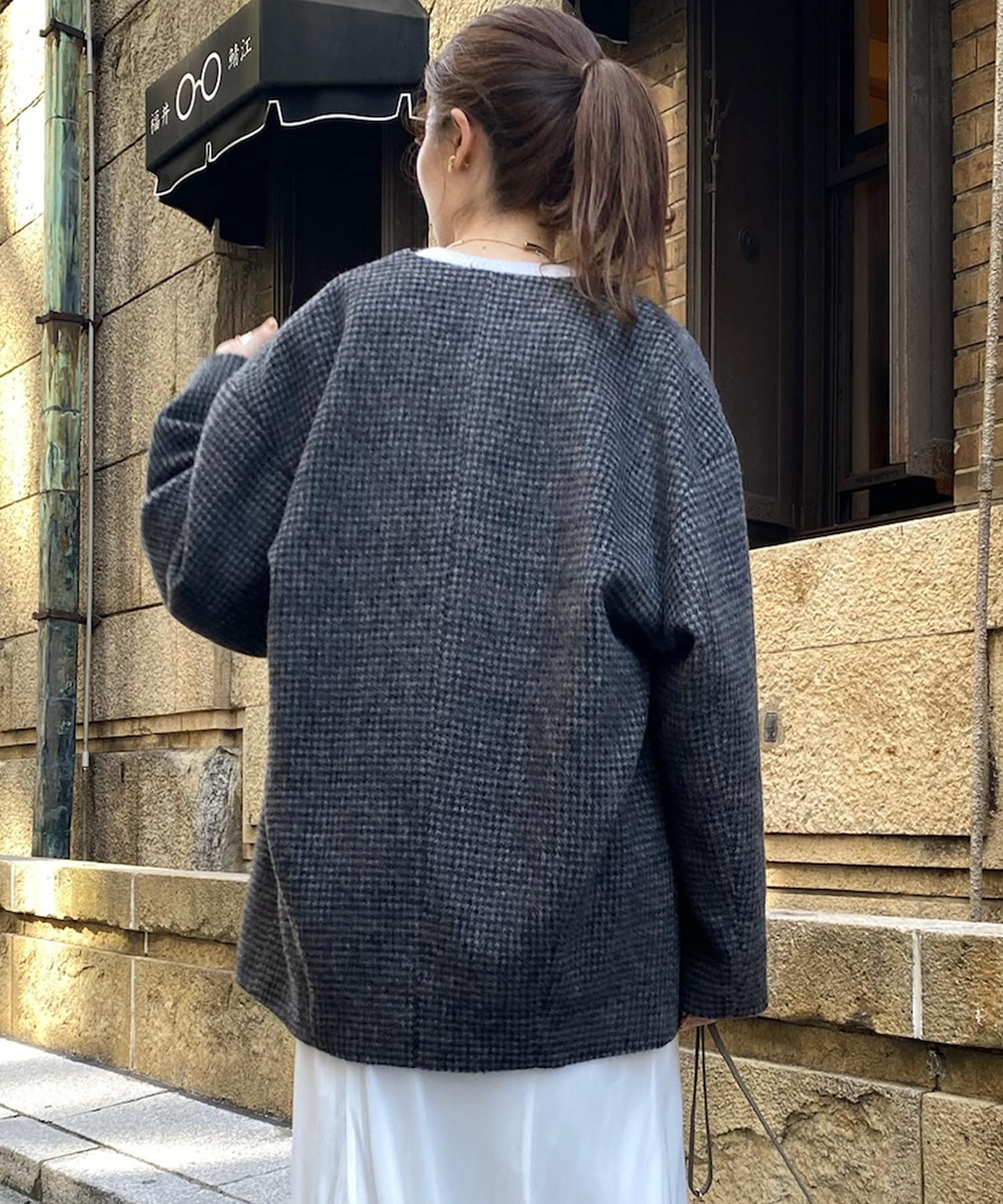 ウール混の毛足感あるシャギー素材で、秋冬らしく仕上げたジャケット。