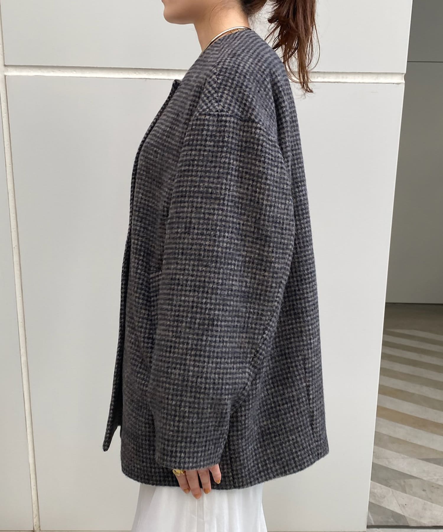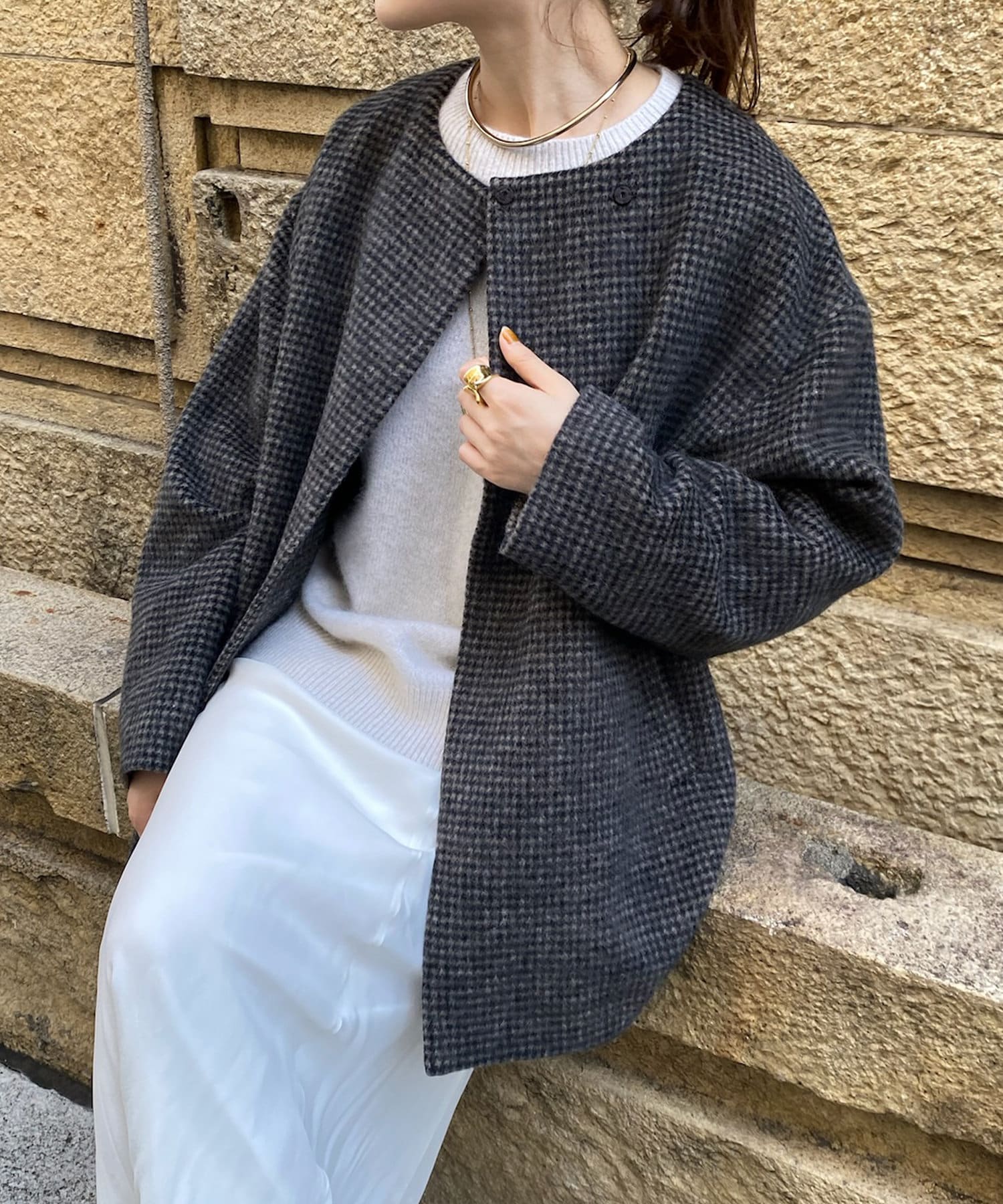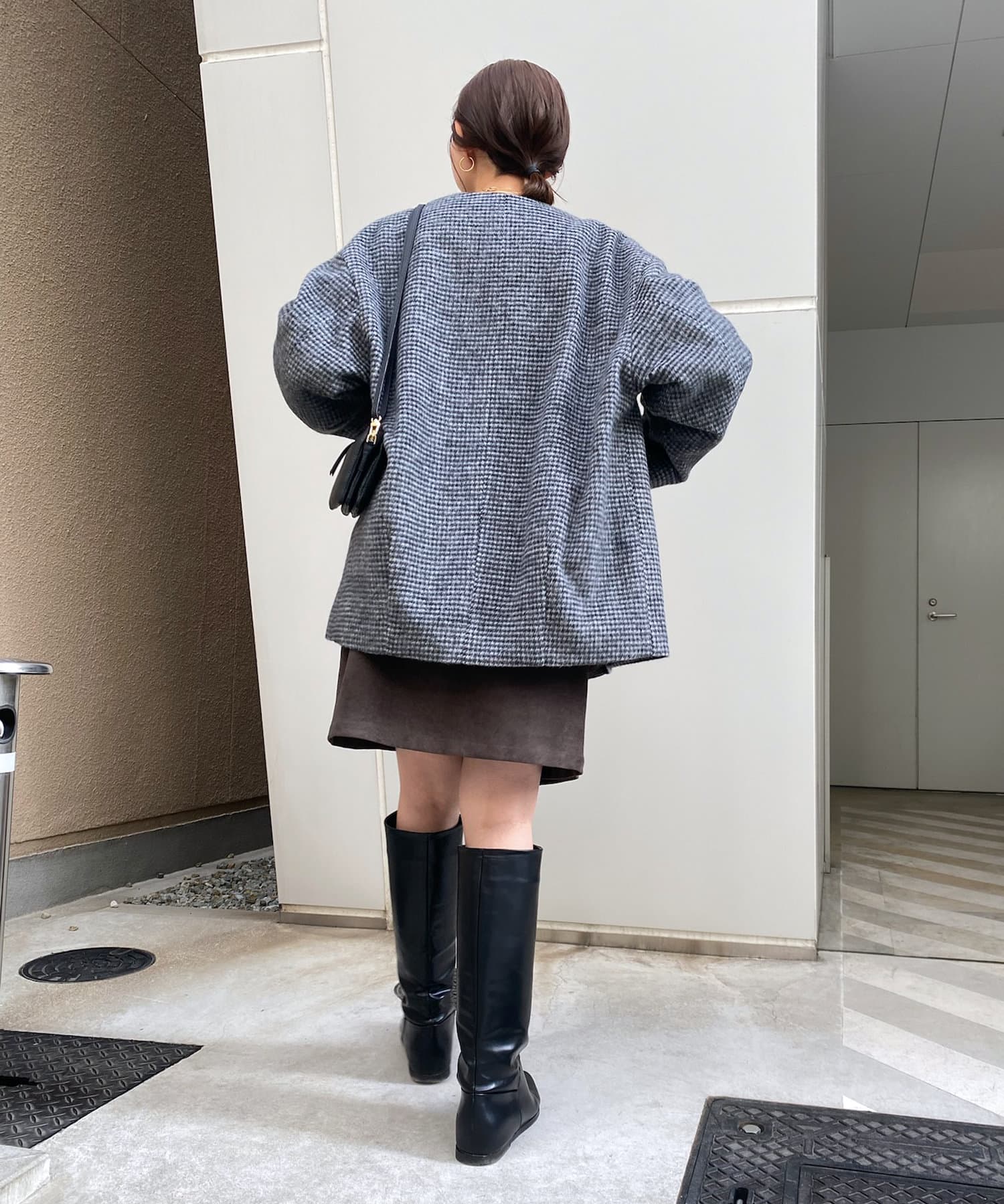 ウール混の毛足感あるシャギー素材で、秋冬らしく仕上げたジャケット。