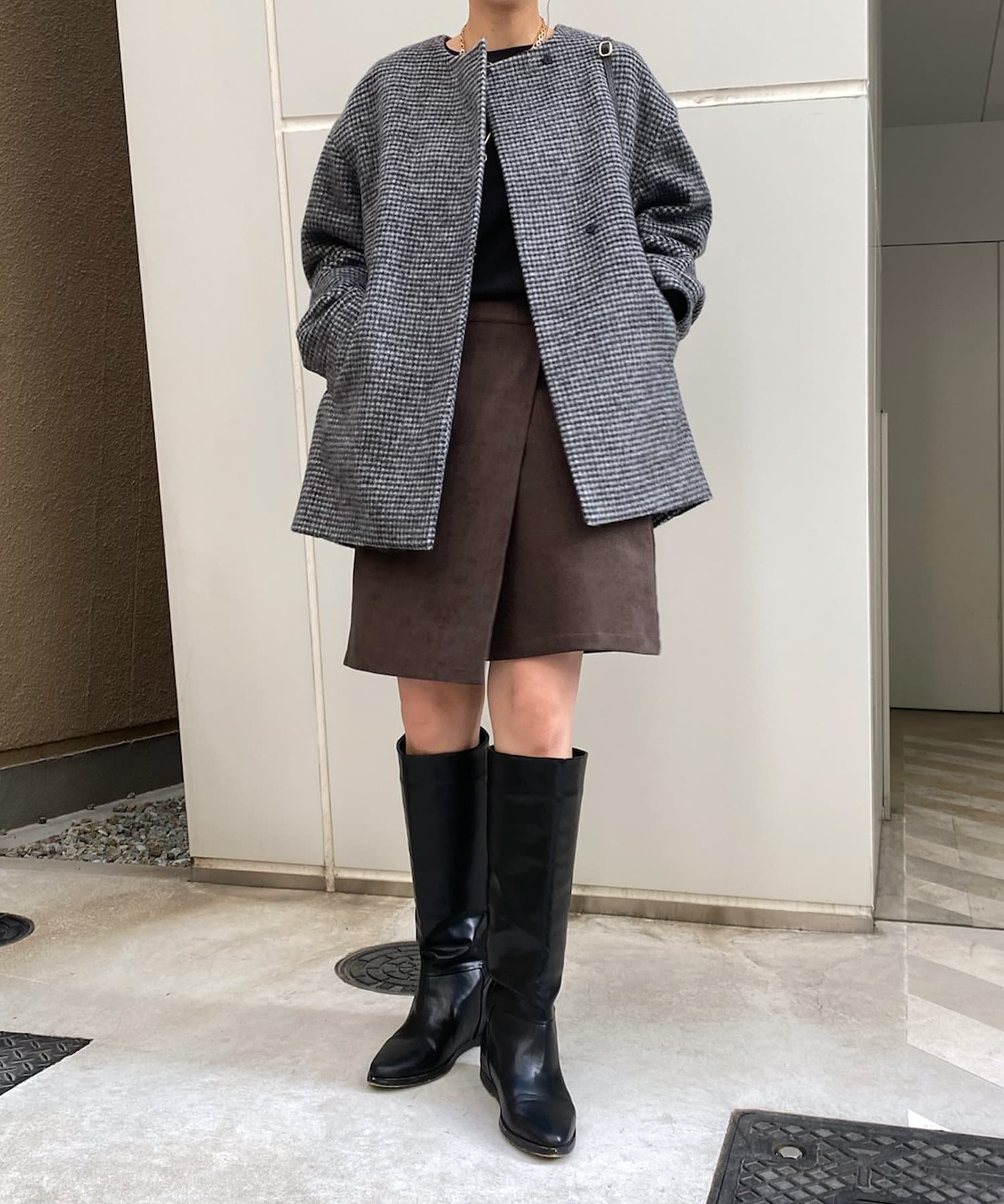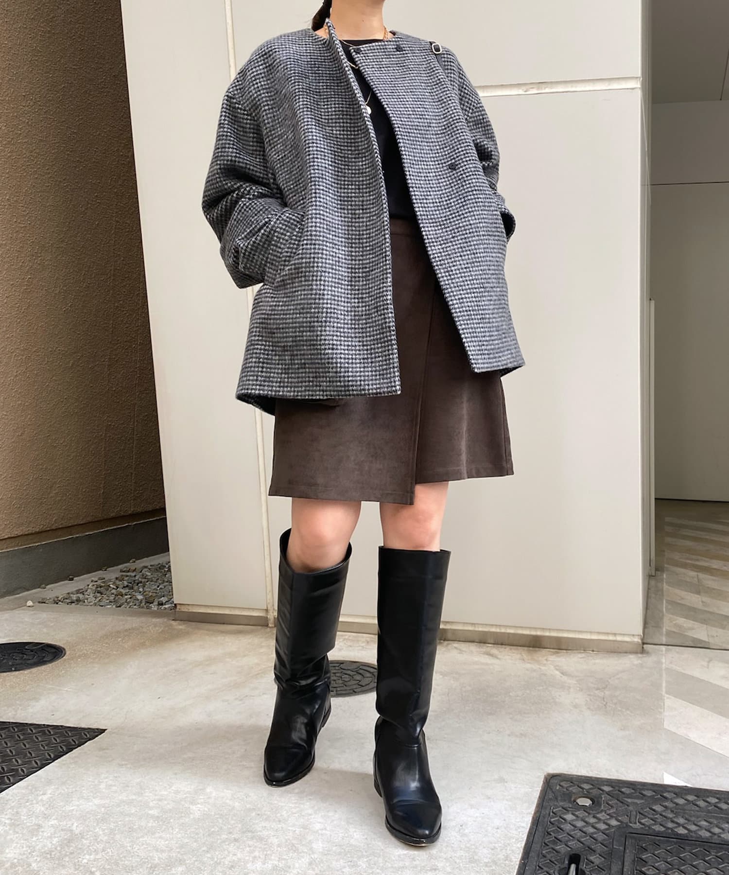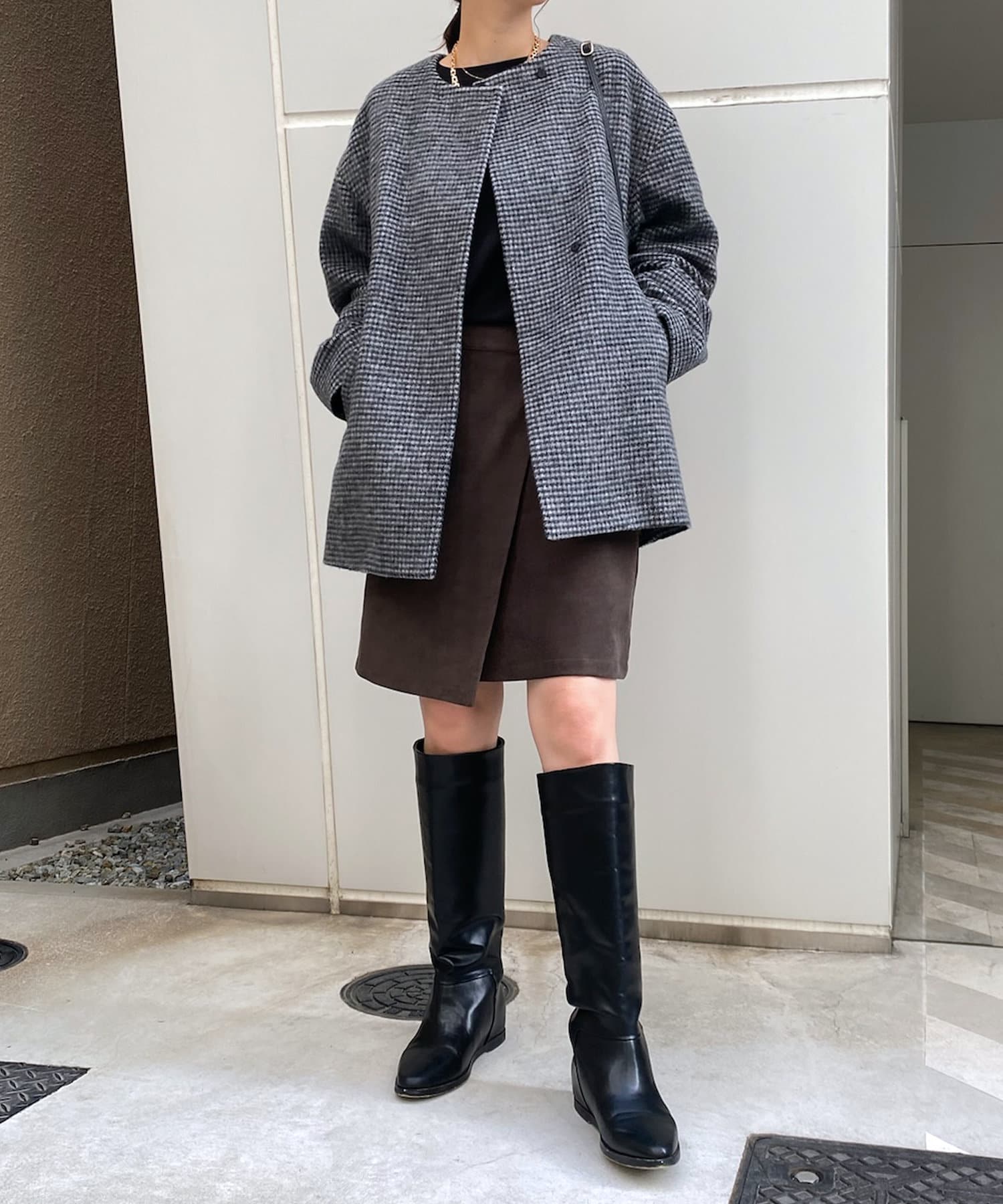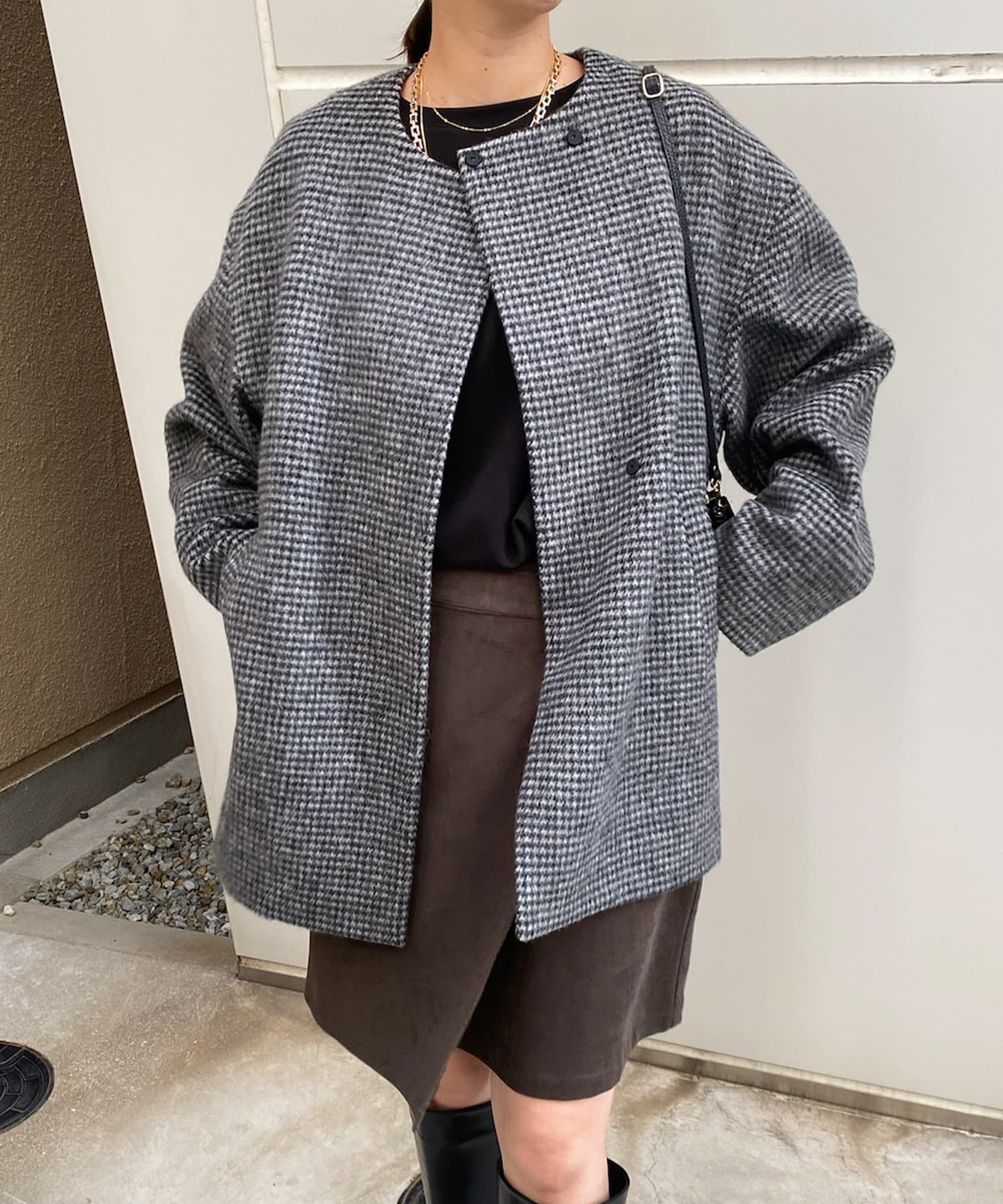 ウール混の毛足感あるシャギー素材で、秋冬らしく仕上げたジャケット。