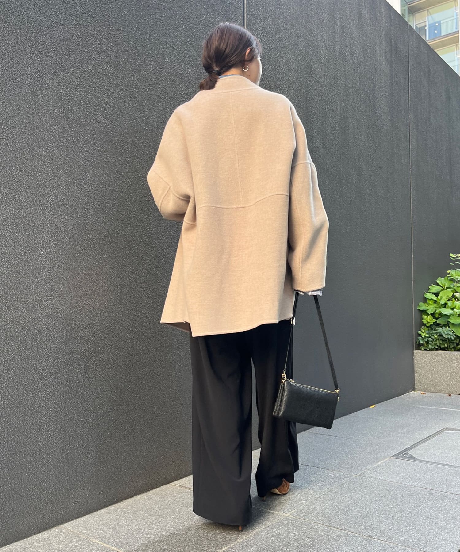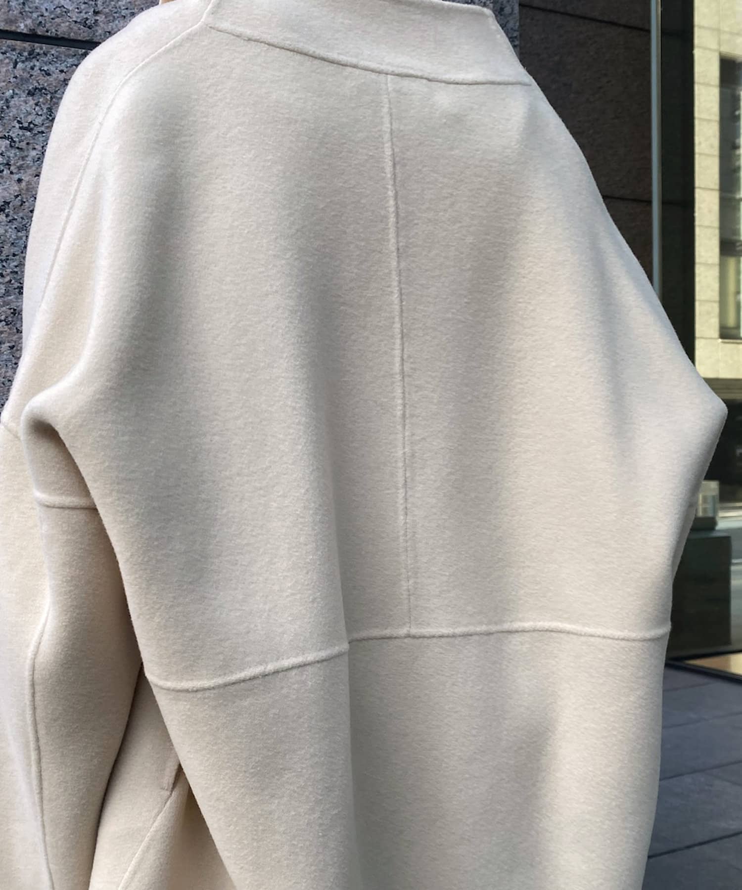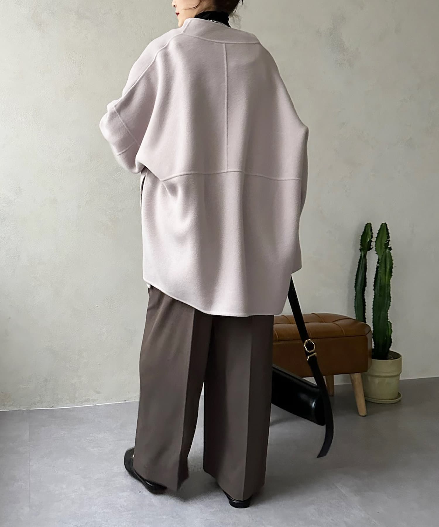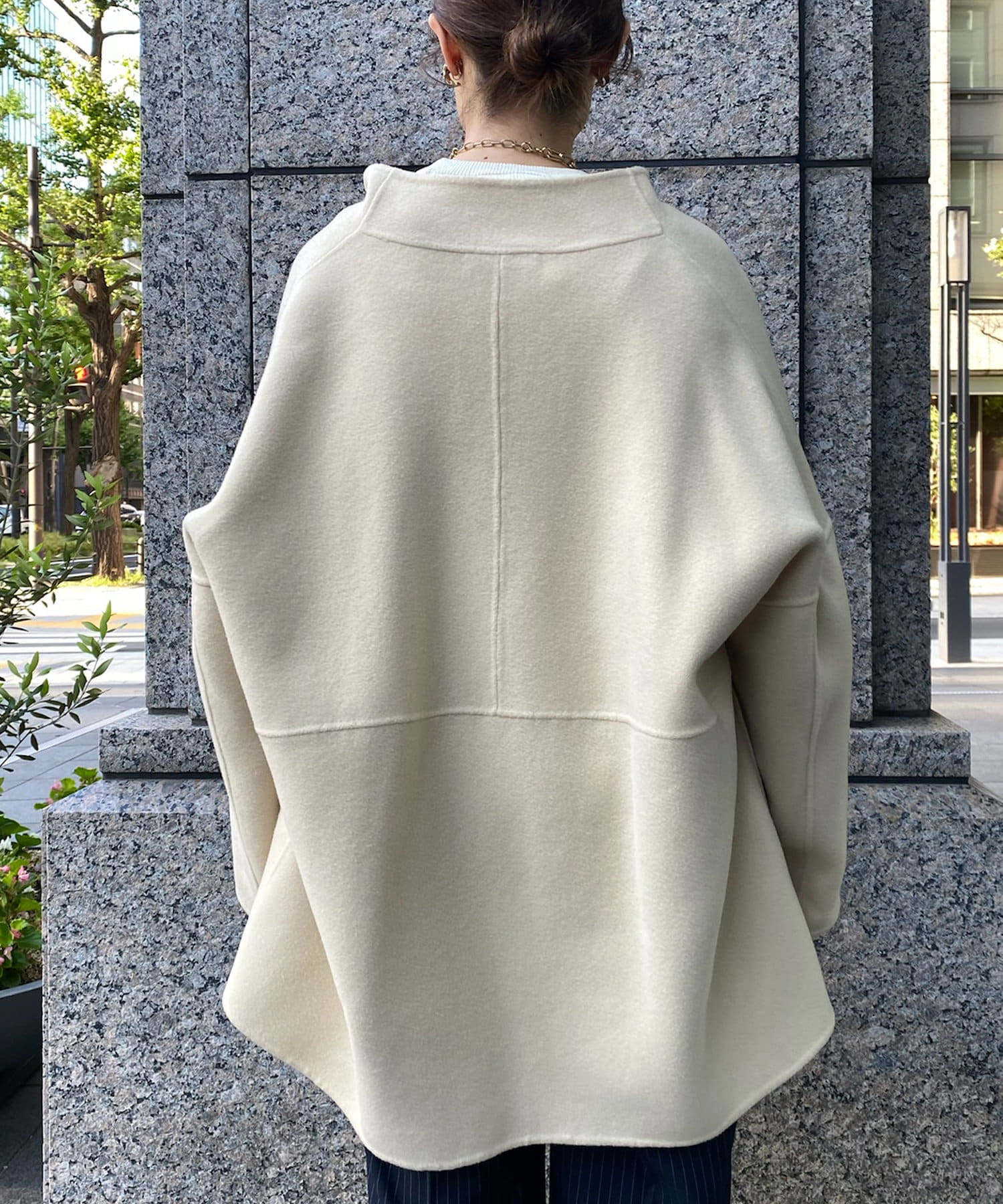 バックの切り替えはコクーンシルエットにすることで、後ろ姿にも抜かりのない印象に。