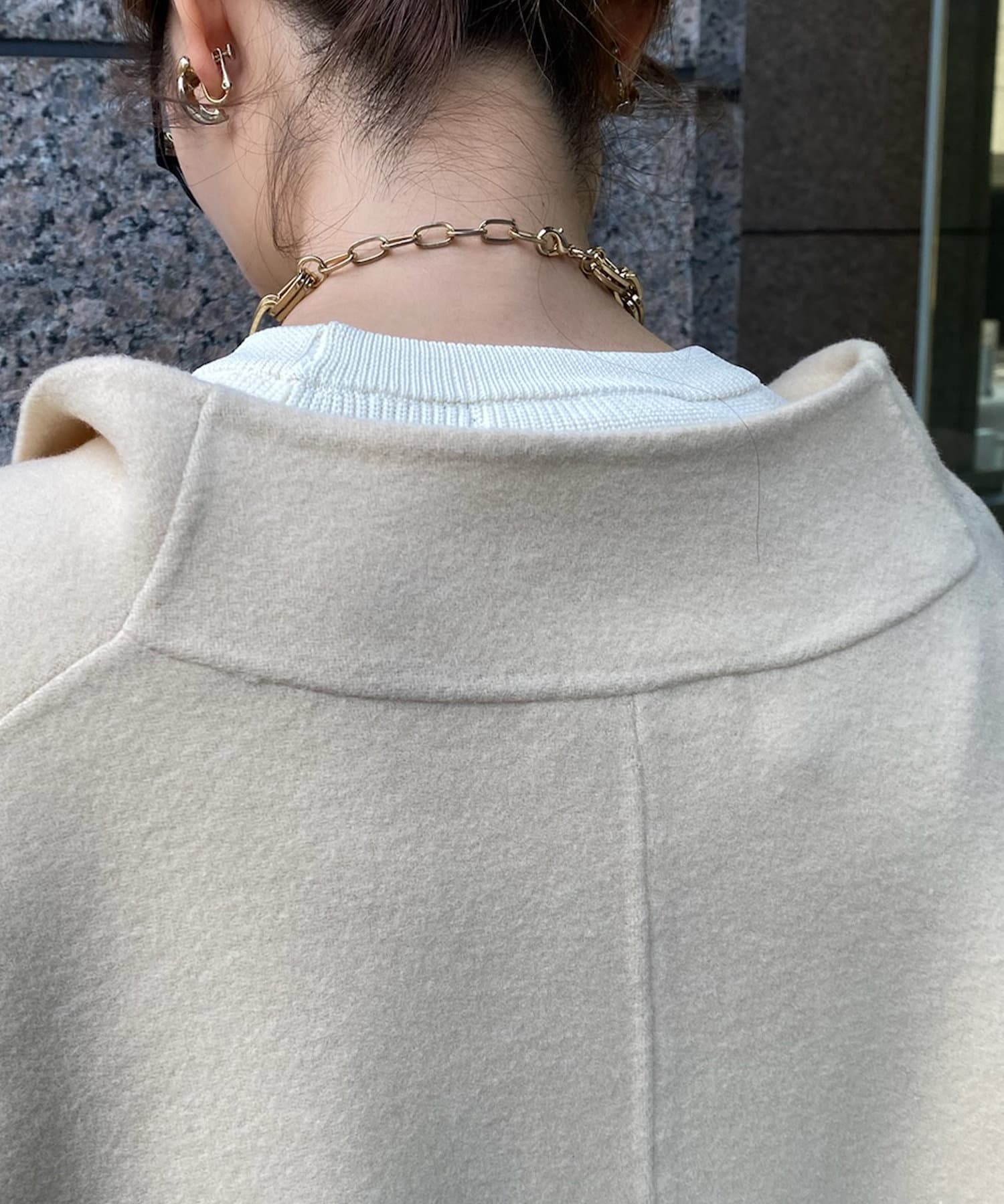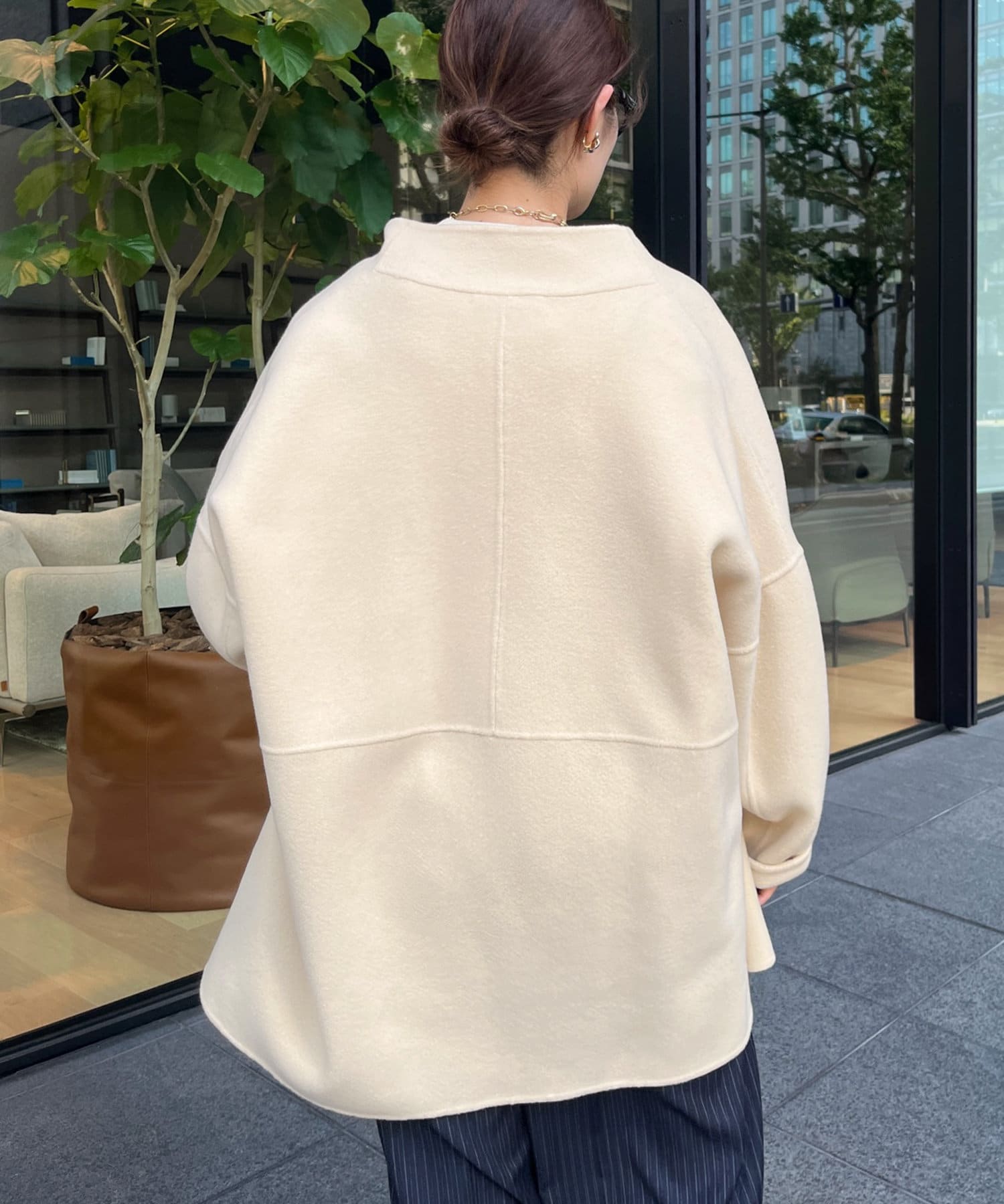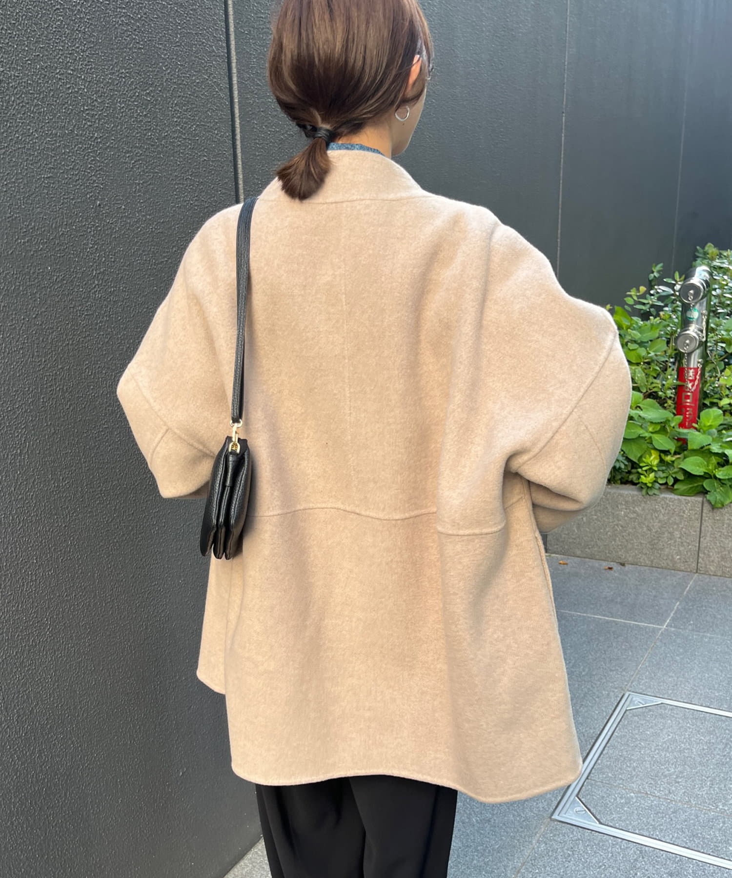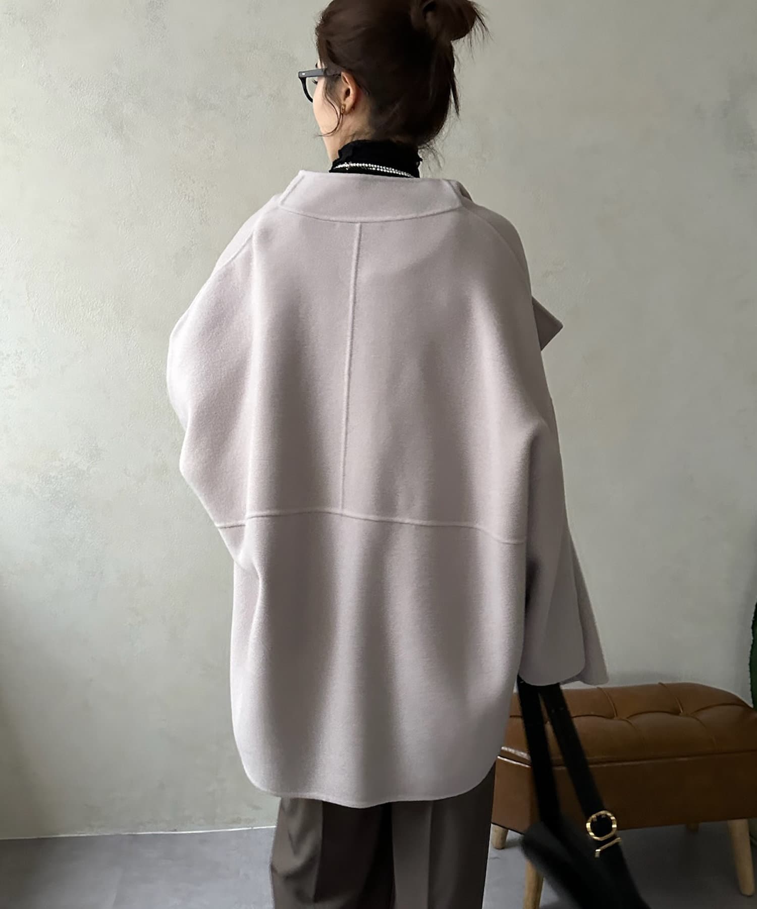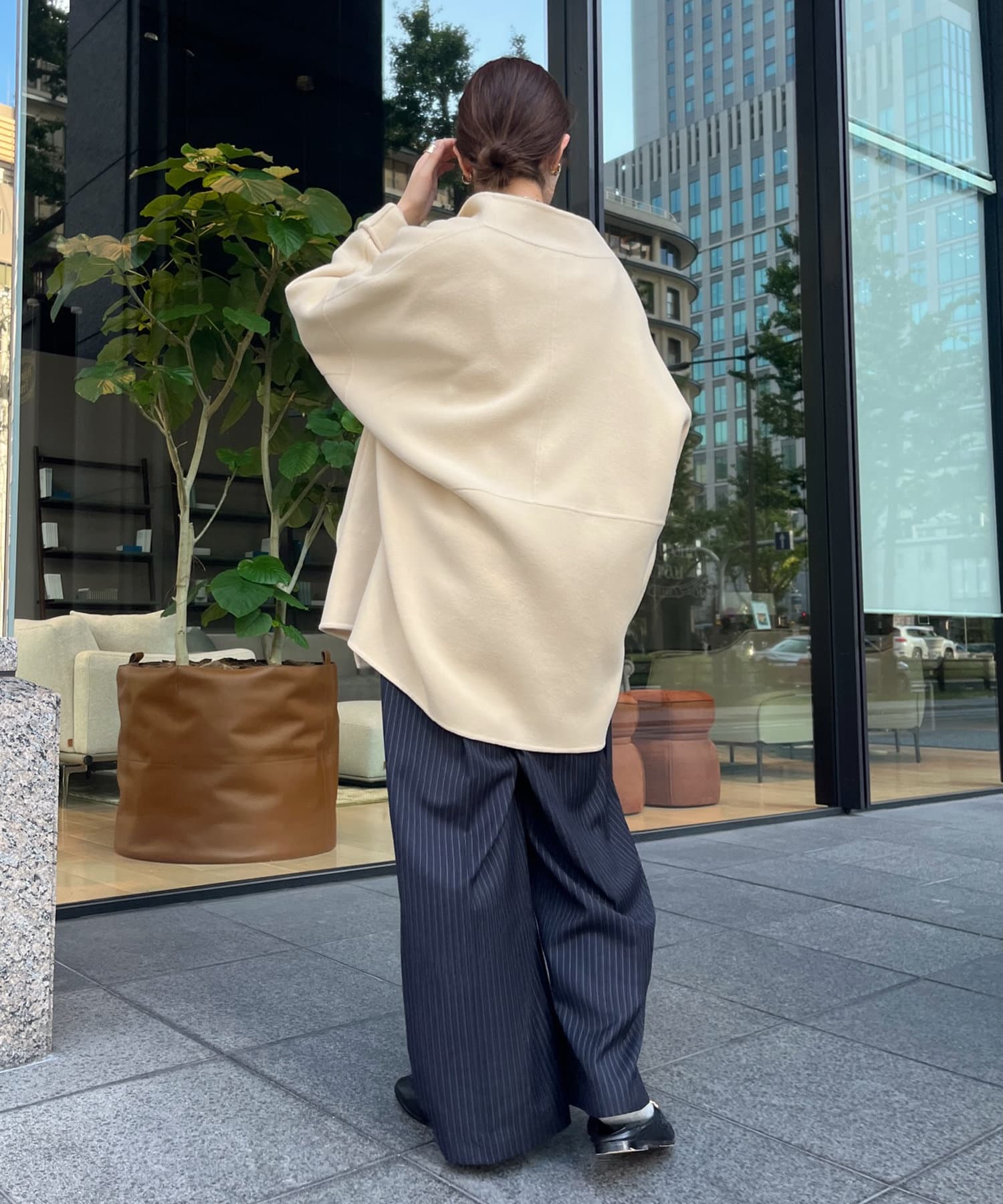 バックの切り替えはコクーンシルエットにすることで、後ろ姿にも抜かりのない印象に。