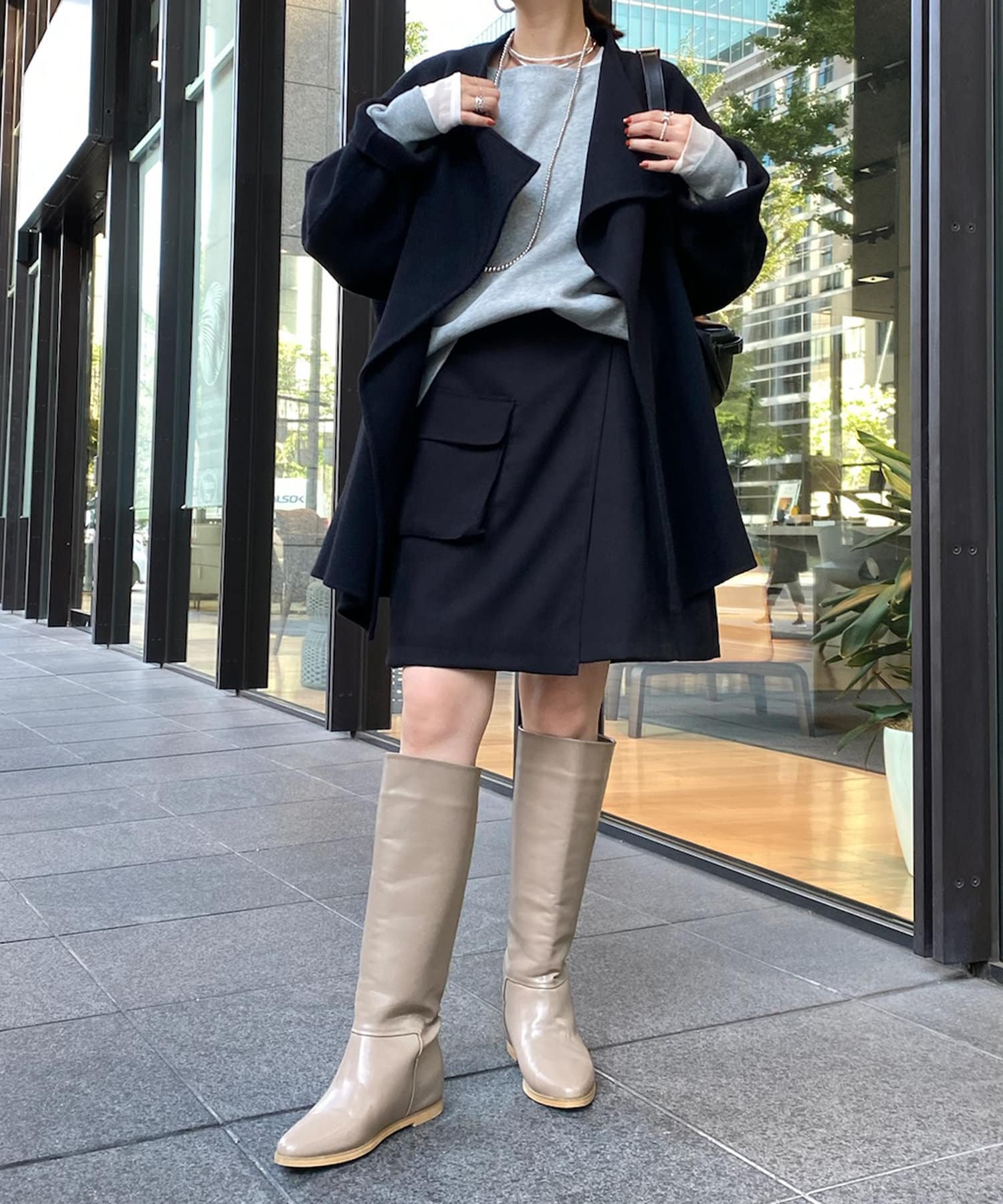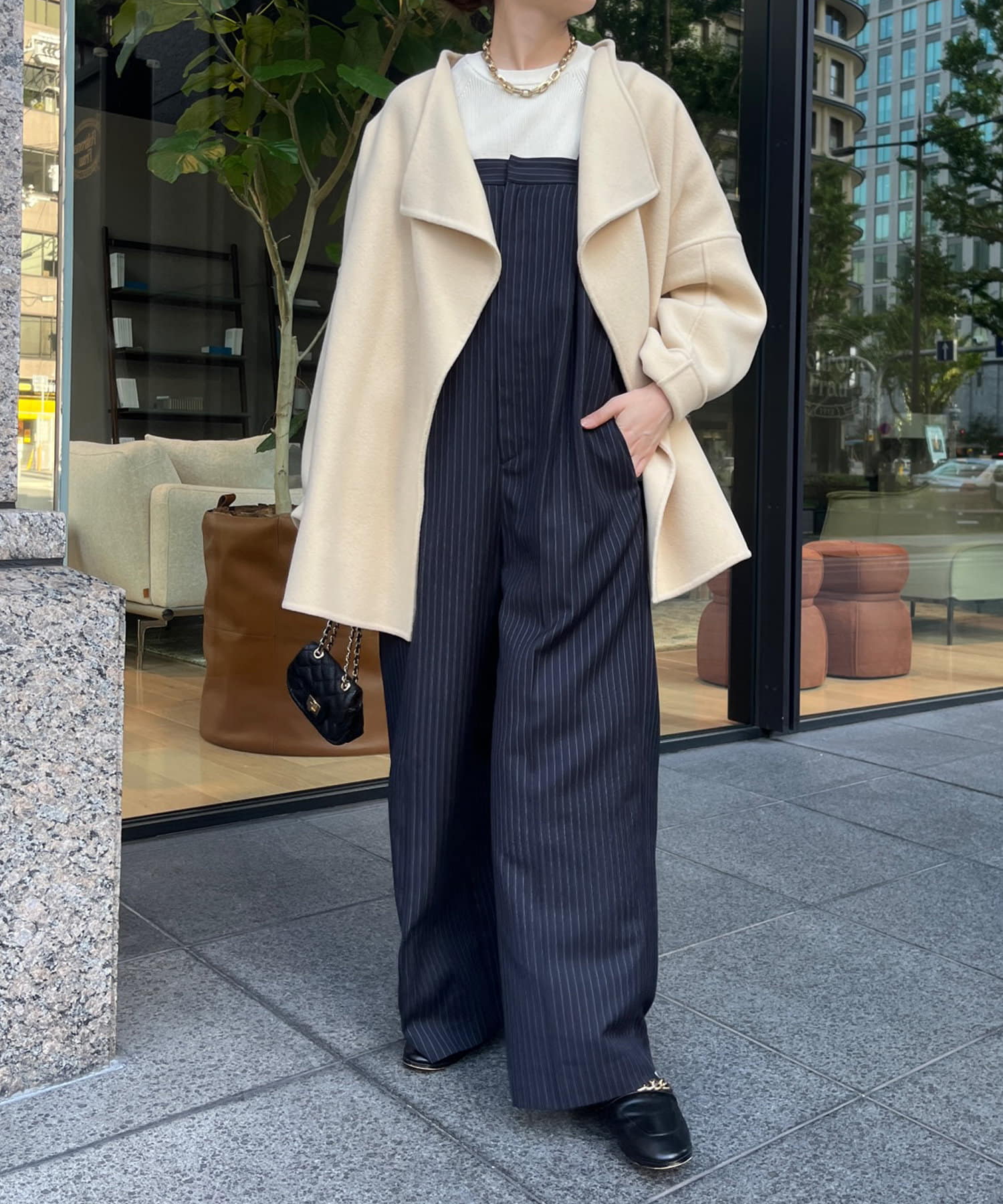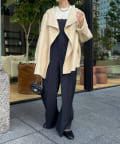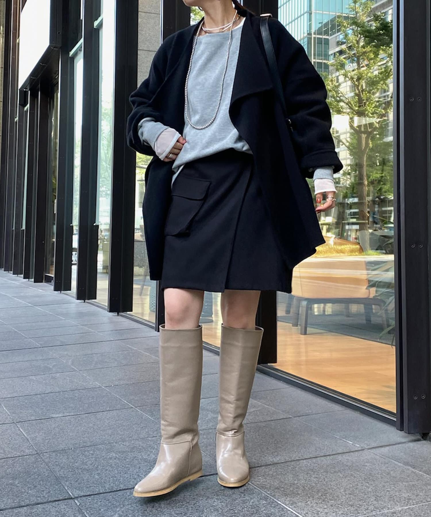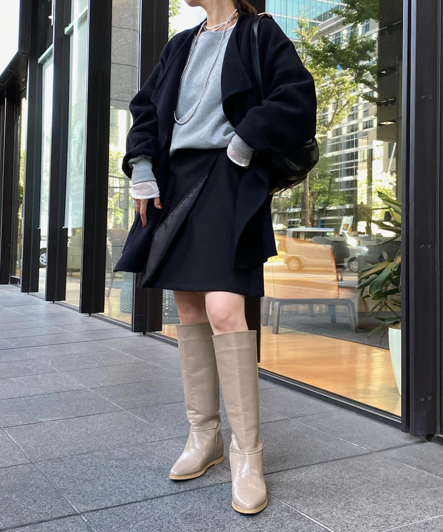 バックの切り替えはコクーンシルエットにすることで、後ろ姿にも抜かりのない印象に。