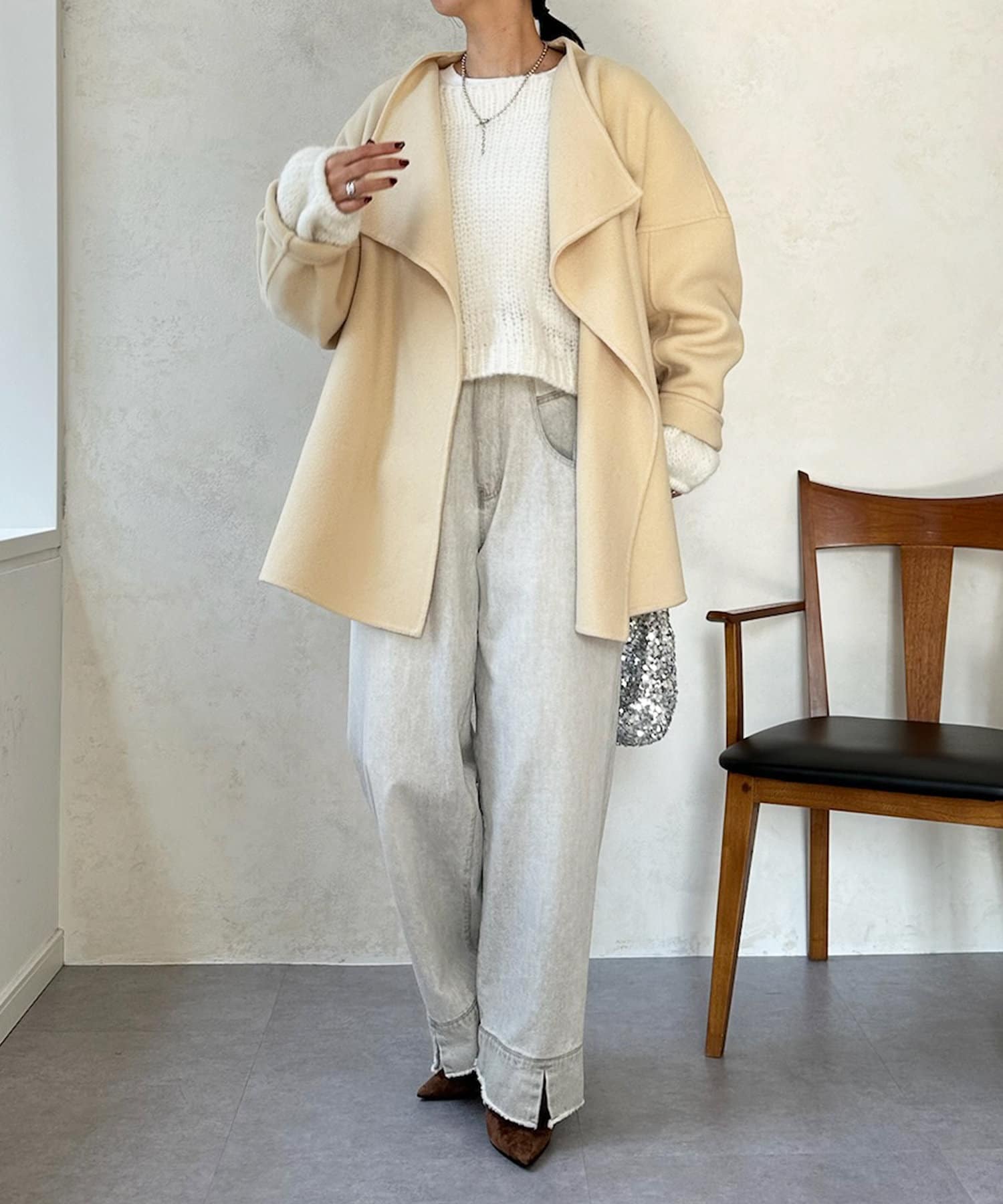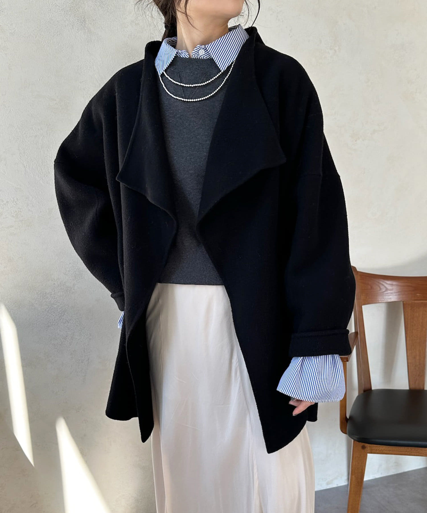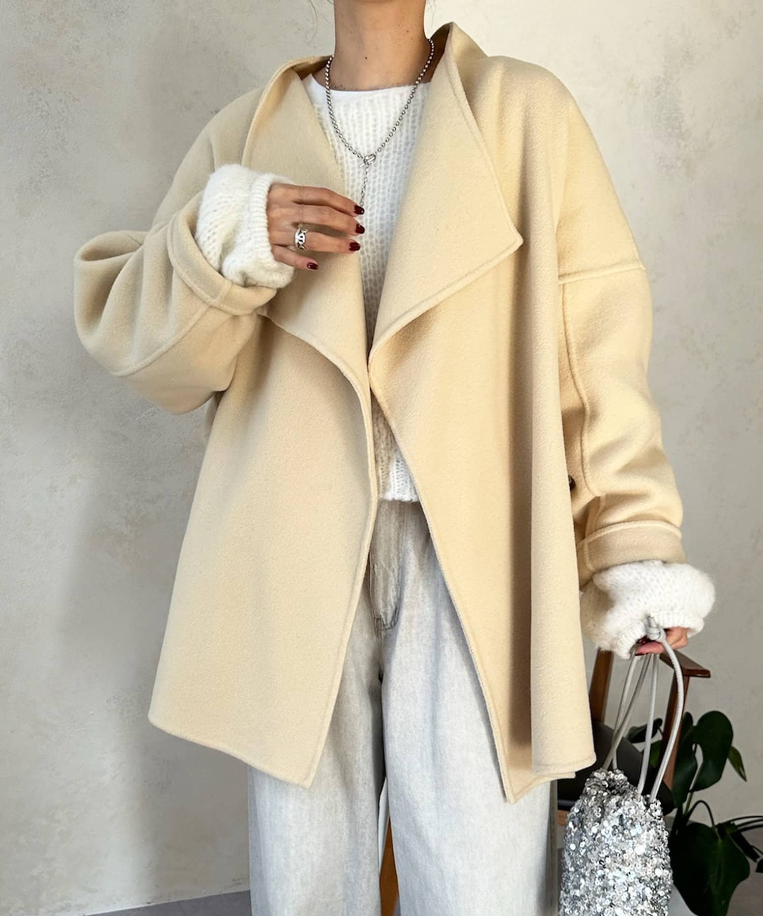 裏地をつけていないため、とっても軽くそれなのに暖かい着心地を叶えます。