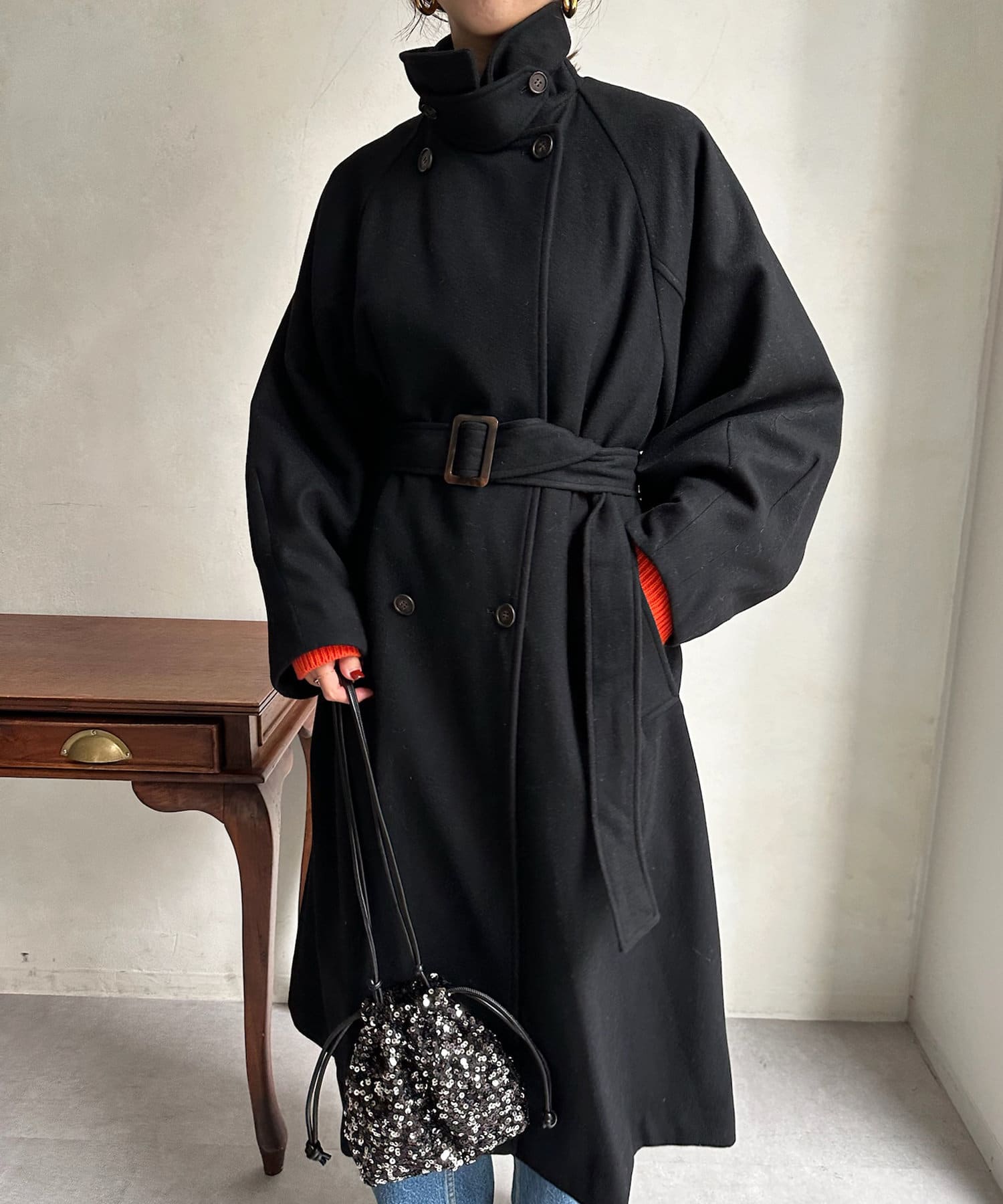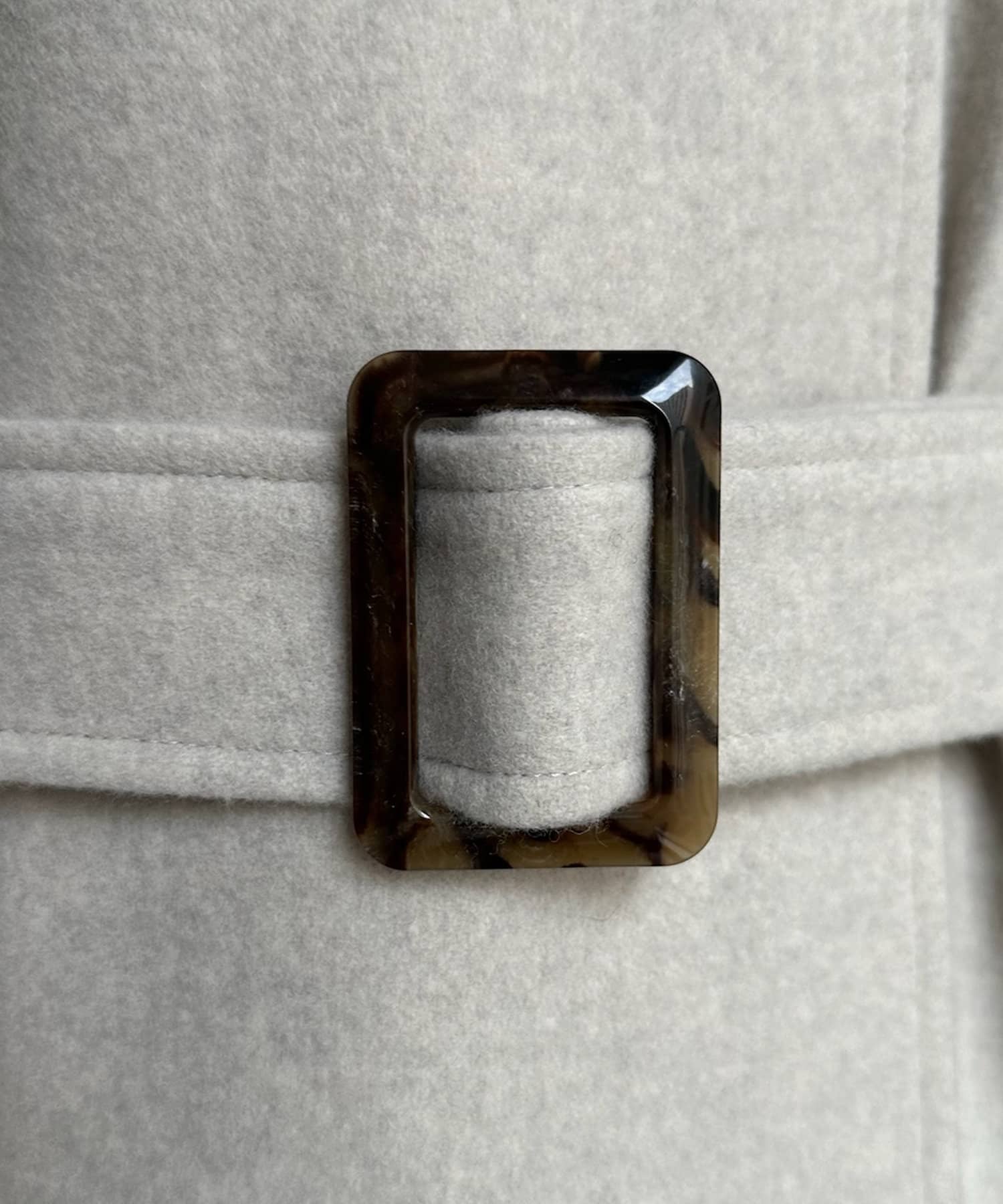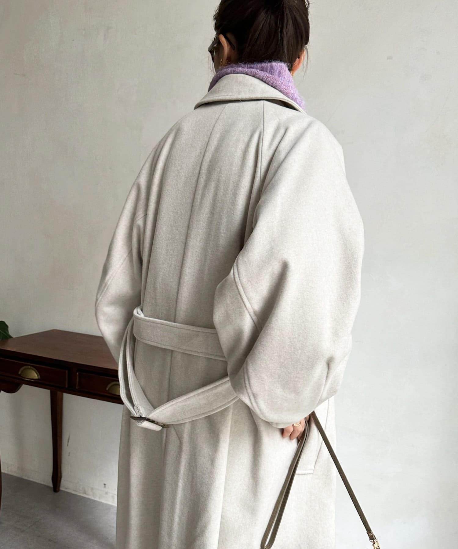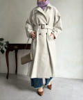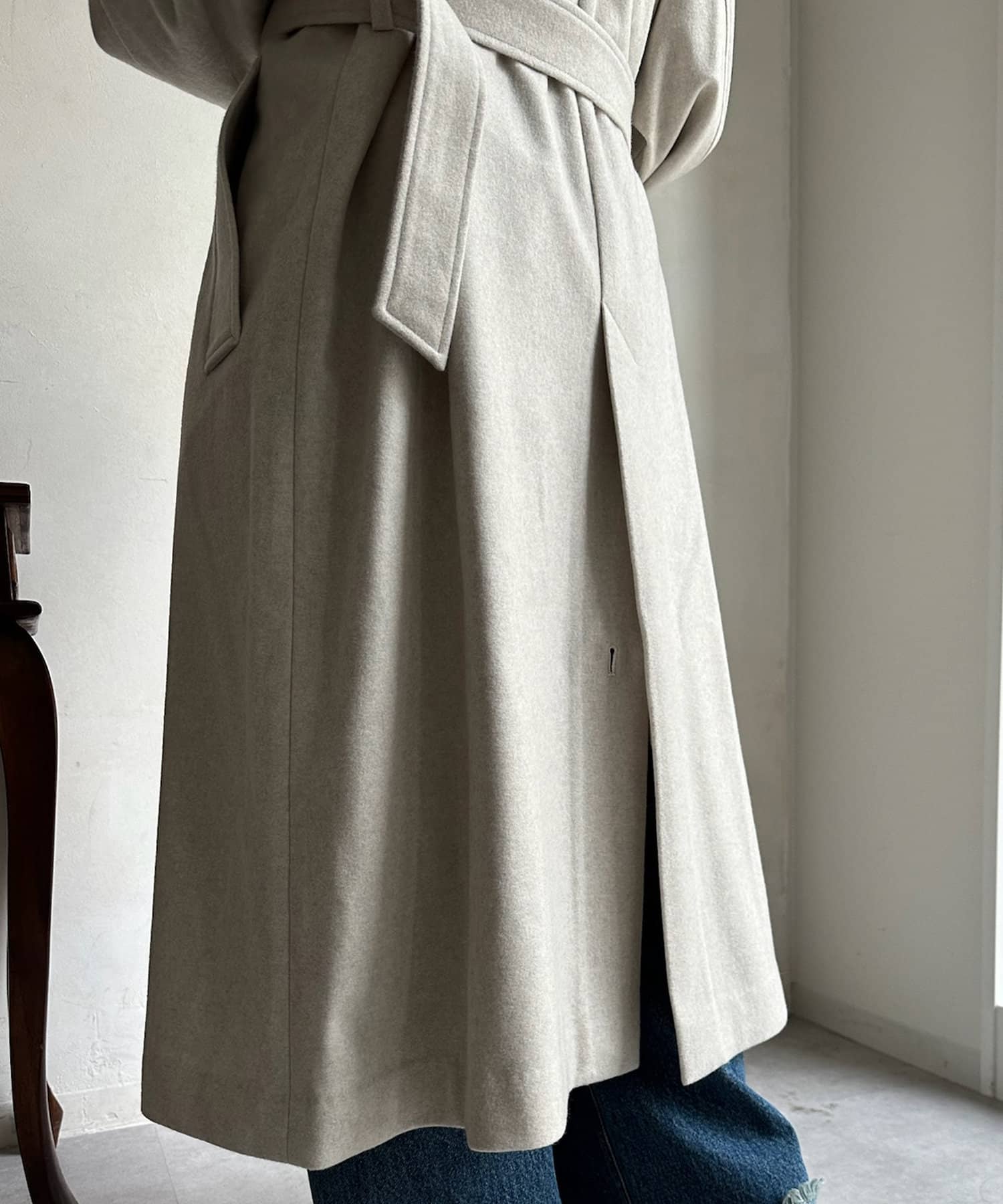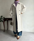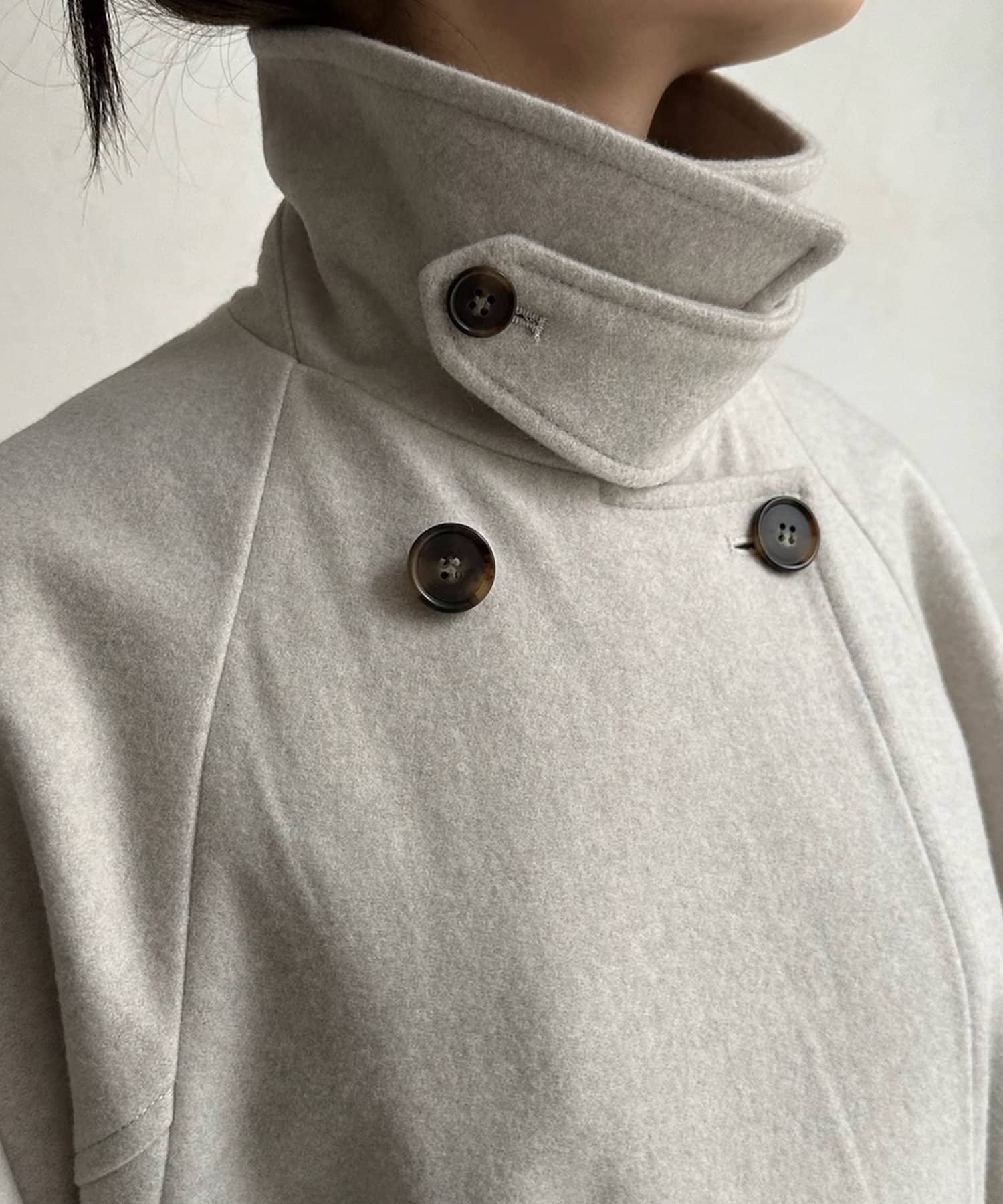 共布のベルトを軽やかに締めてウエストマークをするスタイルや、スタンドカラーとしても着用が出来るため、様々な着こなしで楽しんでいただけますよ。