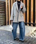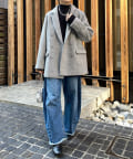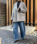 サイズ感はややゆとりのあるオーバーサイズに仕上げ、ニットやスウェットなどの厚みのあるものも着こめるように。
