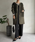ゆったりとしたオーバーサイズでニットの上から着てももたつきにくく、すっきりと着ていただける一枚です。