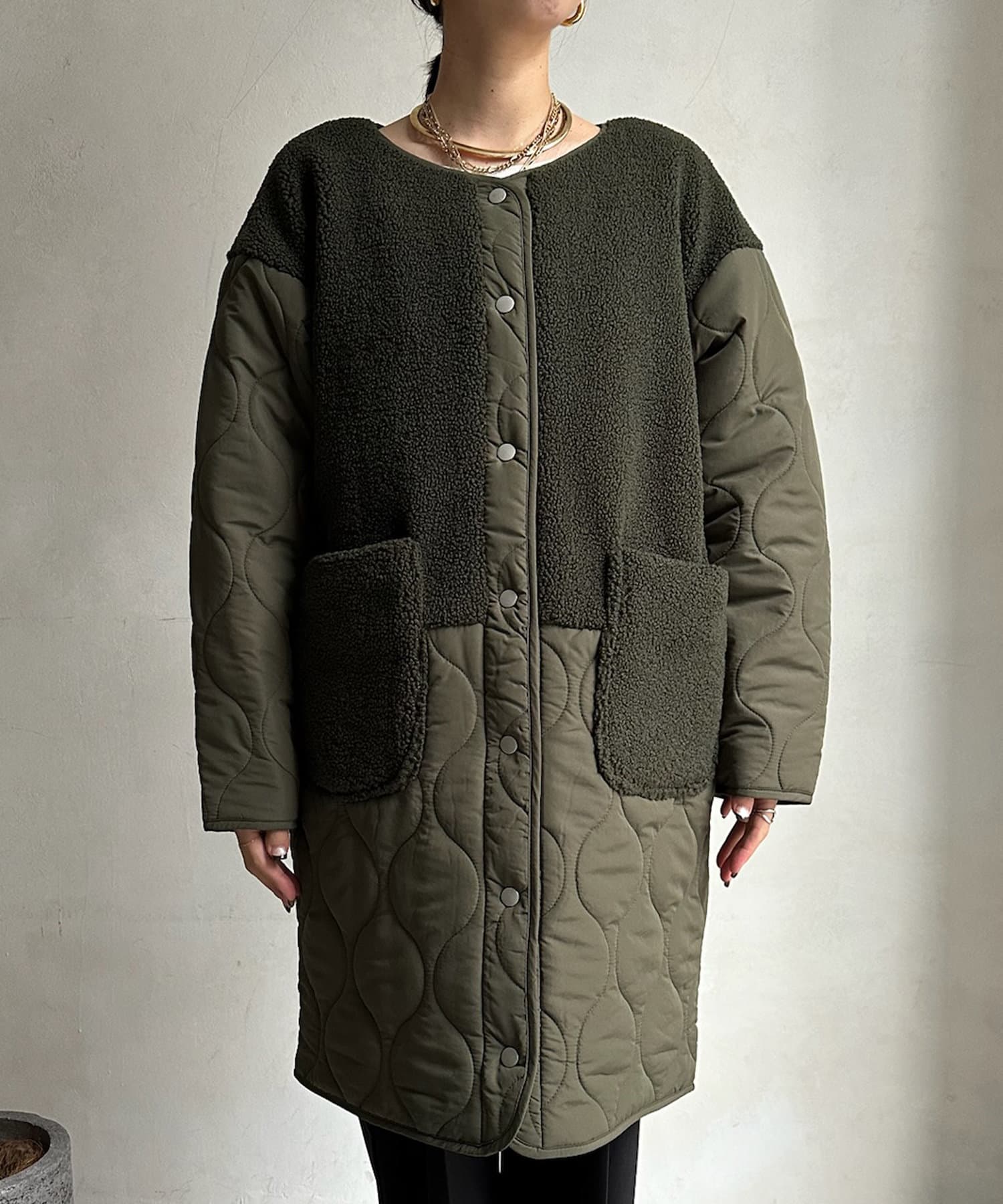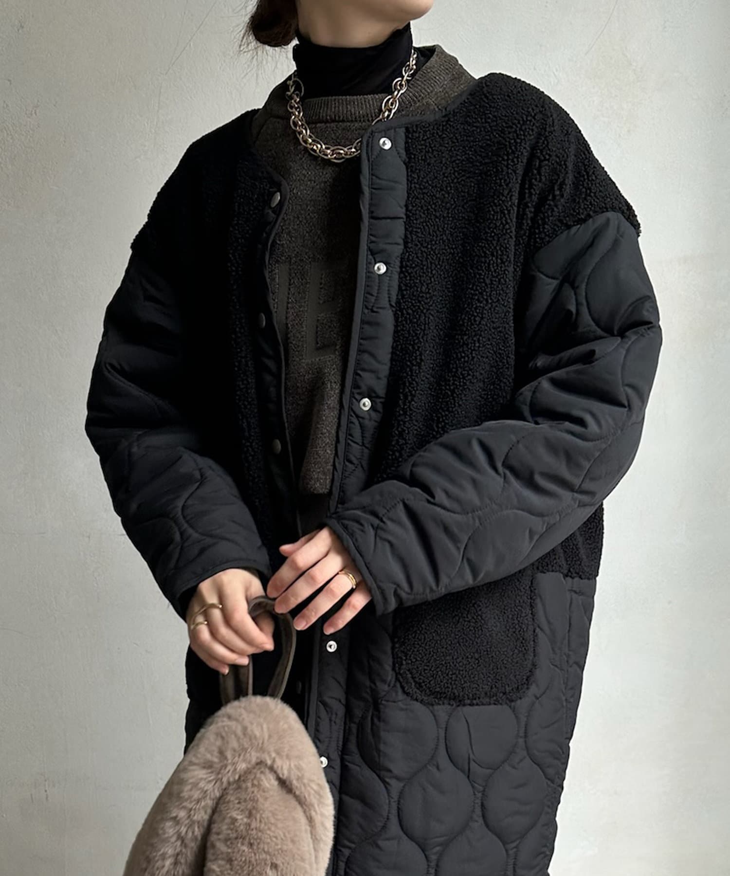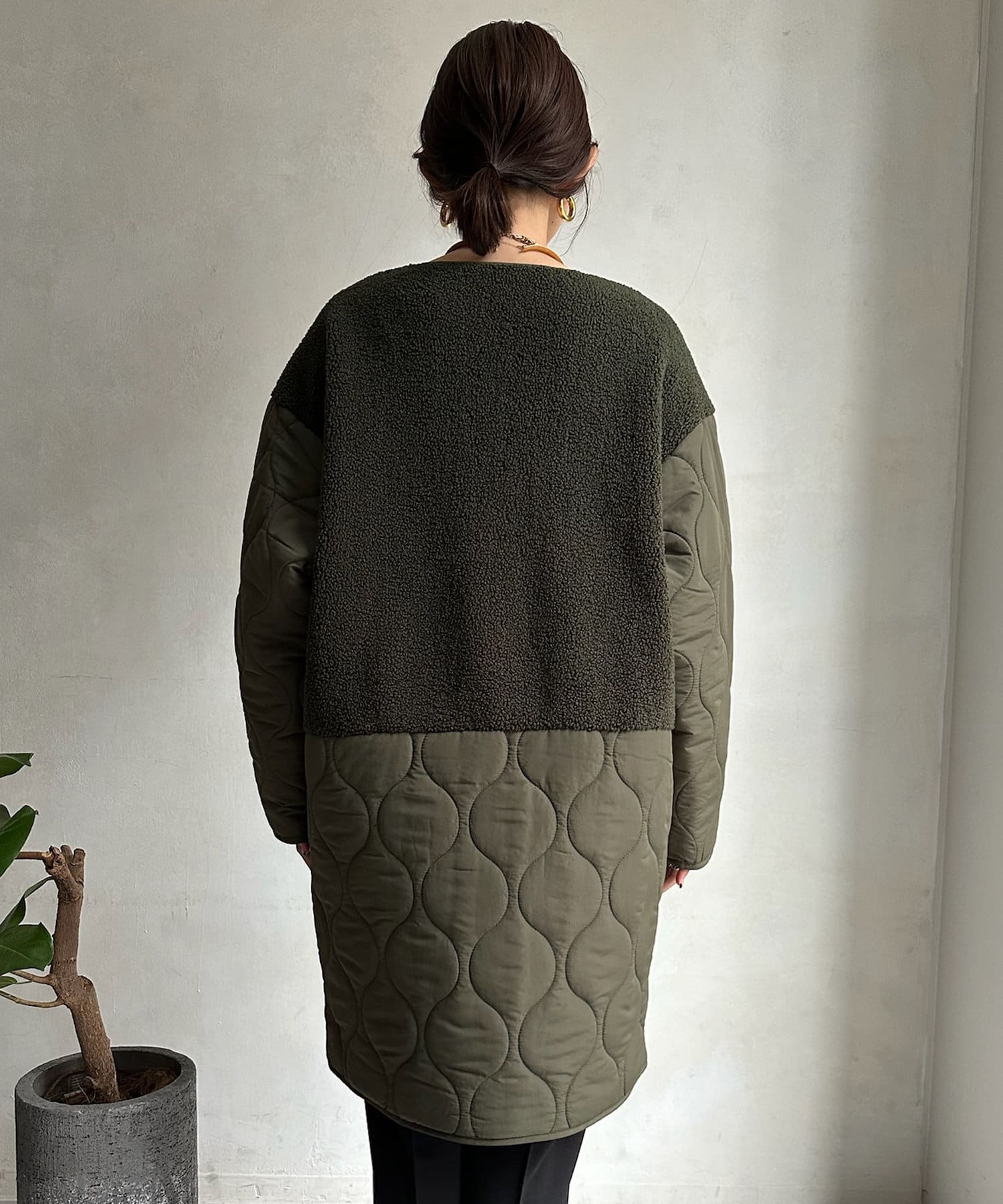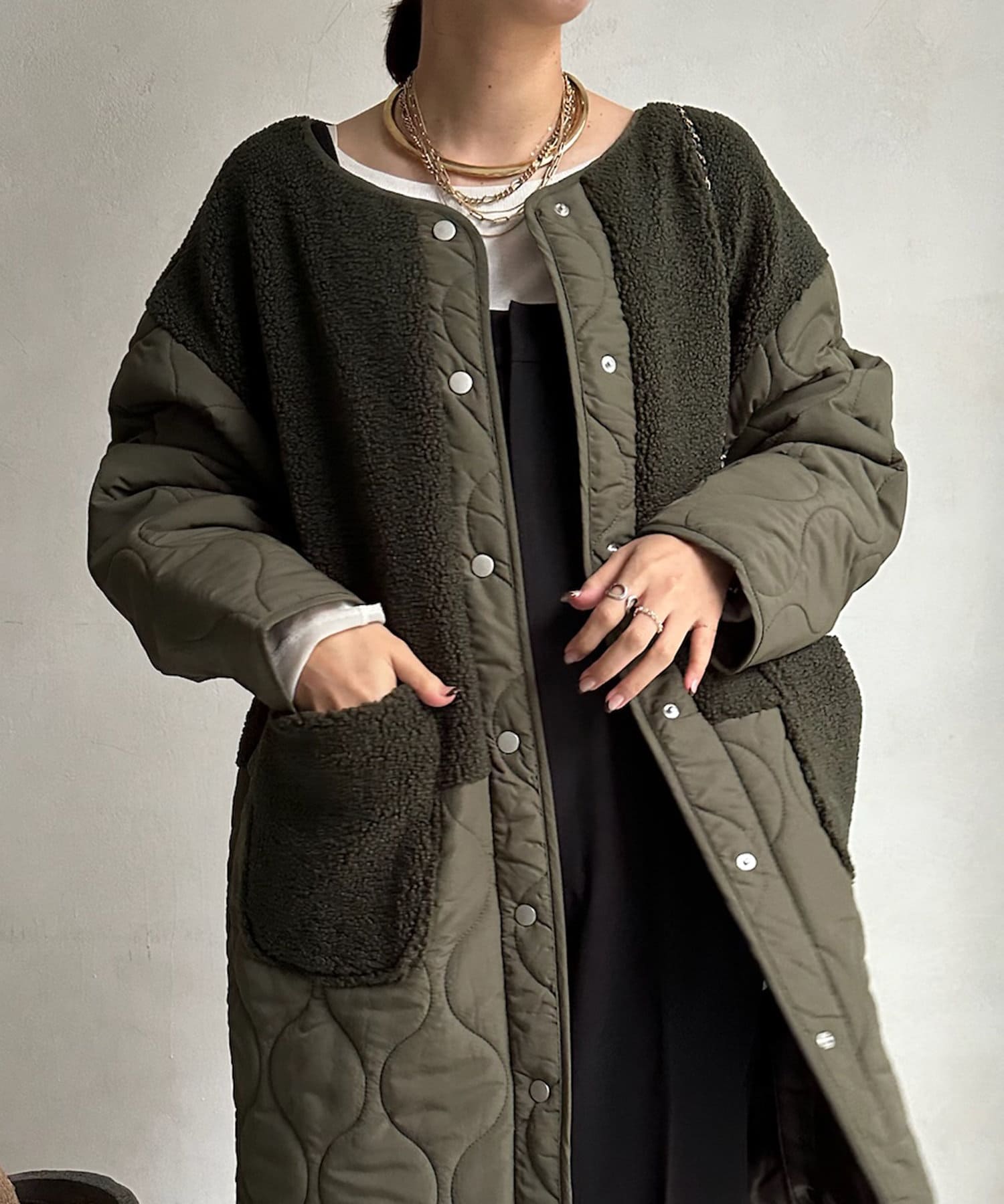 適度な厚みながらもボアとのキルティングの切り替えが映えるキルティングコートが登場!