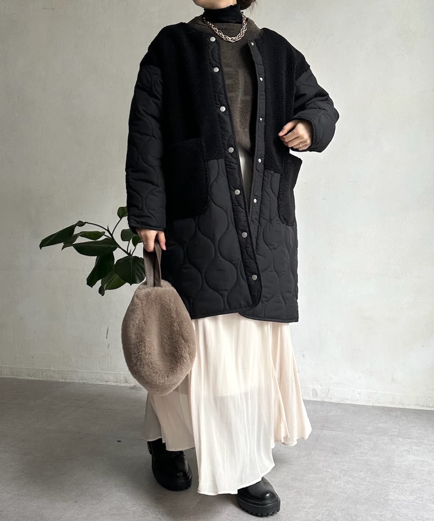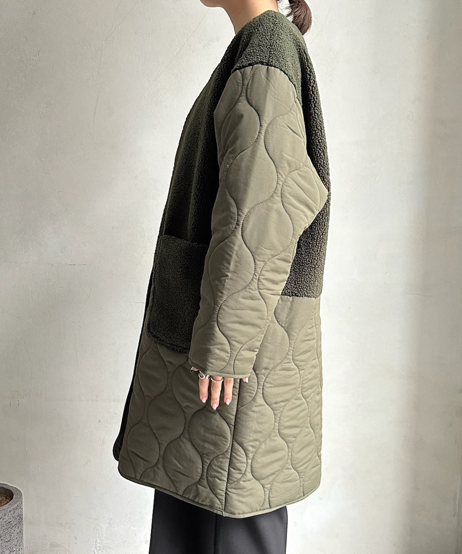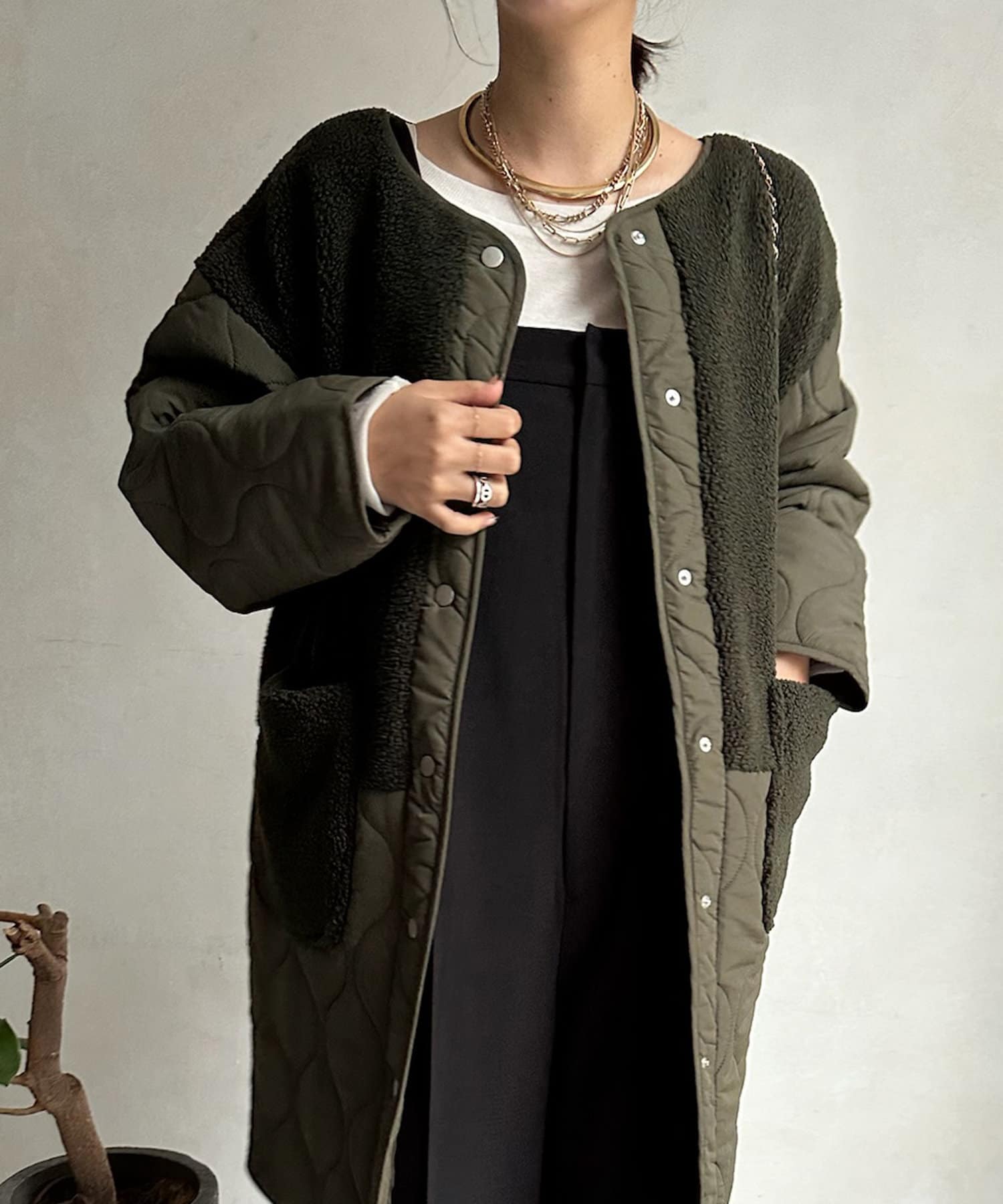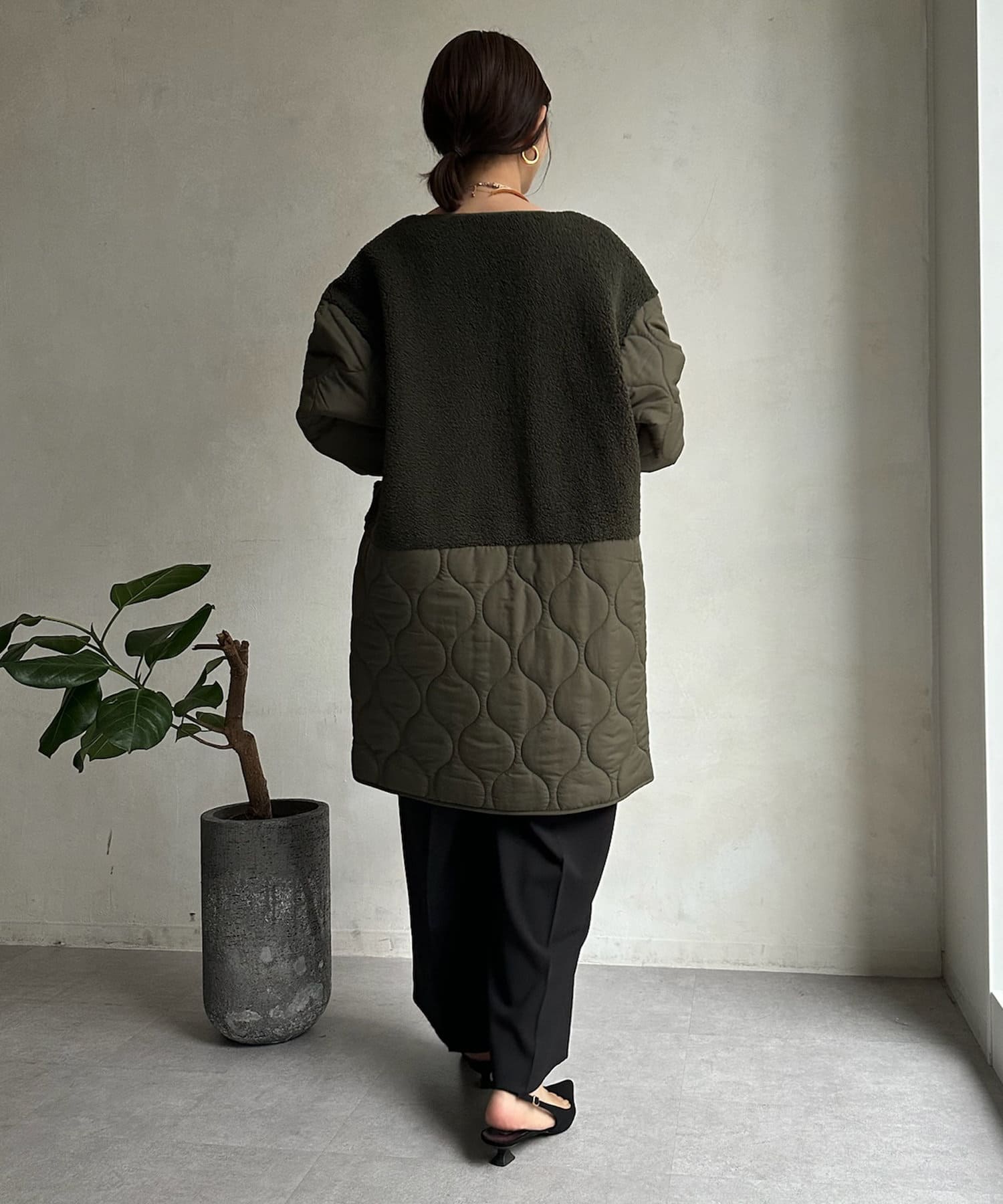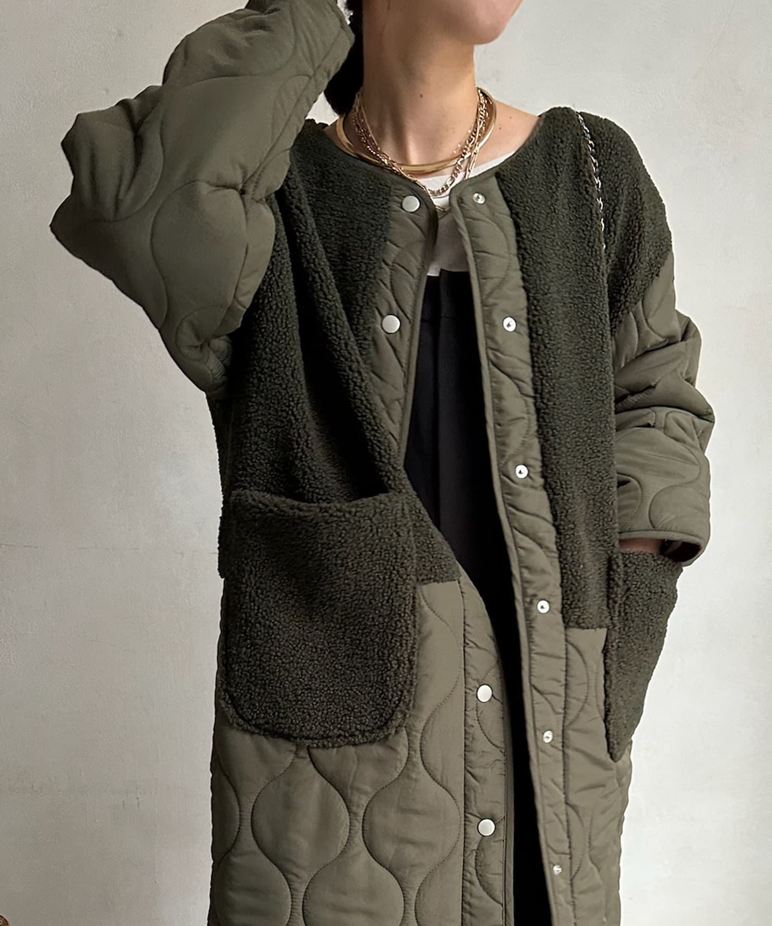 適度な厚みながらもボアとのキルティングの切り替えが映えるキルティングコートが登場!