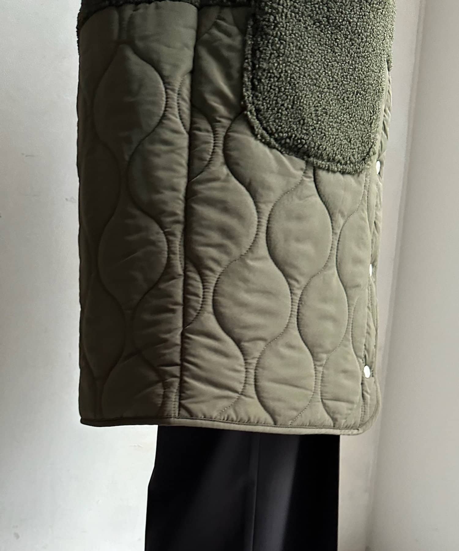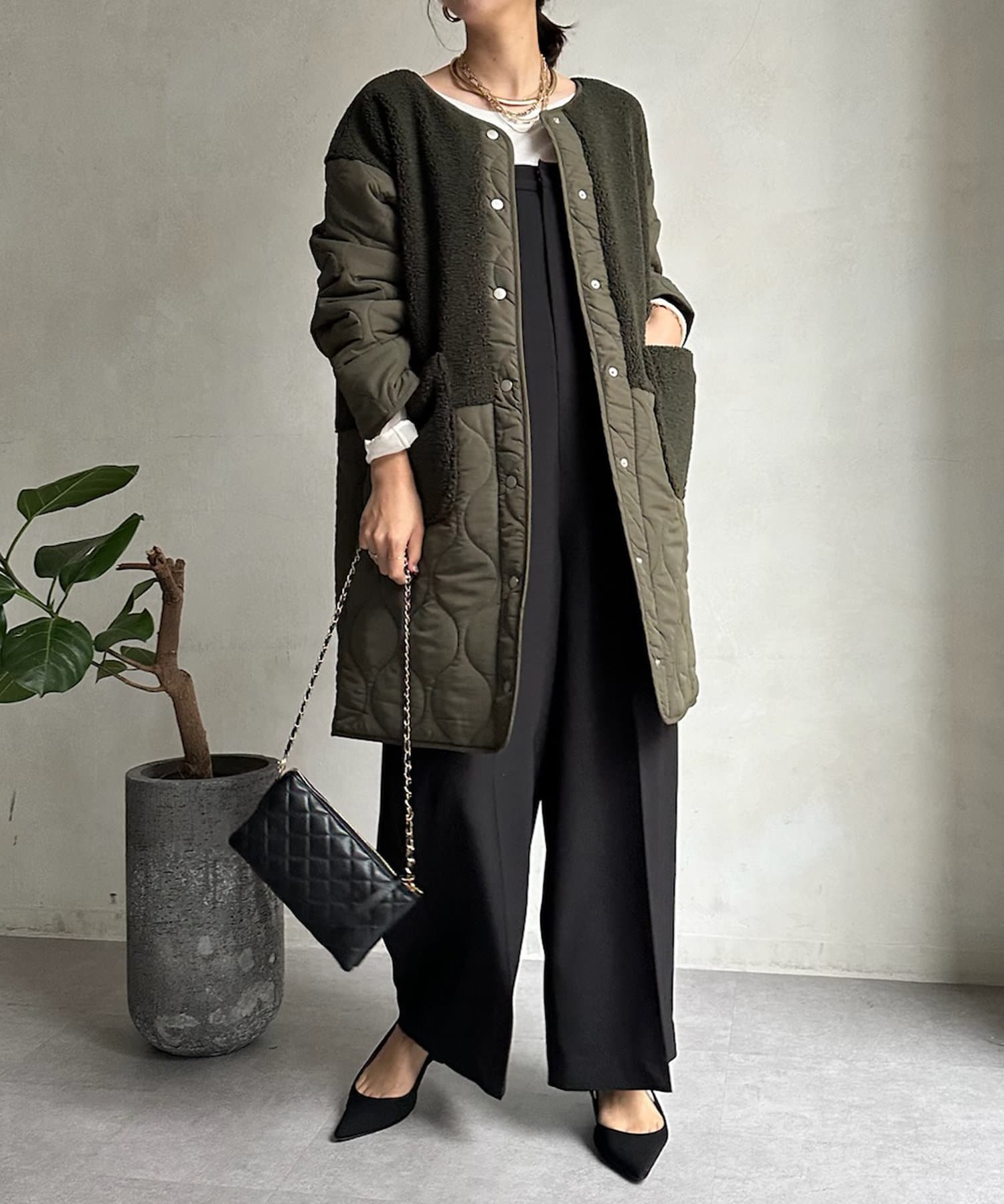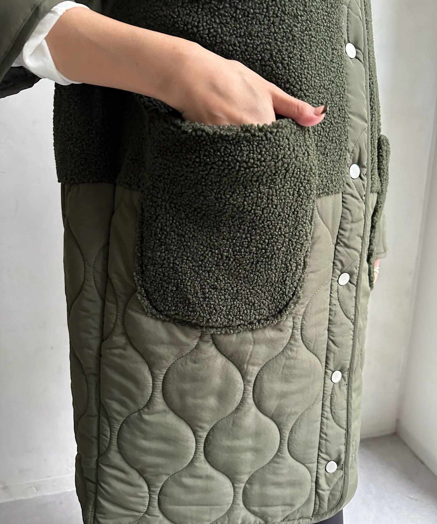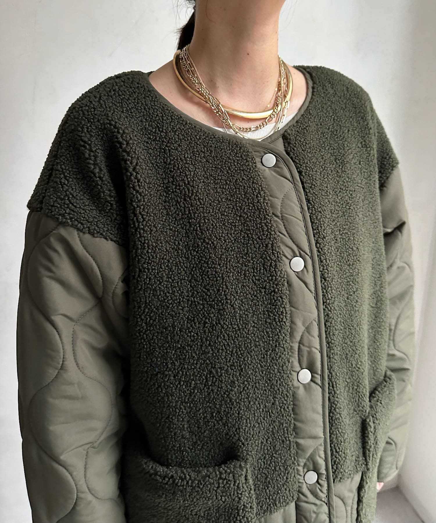 適度な厚みながらもボアとのキルティングの切り替えが映えるキルティングコートが登場!
